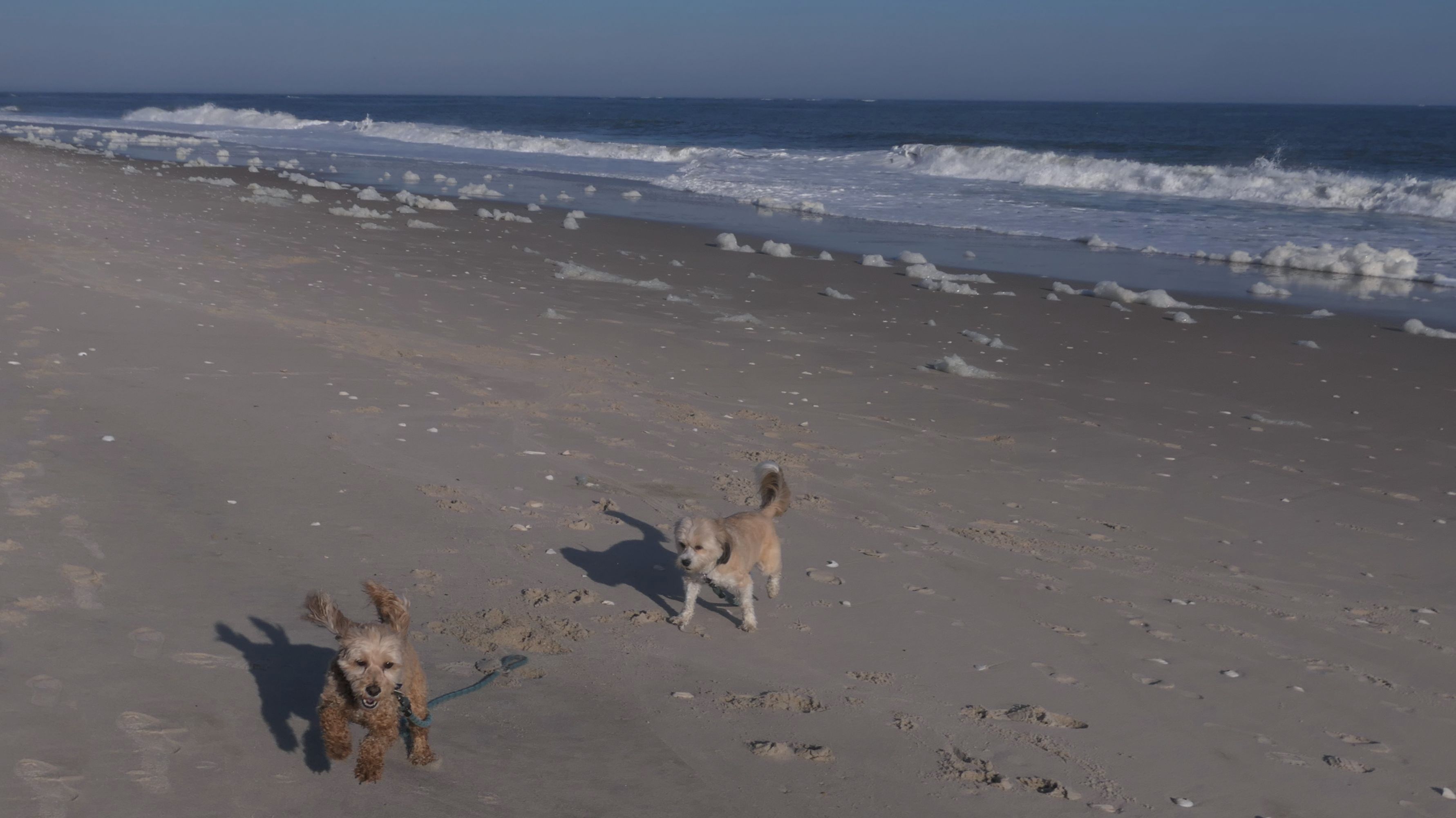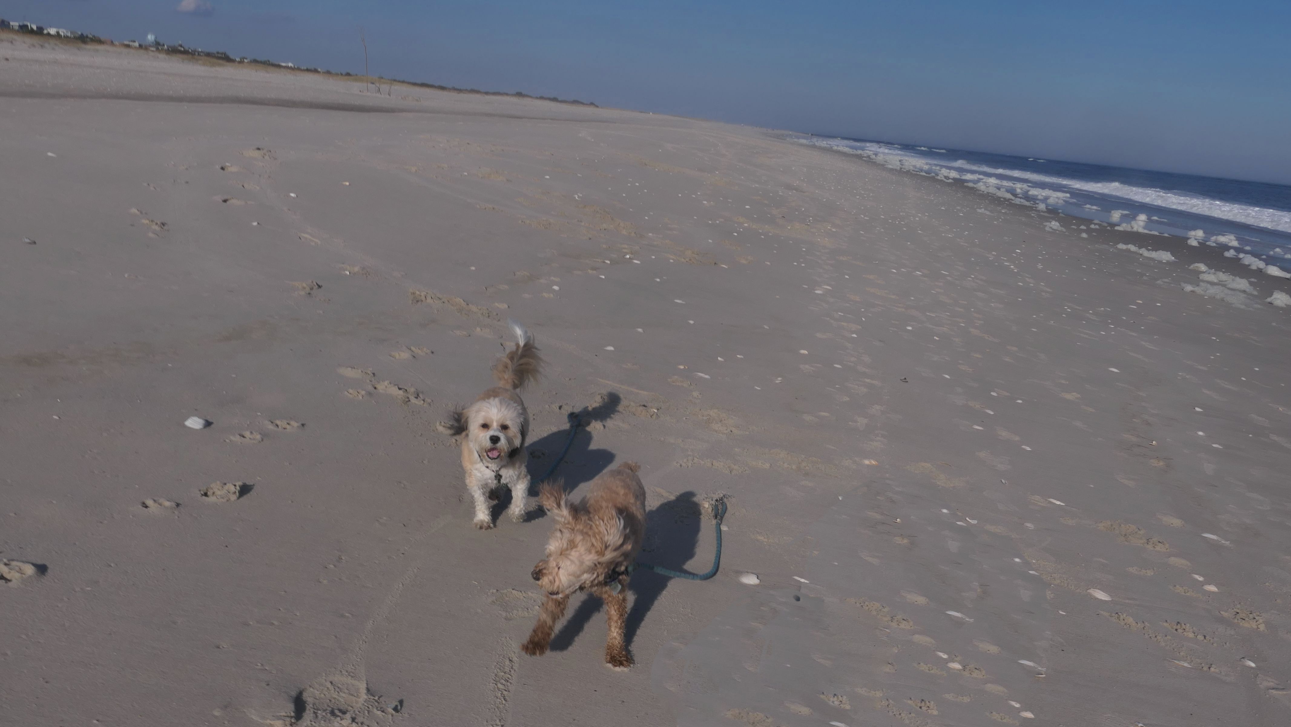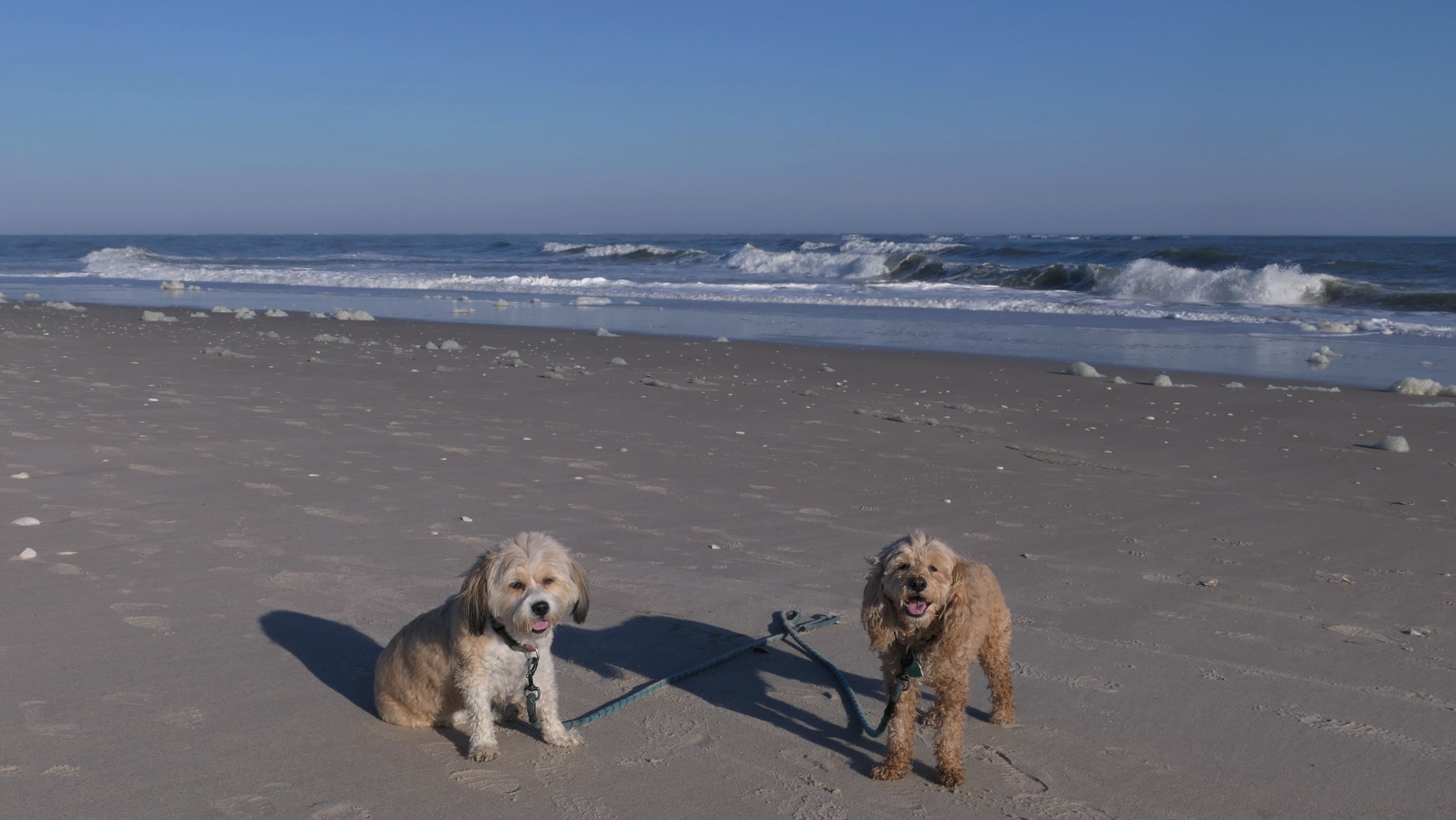 This is the ocean facing beach on Barnegat Light's eastern shore. We started at the north end, reaching the beach from the State Park. We headed south along the shore for about a mile and a half. I was able to let the dogs play a bit. They love running around the beach! Mandy went in the water a bit, but Lexi avoided it, since the water was kind of cold. It was sort of an "in-between" beach day. Temps were in the mid-60's, it was sunny with very little wind. I was wearing shorts, a t-shirt and sandals and was very comfortable, and enjoyed walking along the edge of the waves. Last November we had a few warmer days where we headed to the Jersey Shore, but it's been more seasonable this year. This was the closest we are going to get this year to a summer-like beach day in November!