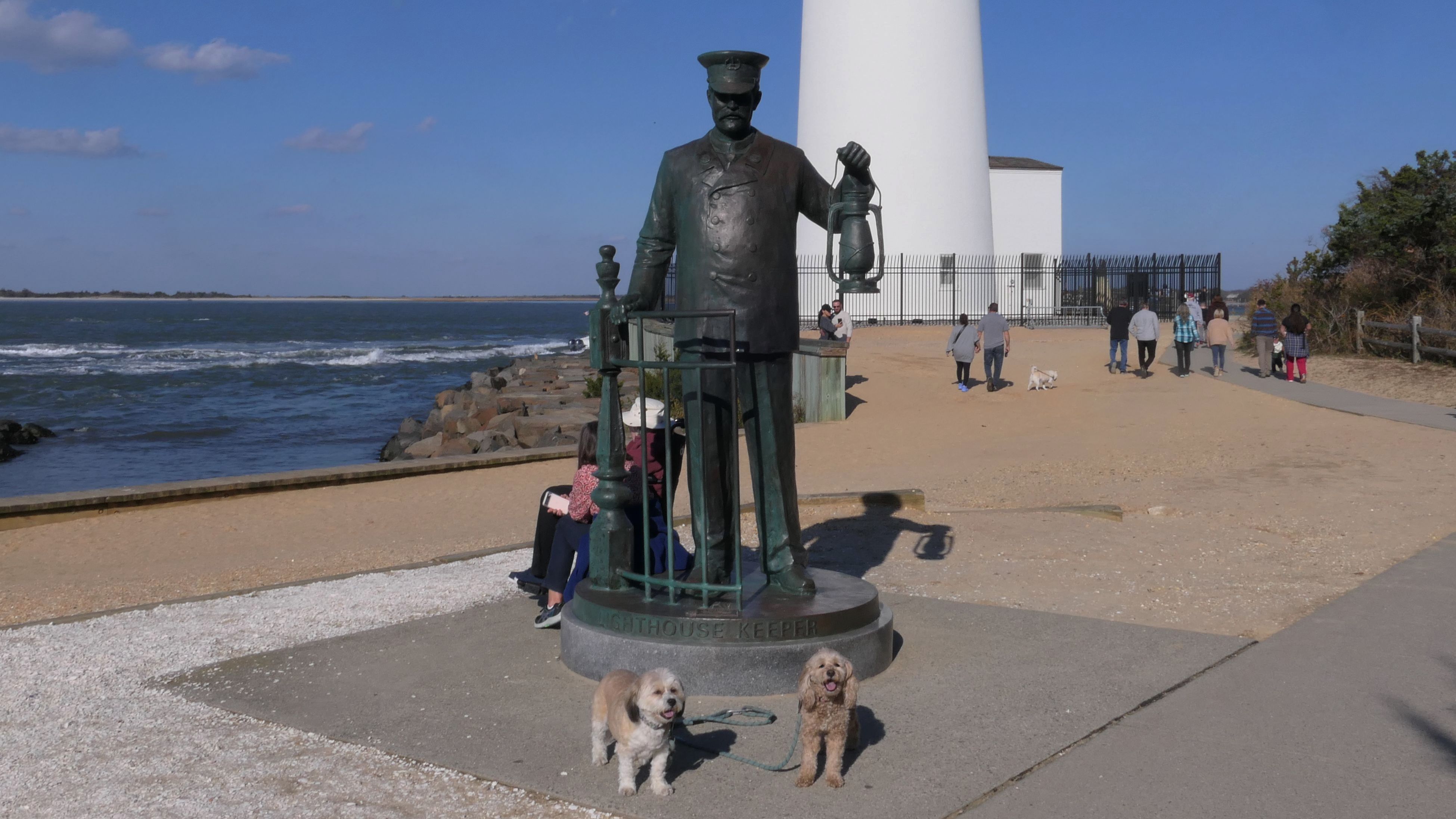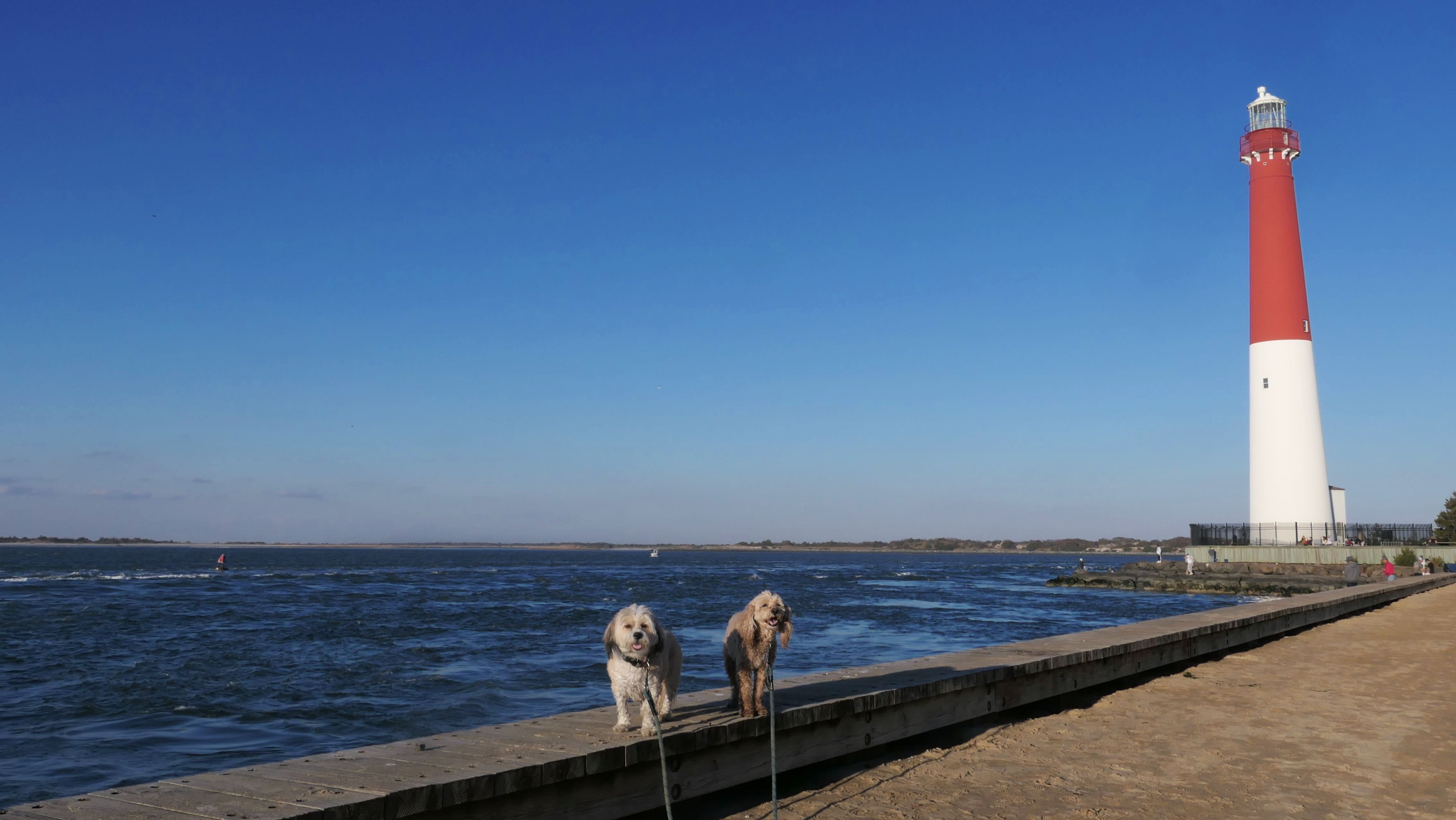 I had picked this state park as a possible adventure last fall, but didn't have enough time to do it while the weather was nice. In October, we were actually heading here, but then I decided to go to Atlantic City instead at the last minute. This time we actually made it! It was a bright sunny day in the mid-60s, pretty nice for November! Dogs are allowed between September 16 and March 31 in most of the park, except for the cement walk way, and the nature trail. The park was pretty busy, as the parking lot was nearly full. We arrived at 1:30, and they close the gates this time of year at 4, so we had time to explore. The lighthouse is the main attraction at the park. It's at the tip of Long Beach Island, a 24 mile long island off the coast of southern New Jersey. Beyond the lighthouse is a rock barrier that runs across the northern tip of the island. We walked on the sand along the rock wall, about a mile total, until we reached the ocean facing beach on the eastern shore of the island. That beach is called Long Beach on the map. We continued south along the beach for a mile and a half before turning around and heading back the way we came. This was a fun walk on a very nice day.
