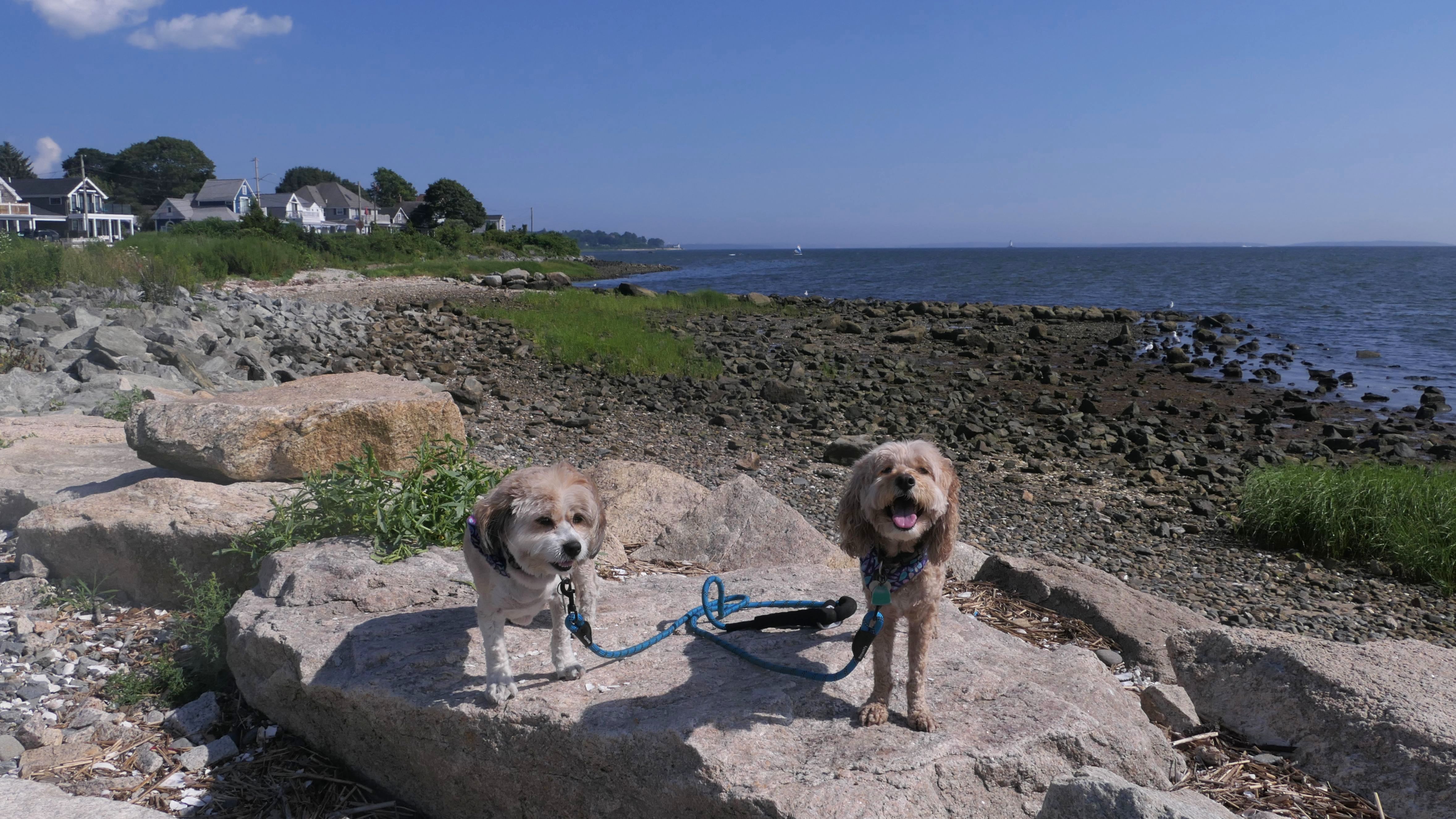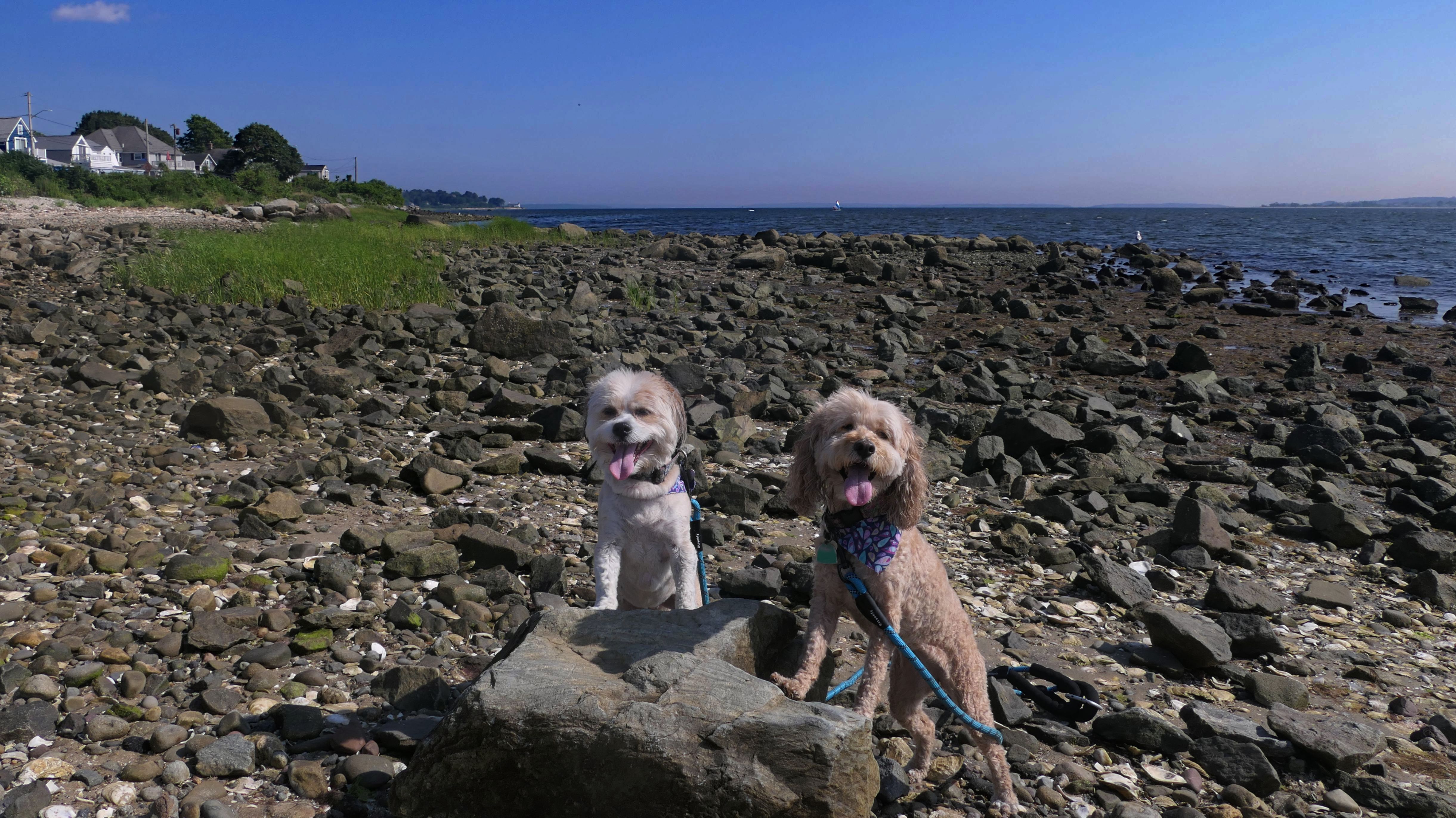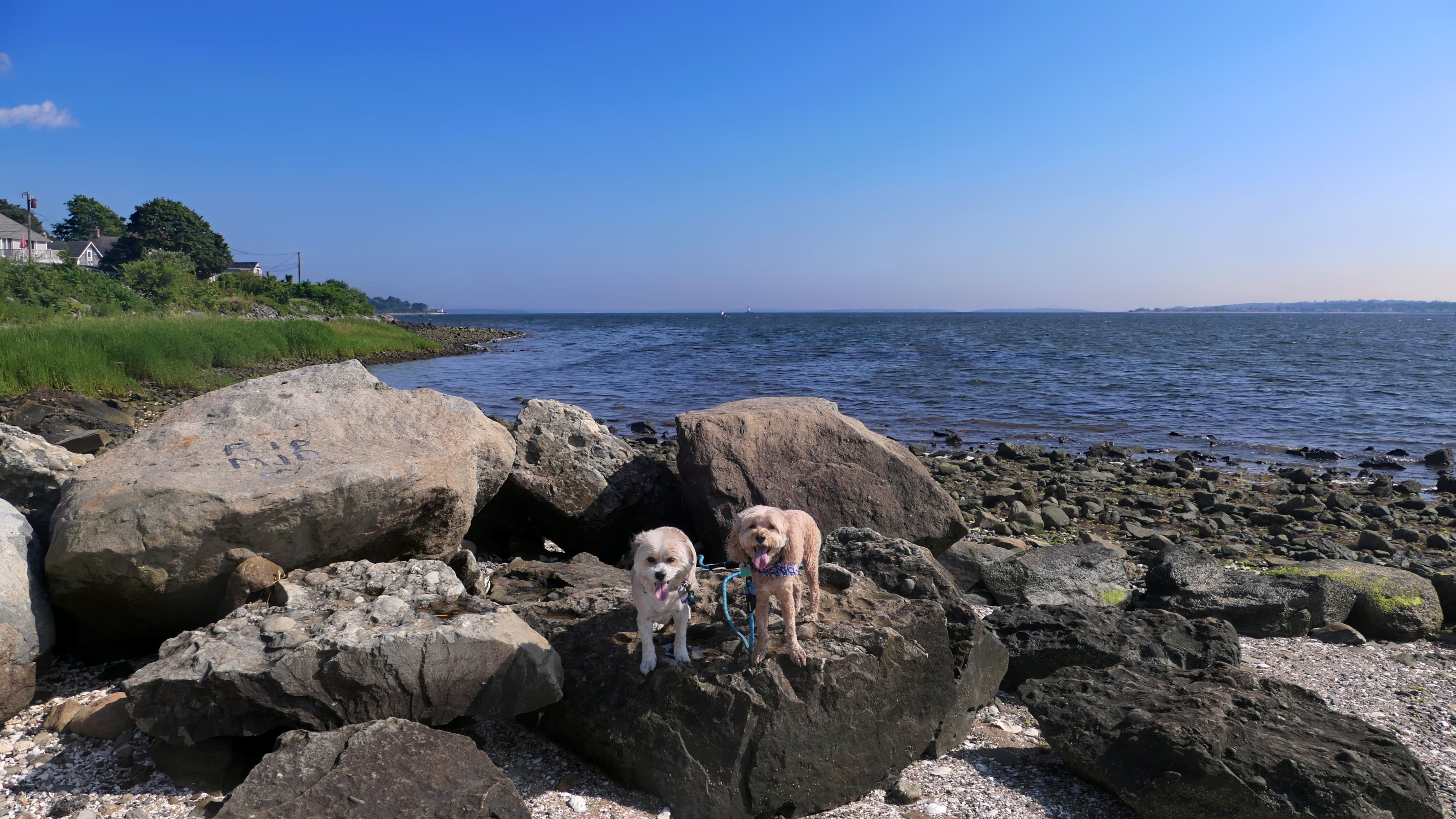 This is a Barrington Land Trust property that can be accessed from three different public access points. There is a parking lot for about four cars, maybe five, at the corner of Appian Way and Grove Street. We took the short path at the end of Appian Way to the beach area. The beach surface is more gravel and pebble than sand. We headed south along the shore until we hit Mussachuck Creek. In order to continue, we had to pass through the creek, so I took off my shoes and socks, and the dogs just ran through it. There's another public access point on the other side of the creek (Daunis Road), with parking for two cars. We were able to continue a bit further until we reached a wider beach area. Nayatt Point Lighthouse is here, but you can't get to it since it on private property. We turned around here, and backtracked the way we came. Instead of leaving via the Appian Way Access Point, we continued north. The beach is narrow here, with a rock wall protecting the adjacent properties. We eventually reached a wider beach area and an access point at Annawamscutt Road. From here, we walked via Annawamscutt Road and Appian Way back to the car. The entire adventure was just over three miles, on a beautiful, but a bit chilly autumn afternoon.
