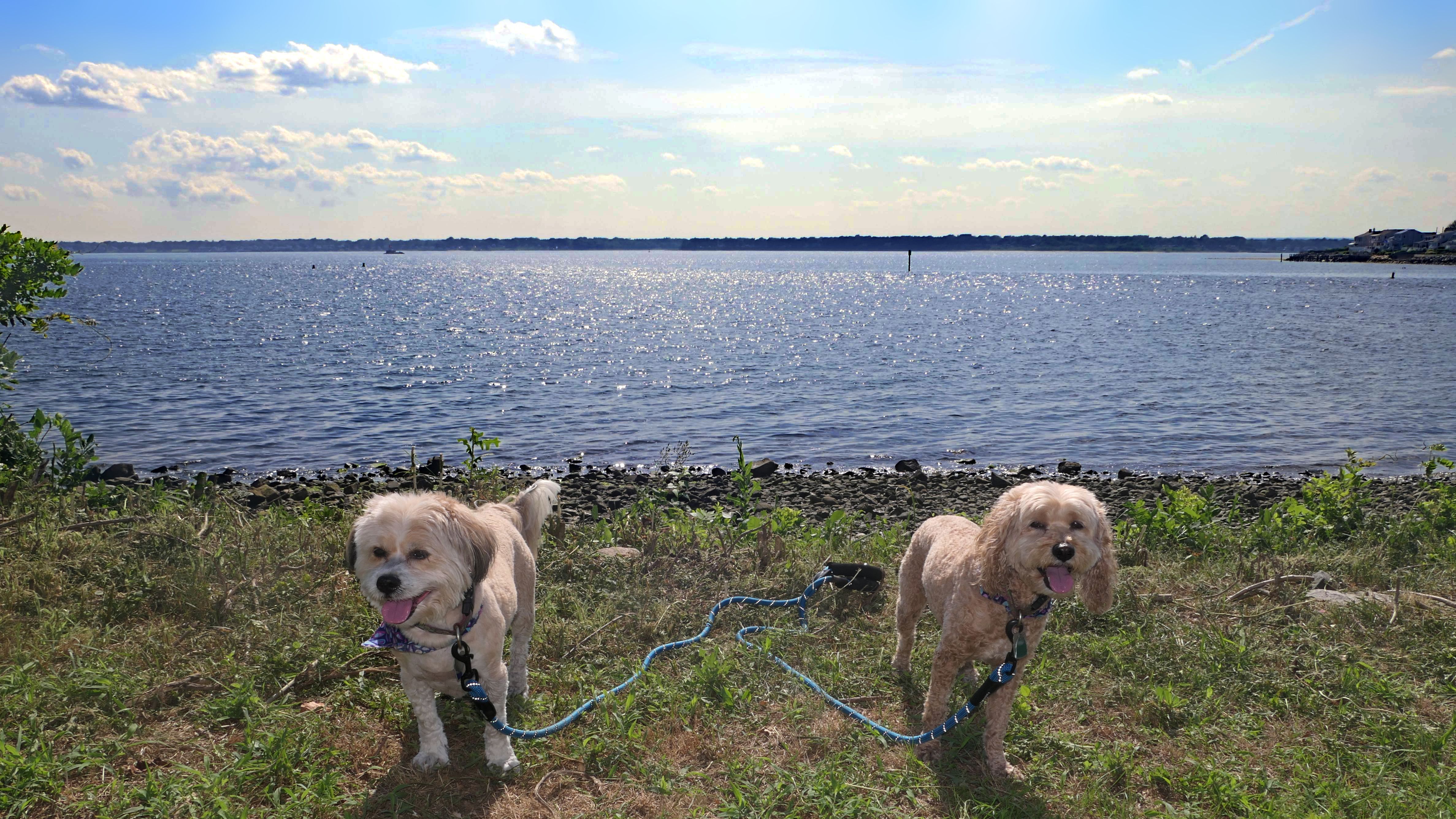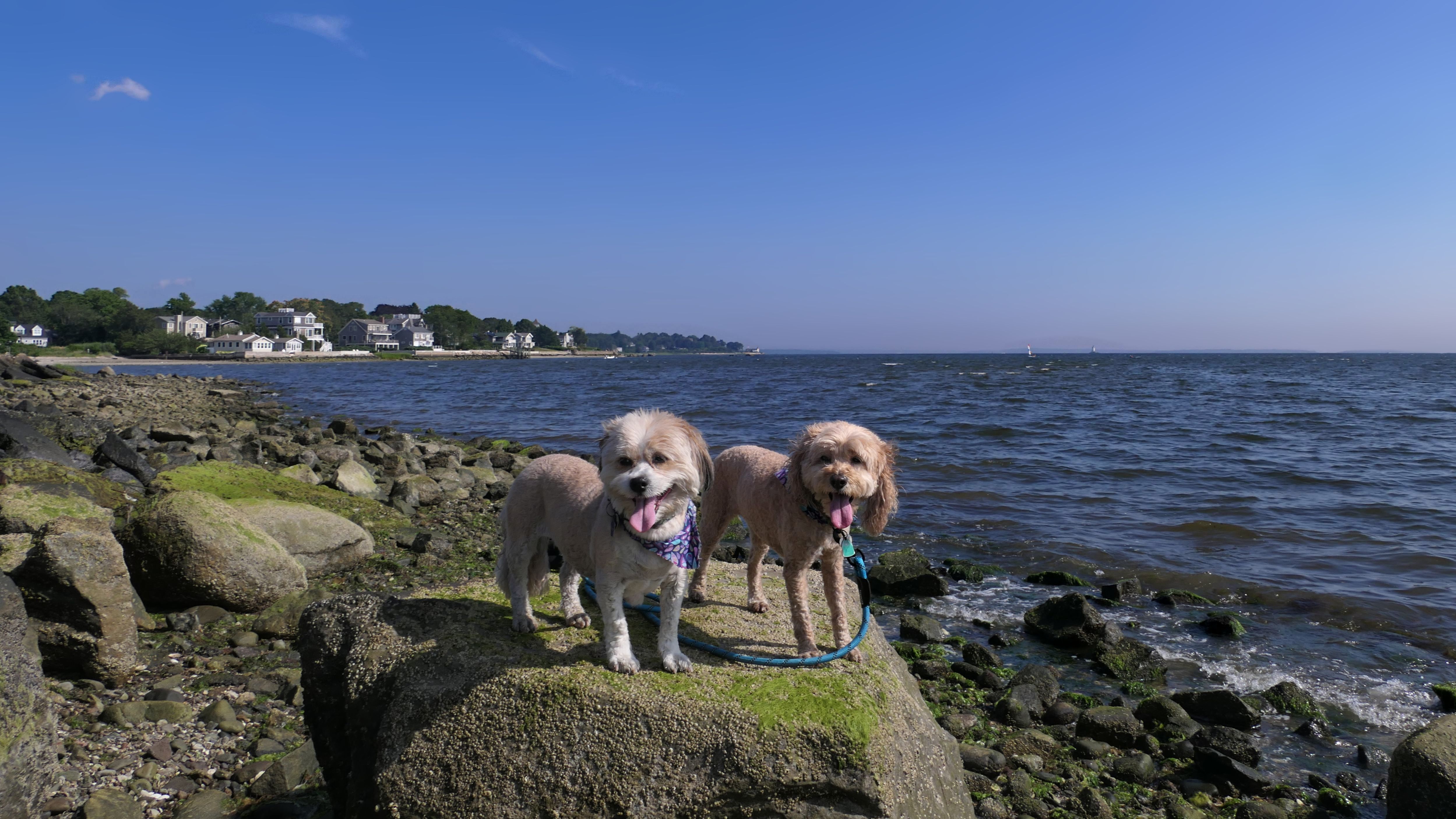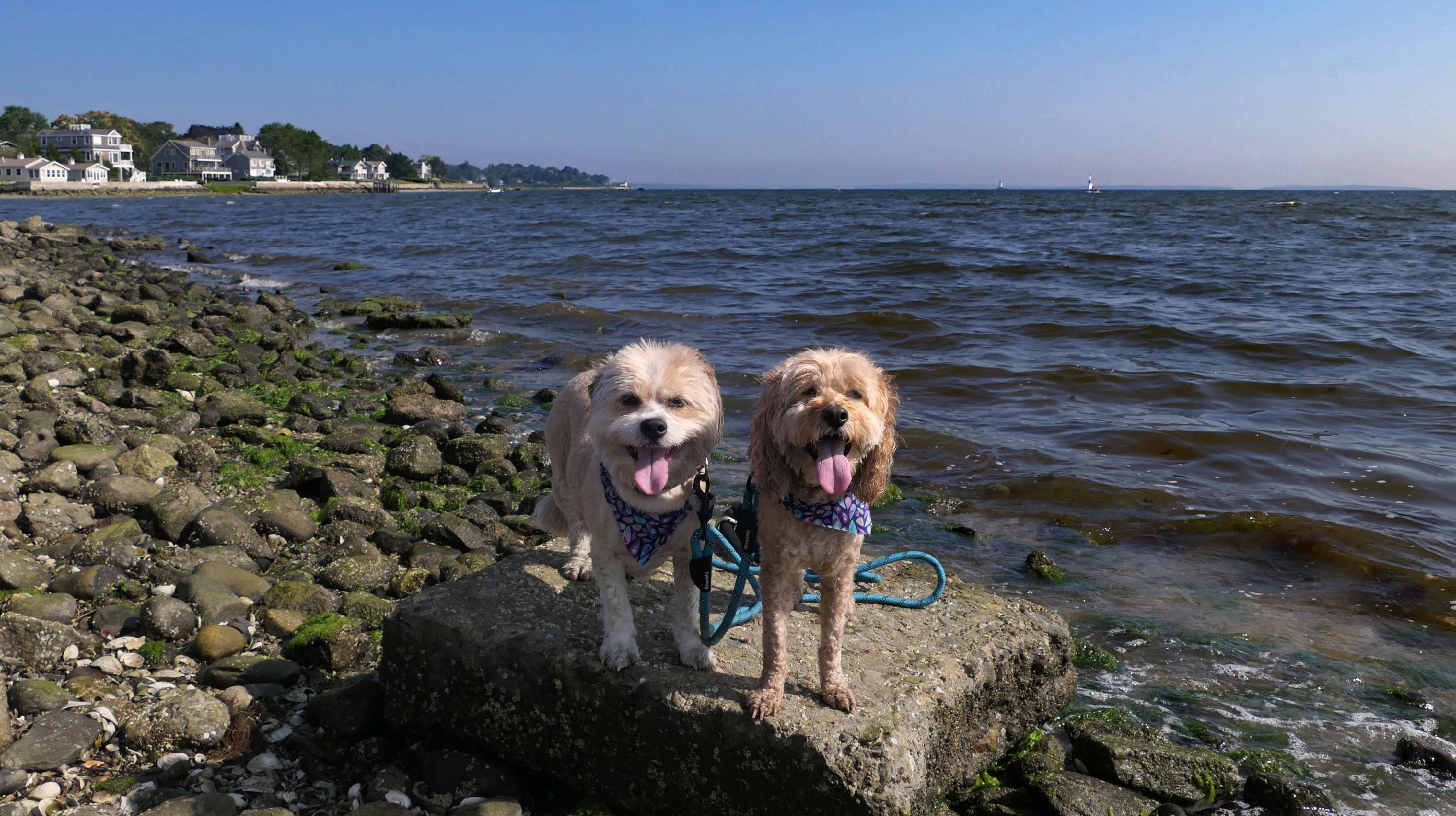 This is a Barrington Land Trust property that can be accessed from three different public access points. There is a parking lot for about four cars, maybe five, at the corner of Appian Way and Grove Street. We took the short path at the end of Appian Way to the beach area. The beach surface is more gravel and pebble than sand. We headed south along the shore until we hit Mussachuck Creek. In order to continue, we had to pass through the creek, so I took off my shoes and socks, and the dogs just ran through it. There's another public access point on the other side of the creek (Daunis Road), with parking for two cars. We were able to continue a bit further until we reached a wider beach area. Nayatt Point Lighthouse is here, but you can't get to it since it on private property. We turned around here, and backtracked the way we came. Instead of leaving via the Appian Way Access Point, we continued north. The beach is narrow here, with a rock wall protecting the adjacent properties. We eventually reached a wider beach area and an access point at Annawamscutt Road. From here, we walked via Annawamscutt Road and Appian Way back to the car. The entire adventure was just over three miles, on a beautiful, but a bit chilly autumn afternoon.