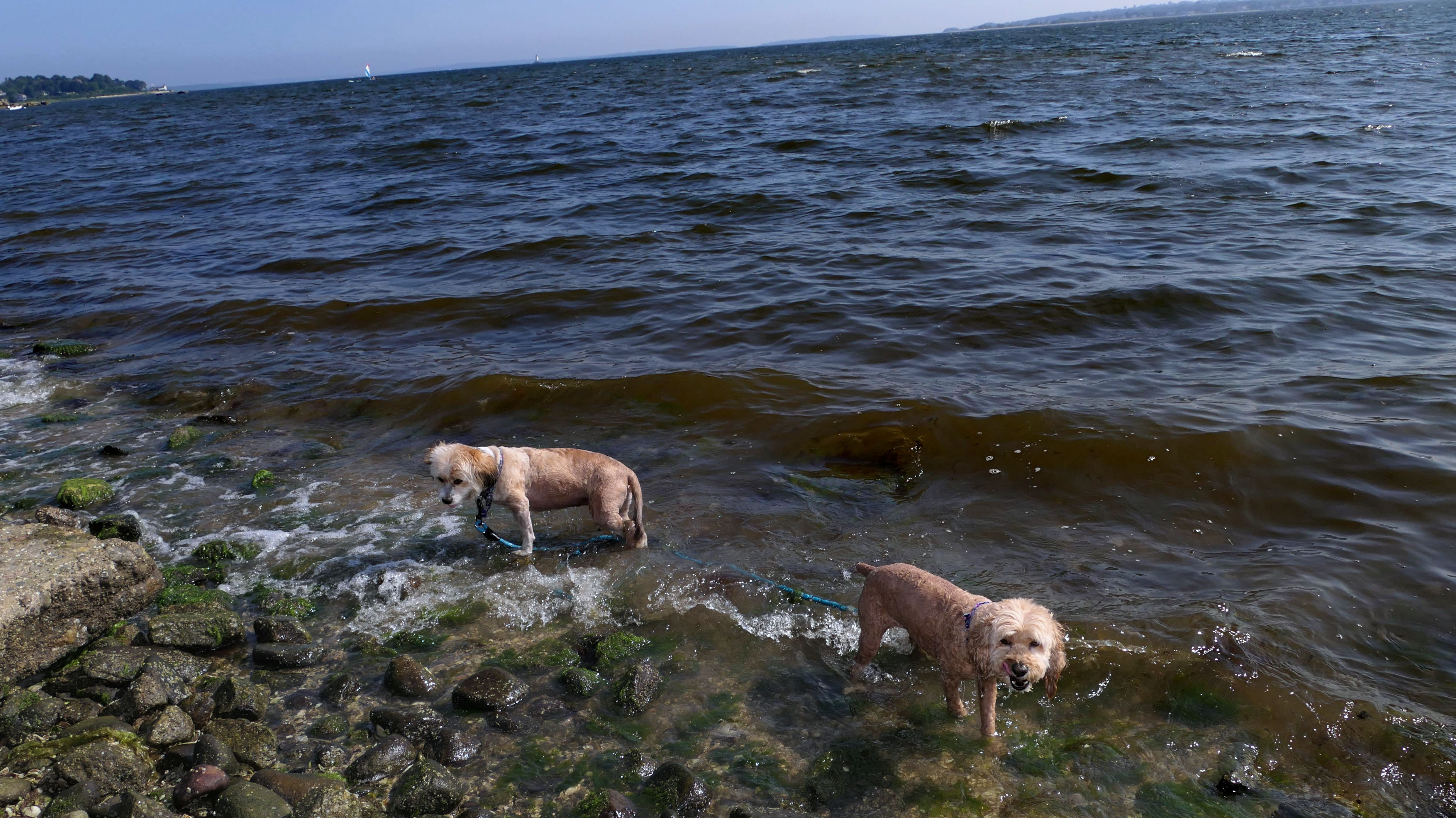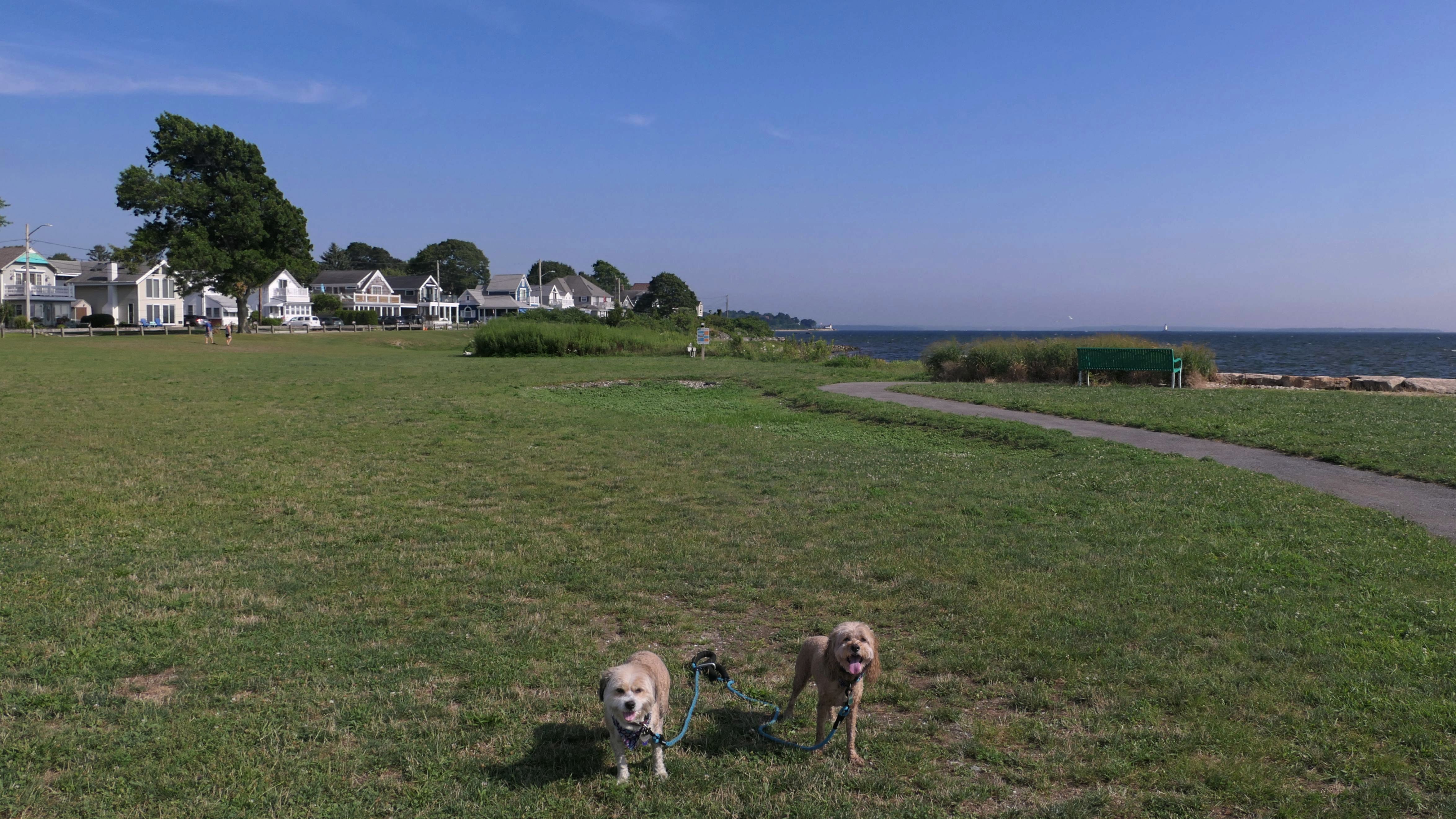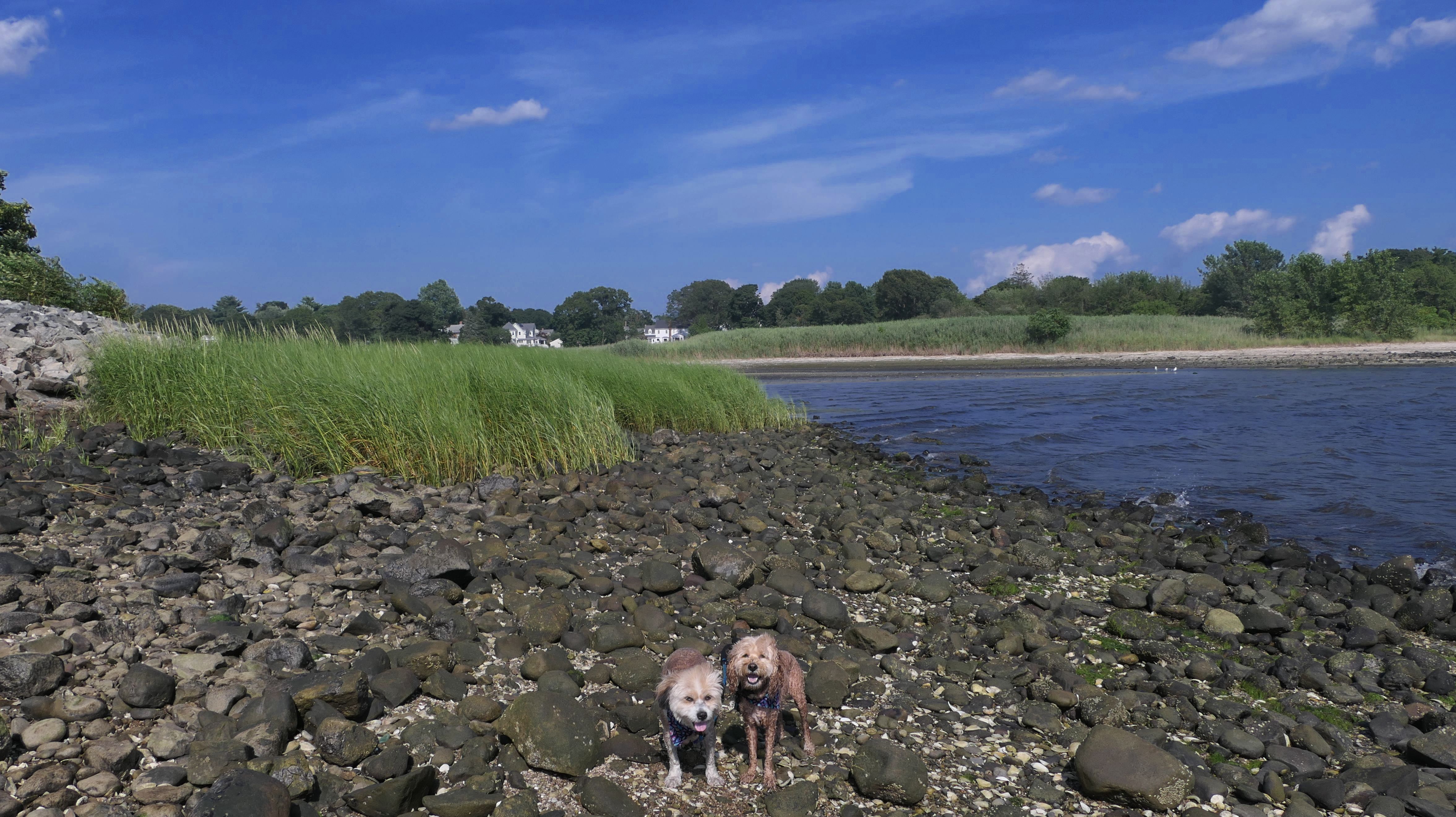 It's surprising that we didn't find this spot earlier. It's a nice place to take the dogs in the summer time. There's a small grassy park area with a playground, along with a short walking trail near the waterfront. We also walked along the shoreline, all the way to Drown Cove, where we could see across to water to the area we visited last fall. It's a perfect walk on a hot day, because there is easy access to the water for the dogs.