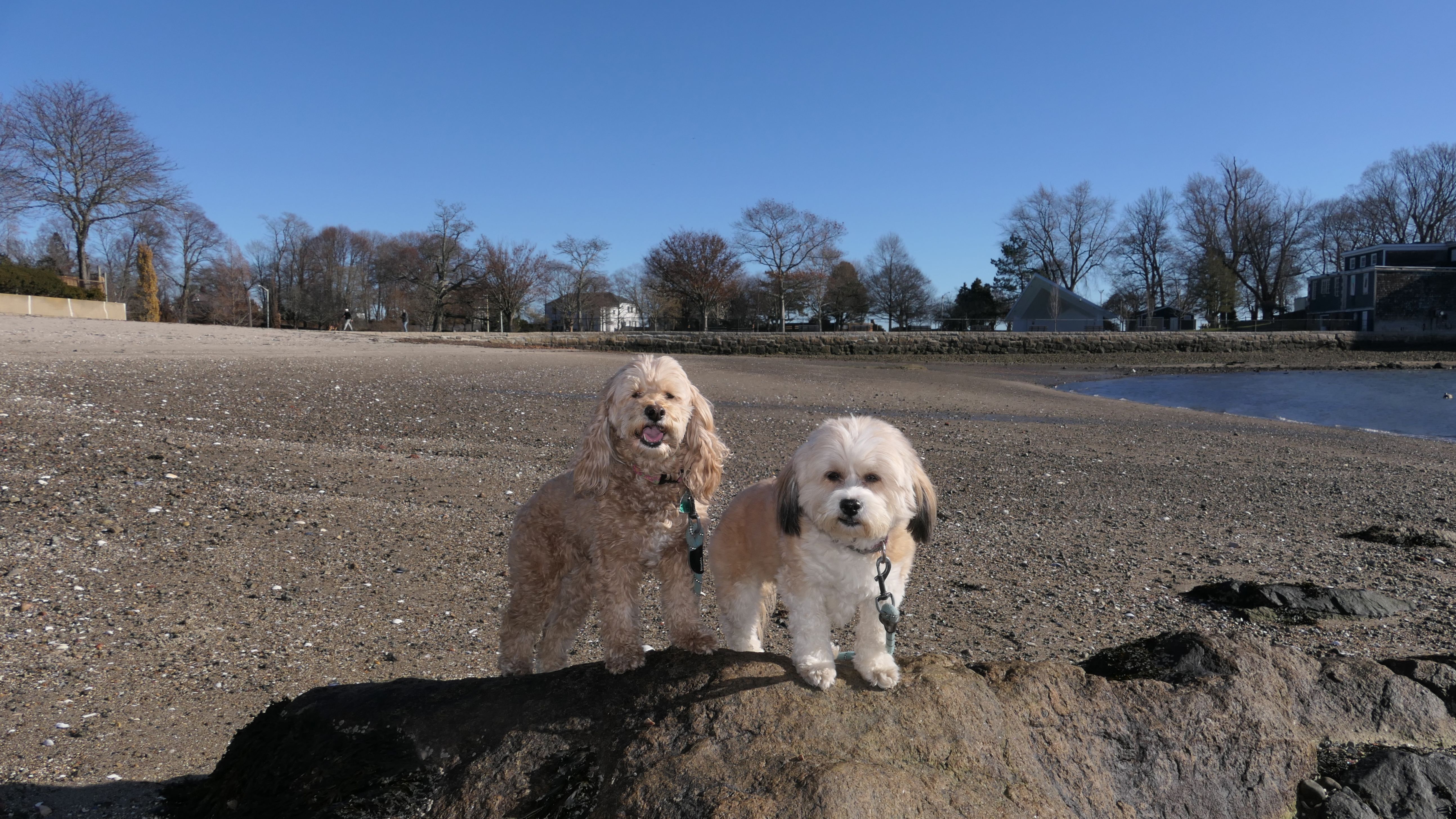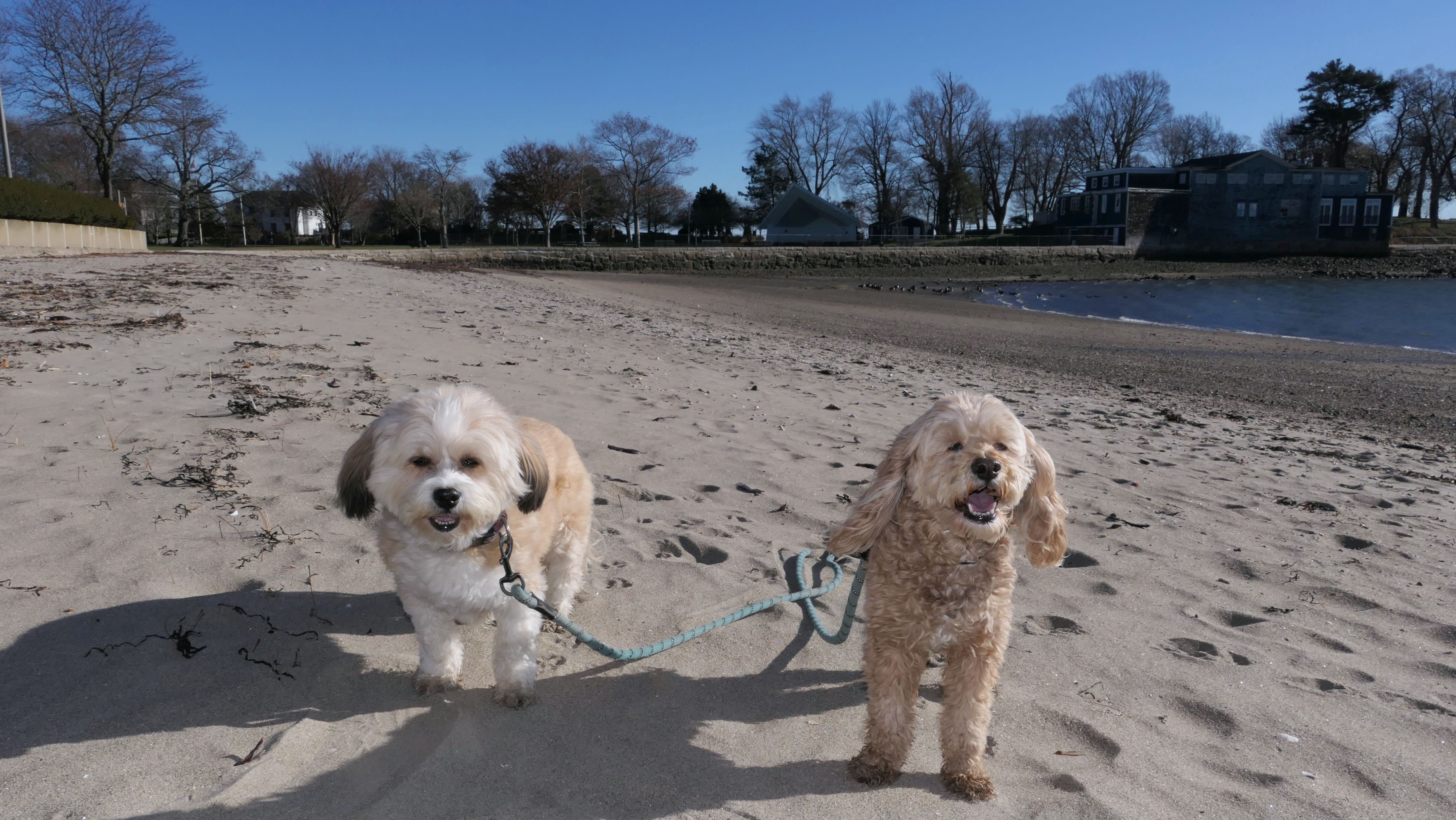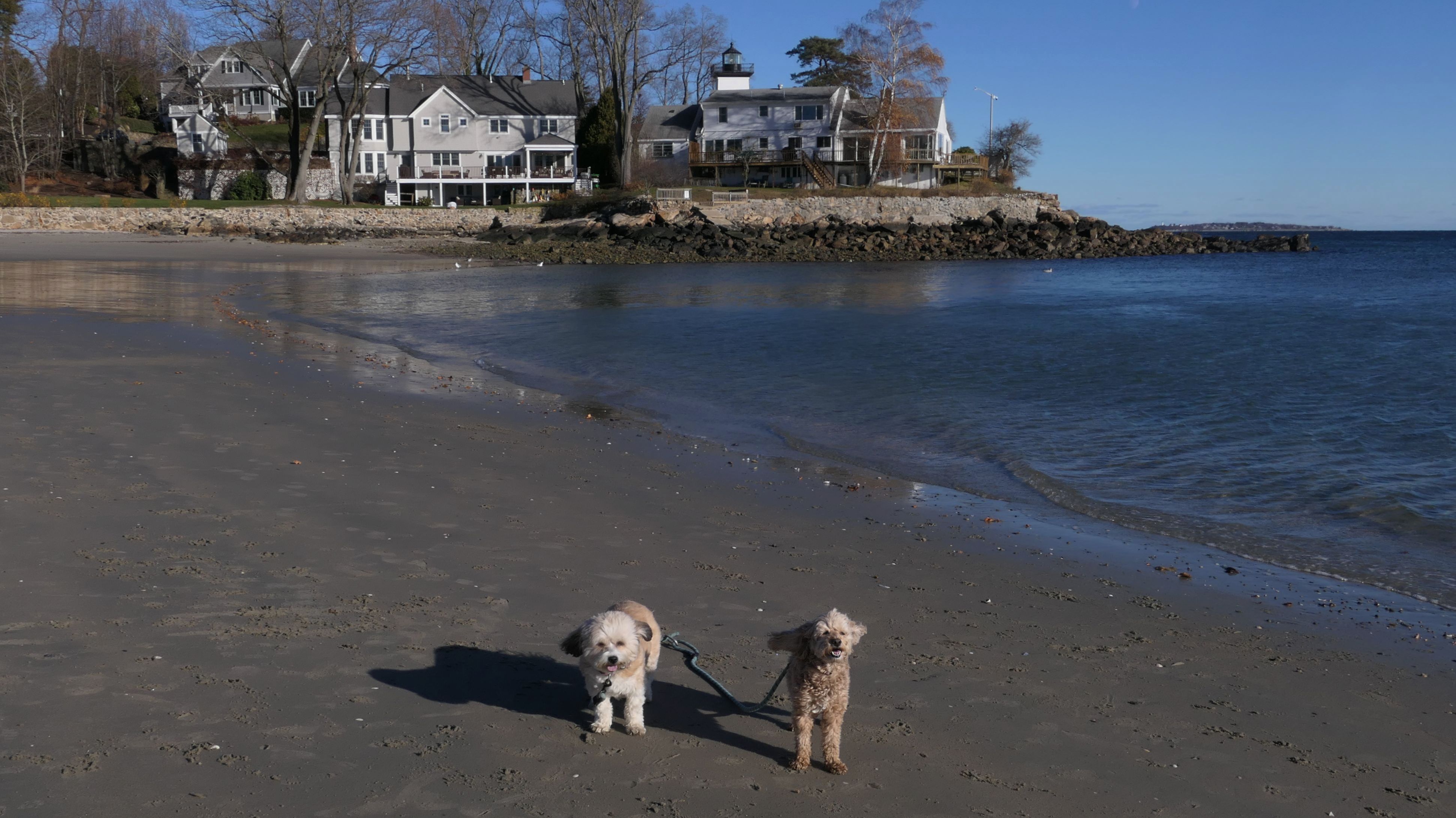 We walked here from Independence Park. There are a number of access points off Lothrop street, but not all of them go all the way down to the beach. Some end at a viewing level, with no access point to get down any further. Once we found an access point that went all the way down, we headed north along the beach until we reached the main beach area. We had to cross a rather large pile of rocks at one point. Once we reached the main beach, there were a few dogs running around off-leash, despite the sign indicating dogs must be leashed. This may be one of those "unofficial" off-leash dog areas. By the way, dogs are only allowed on the beach from the day after Labor Day to the day before Memorial (they are allowed during those times before 8AM and after 7:30PM). The beach opens out to a cove, so the waves are mild. You can look across the cove at Salem Willows Park, a place we visited earlier in the day.