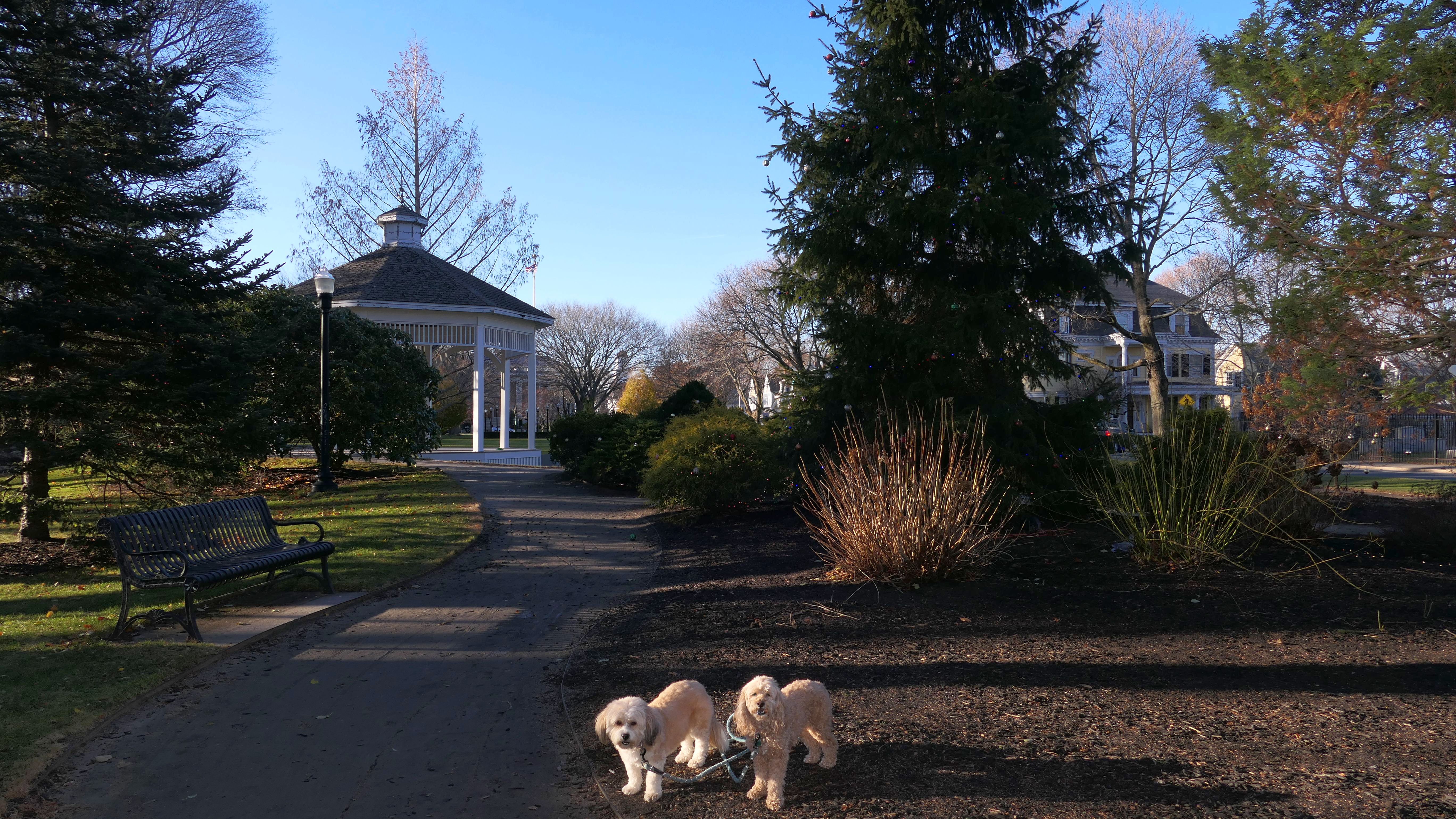 This was our last stop during our walk through Beverly Center. It's a typical town common, with a gazebo, benches and some monuments.