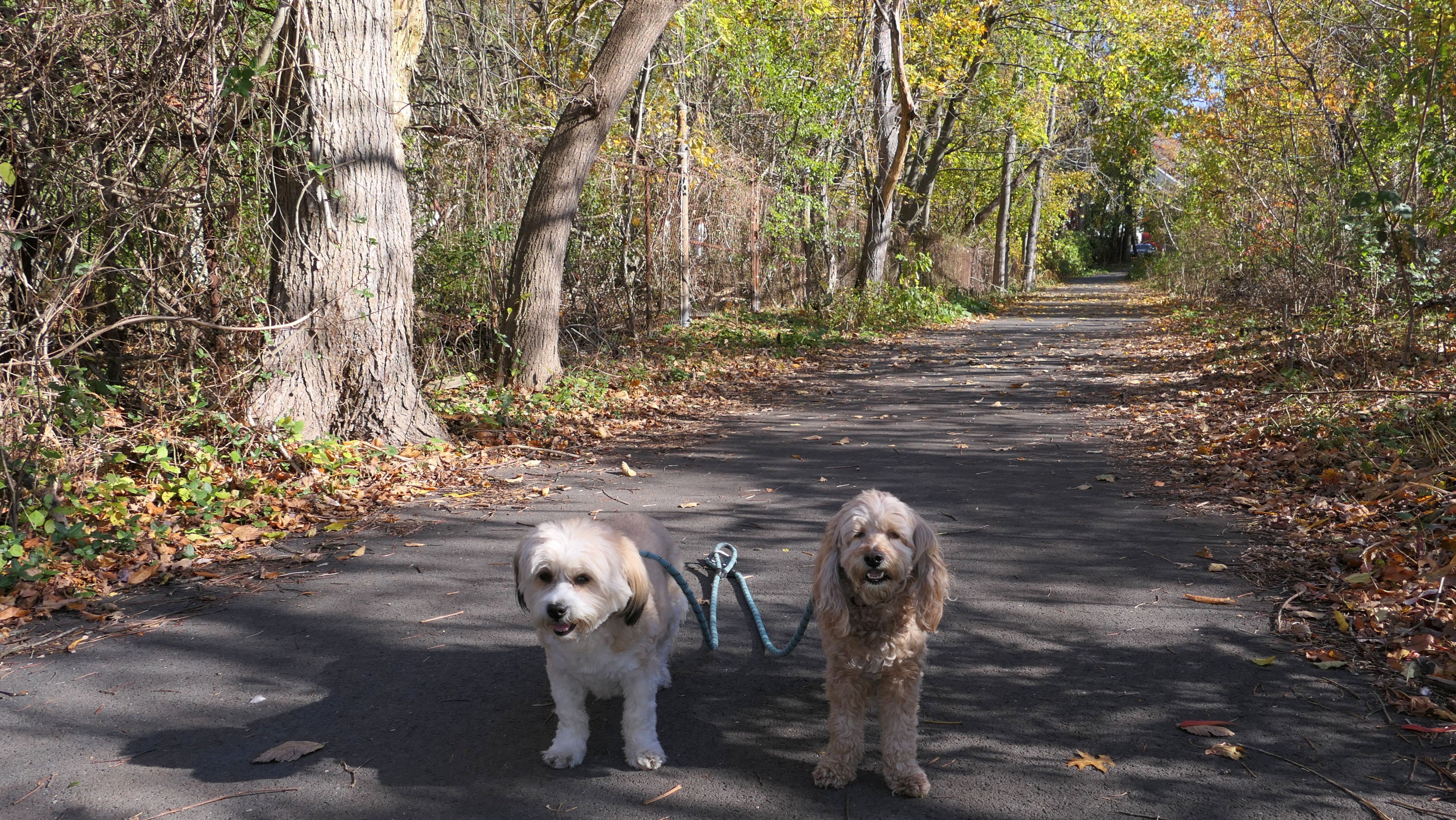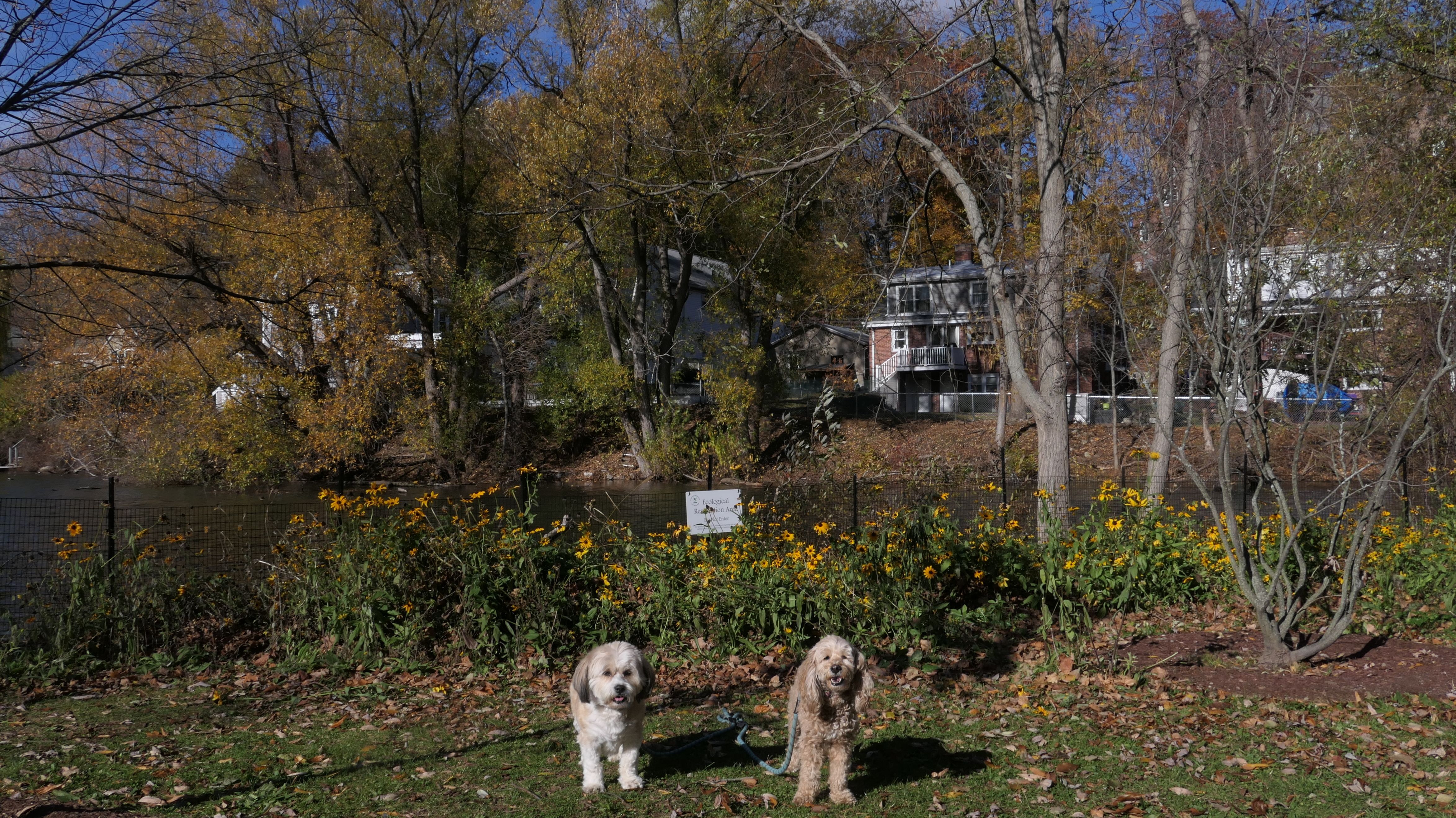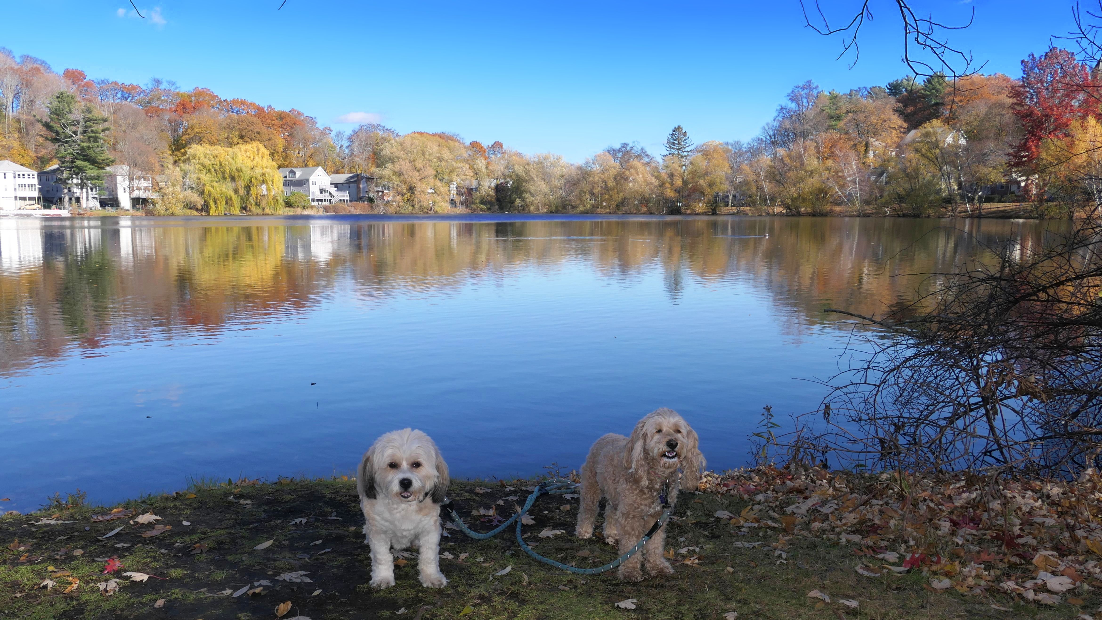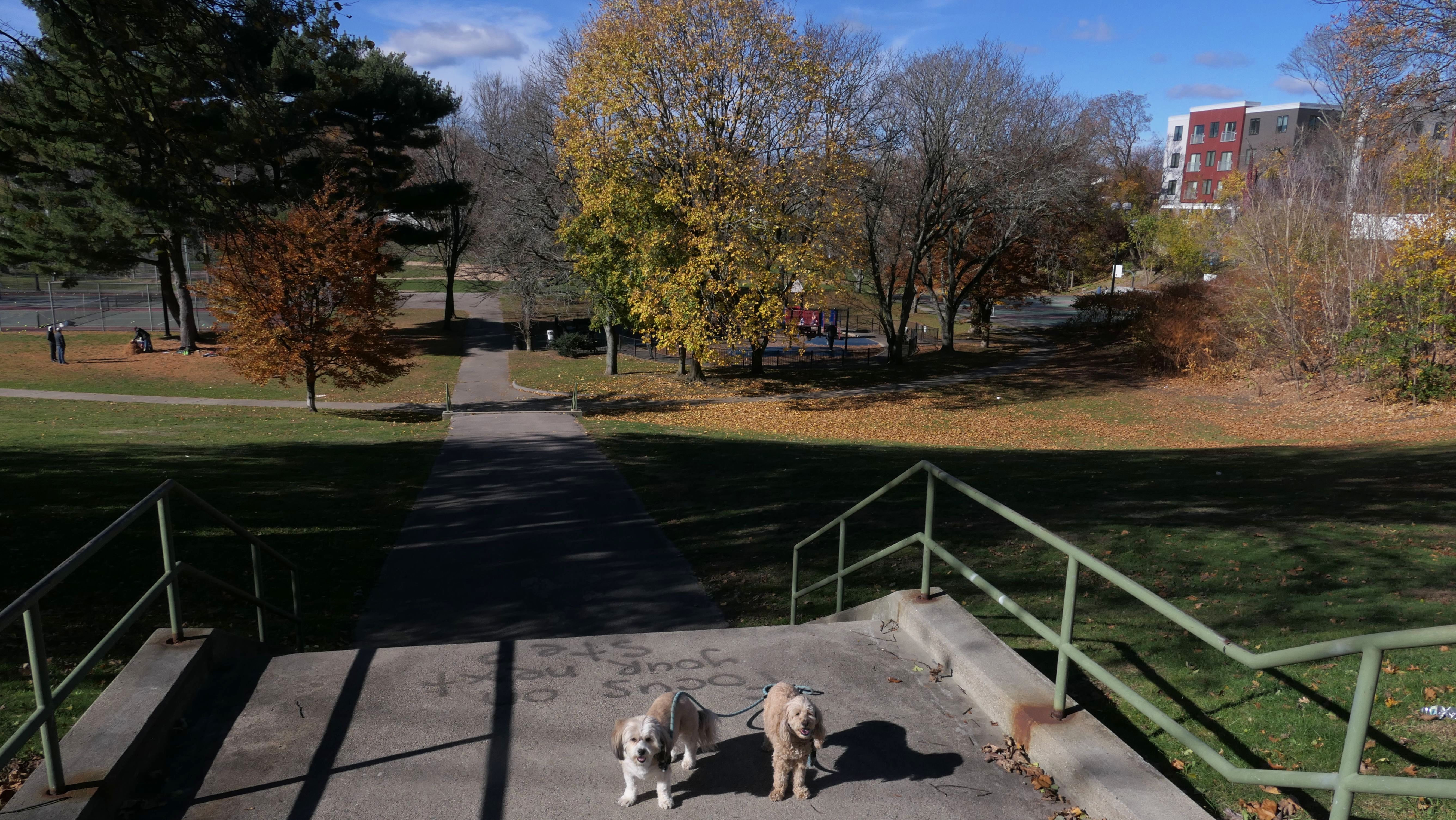 This is a park in the Jamaica Plains neighborhood. There is a walking trail around the pond, and a grassy area on the top of the hill. It connects to Olmsted Park in Boston and Brookline. We followed the All-Trails route, but modified it a bit. This was a good place to take the dogs for a walk. It was a nice day, with temps in the mid-50's. We walked about four miles total between the two parks.