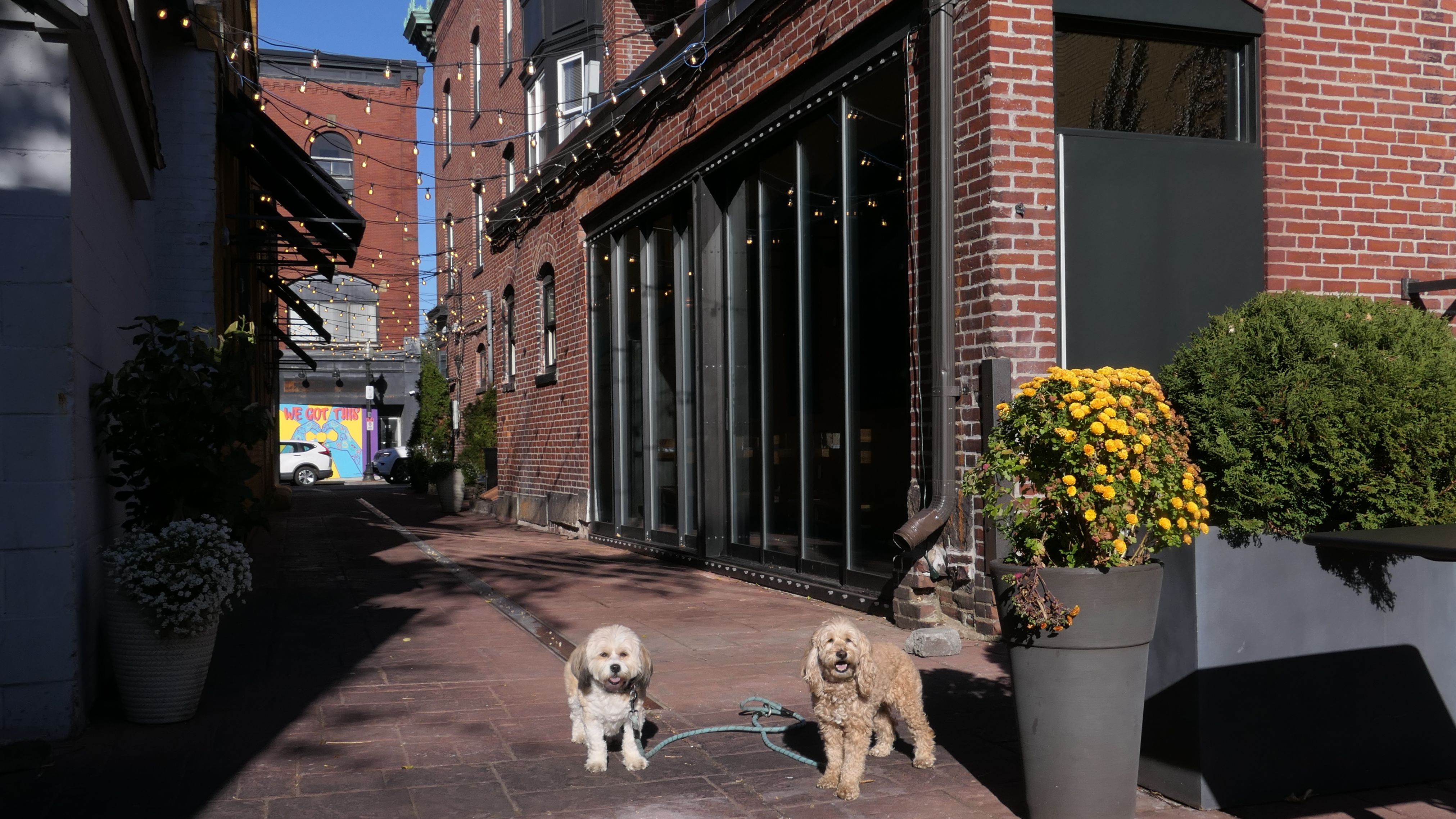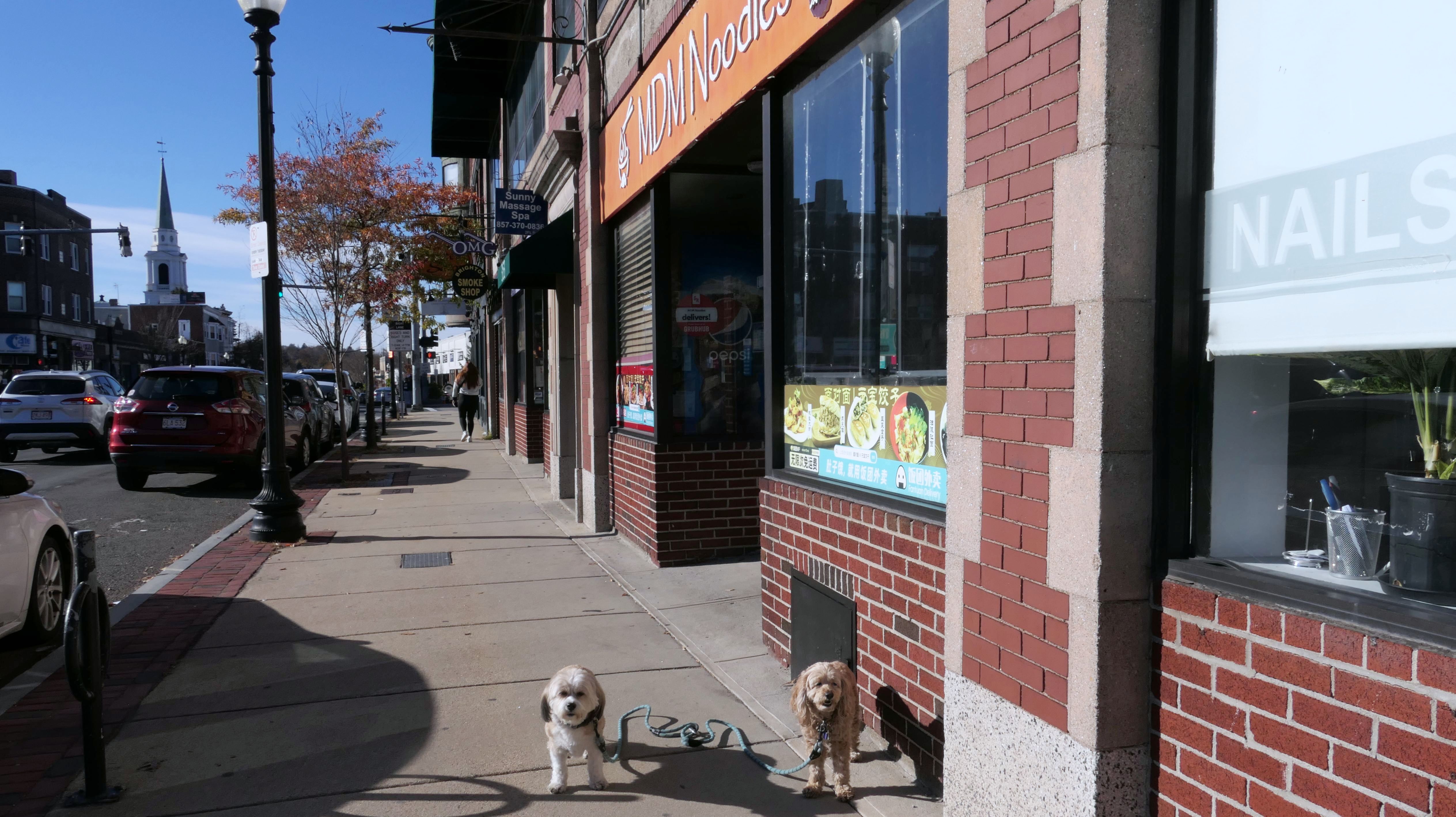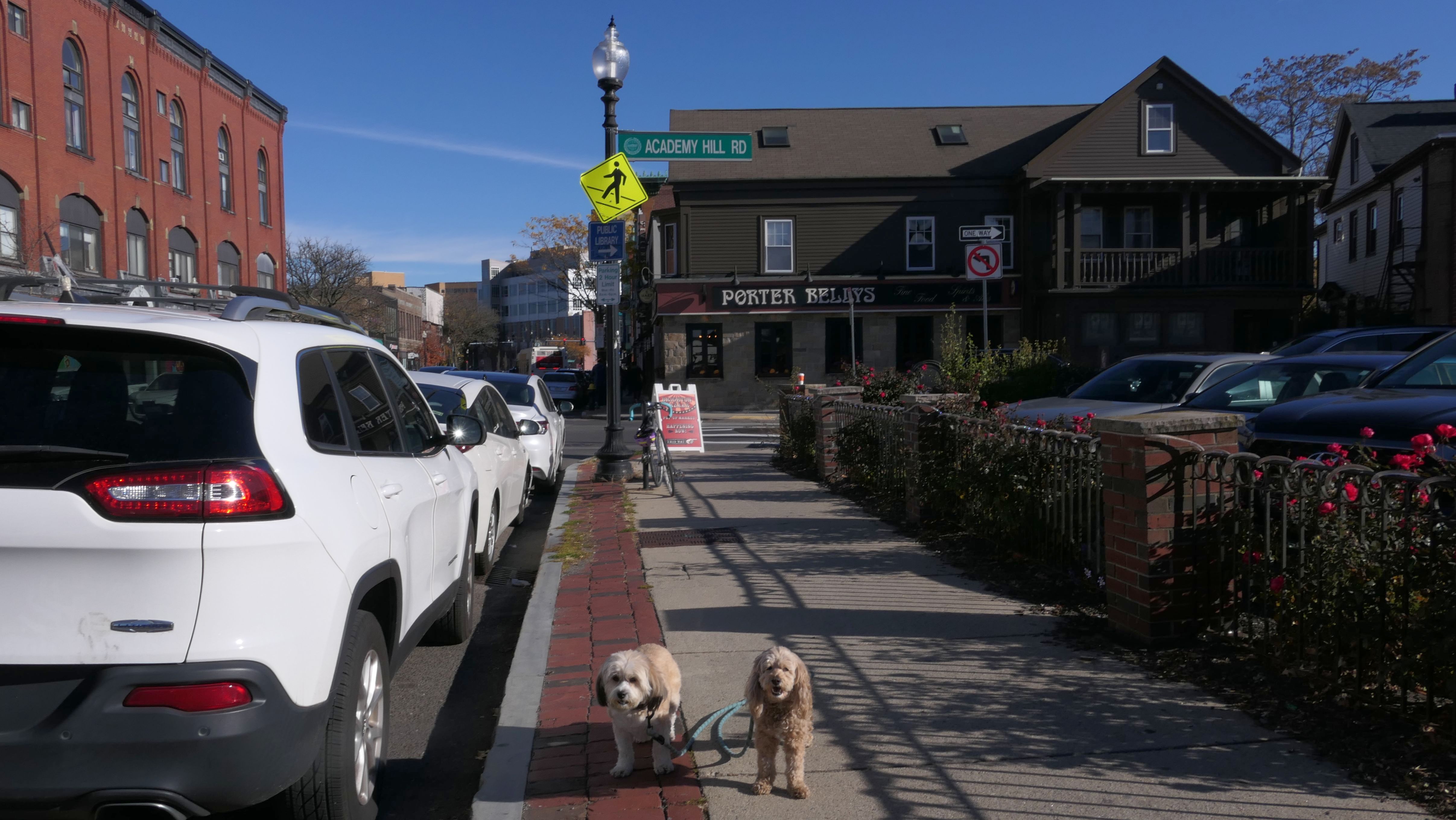 We started our walk through the Brighton neighborhood in Boston here. The event is held multiple times a year at various places around Brighton. This weekend event was at the Elks Lodge, and was the final one of the season. It's basically a vendor fair, with some vendors inside the lodge, as well as more vendors and food trucks set up outside. The bazaar is dog-friendly. My wife stayed here while I took Mandy and Lexi on a five mile walk around Brighton.