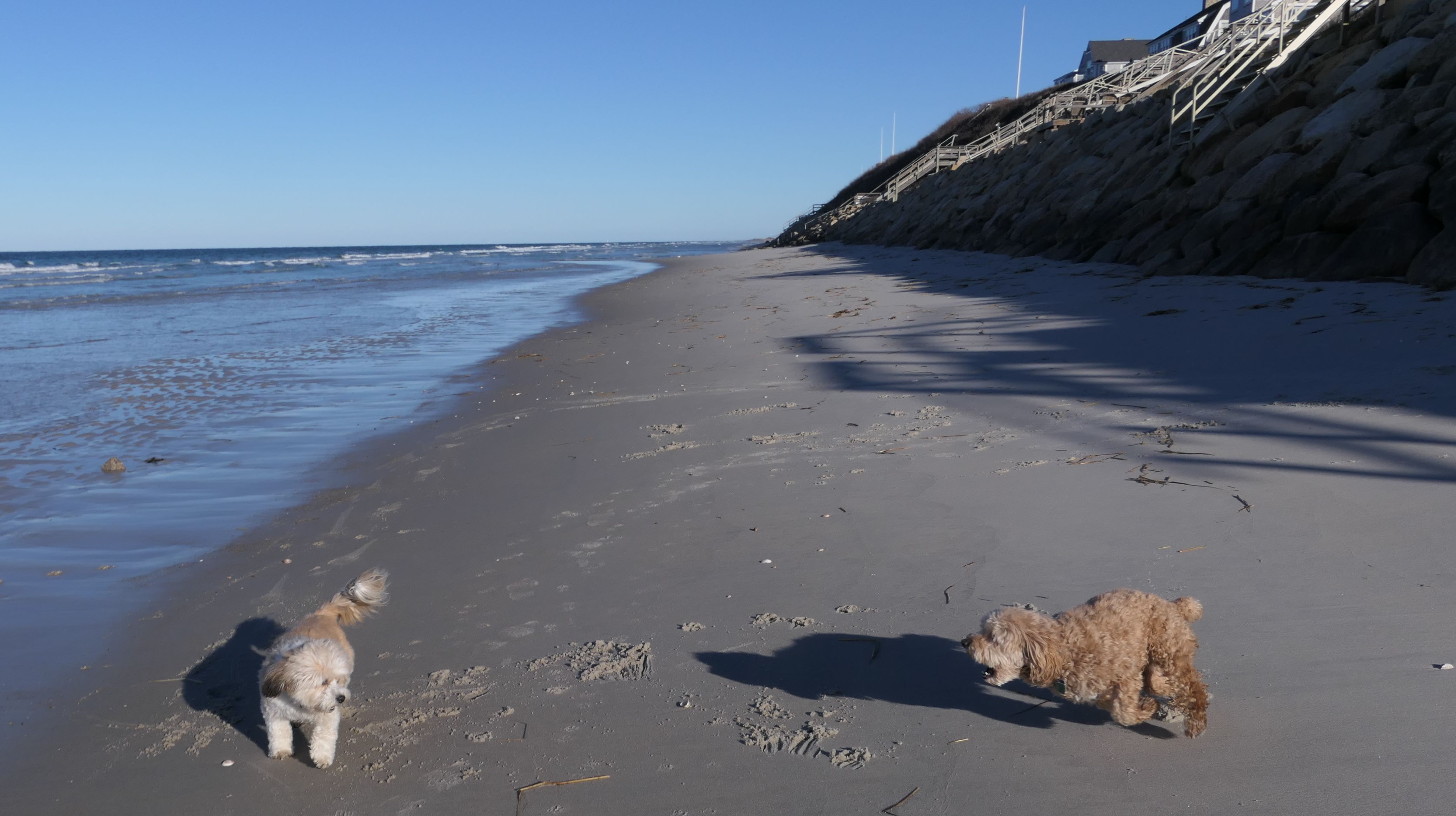 This was the first of three beaches on the Cape, in three different towns, we visited on this gorgeous late February day. Temperatures were into the mid-50's, and it felt like spring! Dogs are allowed on Dennis town beaches from the day after Labor Day until the Thursday before Memorial Day. This beach was nicer than I expected, easily the best of the three beaches we visited. Despite being tucked well within the bay, there were still waves, and the sand was soft with limited amounts of seaweed build up. We walked for a bit over mile, before turning around and heading back. After this, we headed to Linnell Landing Beach in Brewster, and then Red River Beach in Harwich.