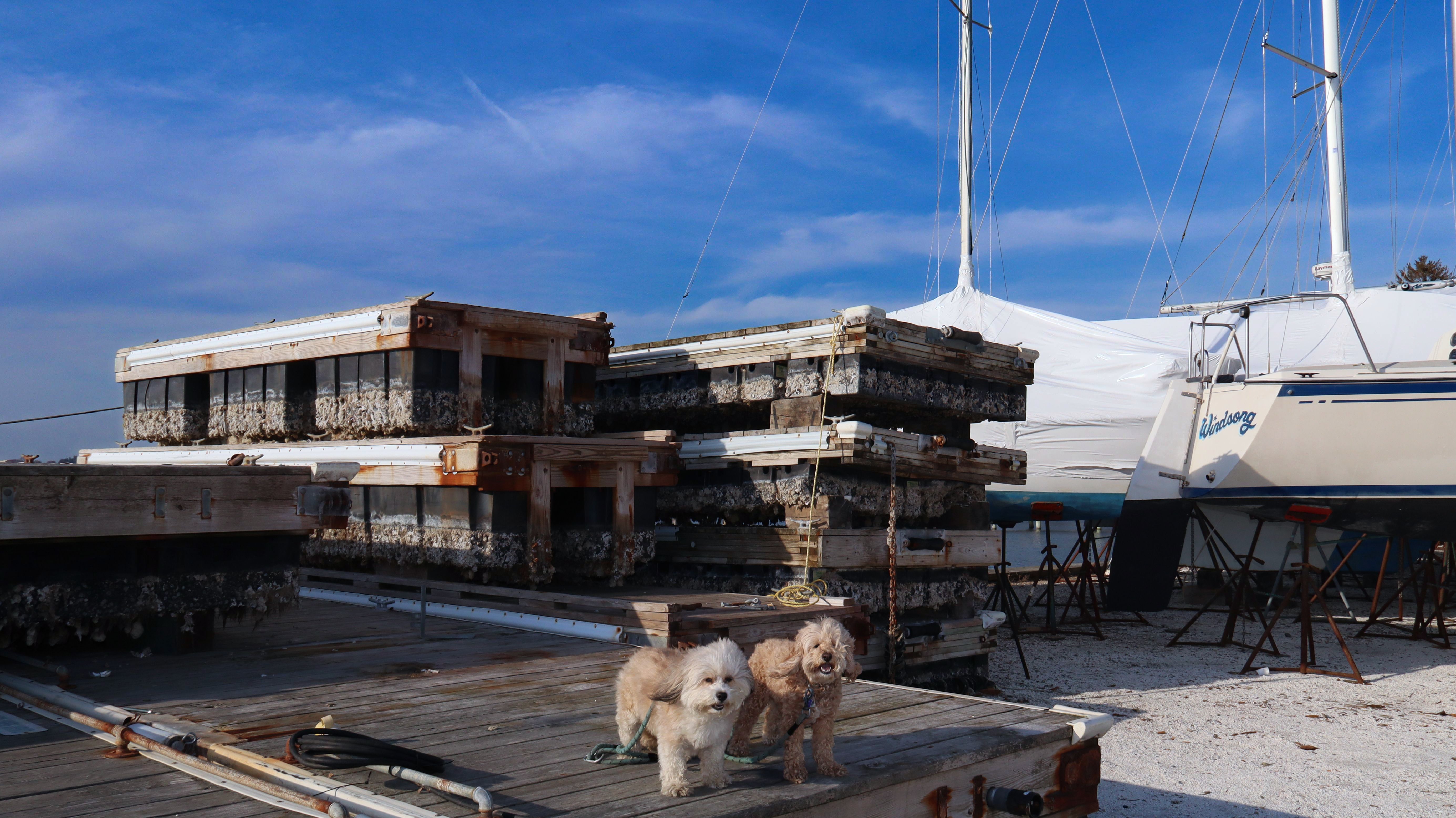 This beach is located on the northeast tip of Jamestown, with views of Prudence Island. Dogs are allowed during the off-season. I believe the rules are the same as Potter's Cove (but don't blame me if they're not. I only looked at the sign real quick). Keep in mind, there are also only six parking spots. Three at the very end of the road require a town permit. It looks like non-residents can park on the three along the right side of the street. I did not see a permit only sign for those spots. According to the town's website, this was the spot of a steamboat landing for travel between Providence, Jamestown and Newport in the 1900's. The beach is a bit rocky, and the water is calm. There's a series of docks as you head north. Mandy decided to go in the water near one of the docks, despite it being November. Unforuntely, my camera broke at a previous stop, so the pictures below were taken on my iPhone. This time of year, the sun is low in the sky by 2PM, so I wasn't able to get the pictures I wanted because of the shadows and the lack of a decent flash on the phone.