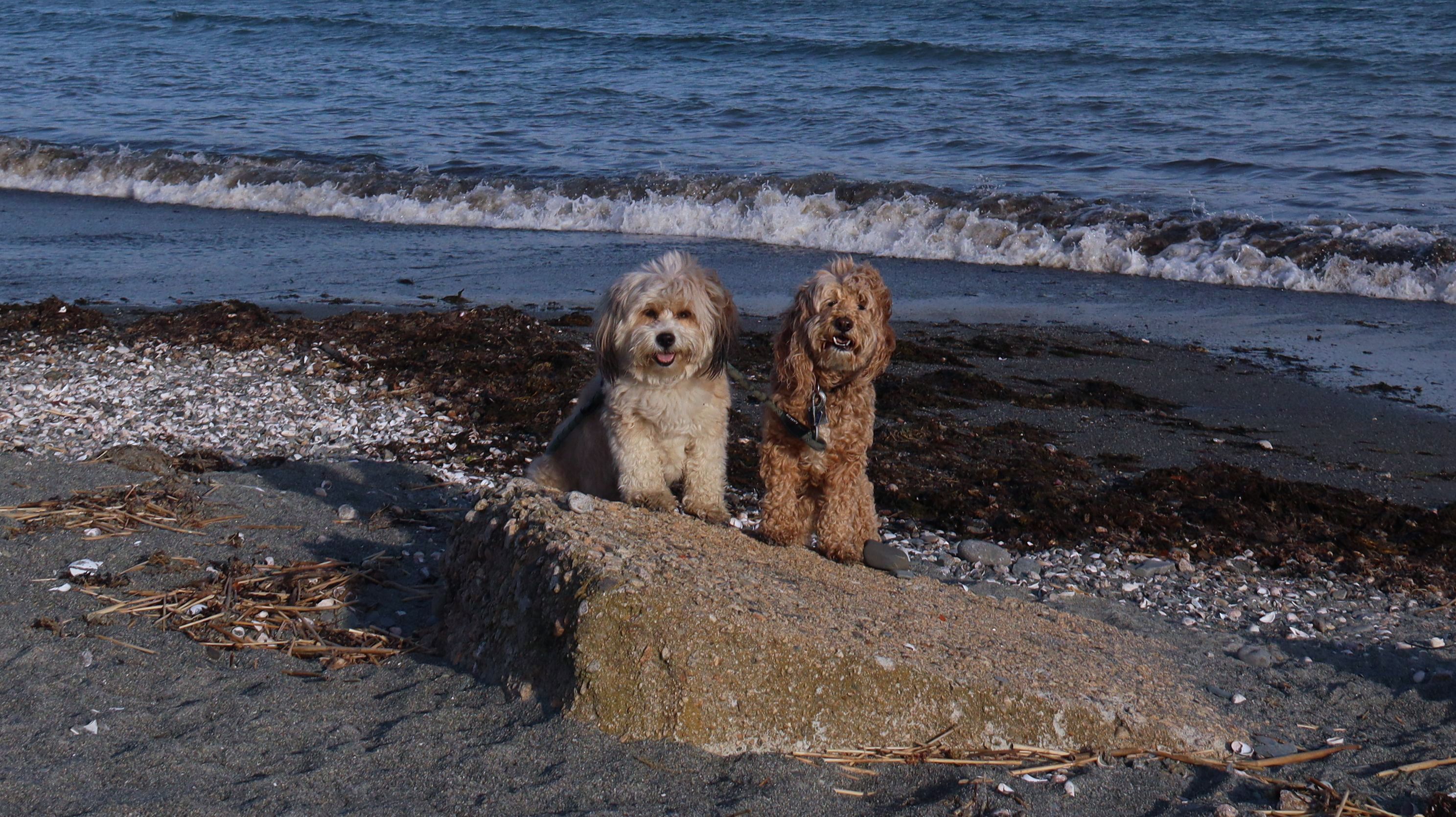 It was in the 80's inland, but only in the 50's and windy here when we arrived. We had only been to this beach once before, since we were in town we stopped here again. The waves are usually pretty calm here, but the wind was whipping up some pretty good waves on this day. Despite the cool temperatures, Mandy insisted on walking into the water, and Lexi enjoyed rolling in the sand. We walked the length of the short beach and back before checking out Sheffield Cove, on the other side of the road. There's only a thin strip of rocks on that side. The clouds started to roll in, so we headed back to the inland warmth after that.