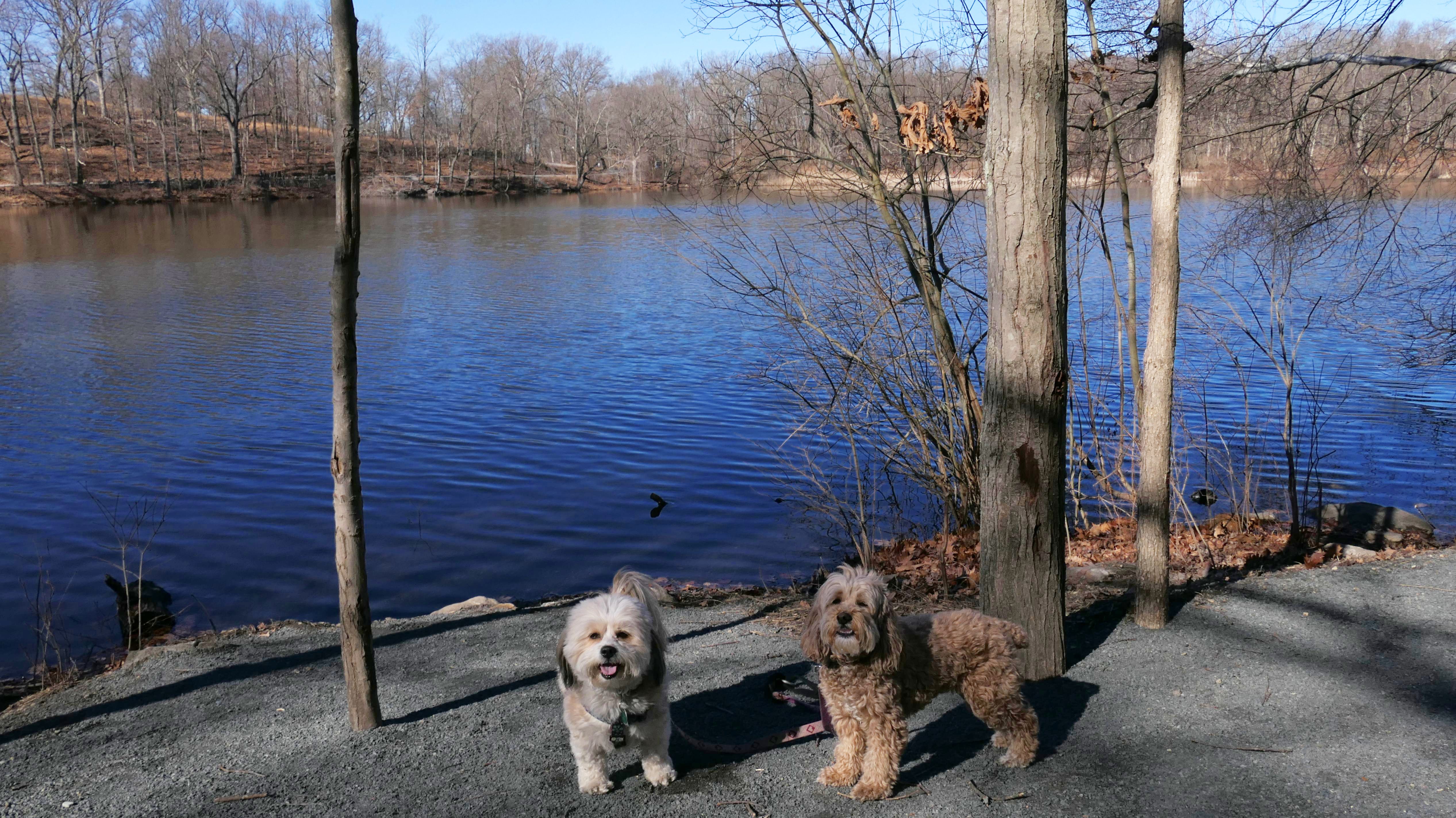 We hadn't been on an adventure in six days. Our wonderful February weather this year finally took a turn of the worse, and it was rainy and cold all week. It was warmer and sunnier in Westchester County New York, so we headed to this place. This is a really neat park that straddles the town line between the Valhalla section of Mount Pleasant and North Castle. There is an open grass area, and a promenade of sorts, in front of the very large dam. The west side of the park features a playground, while the east side of the park includes "The Rising", a 9/11 monument that honors the victims from Westchester County. Obviously, the main feature of the park is the dam. There are stairways on both sides of the dam, so we climbed to the top. There is an old road that runs right across the top of the dam that is closed to vehicular traffic. It is now just a pedestrian walk way. There are nice views from the top of the dam. I have to admit, climbing the stairs was a good workout. The climb is over 20 flights of the stairs. The dogs didn't really seem to have much issue with the climb. We did this after walking four miles on the Bronx River Pathway, that starts at this park. Needless to say, we made up for not being able to get out of the house in six days. Below are the pictures from the Mount Pleasant section of the park. Visit the North Castle page for pictures from that section.