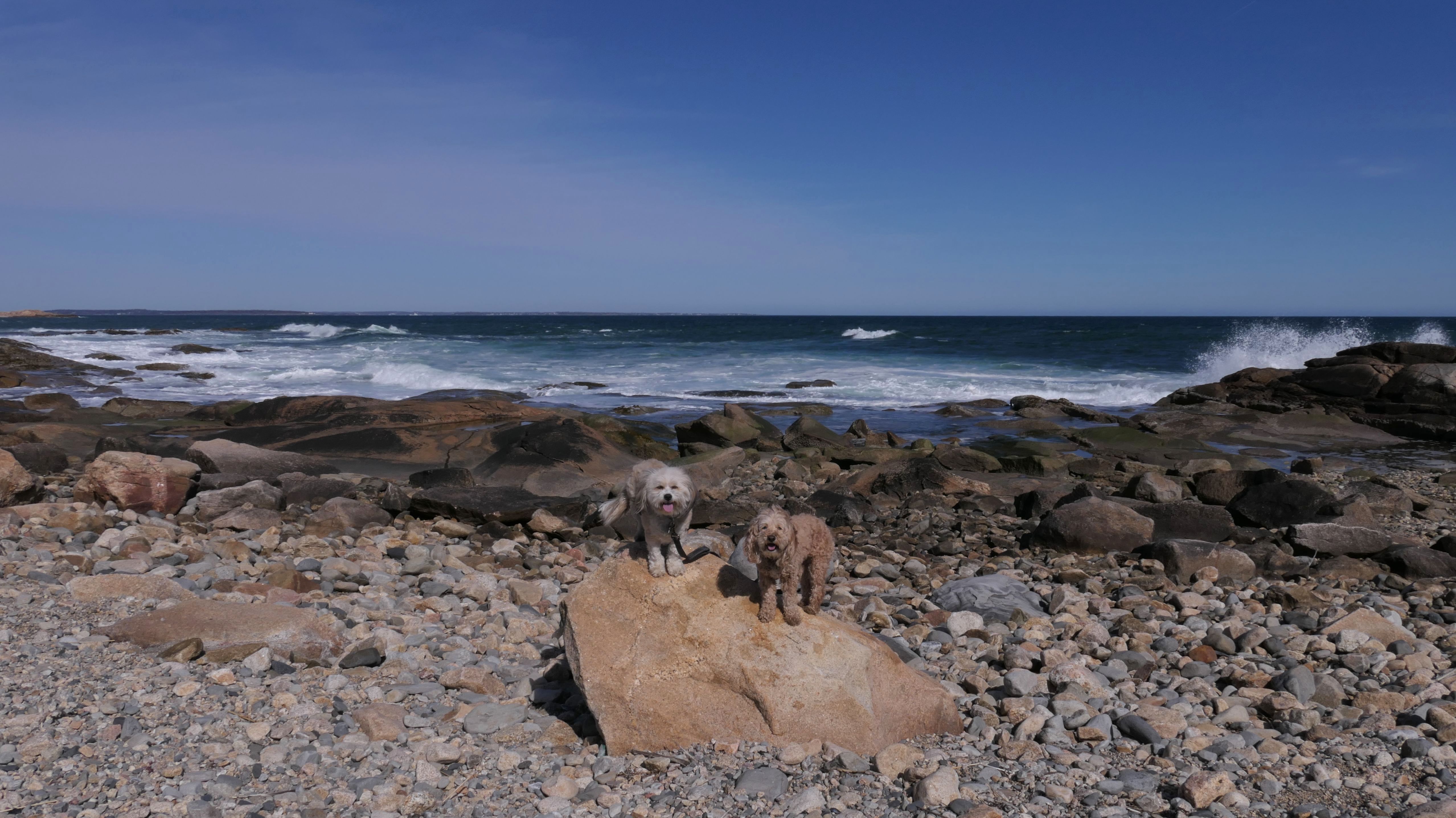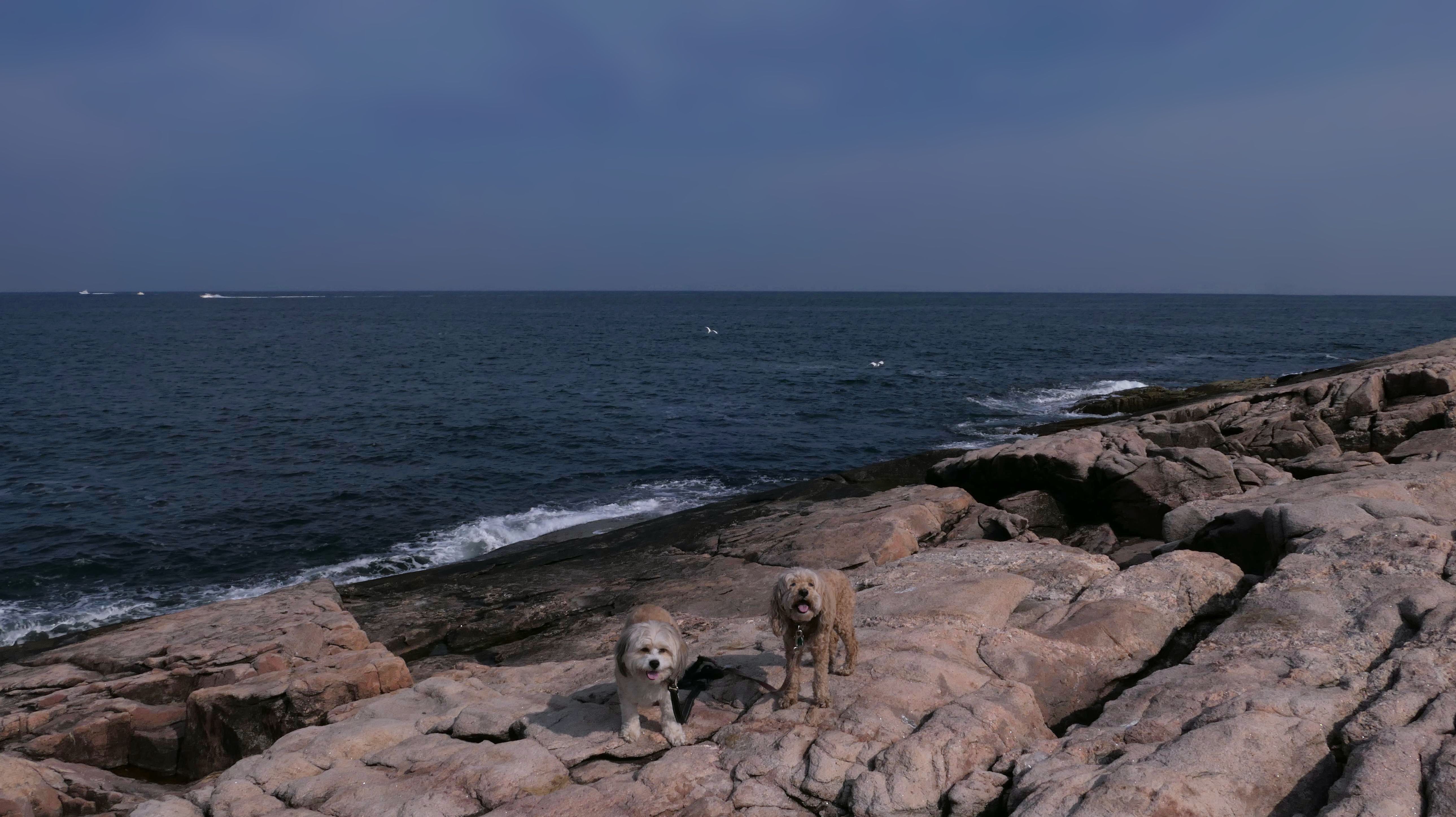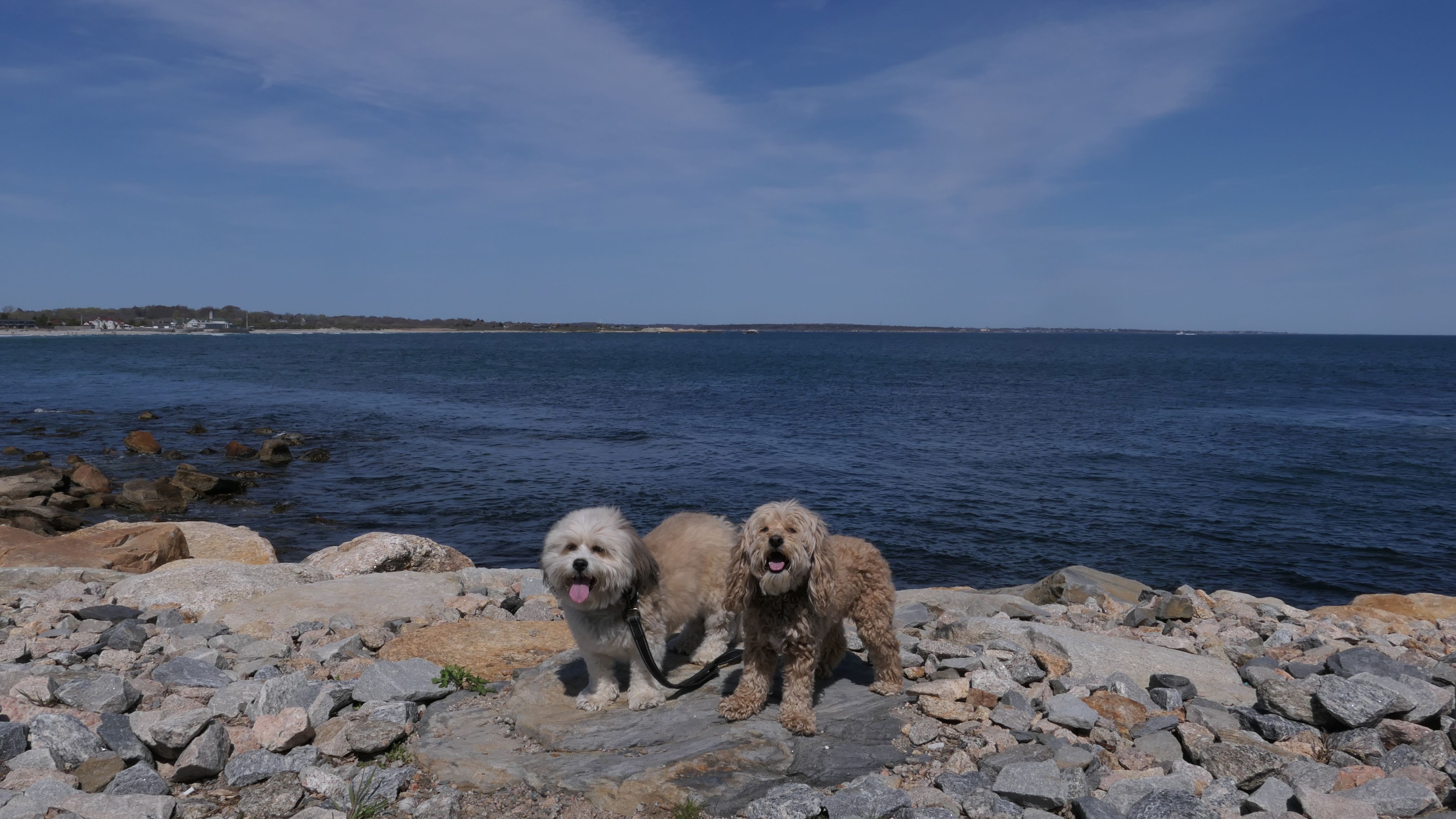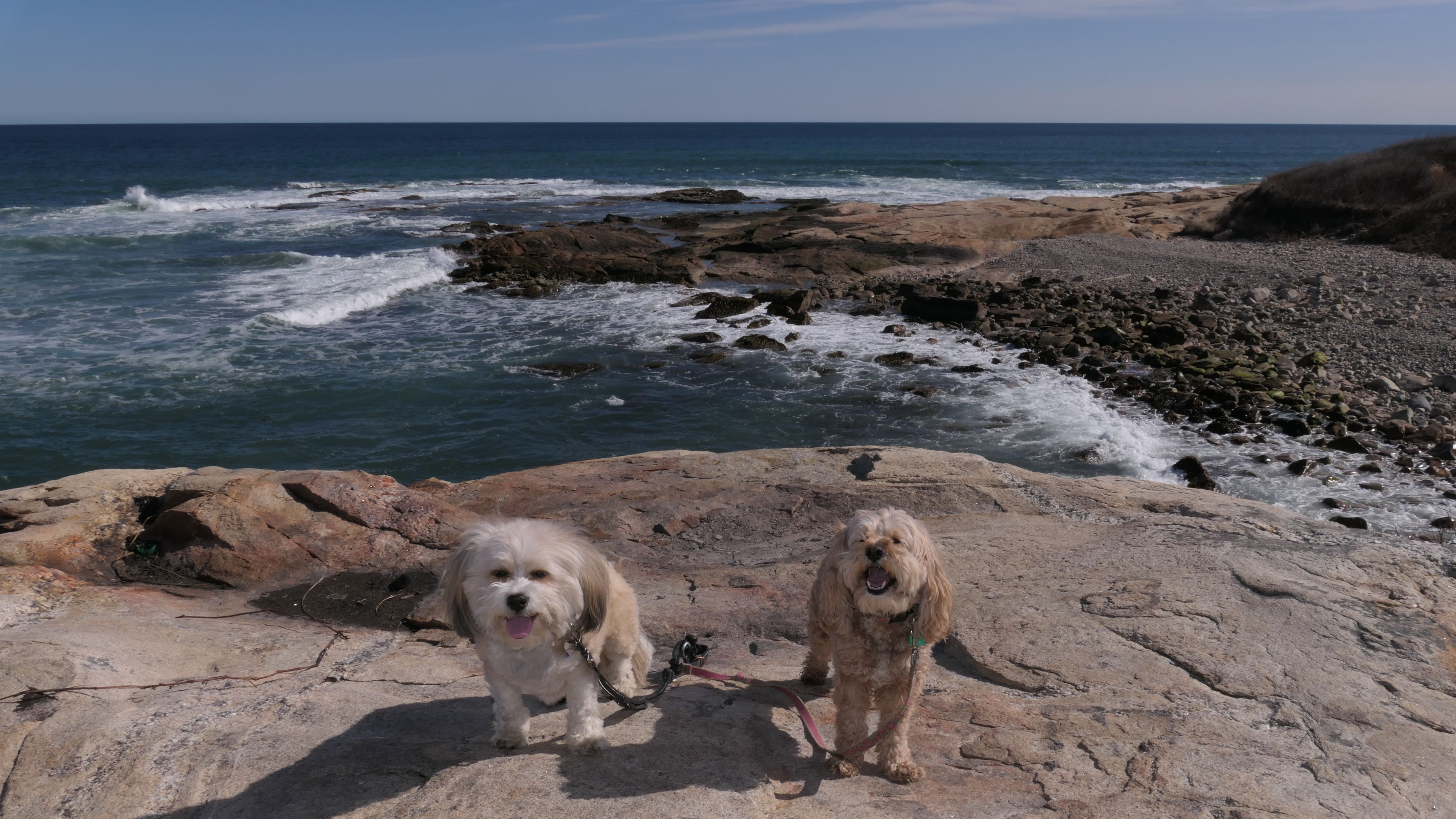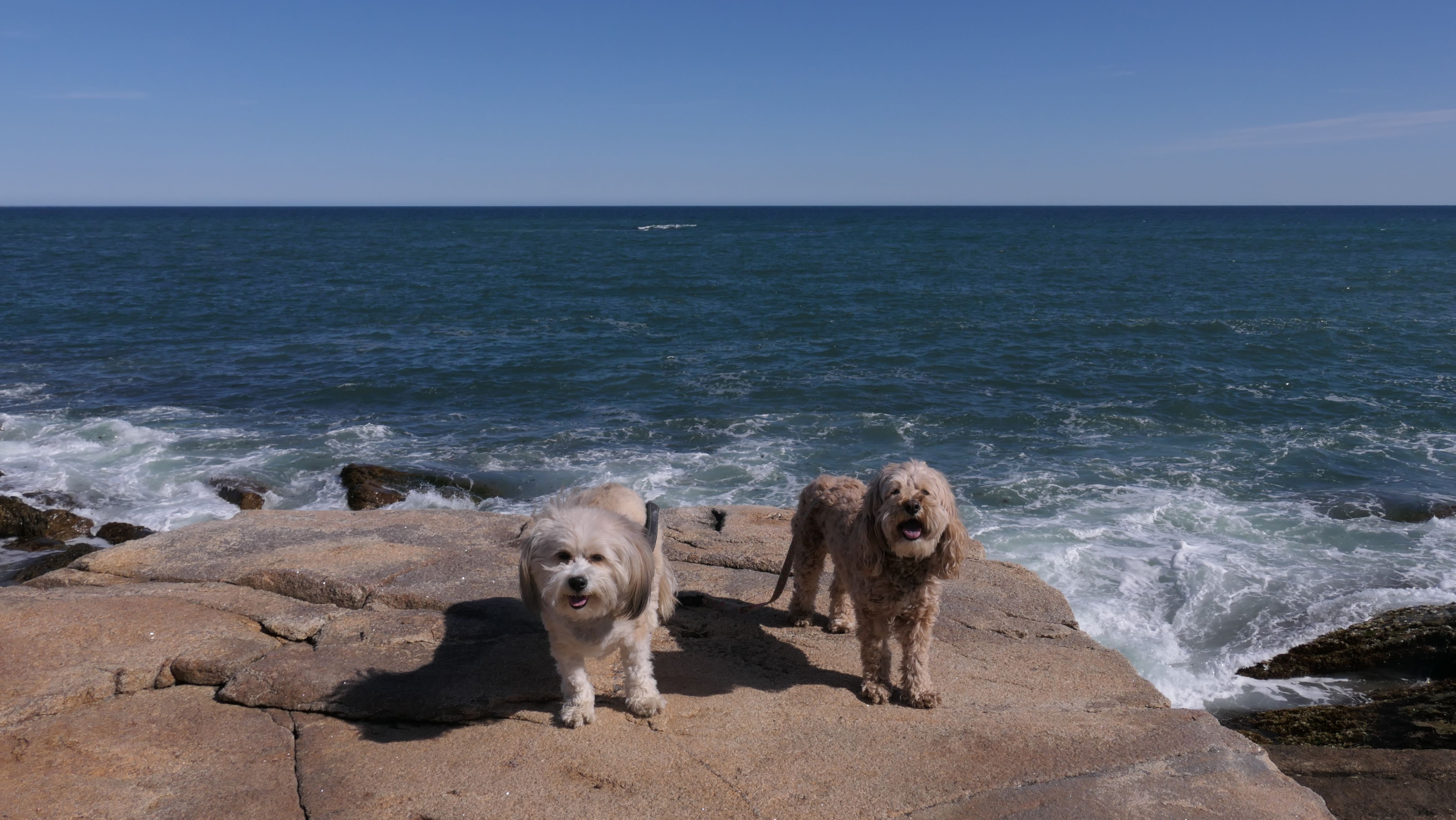 This is one of three rocky shoreline access points at the end of side streets off Ocean Road. We visited all three on the same day in 2023. We revisited the other two earlier this year, and finally revisited this one as well. We were able to explore a bit more than last time. The rocks here can be tricky to navigate. Heading north along the rocks, we turned around at the chasm separating this place from the Ocean Road Access Point we visited last December. Heading south along the rocks, we didn't make it much further than last time. The terrain is too tricky to make it all the way to the Newton Avenue Access Point. We actually covered about 1.3 miles here total, almost all of it climbing on rocks. Mandy and Lexi look pretty messy in some of the photos. They actually went into a mucky lake at our previous stop. We found a tidal pool here where they were able to clean off and cool off. This is a fun place to explore if you're up for climbing over rocks!