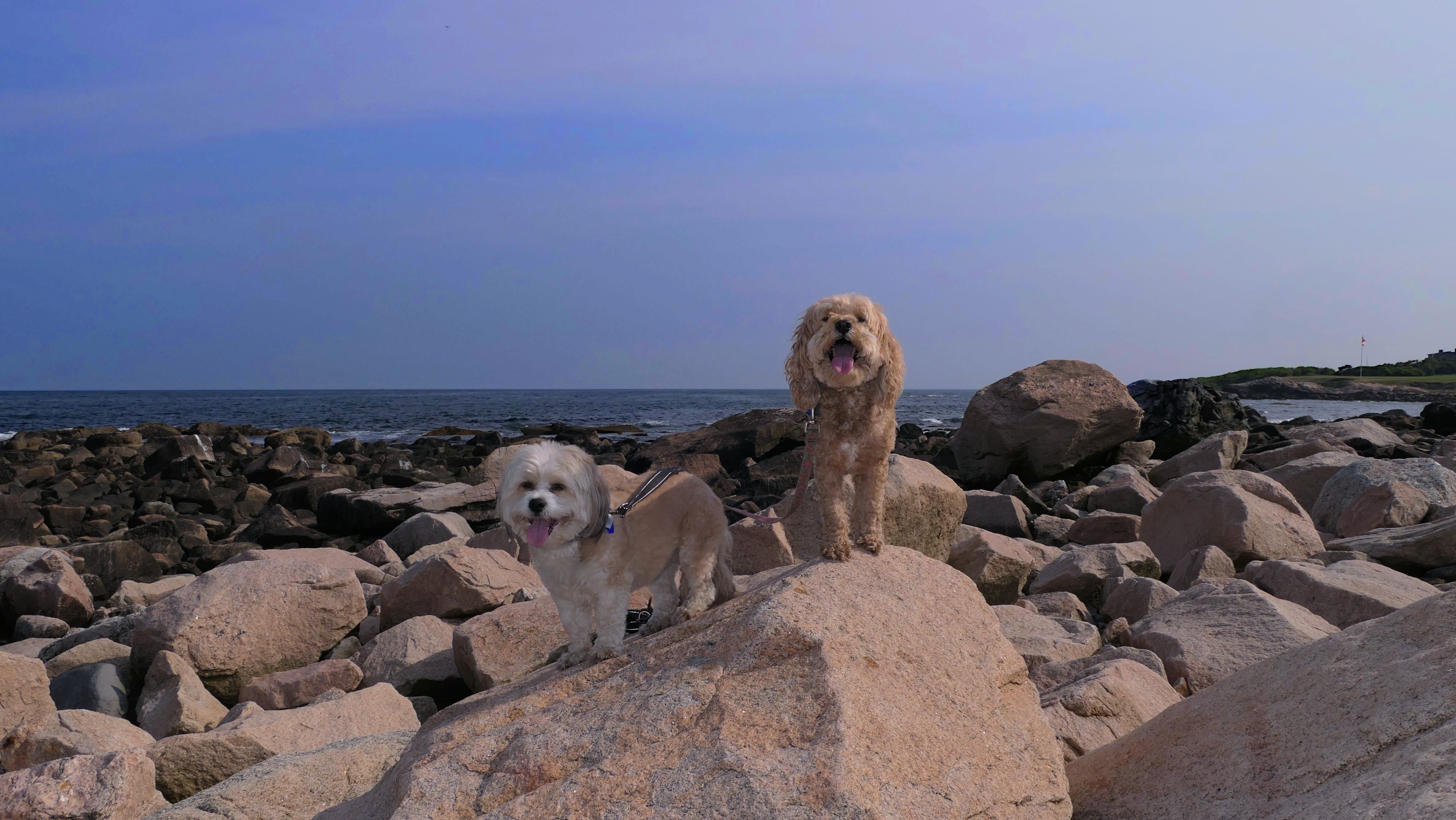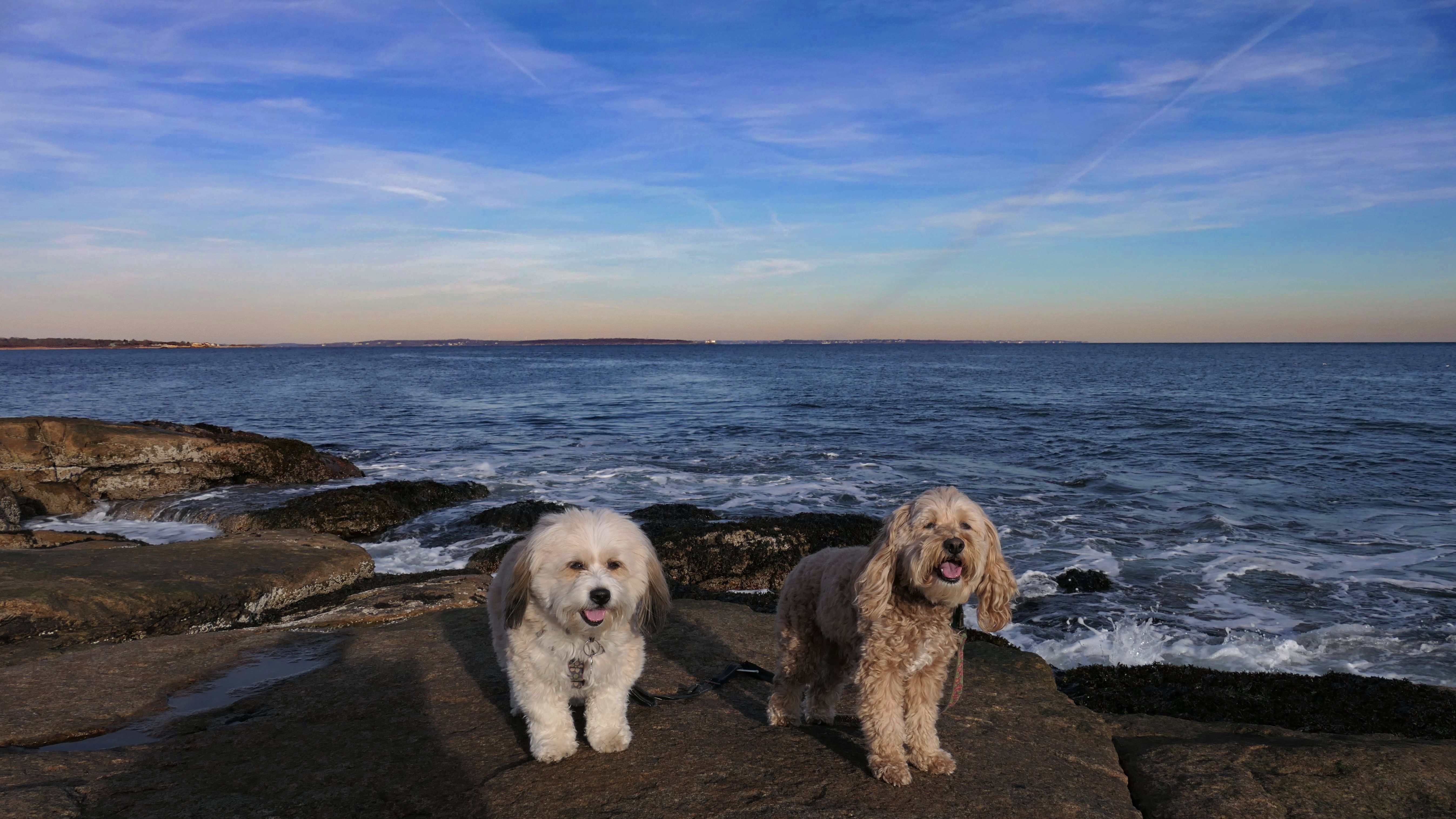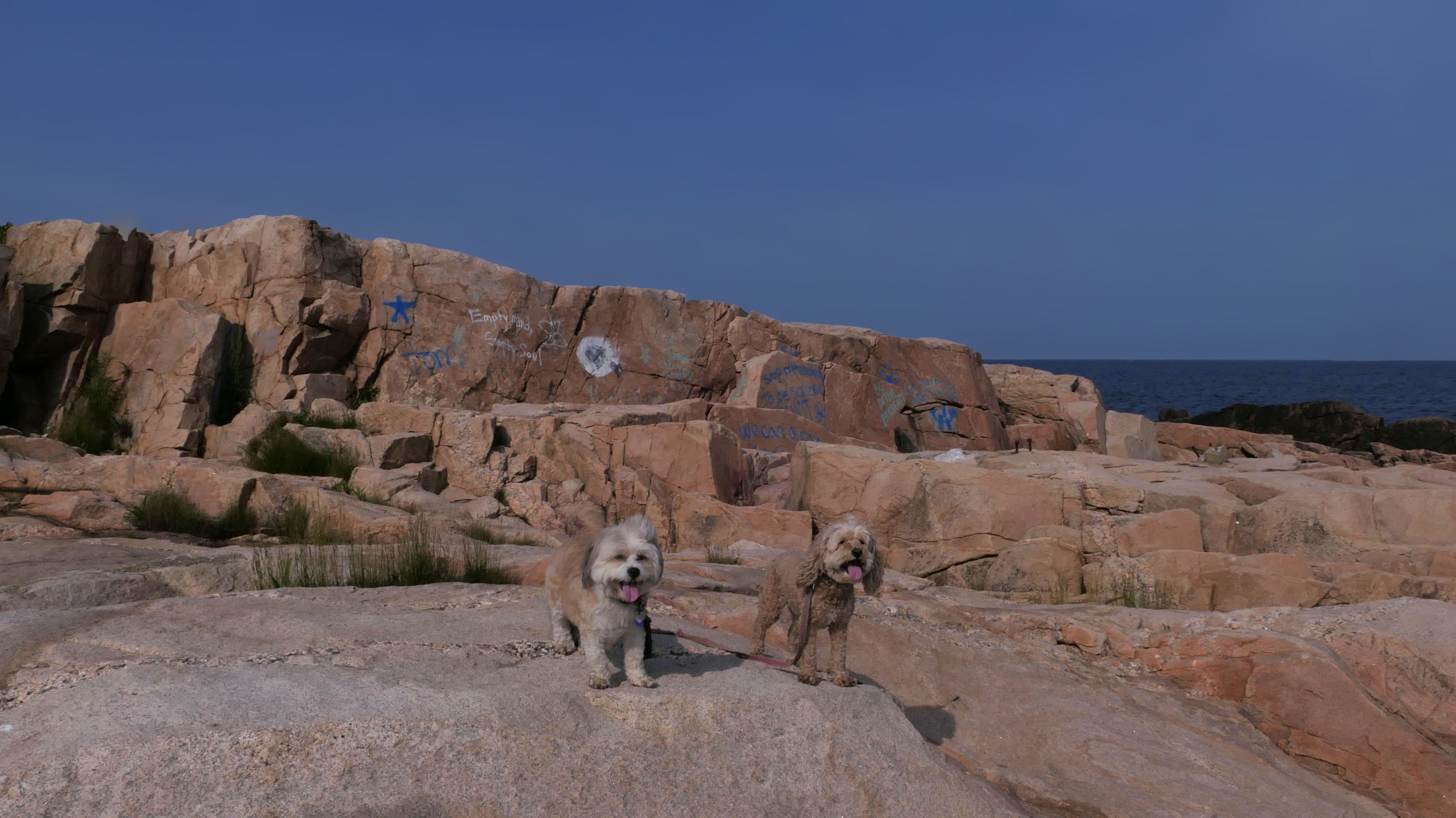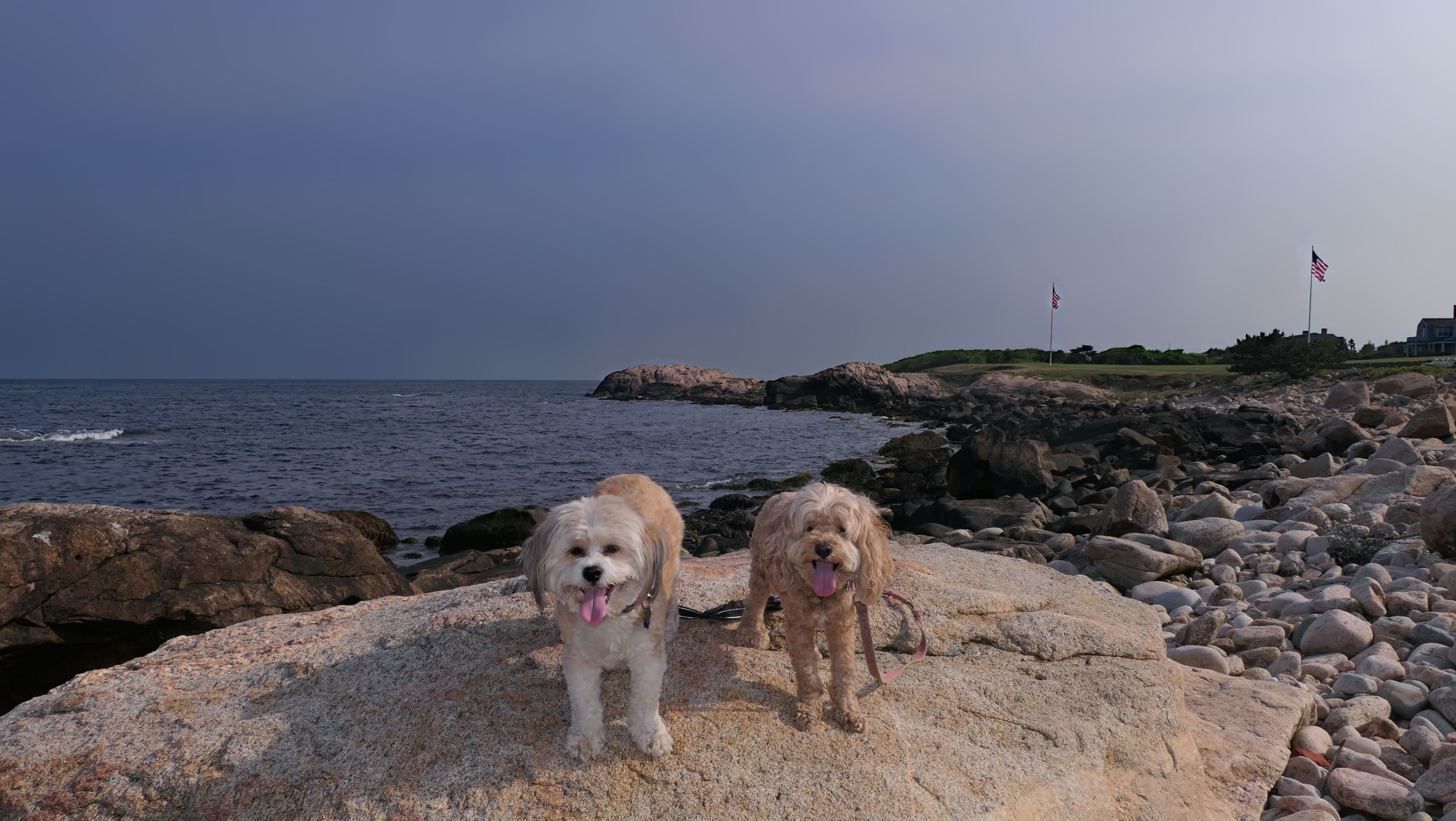 This is one of three rocky shoreline access points at the end of side streets off Ocean Road. We visited all three on the same day in 2023. We revisited the other two earlier this year, and finally revisited this one as well. We were able to explore a bit more than last time. The rocks here can be tricky to navigate. Heading north along the rocks, we turned around at the chasm separating this place from the Ocean Road Access Point we visited last December. Heading south along the rocks, we didn't make it much further than last time. The terrain is too tricky to make it all the way to the Newton Avenue Access Point. We actually covered about 1.3 miles here total, almost all of it climbing on rocks. Mandy and Lexi look pretty messy in some of the photos. They actually went into a mucky lake at our previous stop. We found a tidal pool here where they were able to clean off and cool off. This is a fun place to explore if you're up for climbing over rocks!
