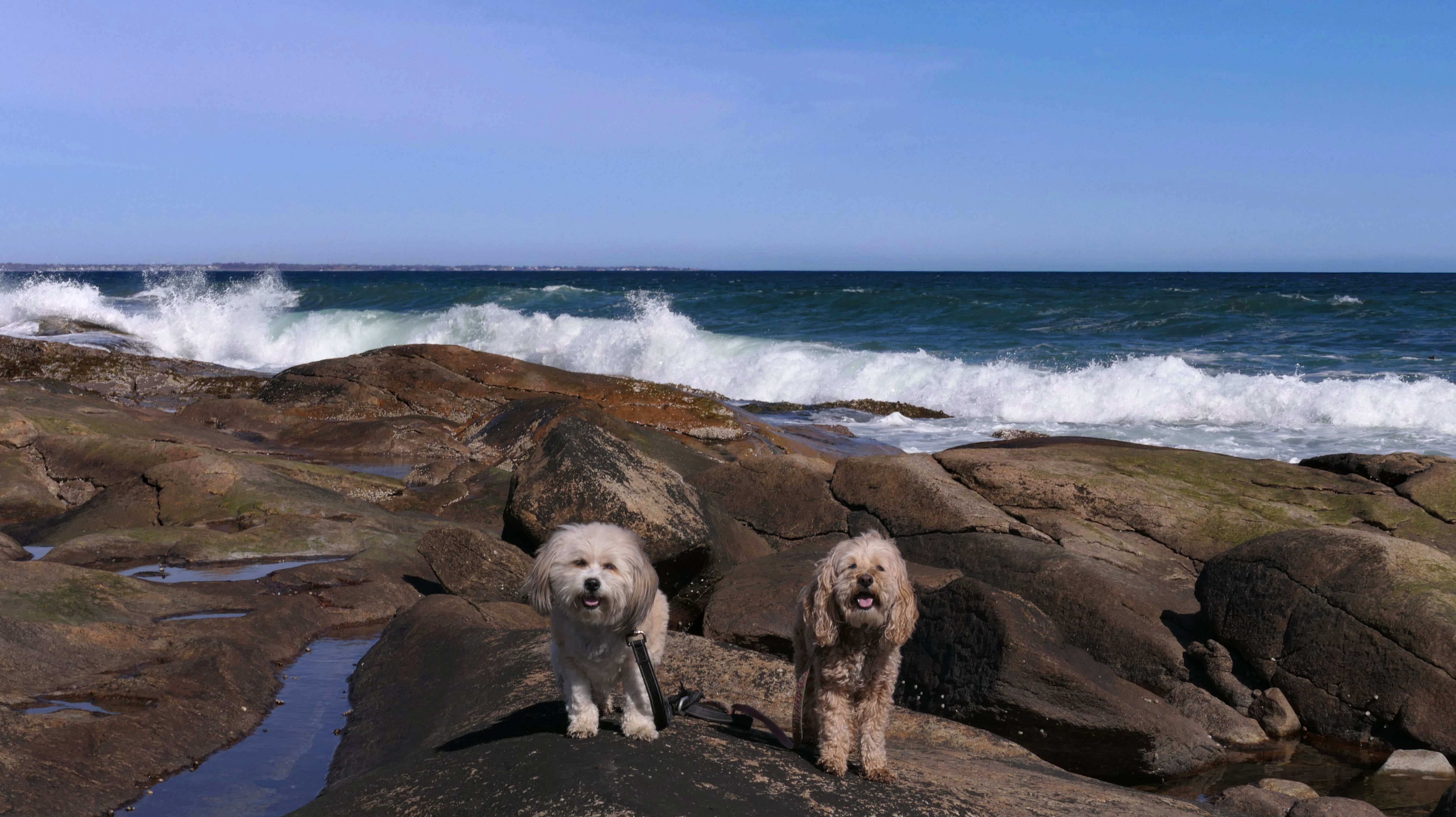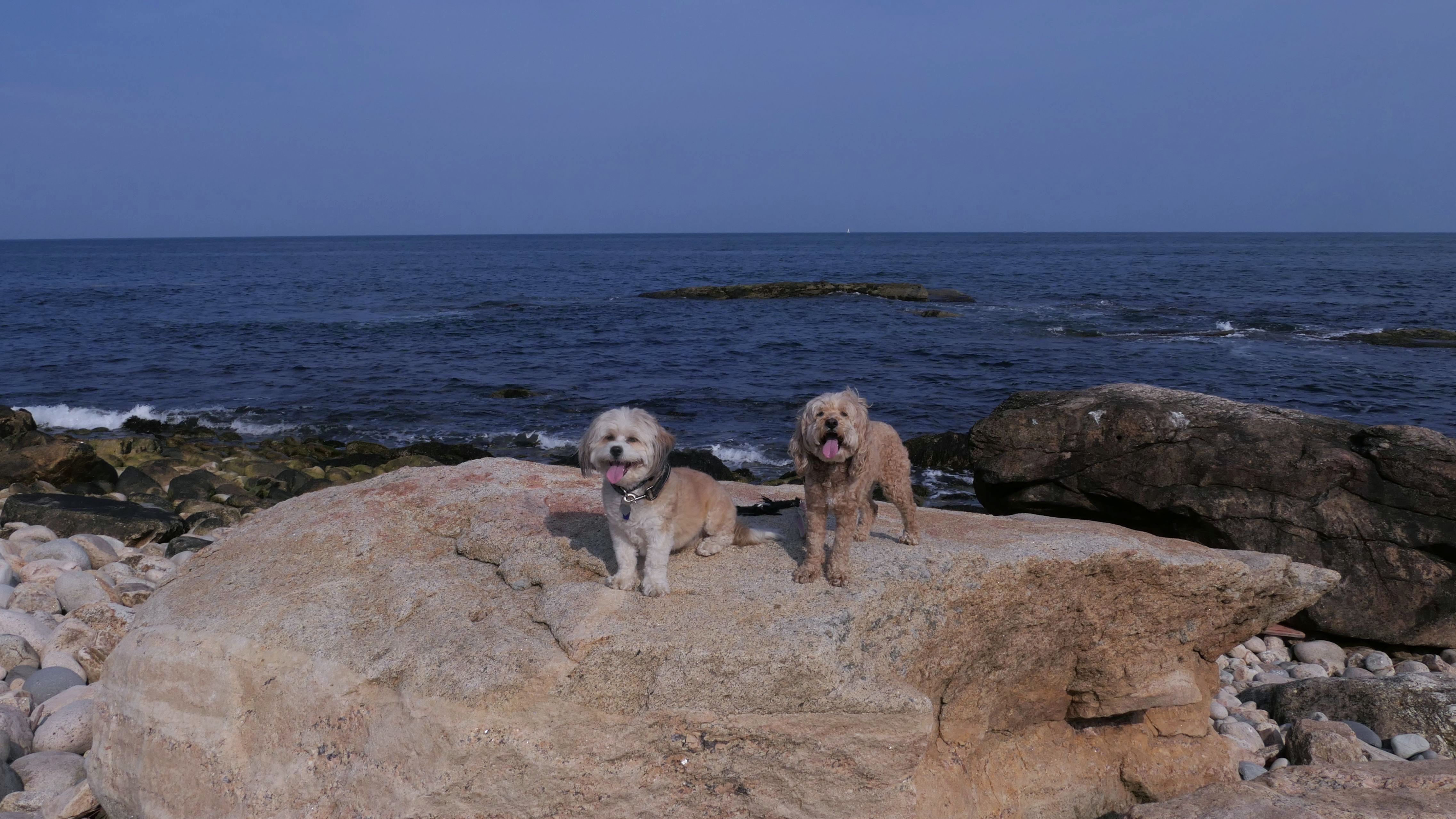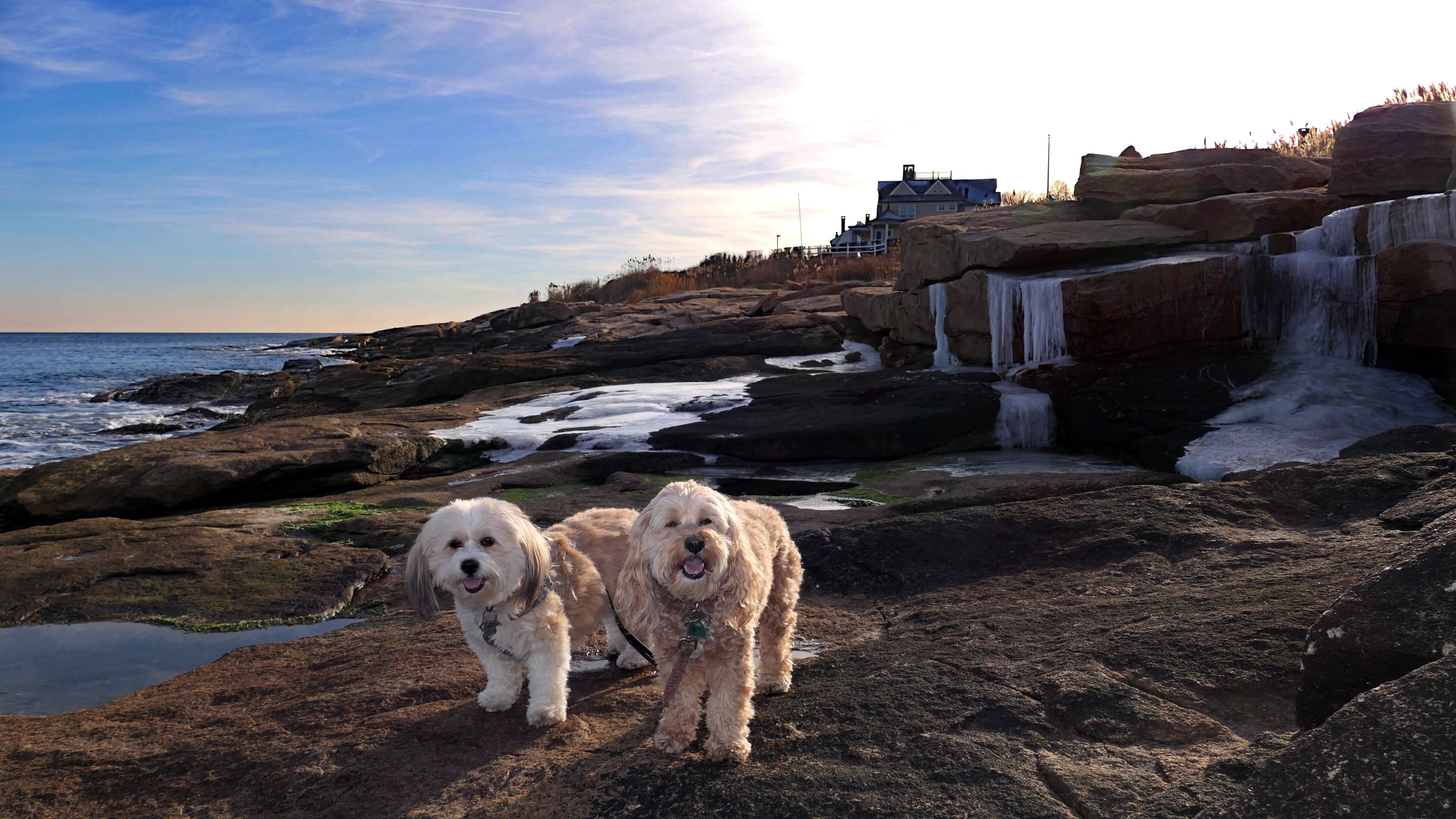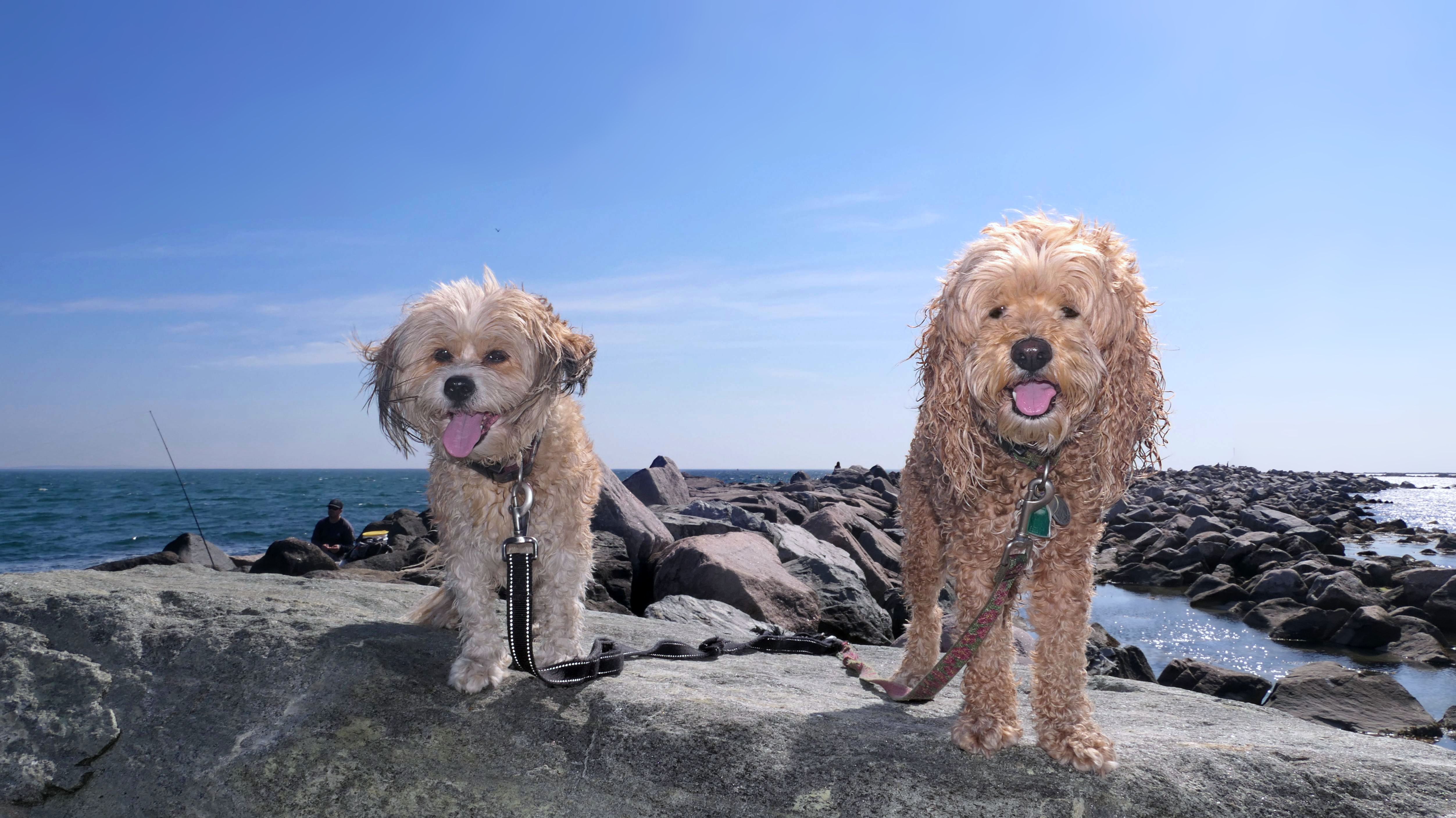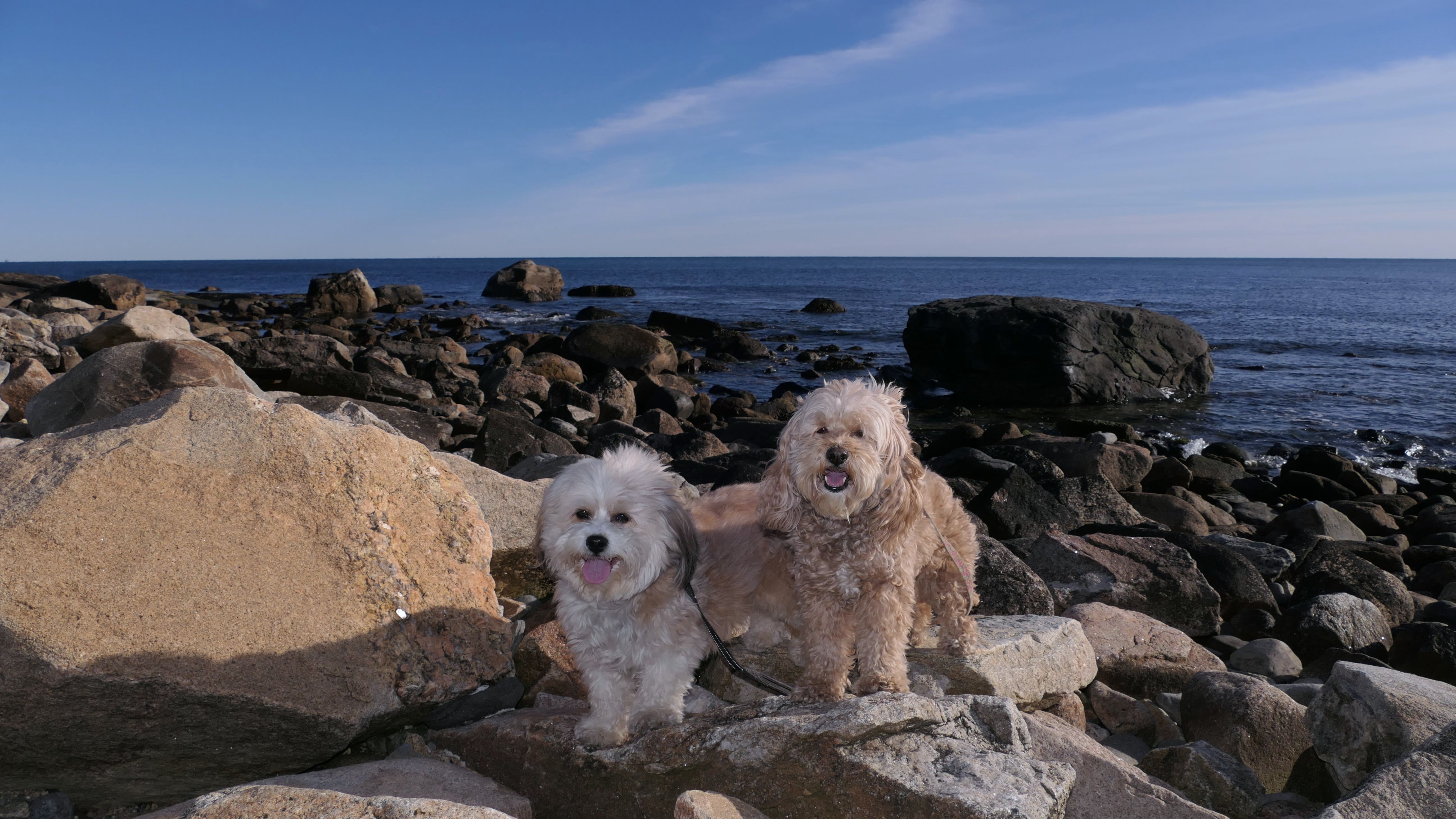 This is one of three rocky shoreline access points at the end of side streets off Ocean Road. We visited all three on the same day in 2023. We revisited the other two earlier this year, and finally revisited this one as well. We were able to explore a bit more than last time. The rocks here can be tricky to navigate. Heading north along the rocks, we turned around at the chasm separating this place from the Ocean Road Access Point we visited last December. Heading south along the rocks, we didn't make it much further than last time. The terrain is too tricky to make it all the way to the Newton Avenue Access Point. We actually covered about 1.3 miles here total, almost all of it climbing on rocks. Mandy and Lexi look pretty messy in some of the photos. They actually went into a mucky lake at our previous stop. We found a tidal pool here where they were able to clean off and cool off. This is a fun place to explore if you're up for climbing over rocks!