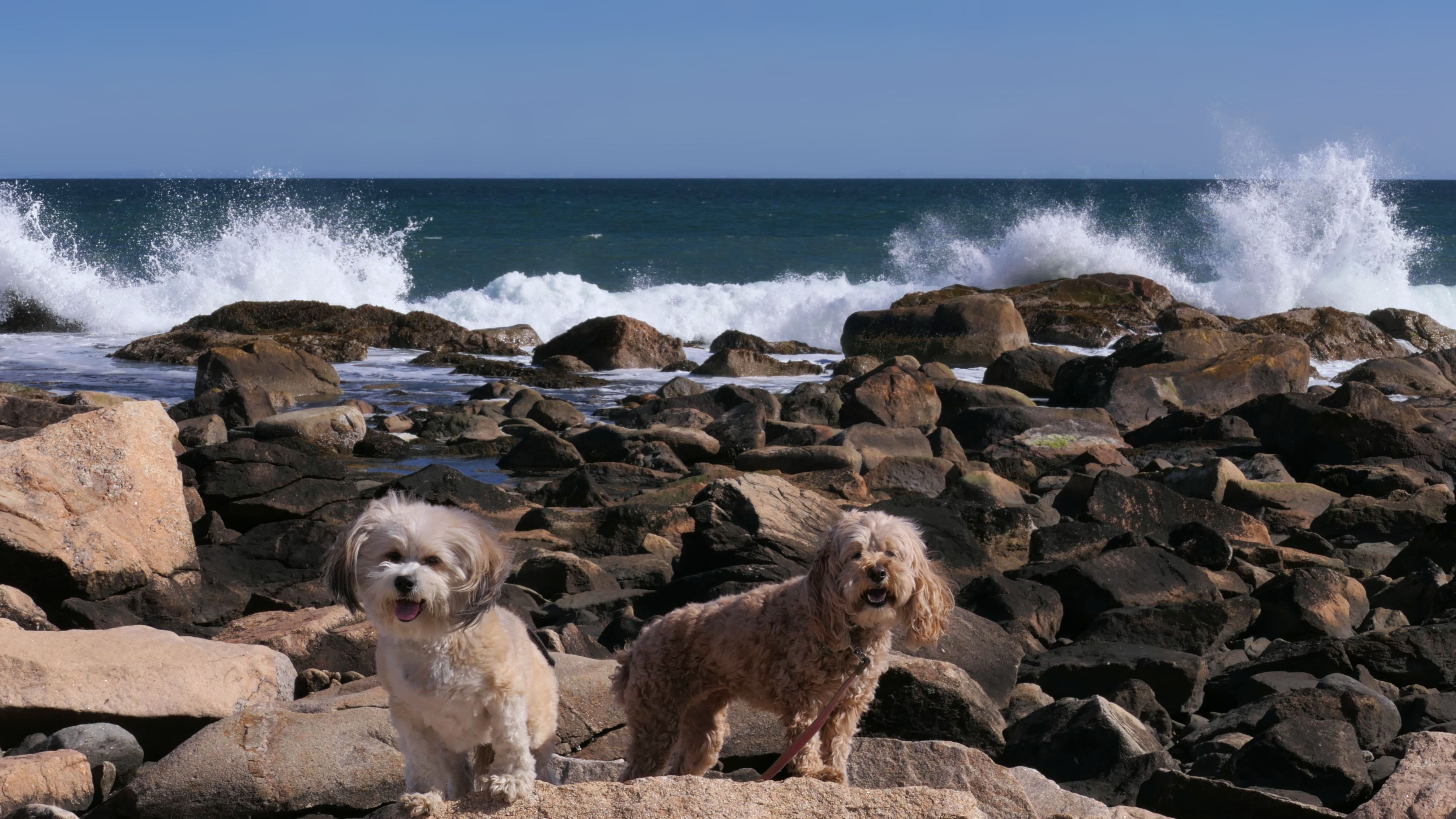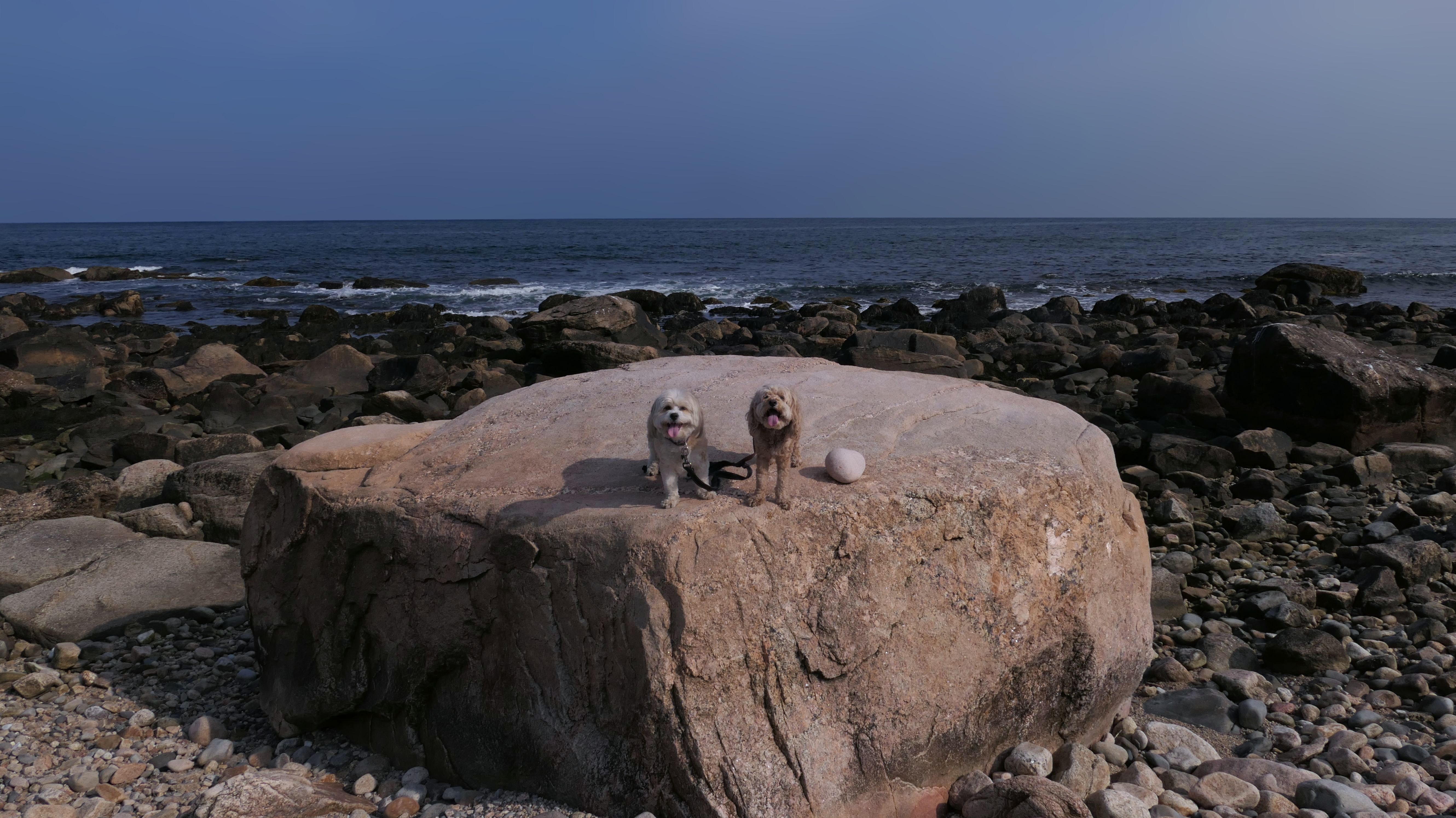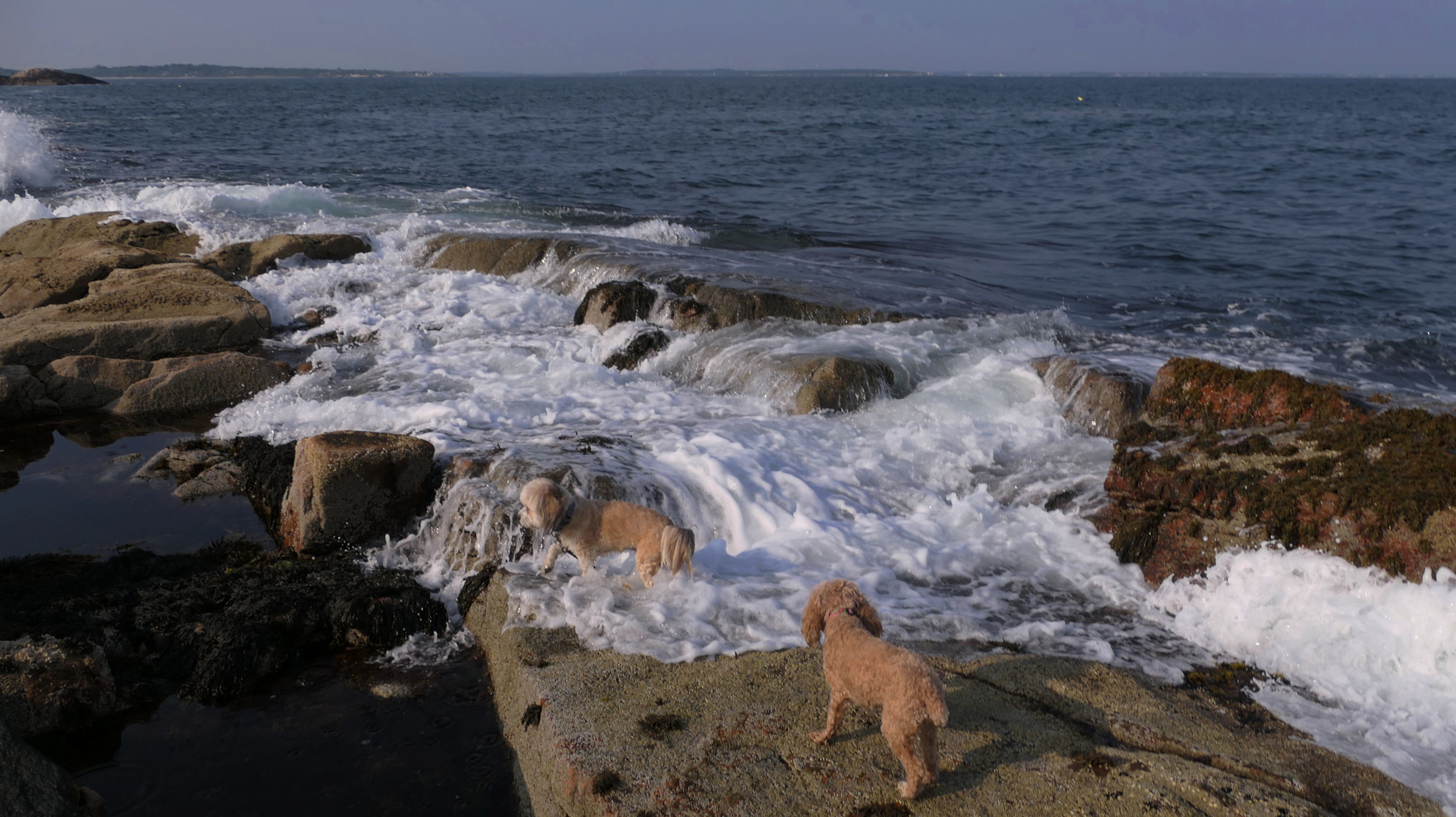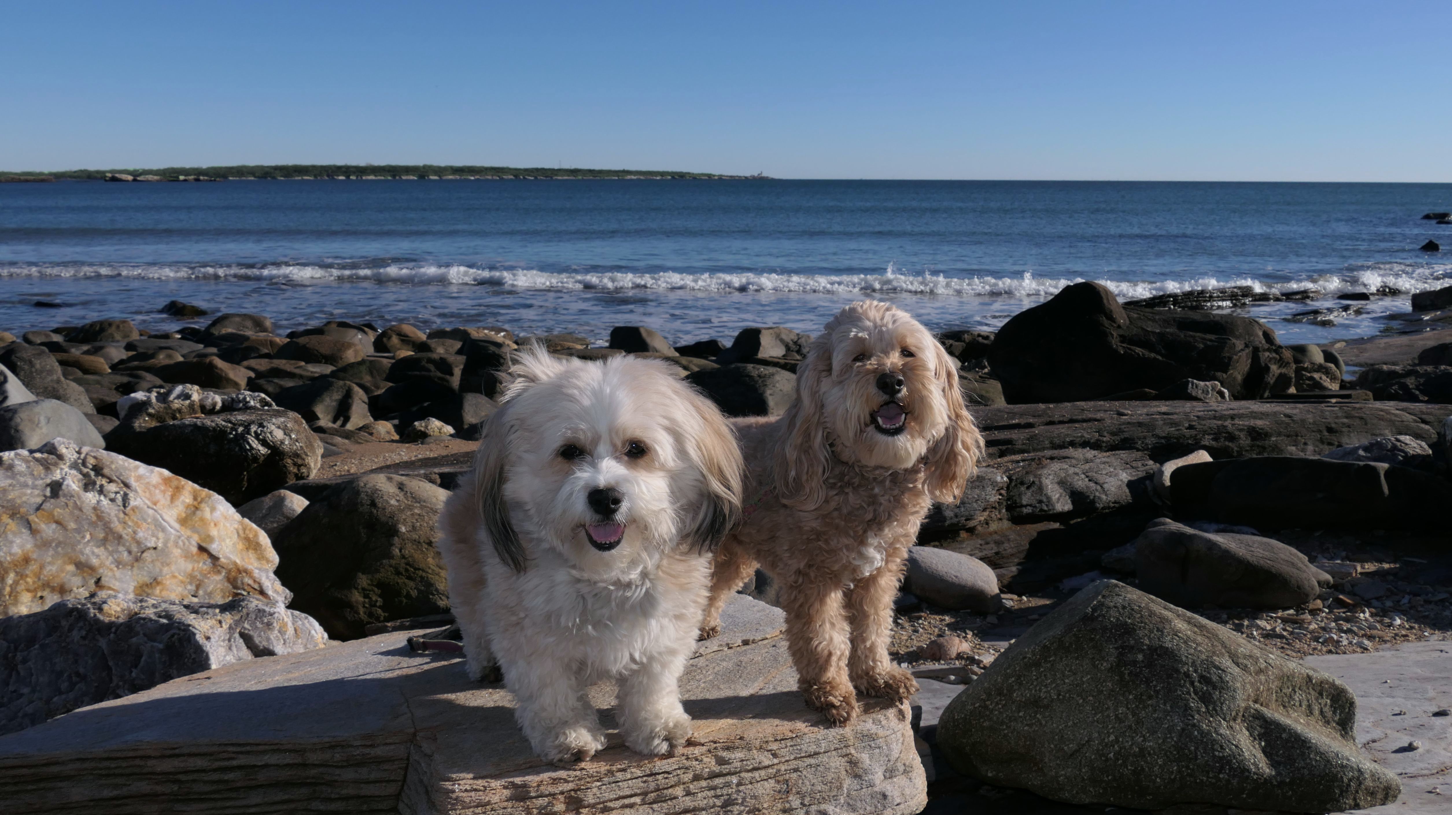 This is one of three rocky shoreline access points at the end of side streets off Ocean Road. We visited all three on the same day in 2023. We revisited the other two earlier this year, and finally revisited this one as well. We were able to explore a bit more than last time. The rocks here can be tricky to navigate. Heading north along the rocks, we turned around at the chasm separating this place from the Ocean Road Access Point we visited last December. Heading south along the rocks, we didn't make it much further than last time. The terrain is too tricky to make it all the way to the Newton Avenue Access Point. We actually covered about 1.3 miles here total, almost all of it climbing on rocks. Mandy and Lexi look pretty messy in some of the photos. They actually went into a mucky lake at our previous stop. We found a tidal pool here where they were able to clean off and cool off. This is a fun place to explore if you're up for climbing over rocks!