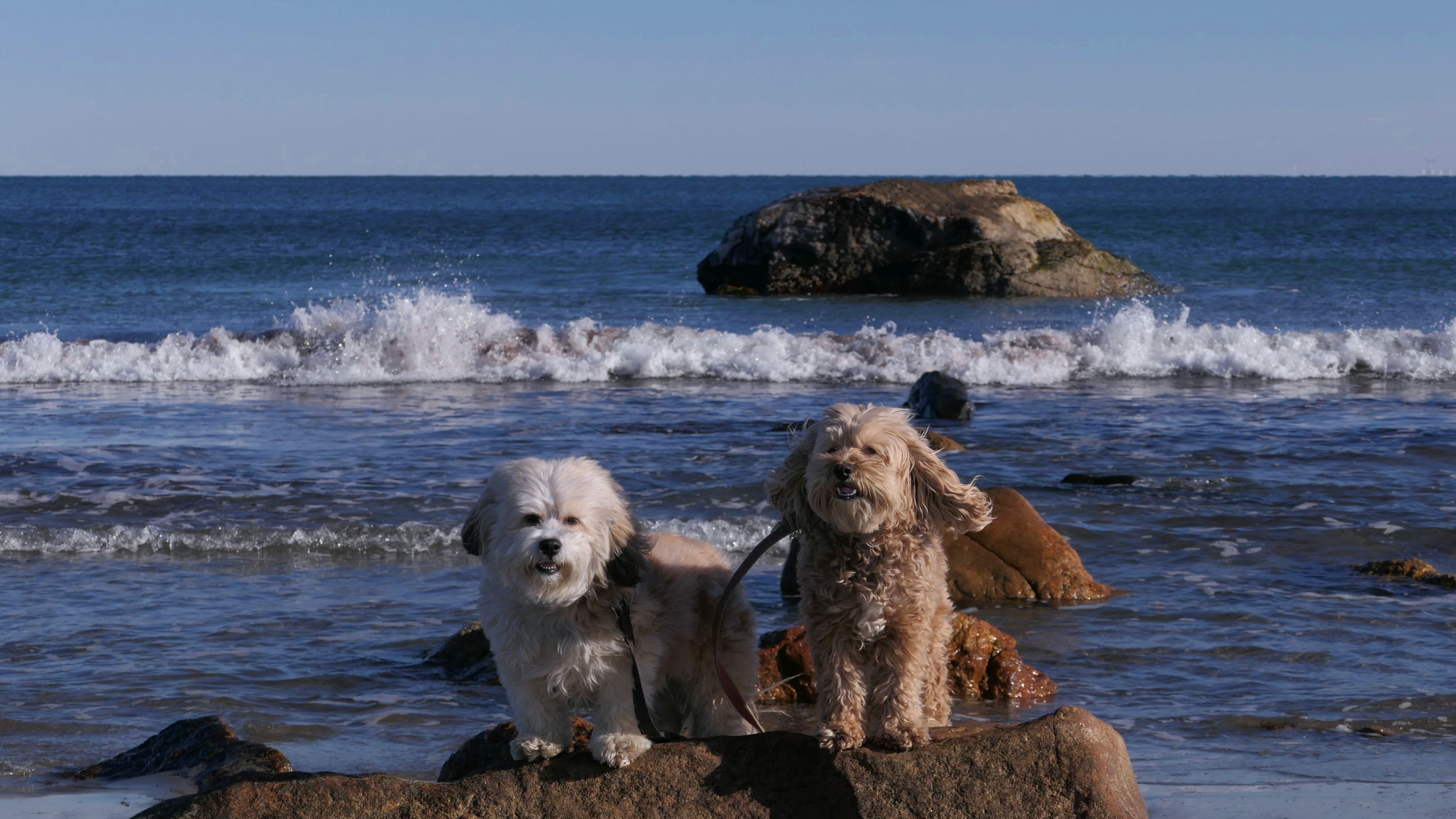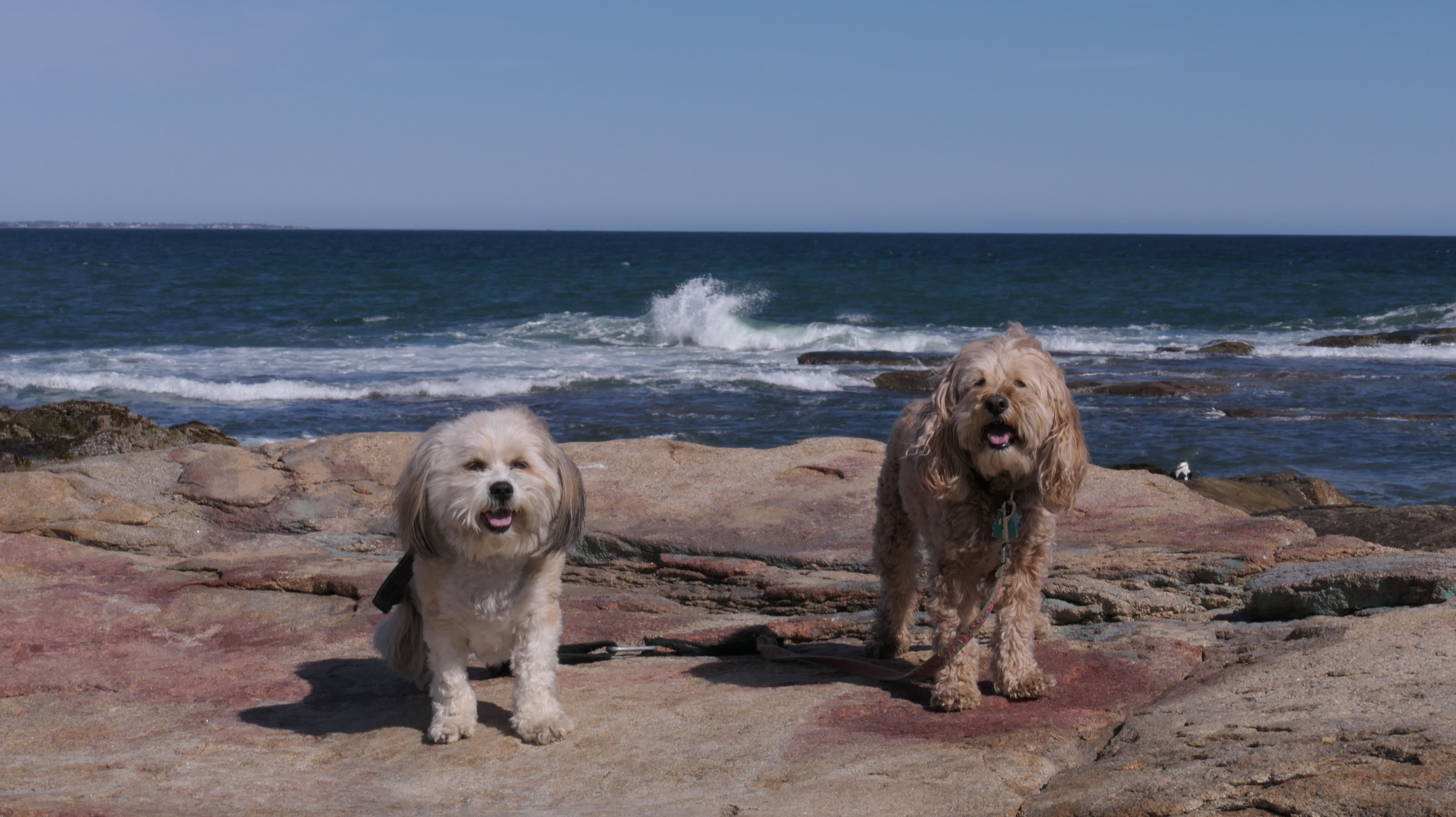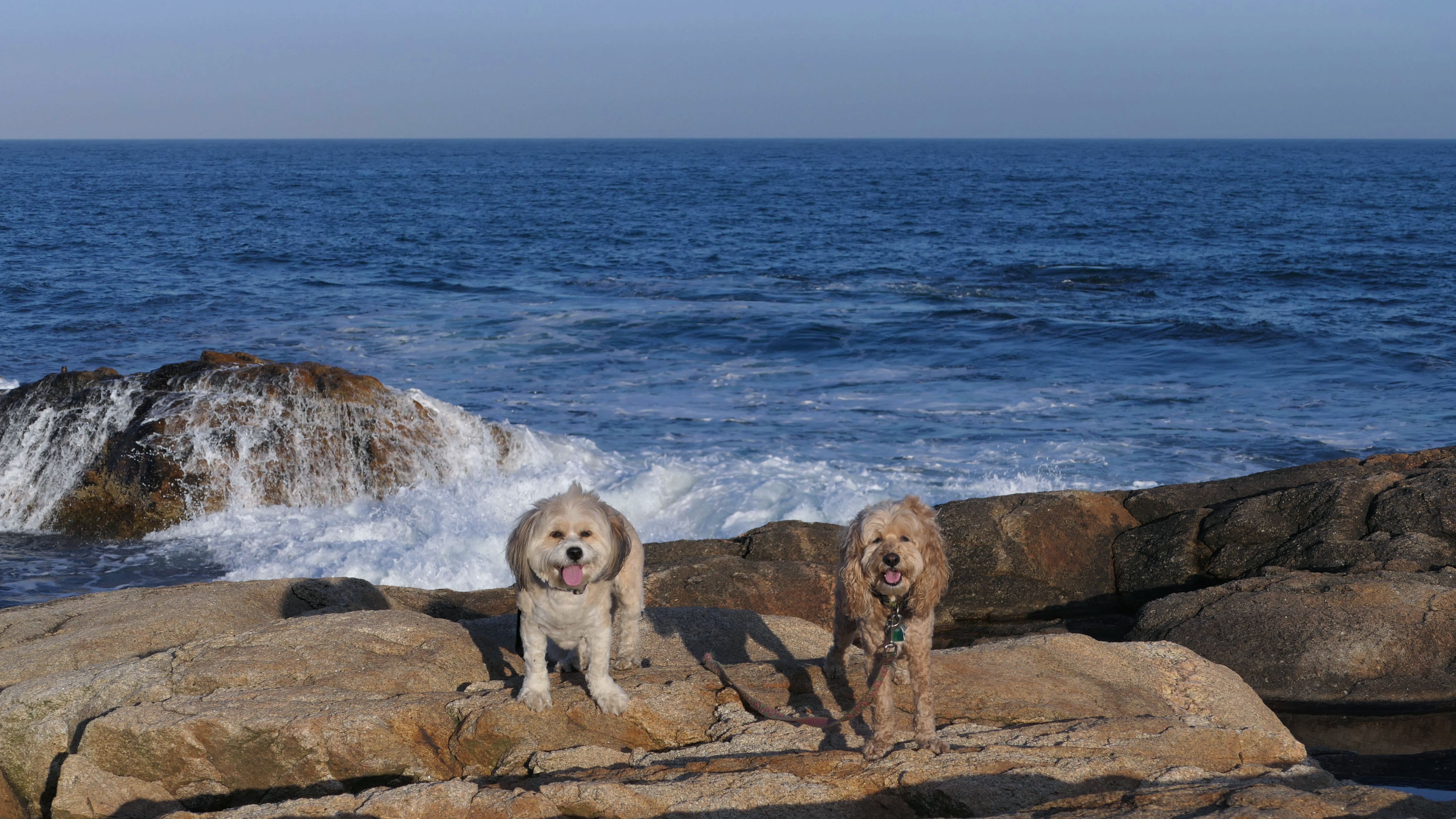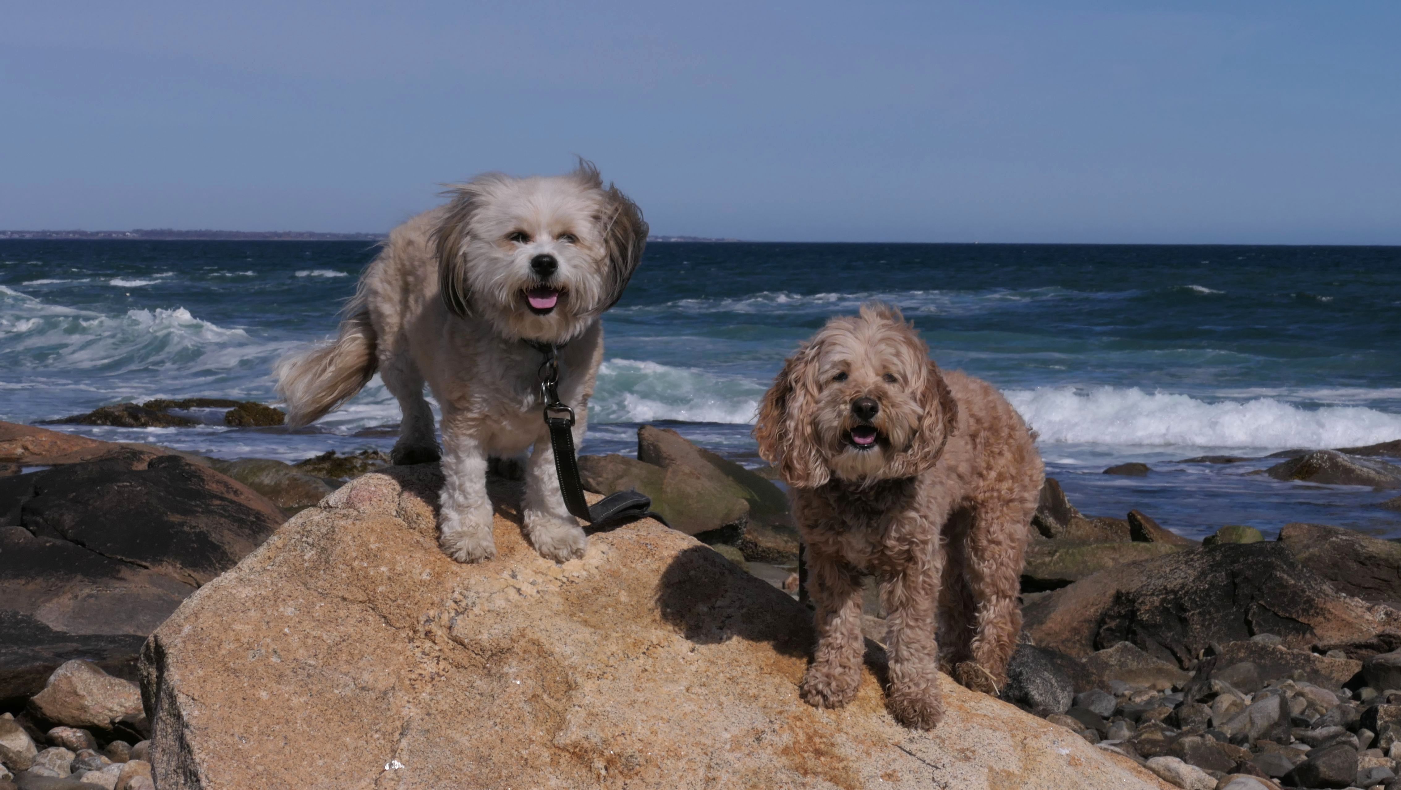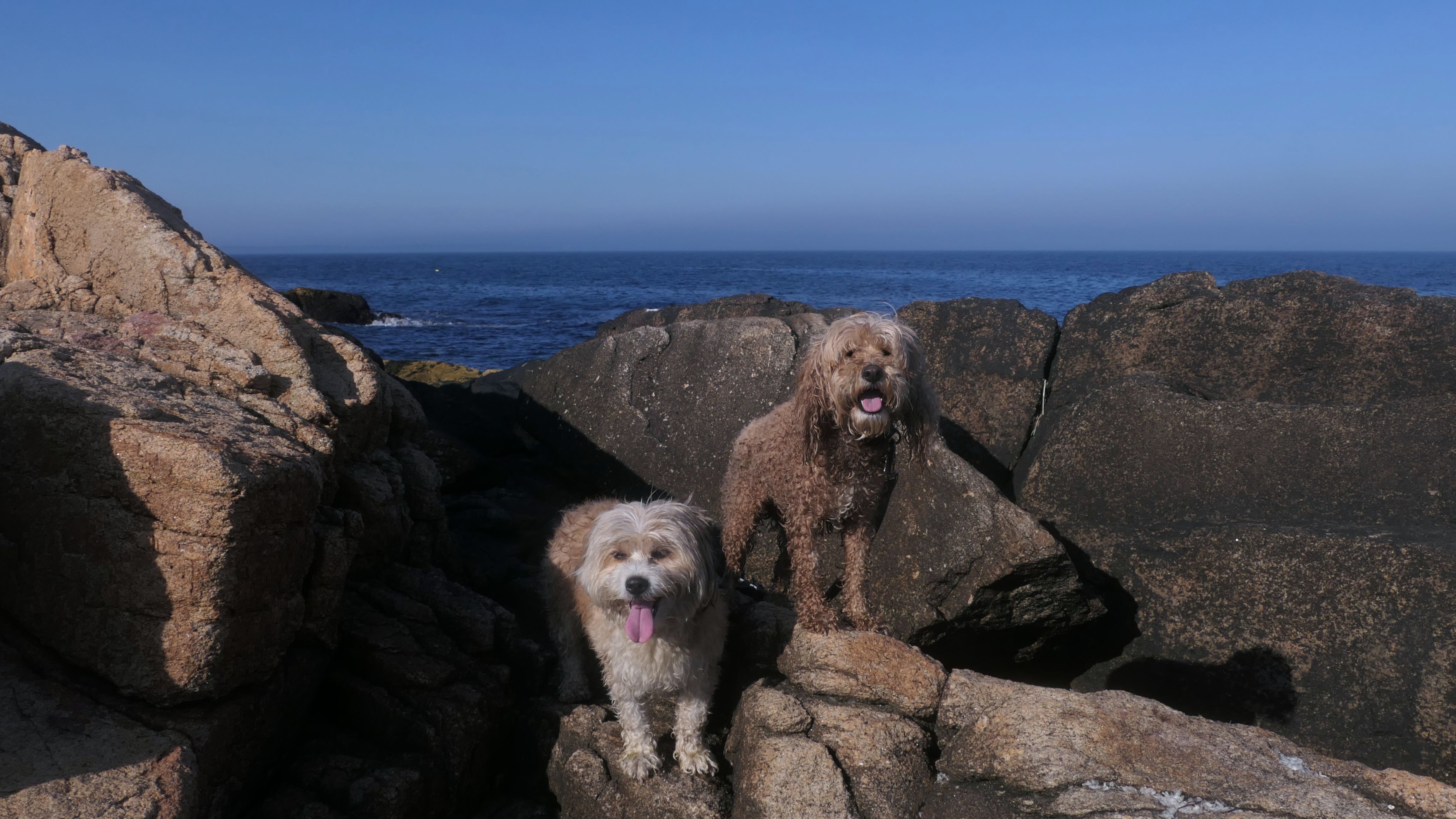This is one of three rocky shoreline access points at the end of side streets off Ocean Road. We visited all three on the same day in 2023. We revisited the other two earlier this year, and finally revisited this one as well. We were able to explore a bit more than last time. The rocks here can be tricky to navigate. Heading north along the rocks, we turned around at the chasm separating this place from the Ocean Road Access Point we visited last December. Heading south along the rocks, we didn't make it much further than last time. The terrain is too tricky to make it all the way to the Newton Avenue Access Point. We actually covered about 1.3 miles here total, almost all of it climbing on rocks. Mandy and Lexi look pretty messy in some of the photos. They actually went into a mucky lake at our previous stop. We found a tidal pool here where they were able to clean off and cool off. This is a fun place to explore if you're up for climbing over rocks!