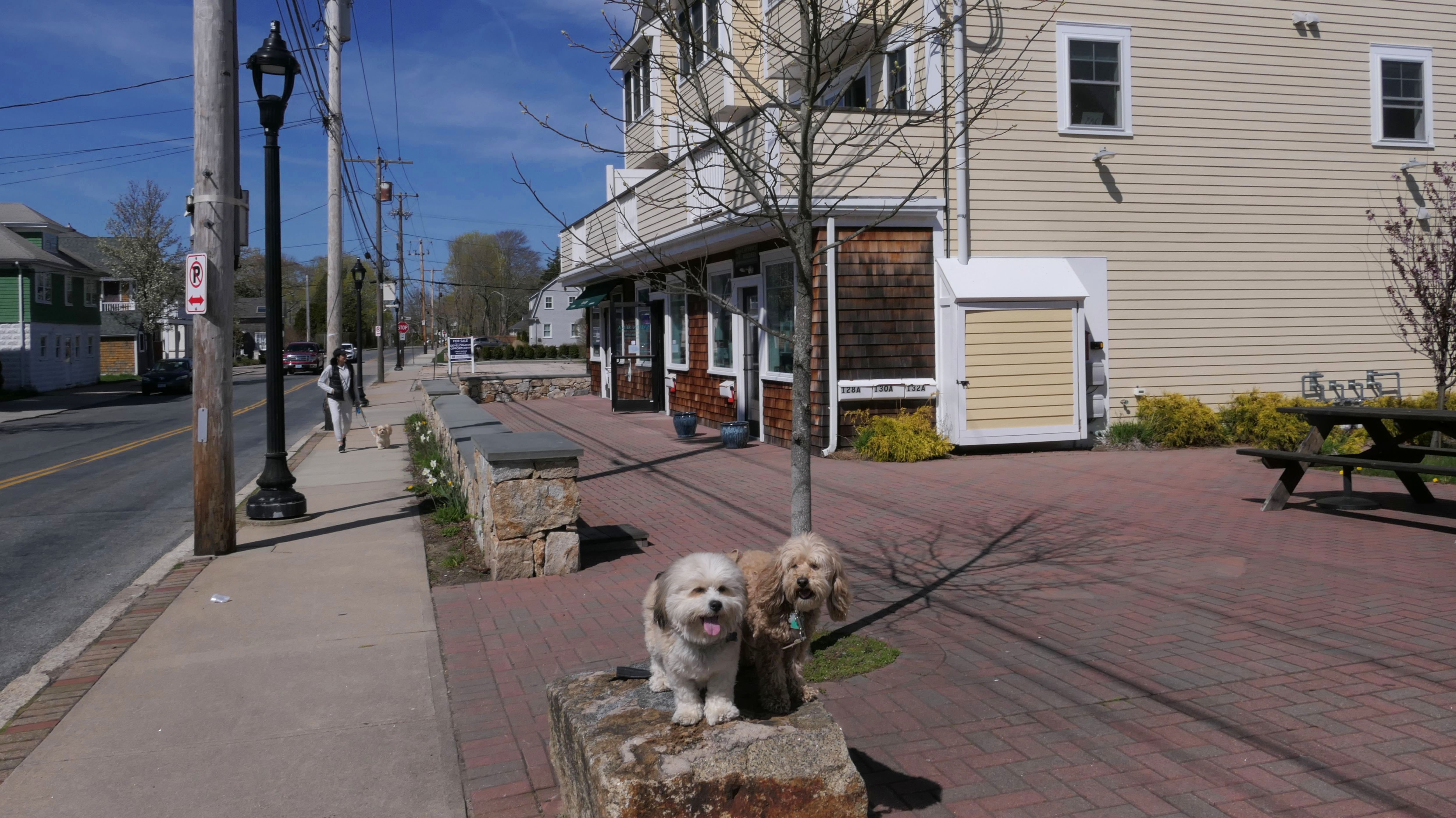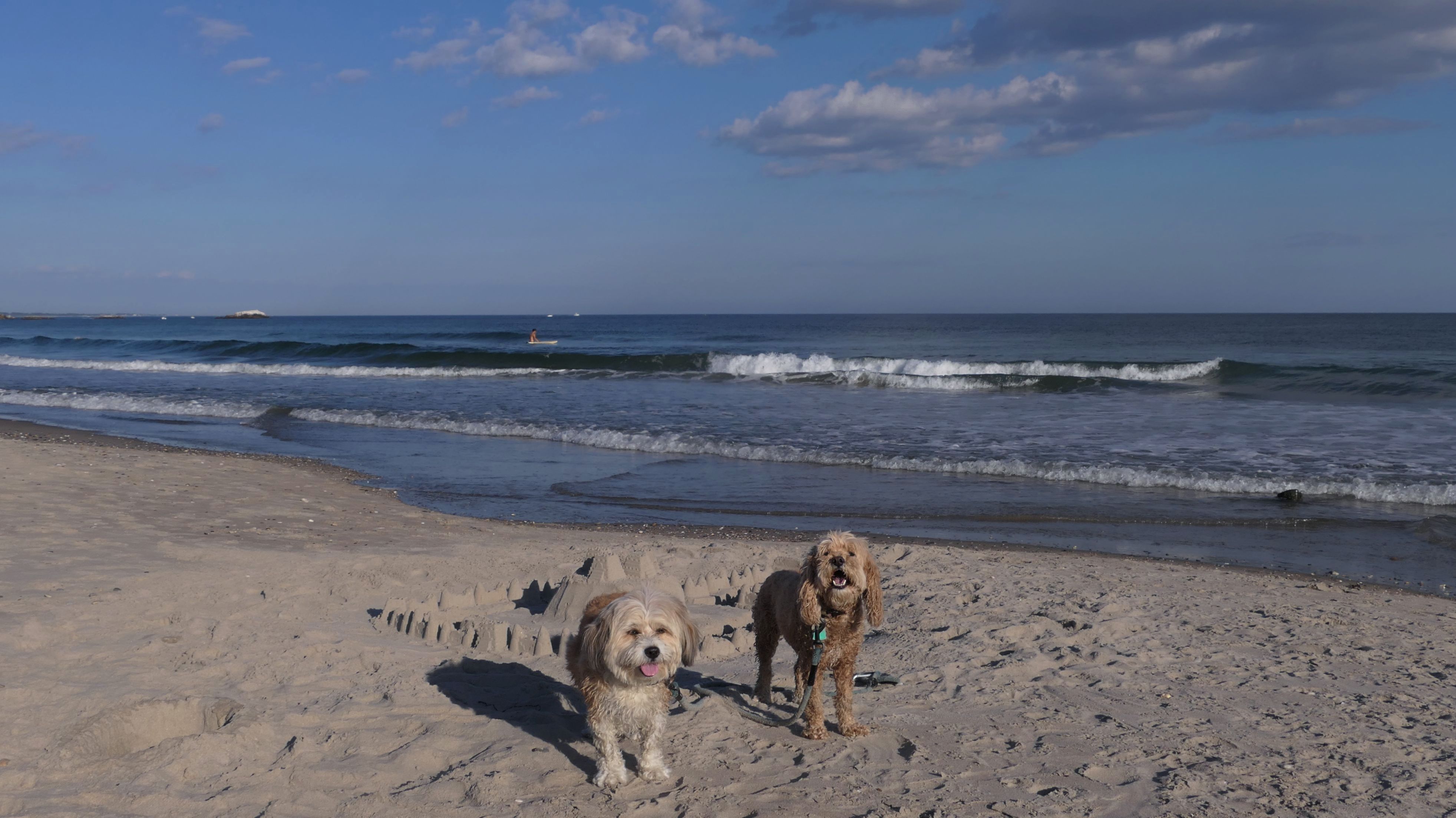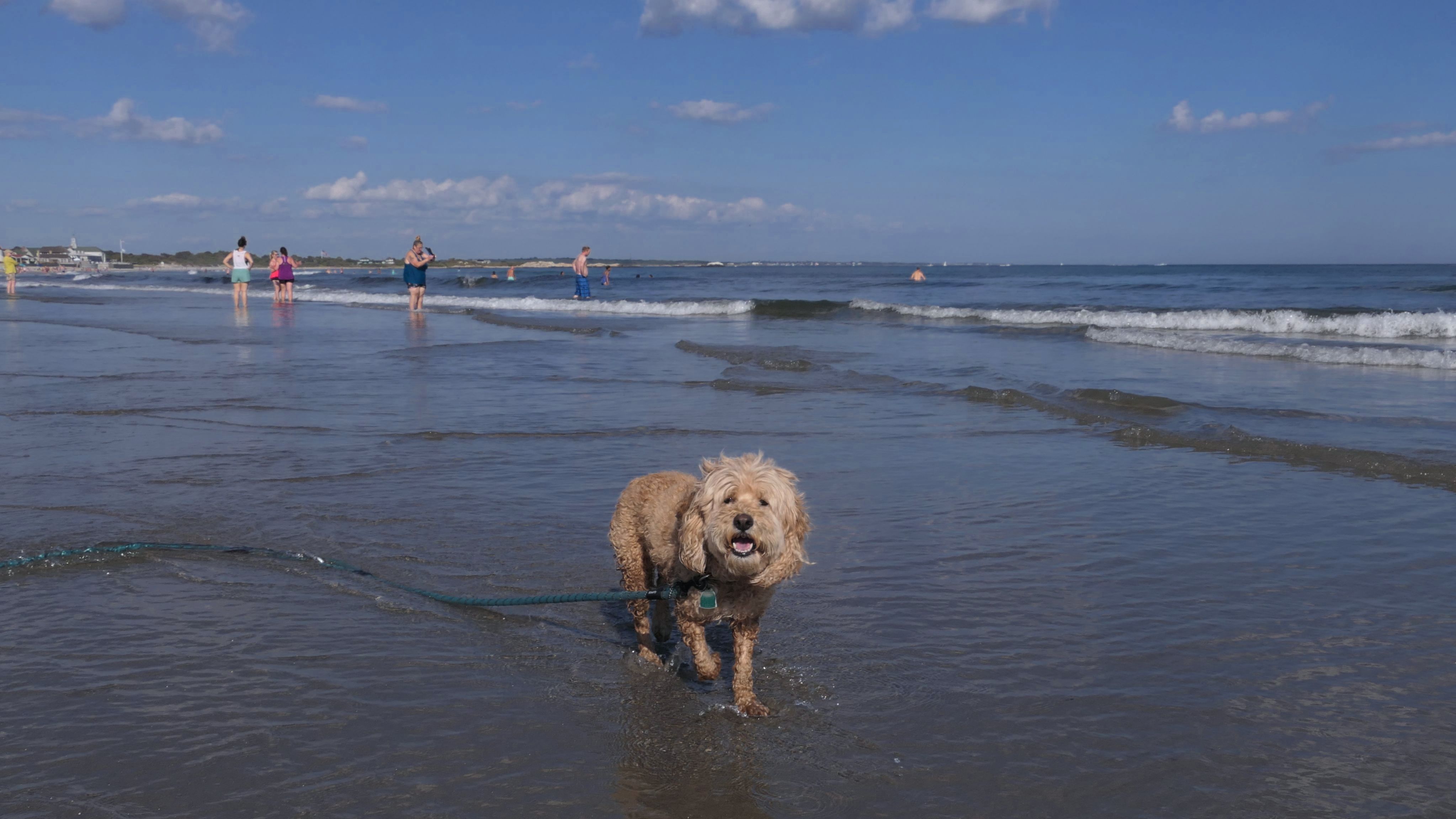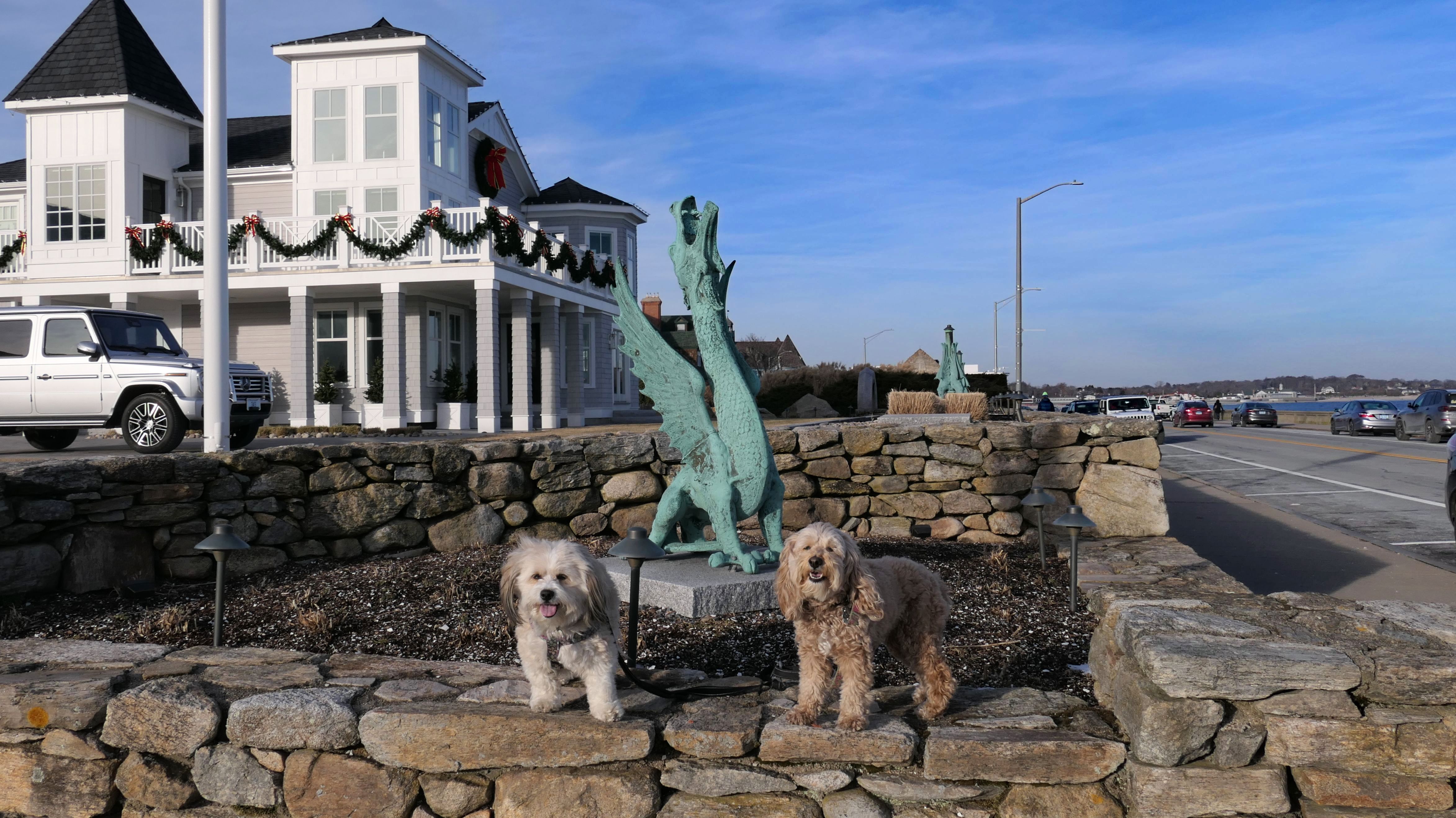 This was our fourth visit to this beach, almost two years to the day after our first visit. That's not coincidence. Dogs are allowed here after September 16th, so we didn't waste any time this year! This is one of the most popular beaches in the area, it's flat and easy to access. Our walk was pretty much a repeat of our 2022 adventure. We walked the length of the beach, up until the mouth of the Pettaquamscutt River and back. Waves rip here, and the beach was quite busy with shell collectors, sunbathers, surfers, and swimmers, even on a Monday afternoon where the temperatures didn't get much above 70 degrees. There was even a cruise ship passing by. This time around we also explored the Narragansett Pier Marketplace and Memorial Square as well. walking over five miles in the process.