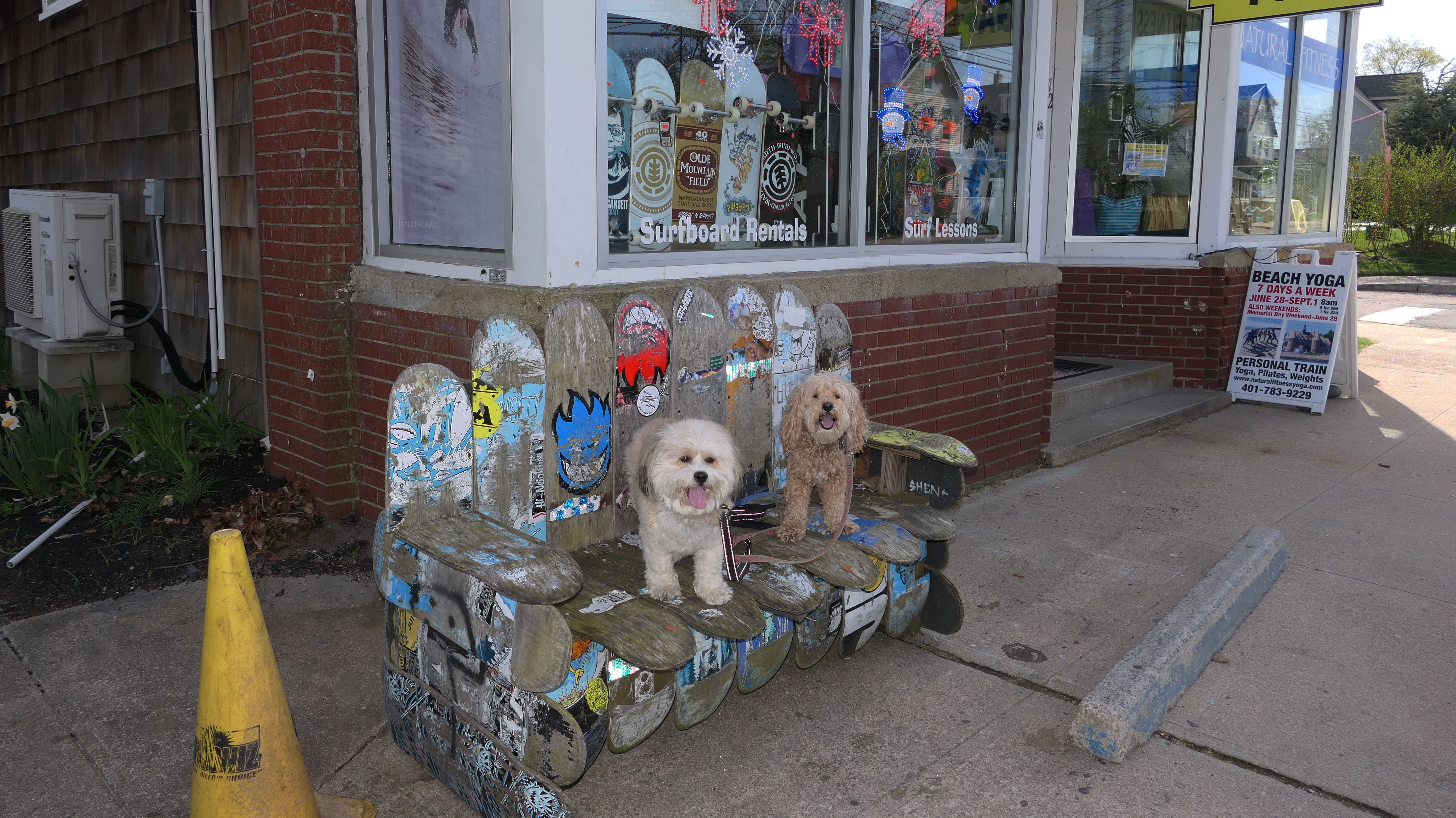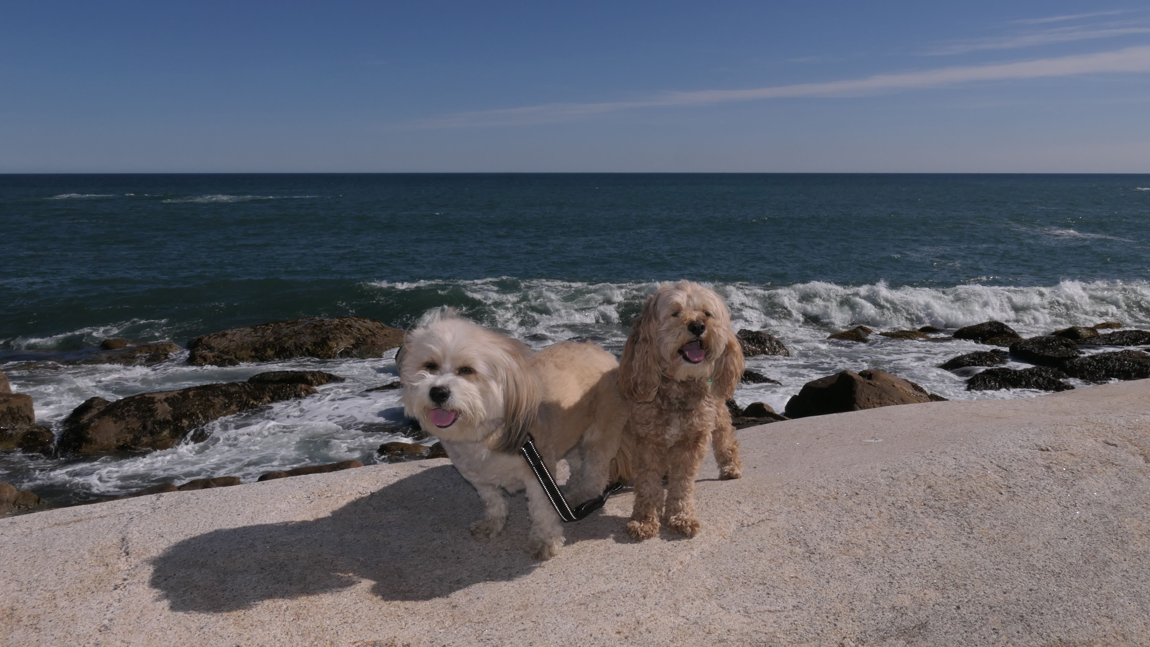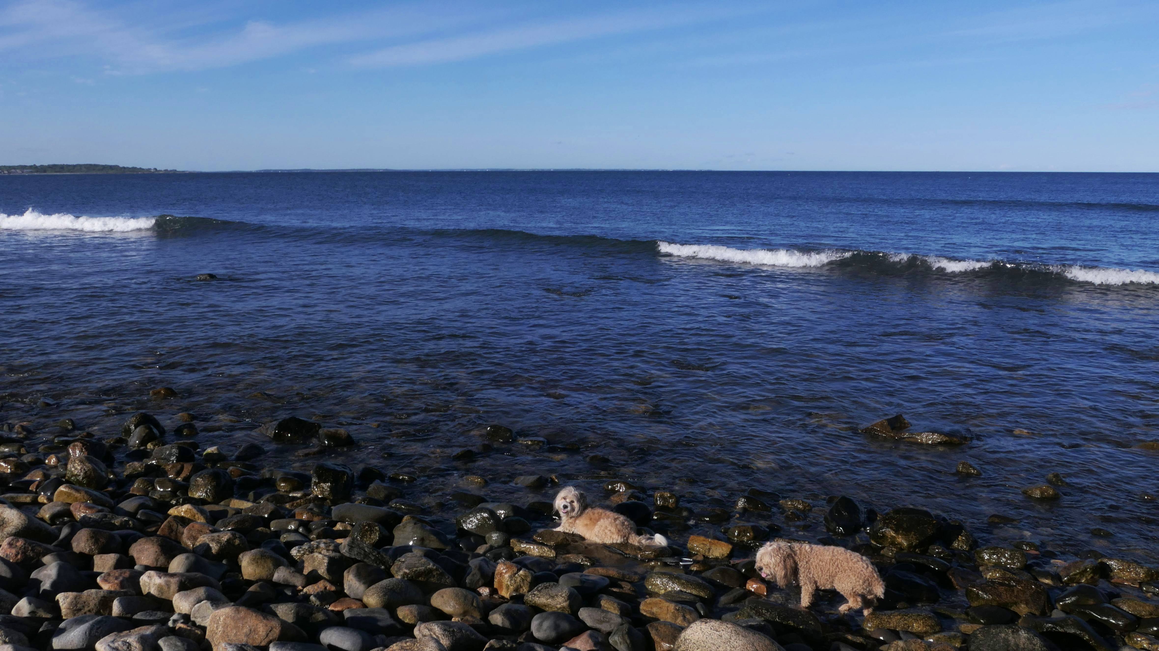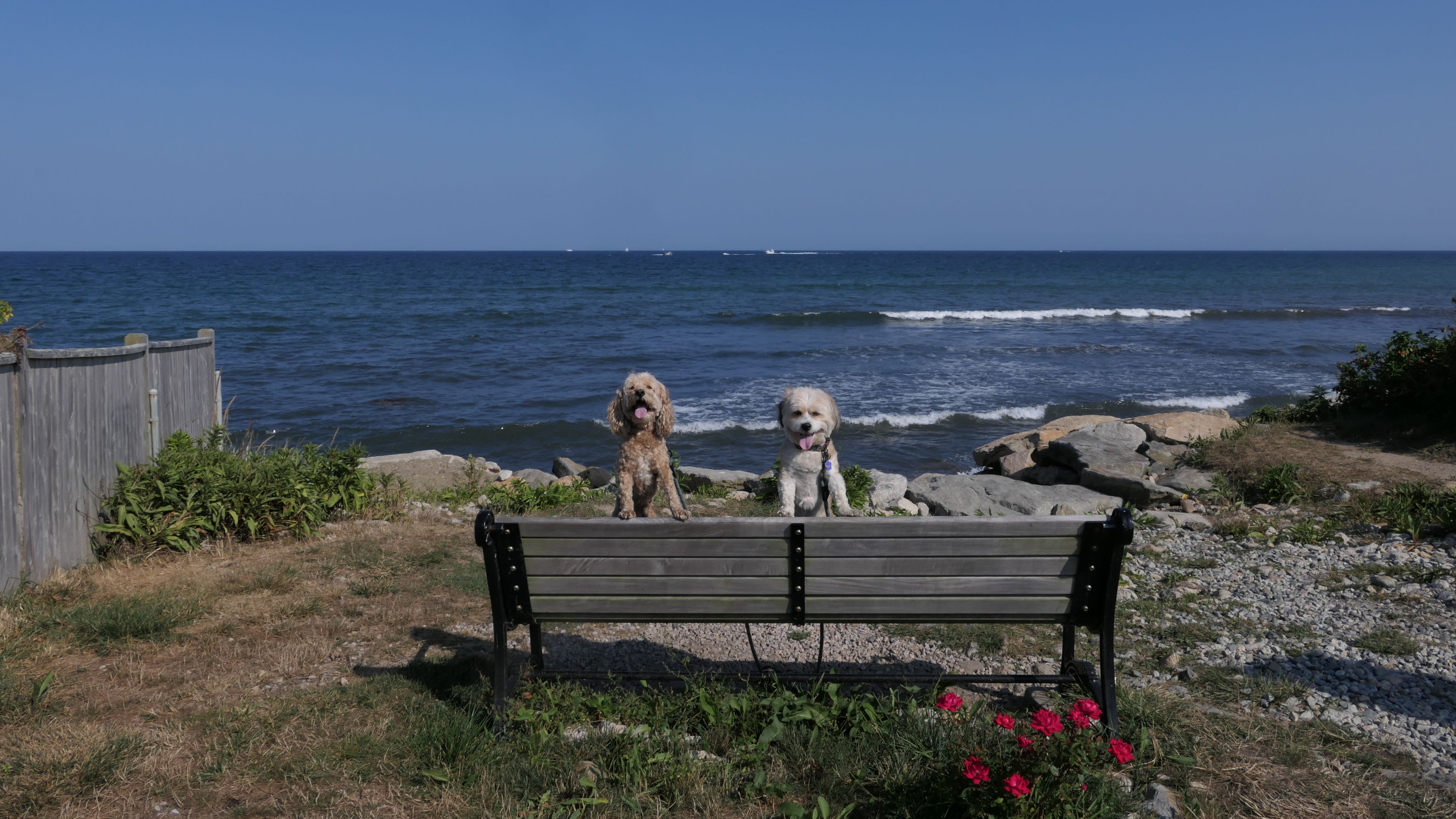 This was our fourth visit to this beach, almost two years to the day after our first visit. That's not coincidence. Dogs are allowed here after September 16th, so we didn't waste any time this year! This is one of the most popular beaches in the area, it's flat and easy to access. Our walk was pretty much a repeat of our 2022 adventure. We walked the length of the beach, up until the mouth of the Pettaquamscutt River and back. Waves rip here, and the beach was quite busy with shell collectors, sunbathers, surfers, and swimmers, even on a Monday afternoon where the temperatures didn't get much above 70 degrees. There was even a cruise ship passing by. This time around we also explored the Narragansett Pier Marketplace and Memorial Square as well. walking over five miles in the process.