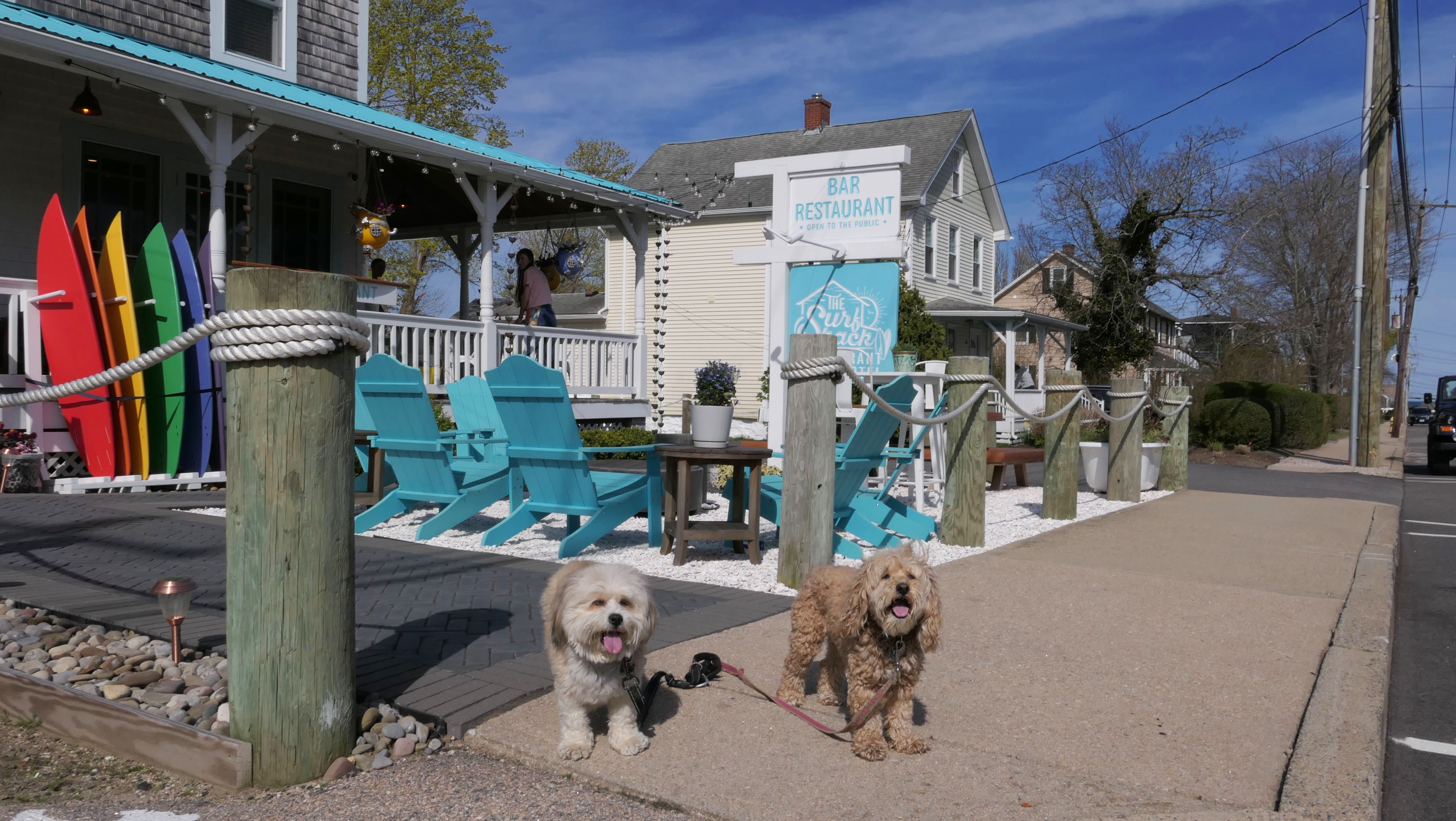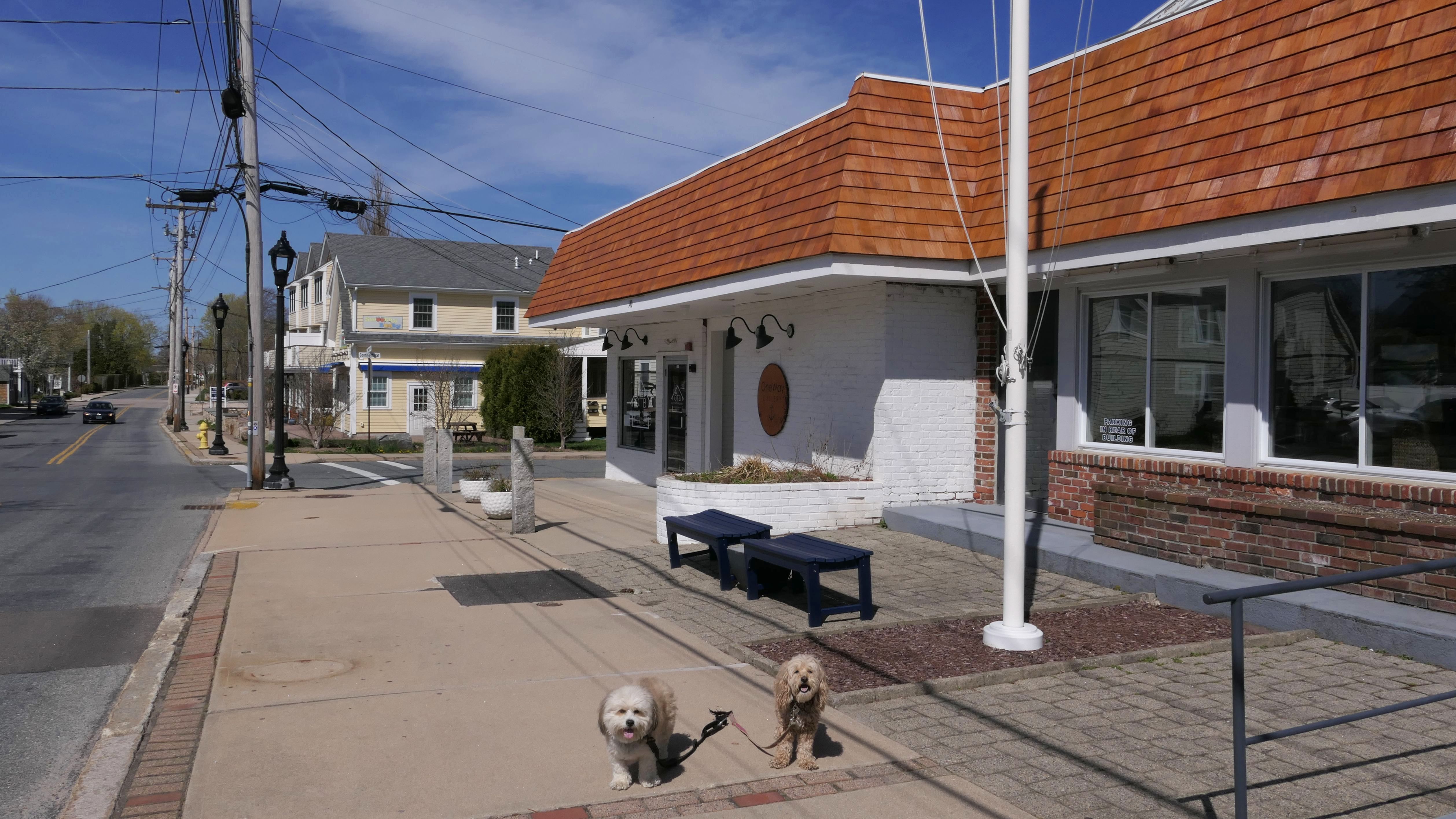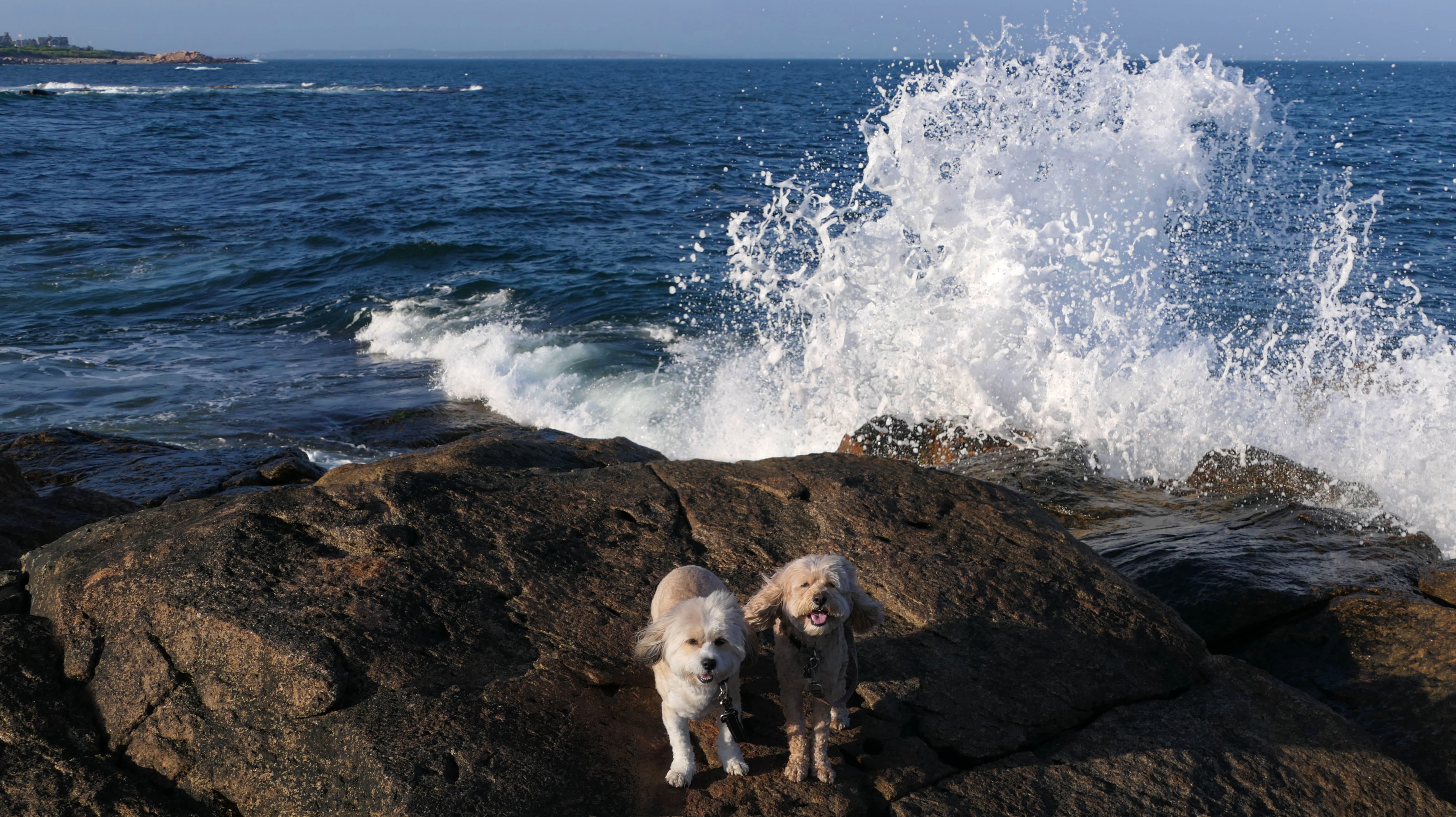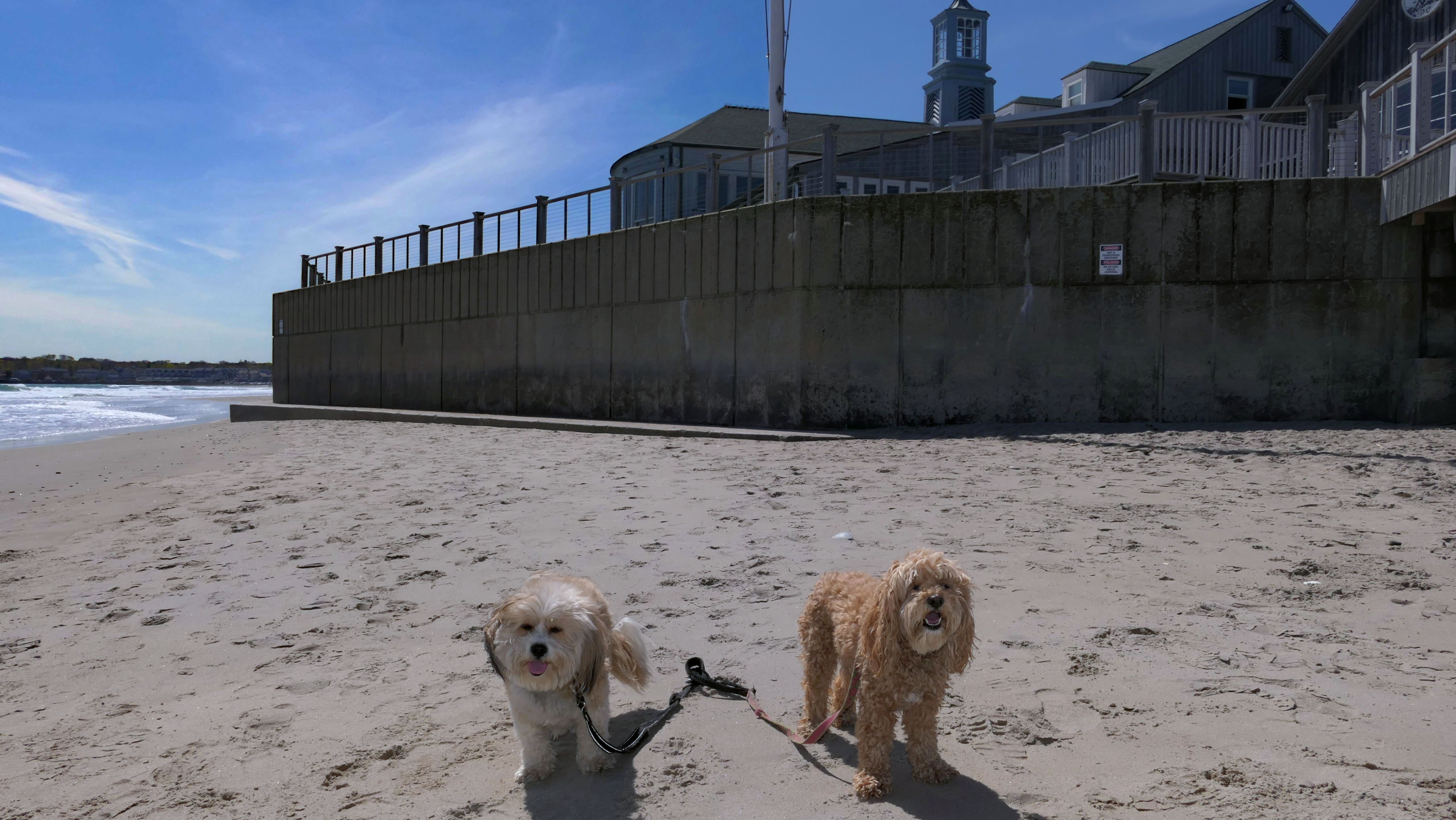 This was our fourth visit to this beach, almost two years to the day after our first visit. That's not coincidence. Dogs are allowed here after September 16th, so we didn't waste any time this year! This is one of the most popular beaches in the area, it's flat and easy to access. Our walk was pretty much a repeat of our 2022 adventure. We walked the length of the beach, up until the mouth of the Pettaquamscutt River and back. Waves rip here, and the beach was quite busy with shell collectors, sunbathers, surfers, and swimmers, even on a Monday afternoon where the temperatures didn't get much above 70 degrees. There was even a cruise ship passing by. This time around we also explored the Narragansett Pier Marketplace and Memorial Square as well. walking over five miles in the process.