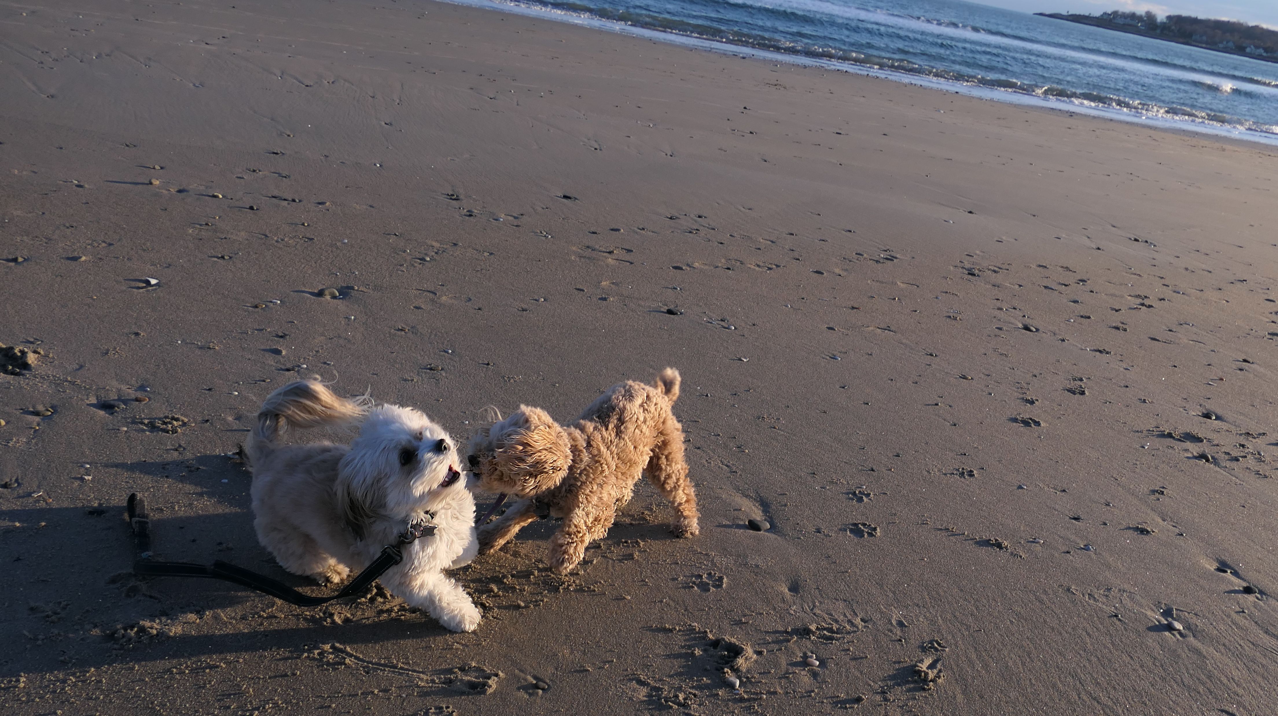 We were in Rhode Island, and it was a sunny day, so we thought we'd stop at the beach. Lexi was very happy with that decision, as she had a major case of the zoomies! She was eventually successful in getting Mandy to run and play too! It was late in the afternoon, and the low sun in the sky this time of the year made it very difficult to get good pictures, but I think a few of these came out nice! I love when I can get action shots!