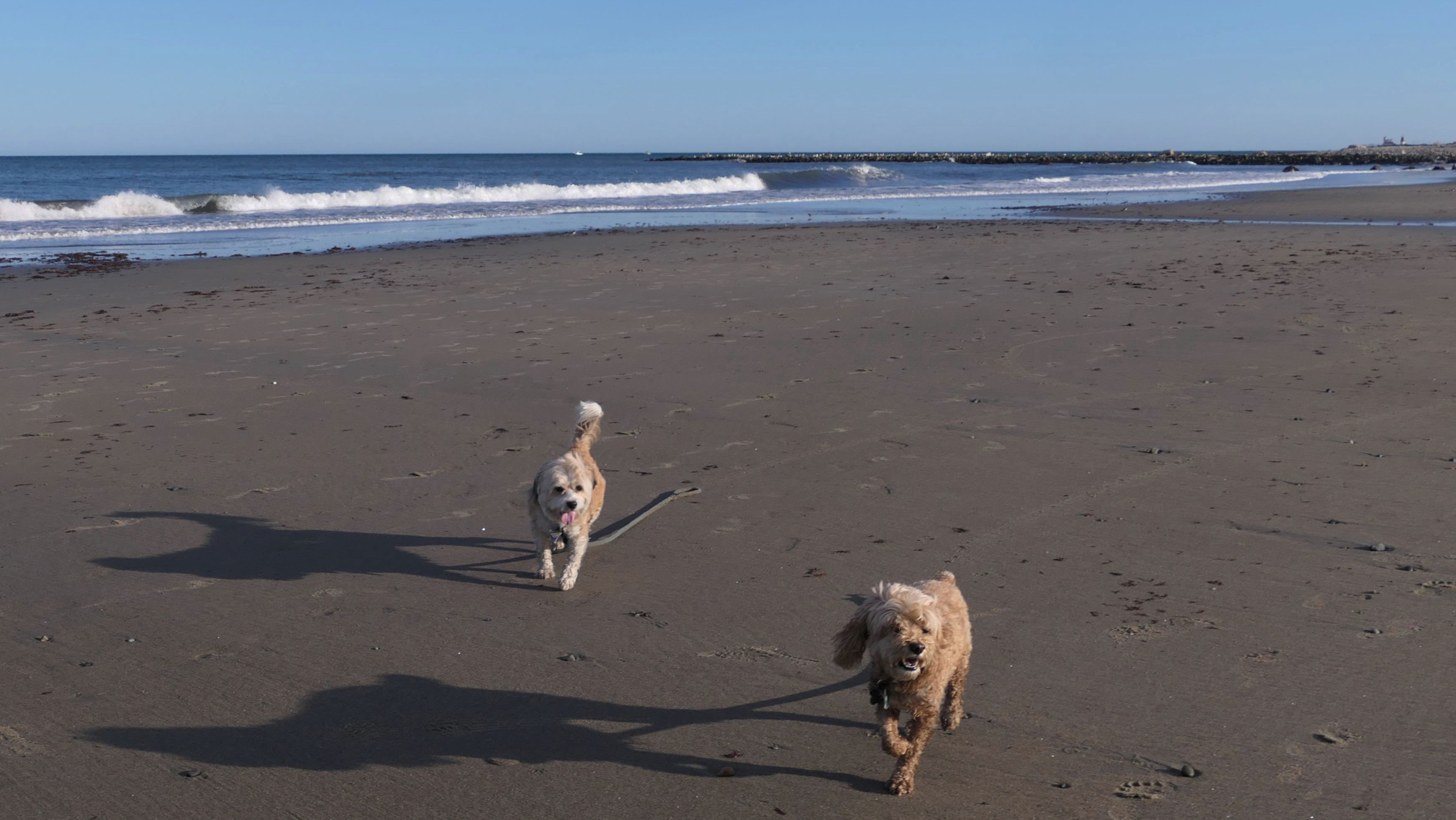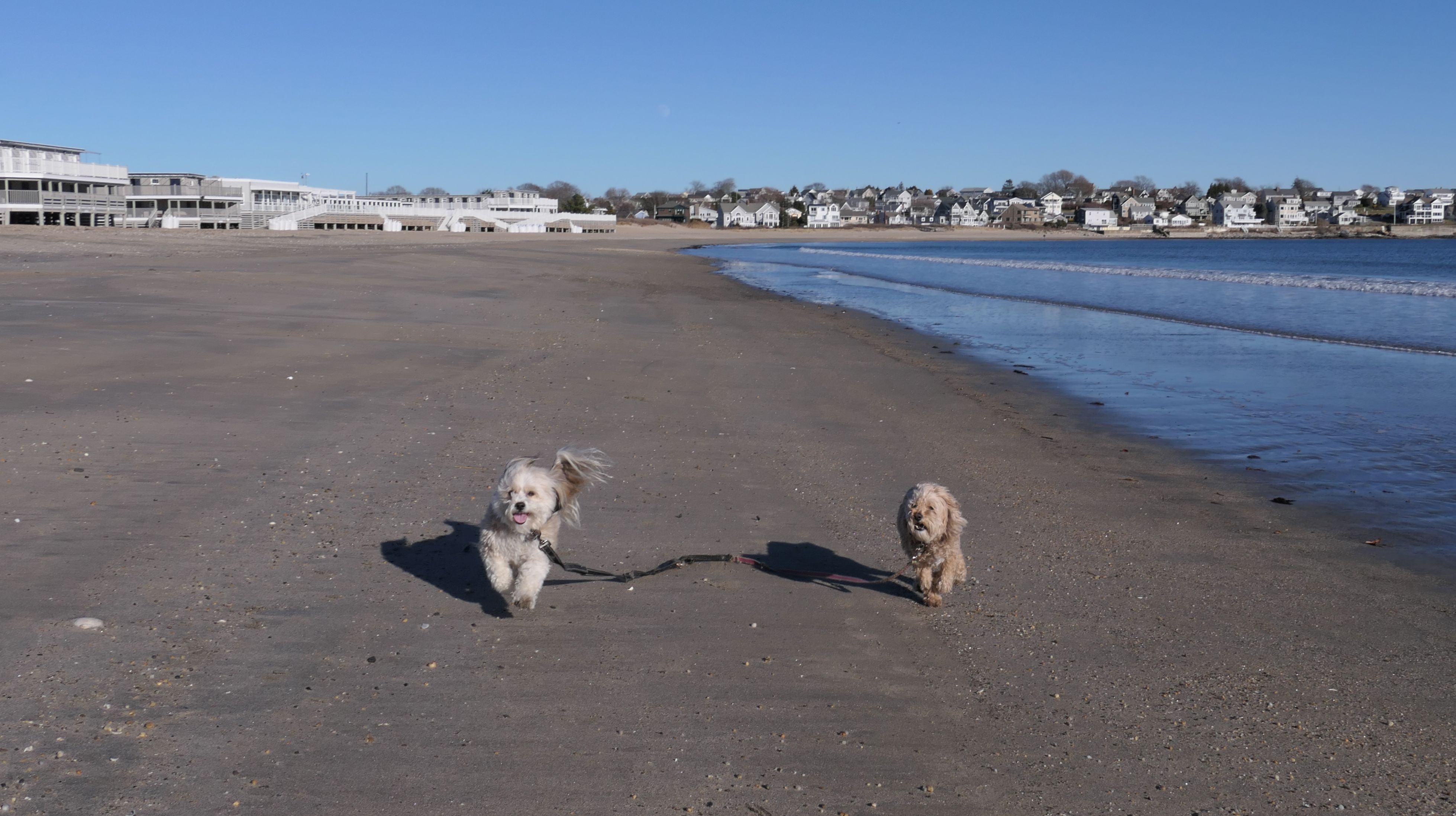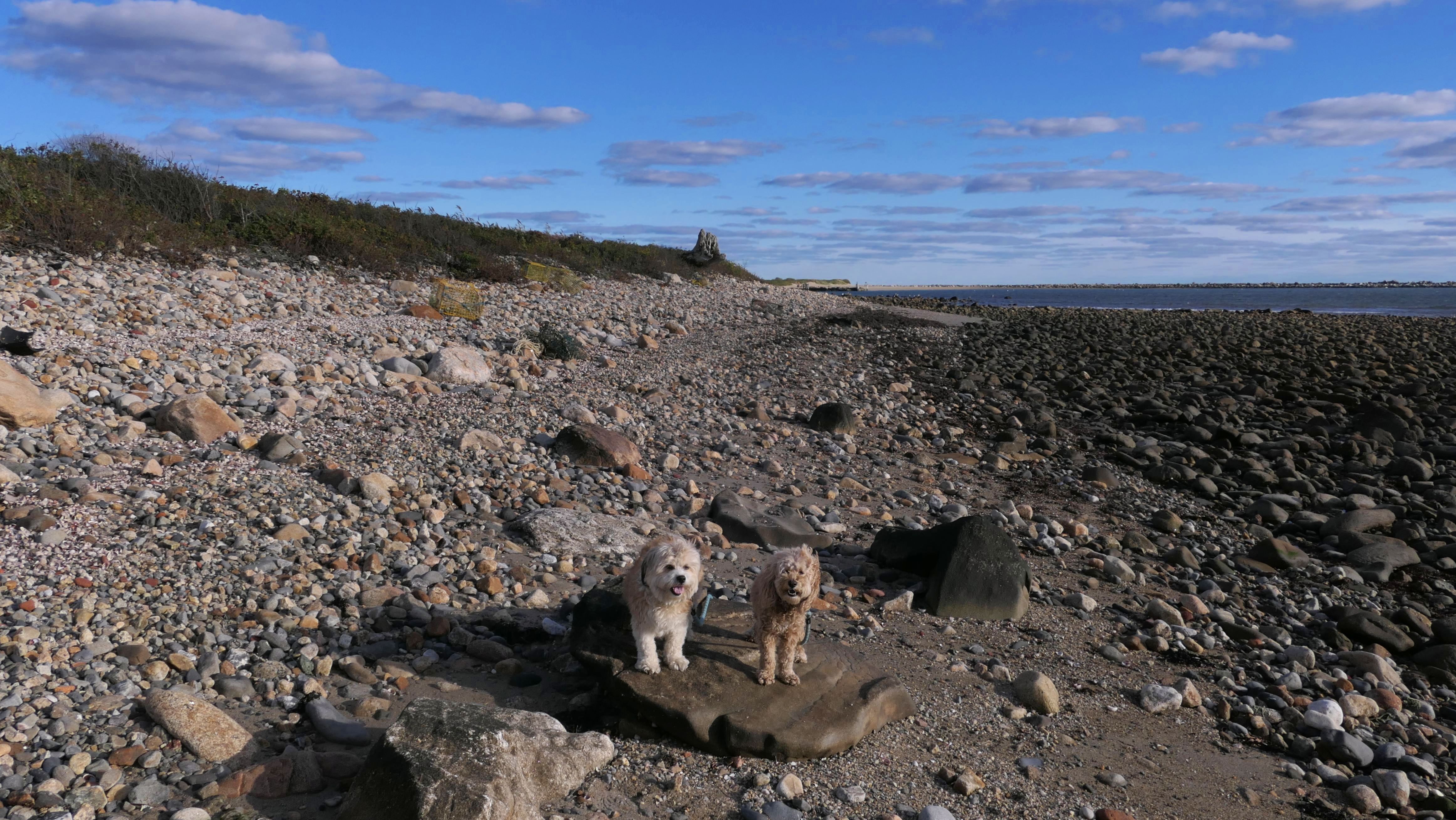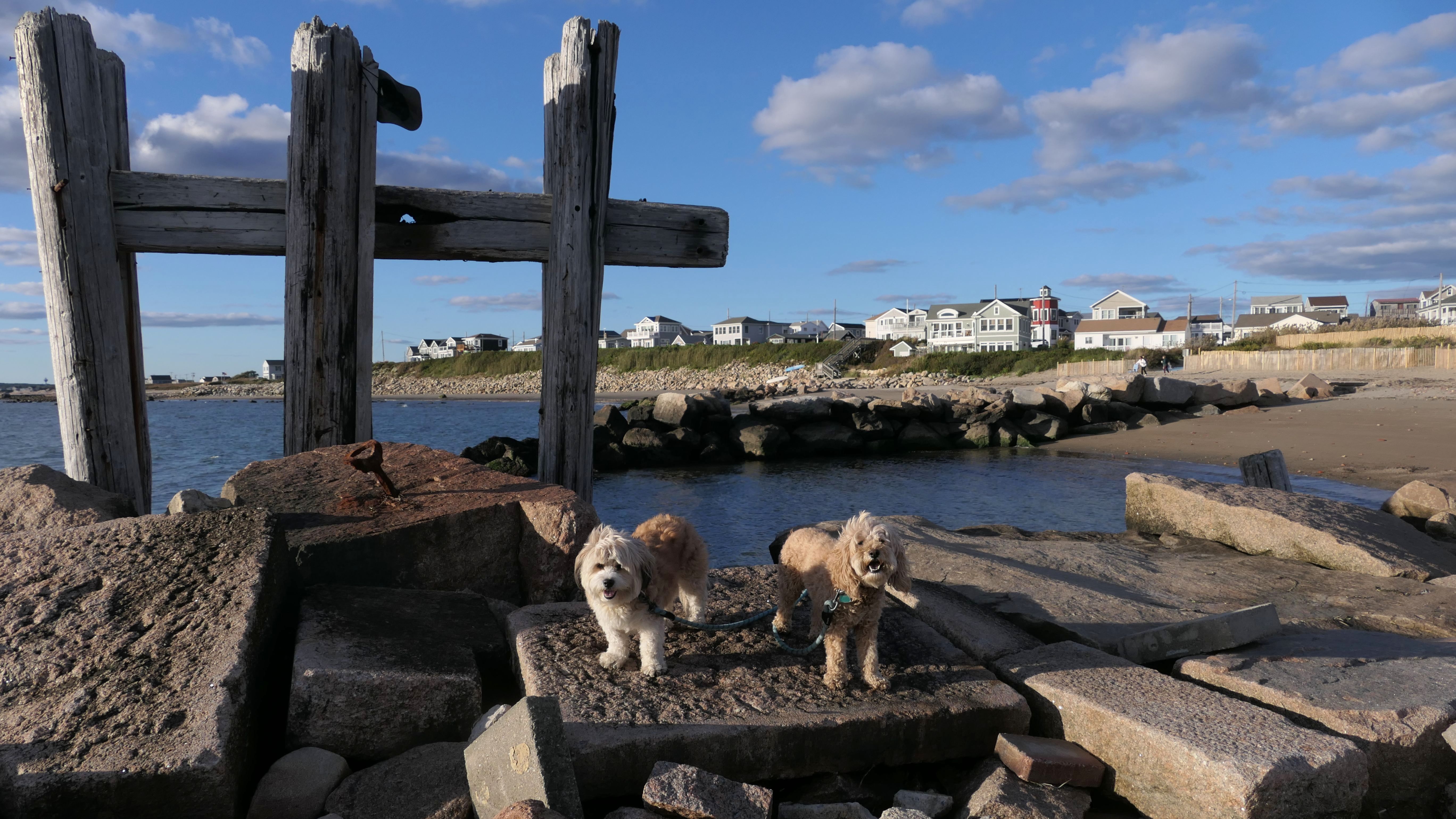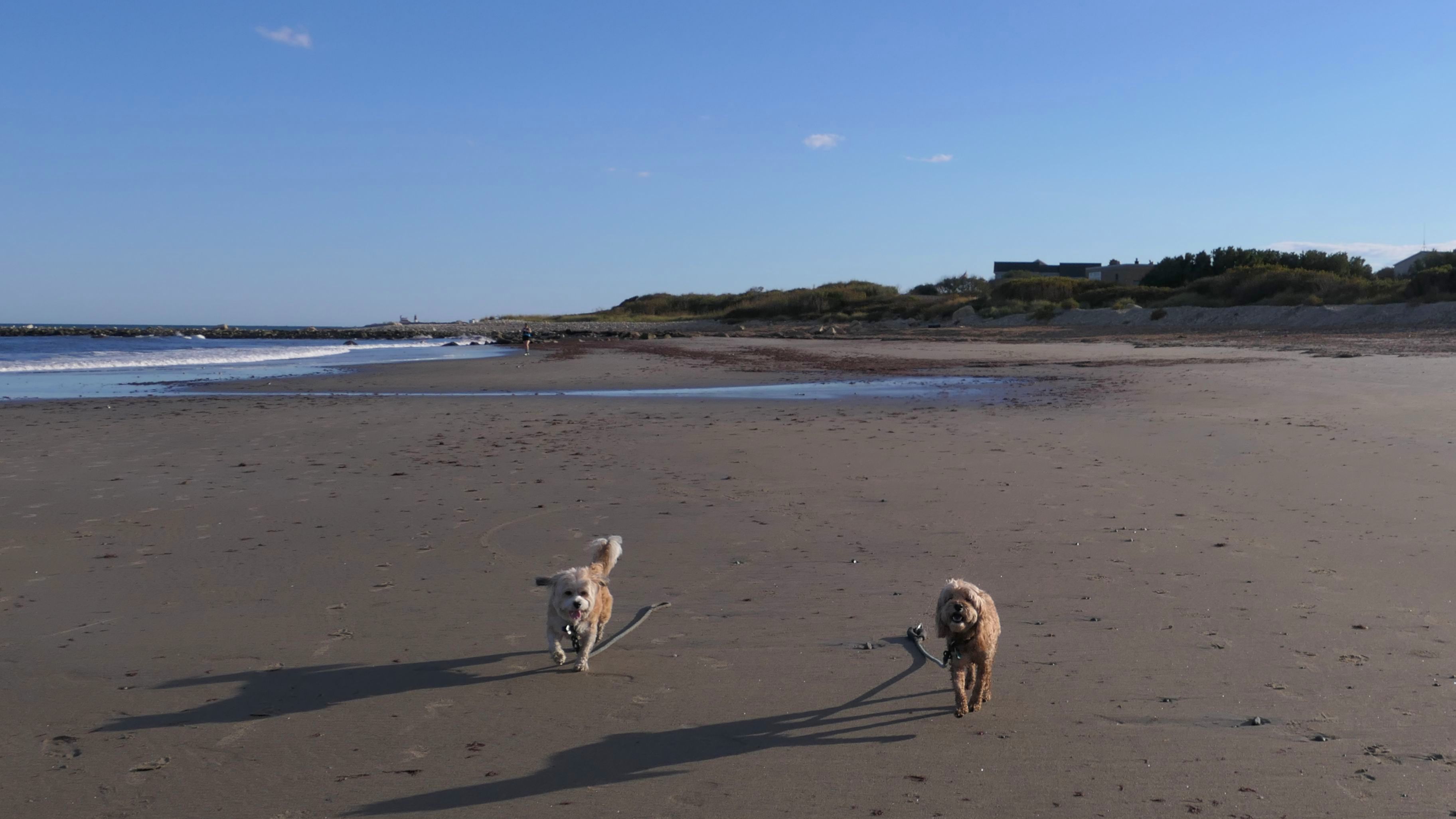 These are State Beaches in the Galilee section of Narragansett, right next to the Block Island Ferry. Dogs are allowed on Rhode Island State Beaches in the off-season, and even though it's 70 degrees in November, it's still the off-season. These beaches are connected, at least in the off-season. I think there might be a private beach in between that's roped off during the summer. I'm not really sure. These are okay beaches, but I think the Town Beach is nicer.