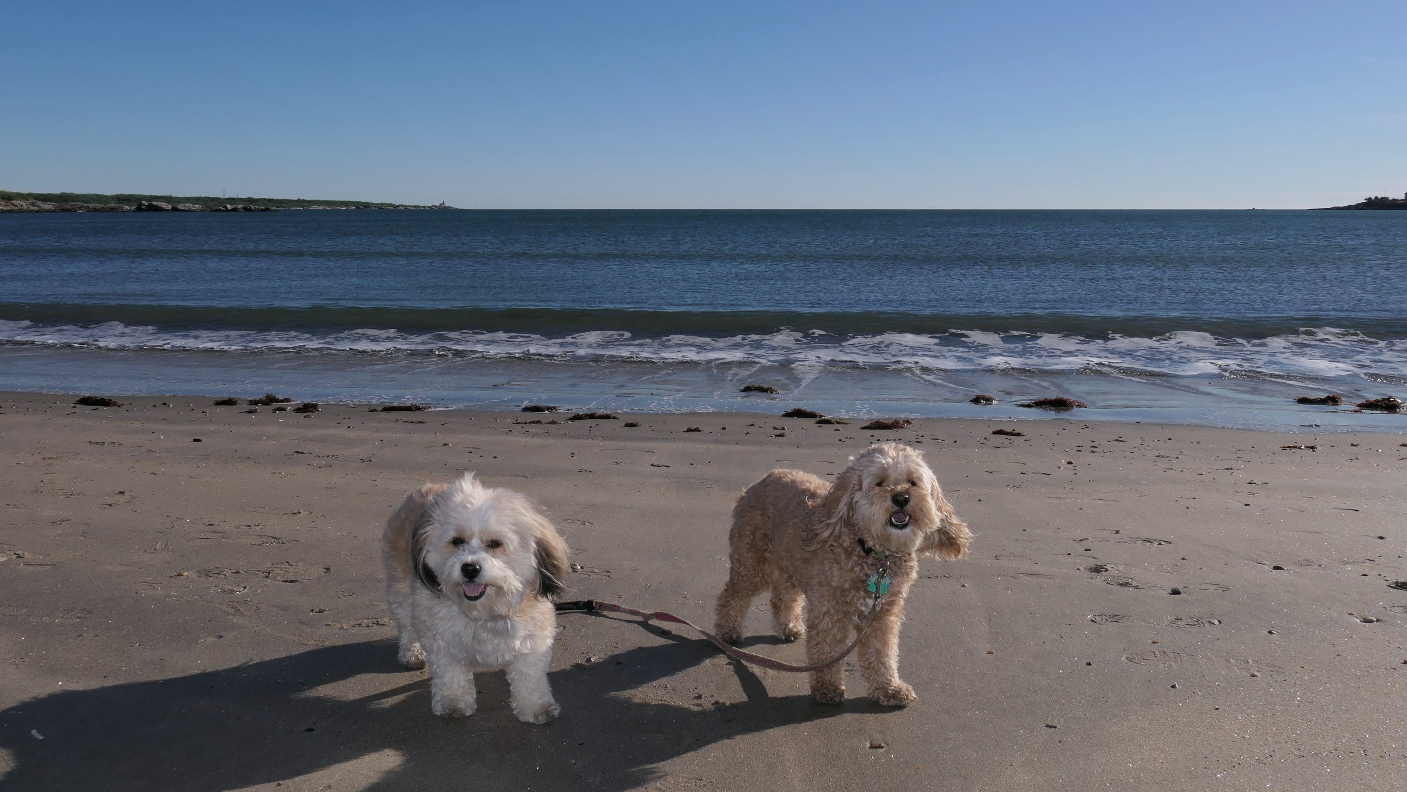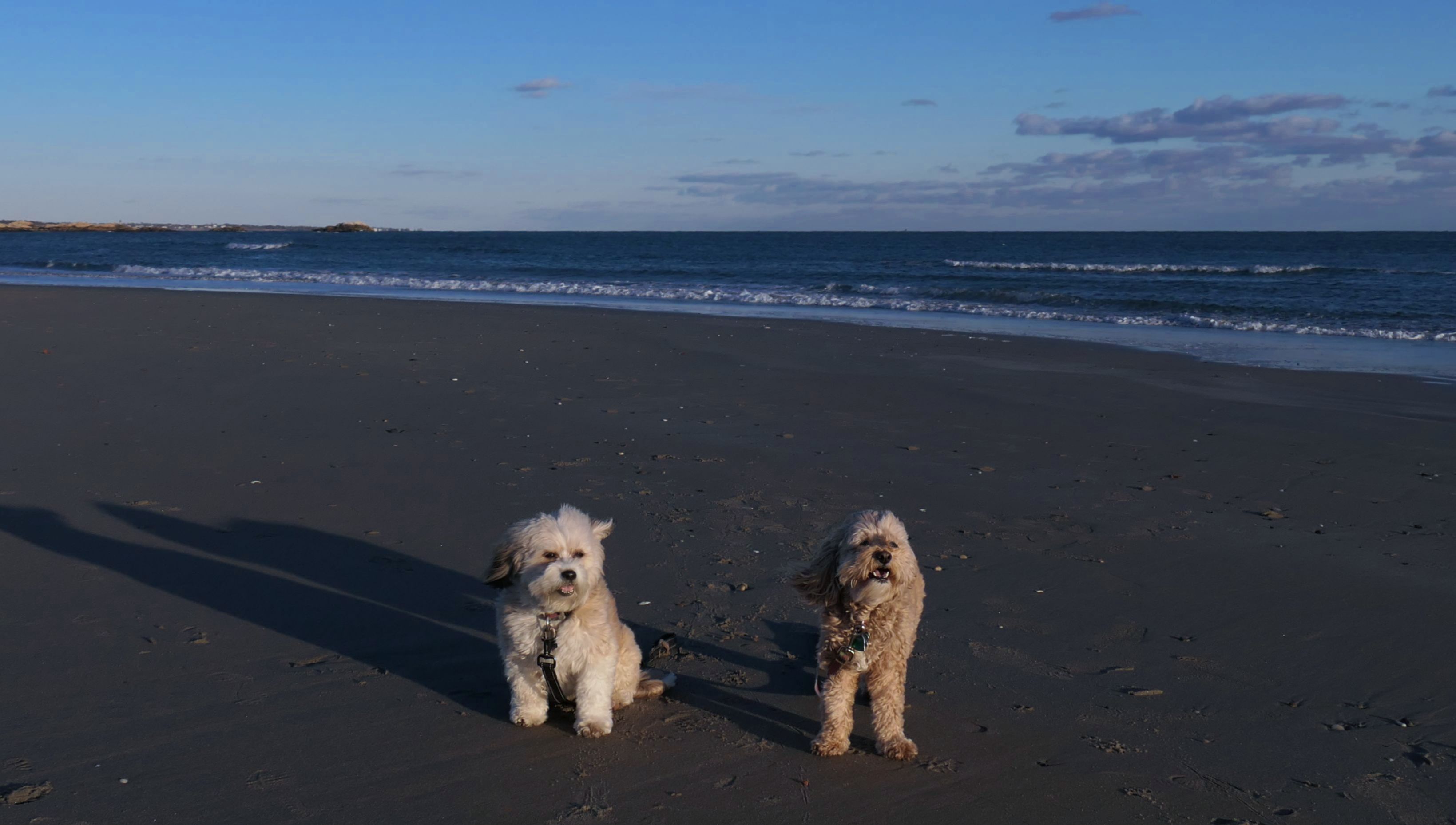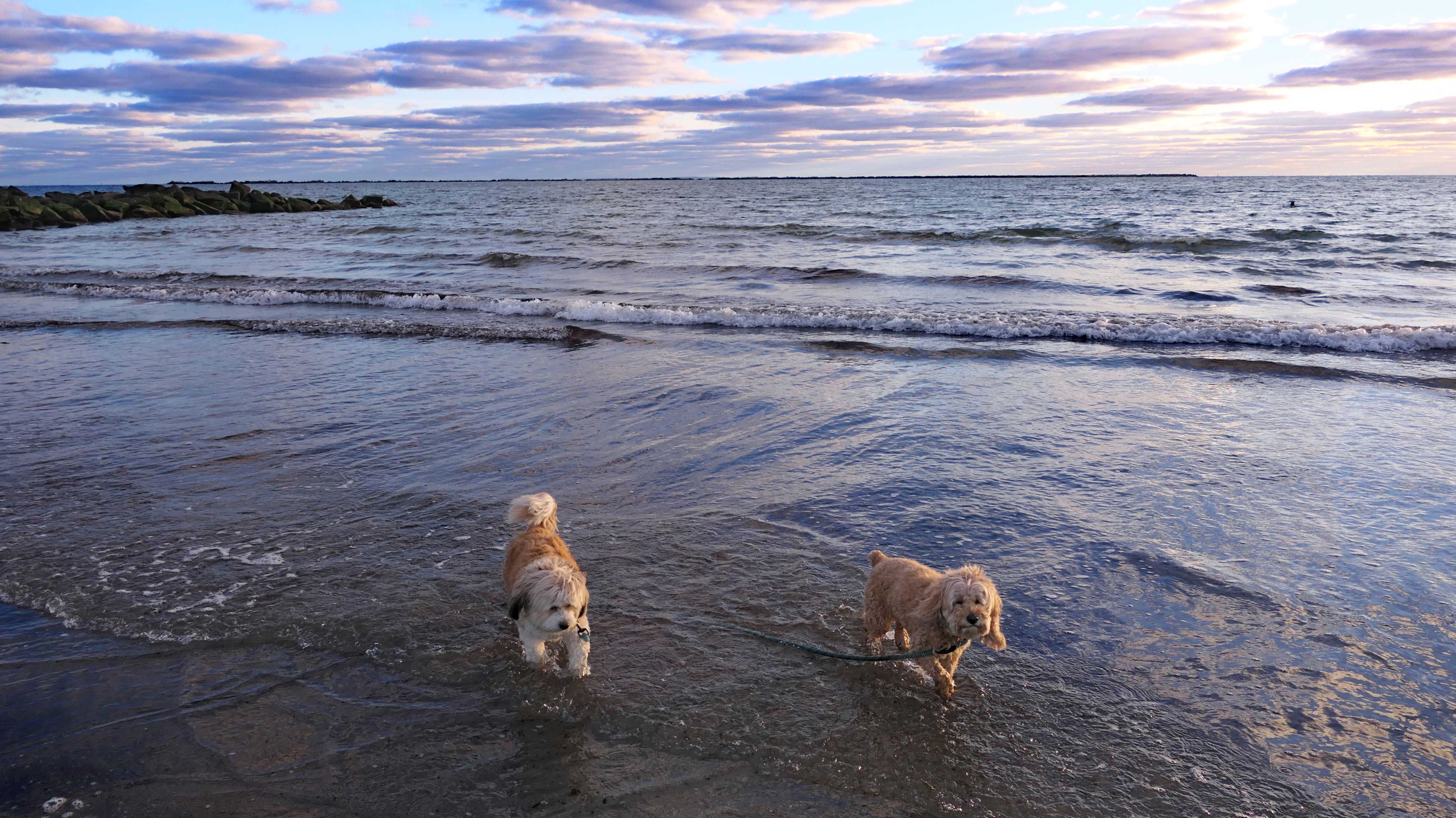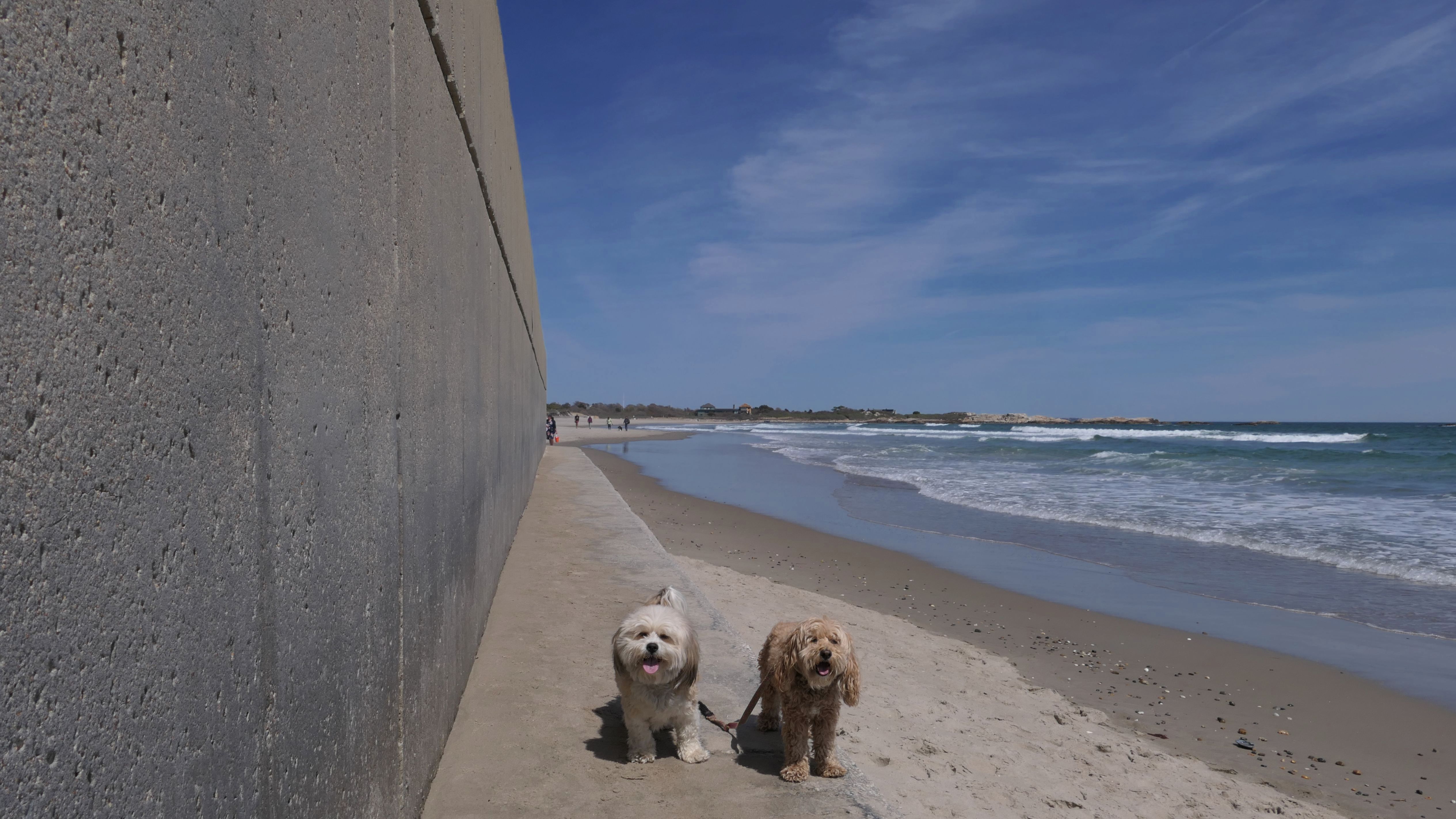 These are State Beaches in the Galilee section of Narragansett, right next to the Block Island Ferry. Dogs are allowed on Rhode Island State Beaches in the off-season, and even though it's 70 degrees in November, it's still the off-season. These beaches are connected, at least in the off-season. I think there might be a private beach in between that's roped off during the summer. I'm not really sure. These are okay beaches, but I think the Town Beach is nicer.