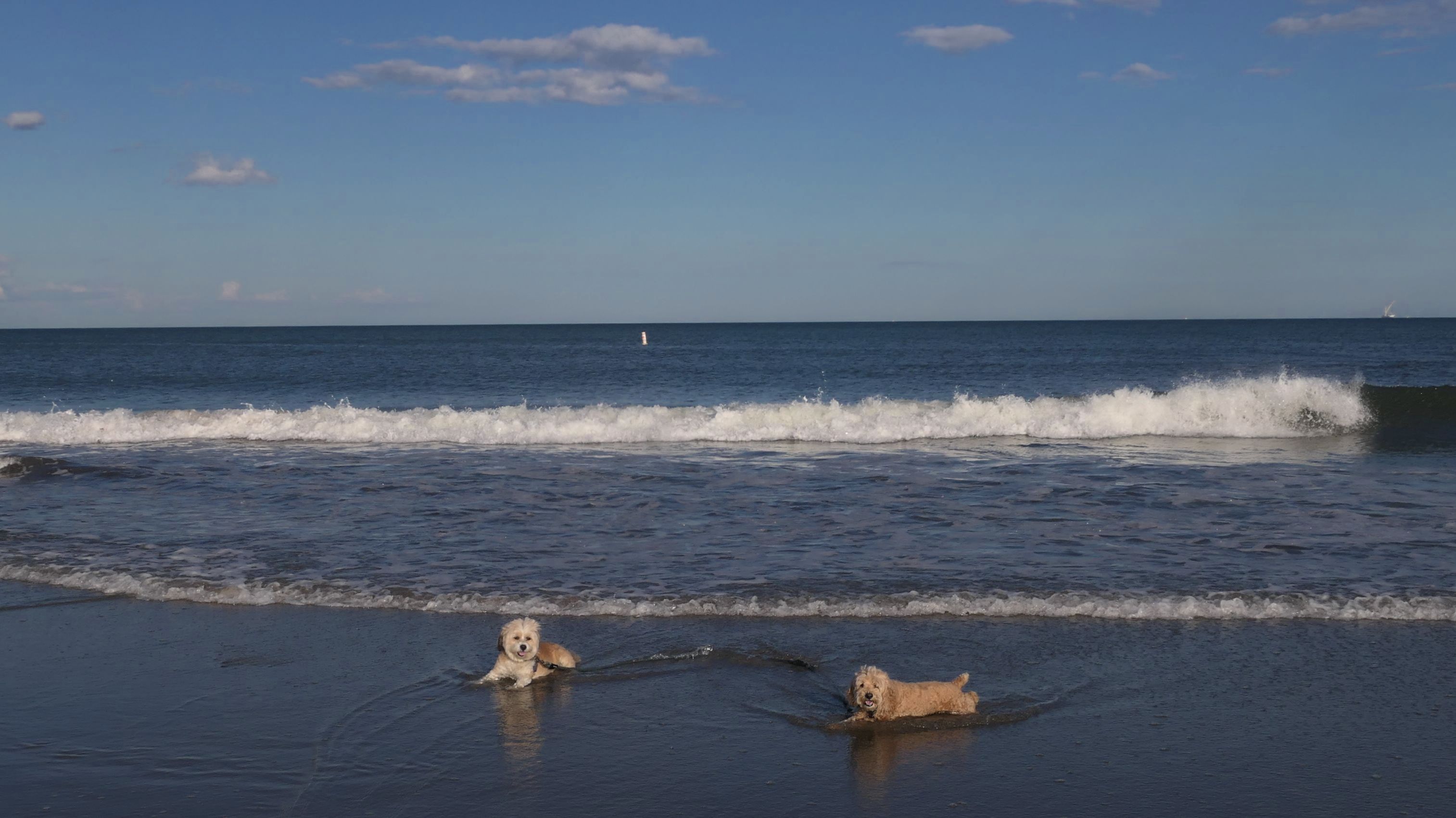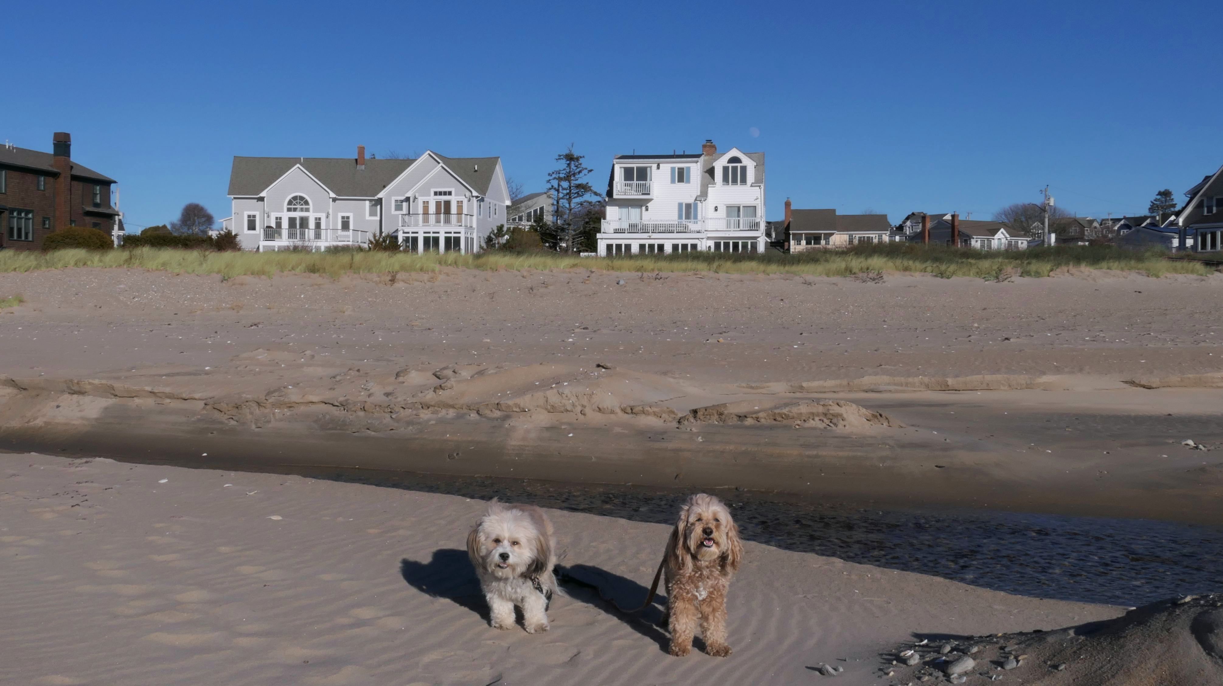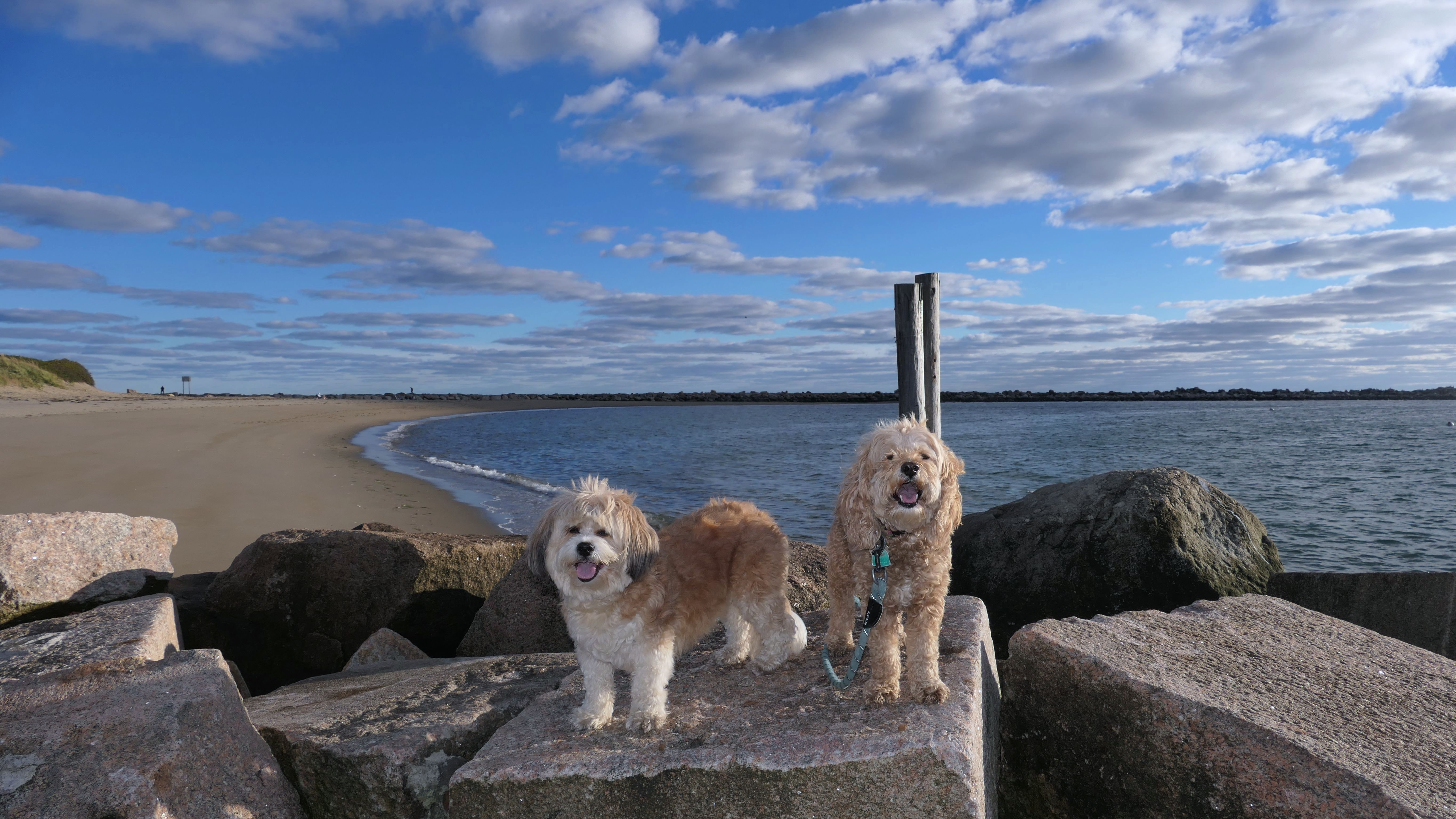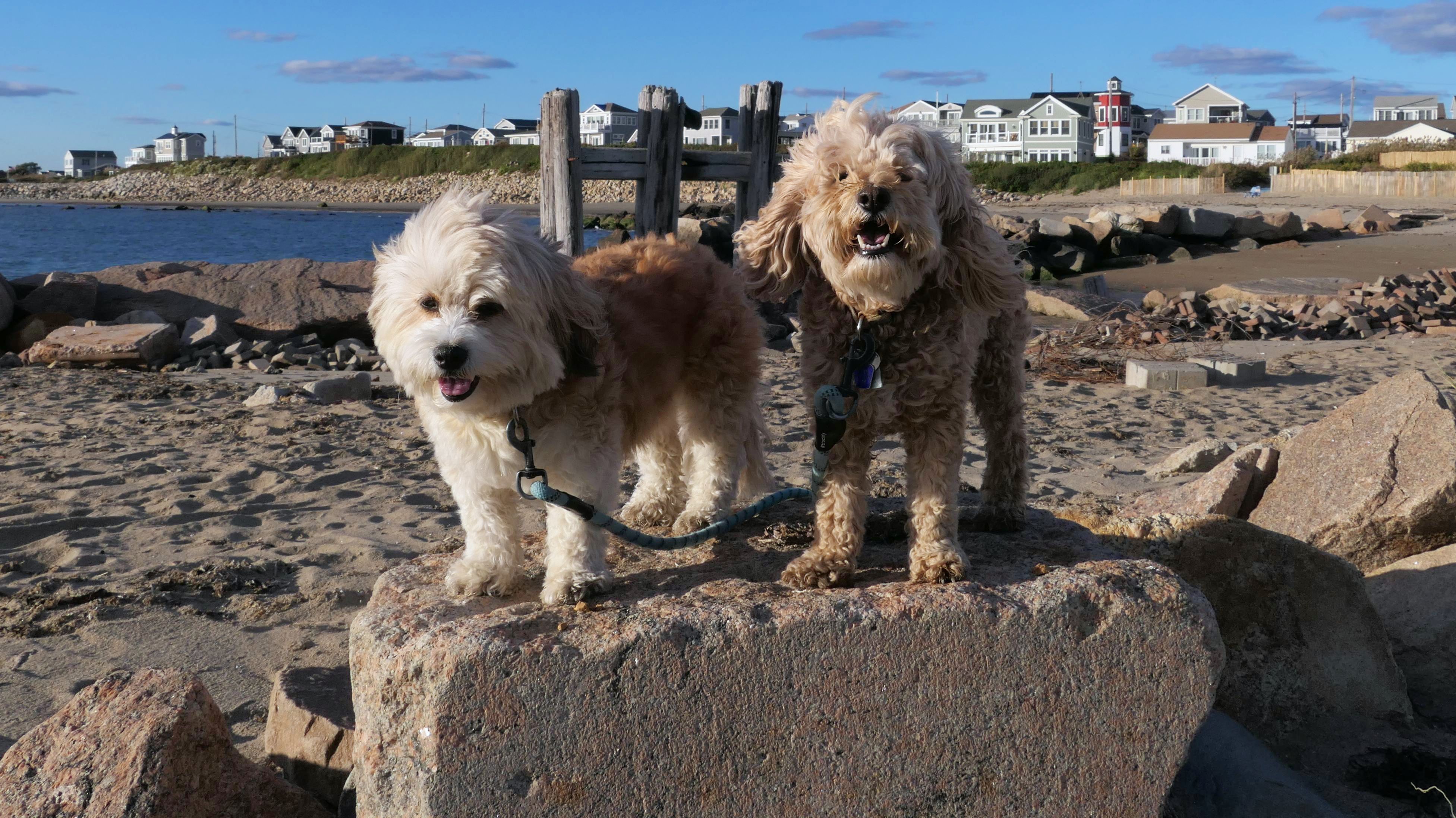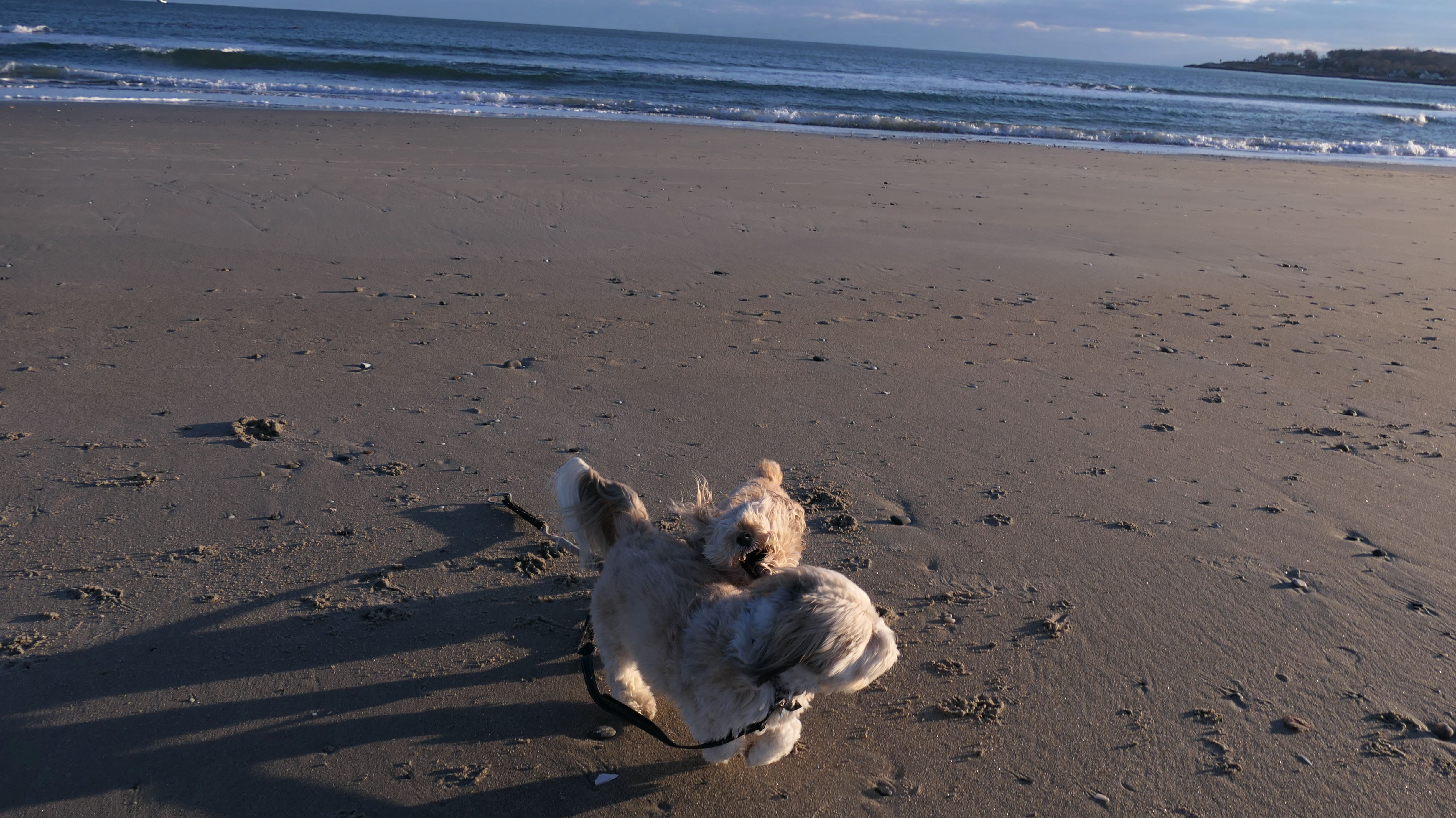 These are State Beaches in the Galilee section of Narragansett, right next to the Block Island Ferry. Dogs are allowed on Rhode Island State Beaches in the off-season, and even though it's 70 degrees in November, it's still the off-season. These beaches are connected, at least in the off-season. I think there might be a private beach in between that's roped off during the summer. I'm not really sure. These are okay beaches, but I think the Town Beach is nicer.