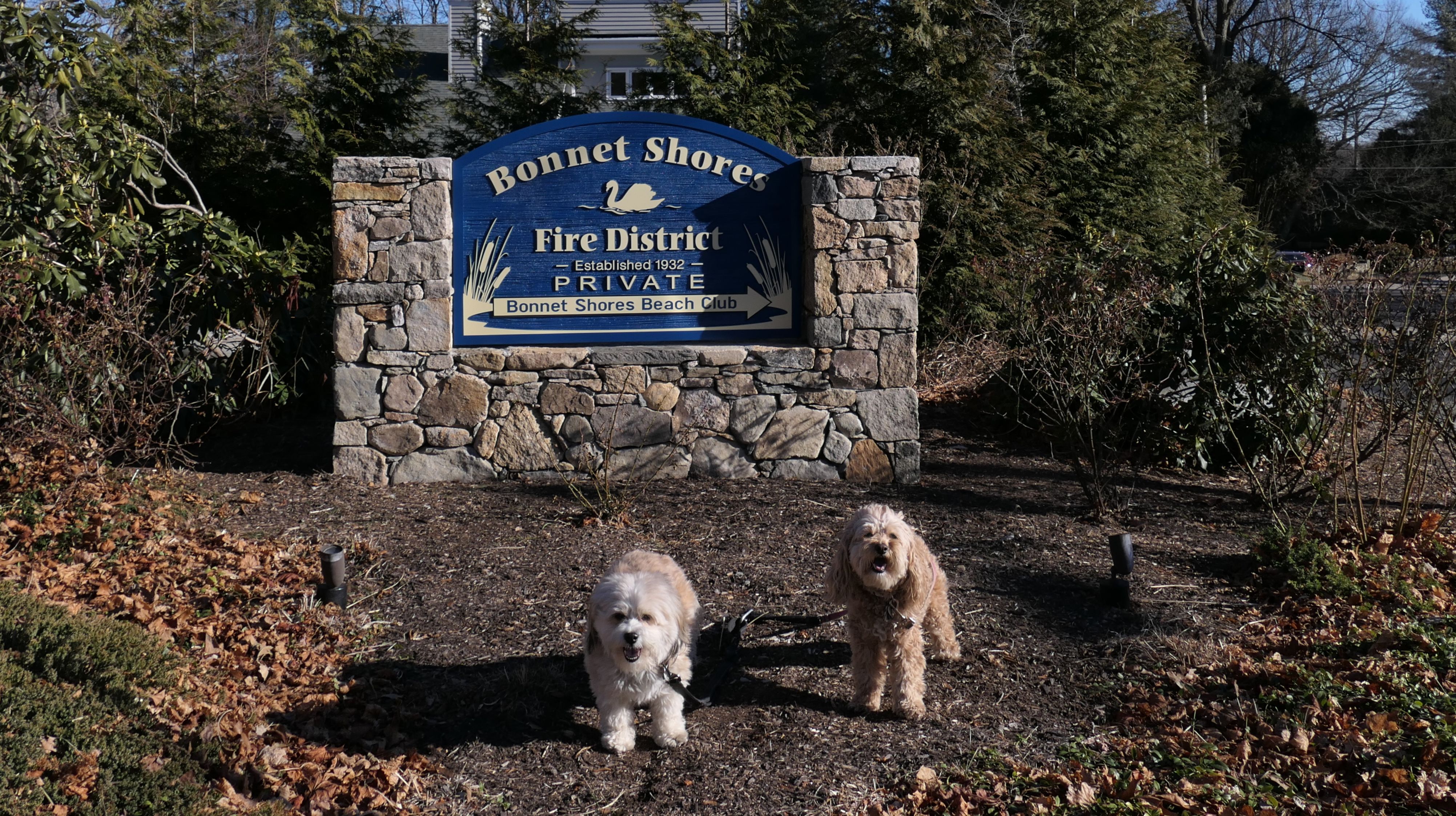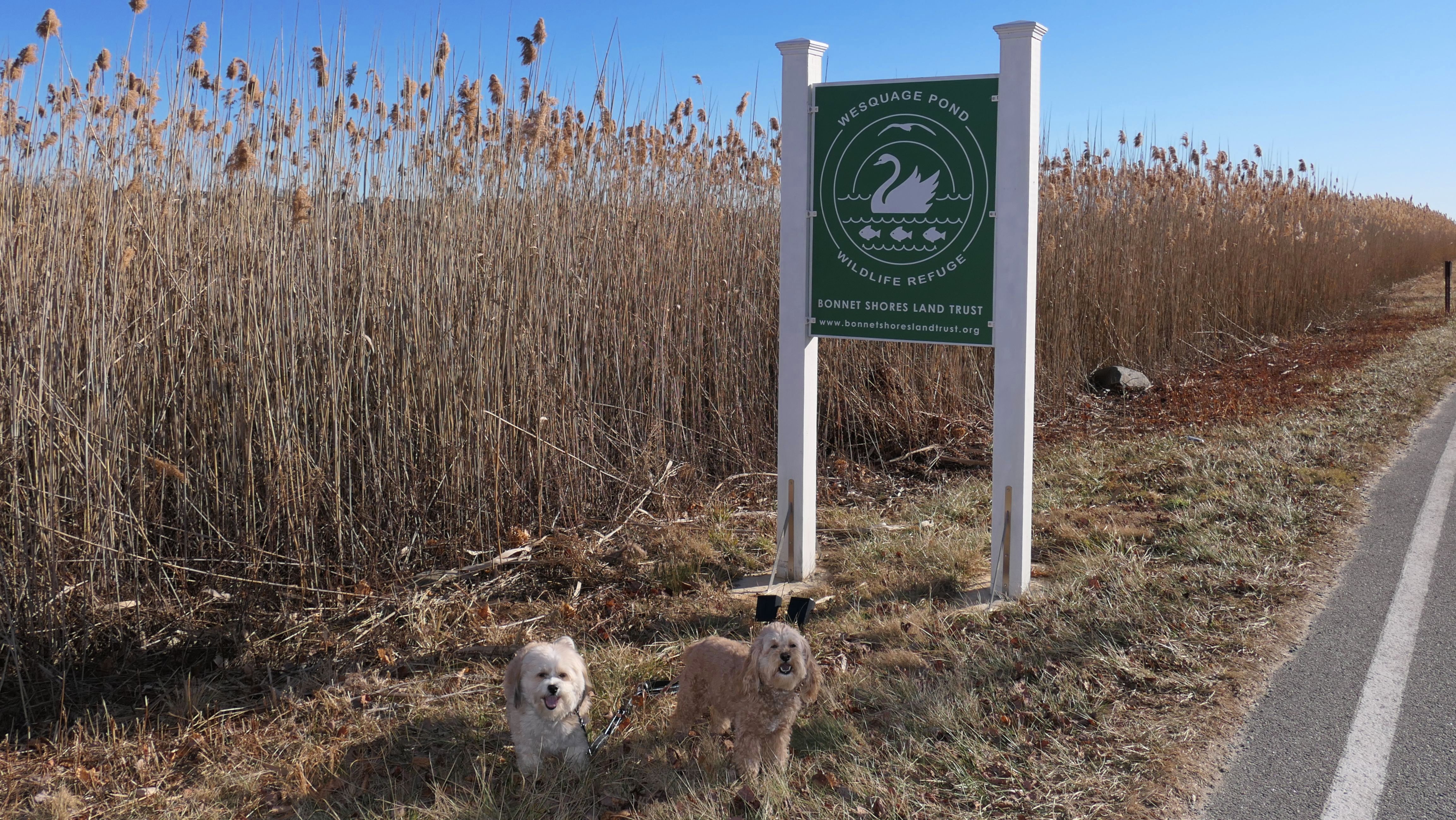 This is a town park in the Bonnet Shores neighborhood of Narragansett. There's not a lot for dogs here. The pups are not allowed on the athletic fields or the playgrounds. I didn't see any trails, but you could walk along the perimeter of the park. One thing the park had that was surprising, was a real indoor rest room. Not only was it open, it was also clean and heated as well! That's very impressive for a town park, especially on a weekday in the middle of January! In all fairness, I knew there wasn't much here. We basically parked here for our nearly six mile walk through the Bonnet Shores neighborhood. From here we headed south on Boston Neck Road, and then east on Bonnet Shore Road, where our first stop was the Wesquage Pond Wildlife Refuge.