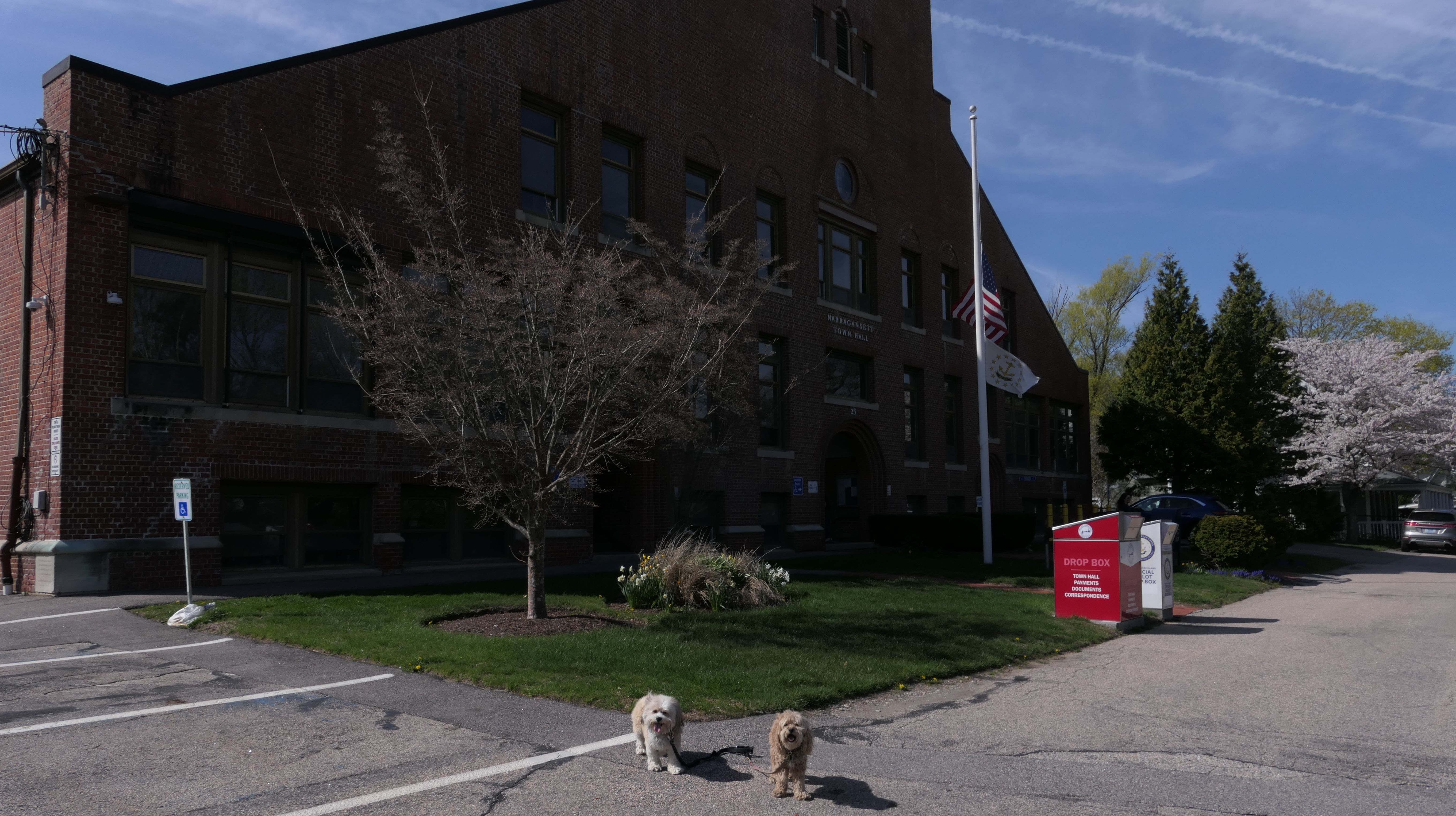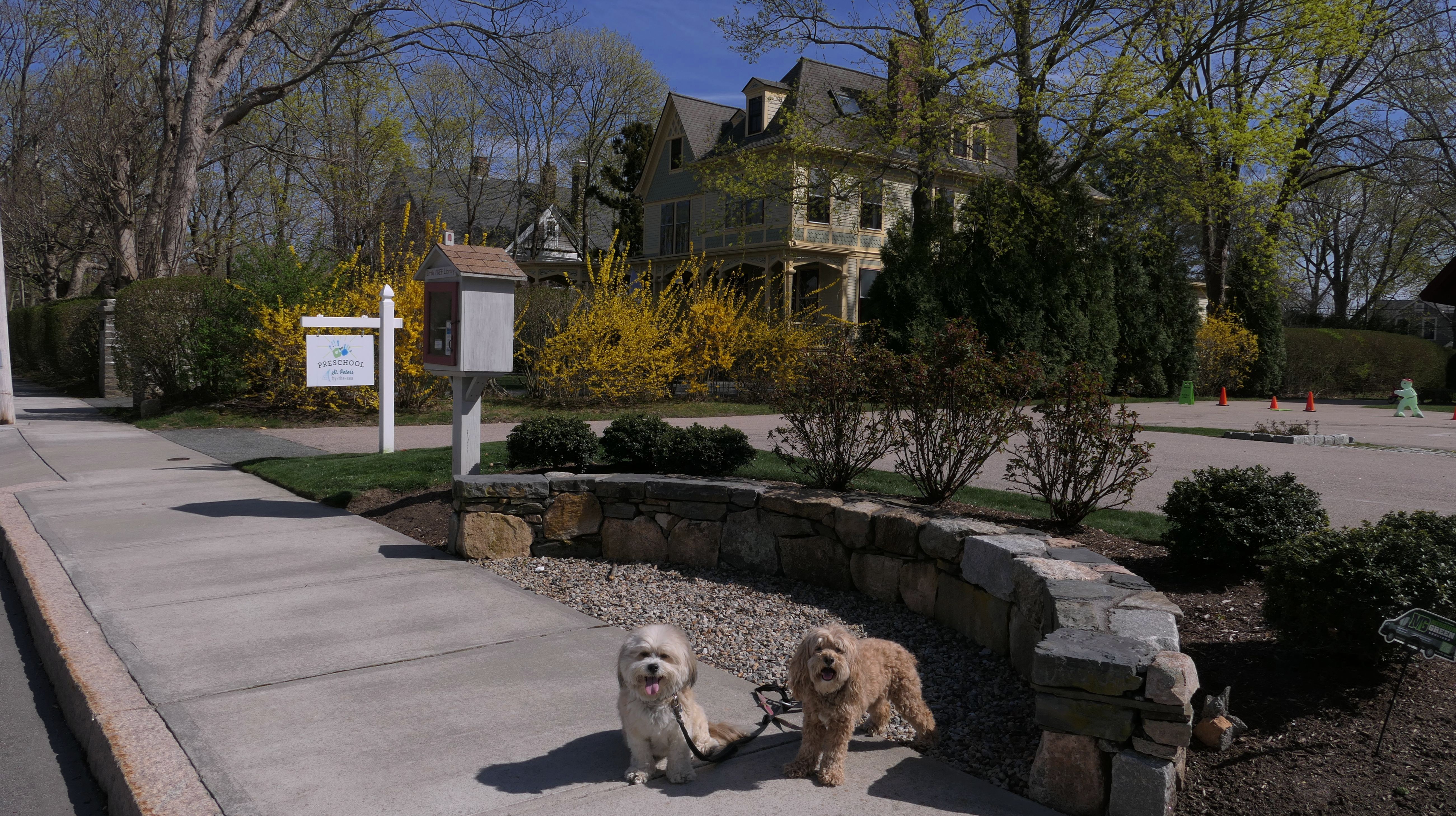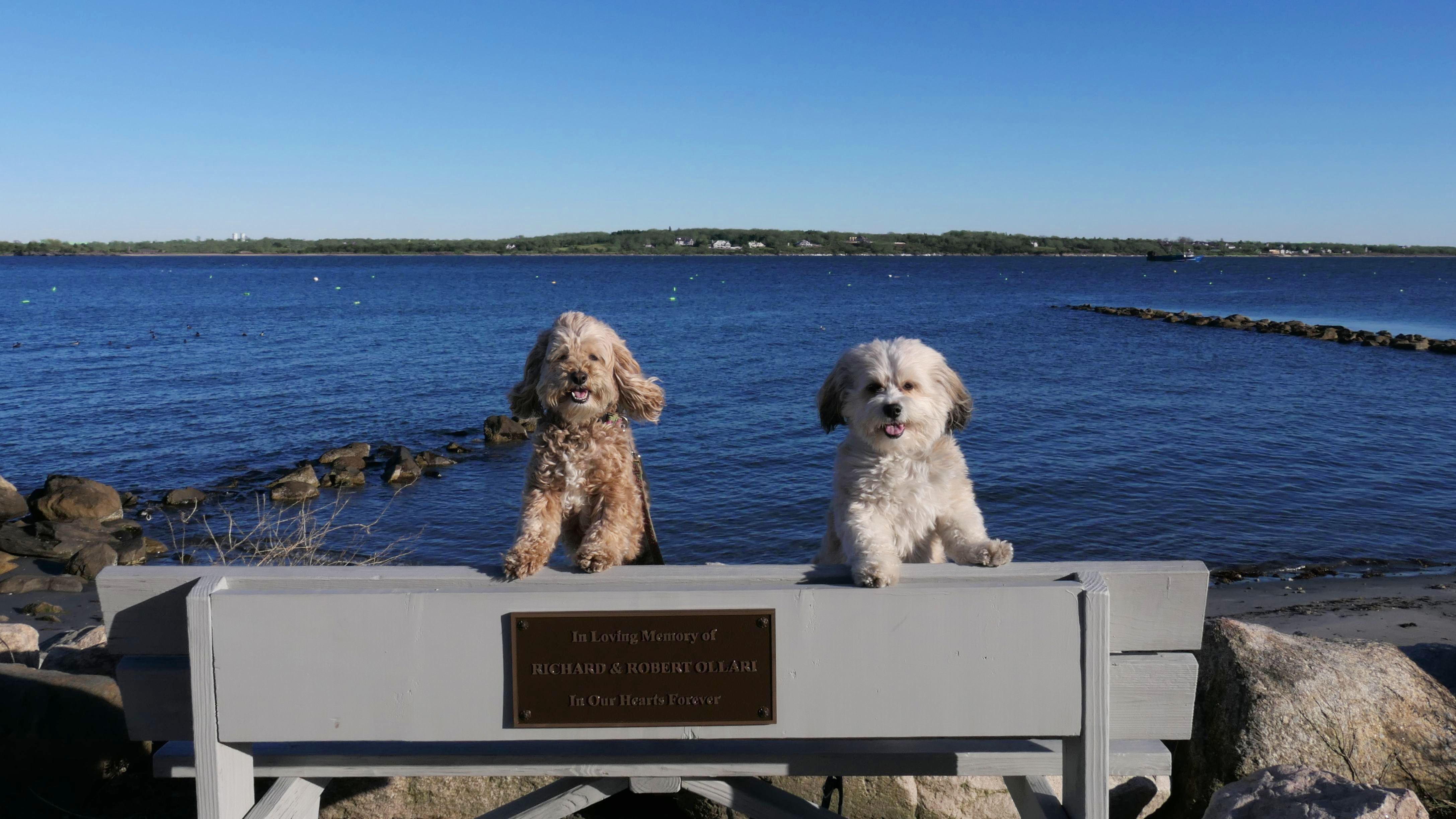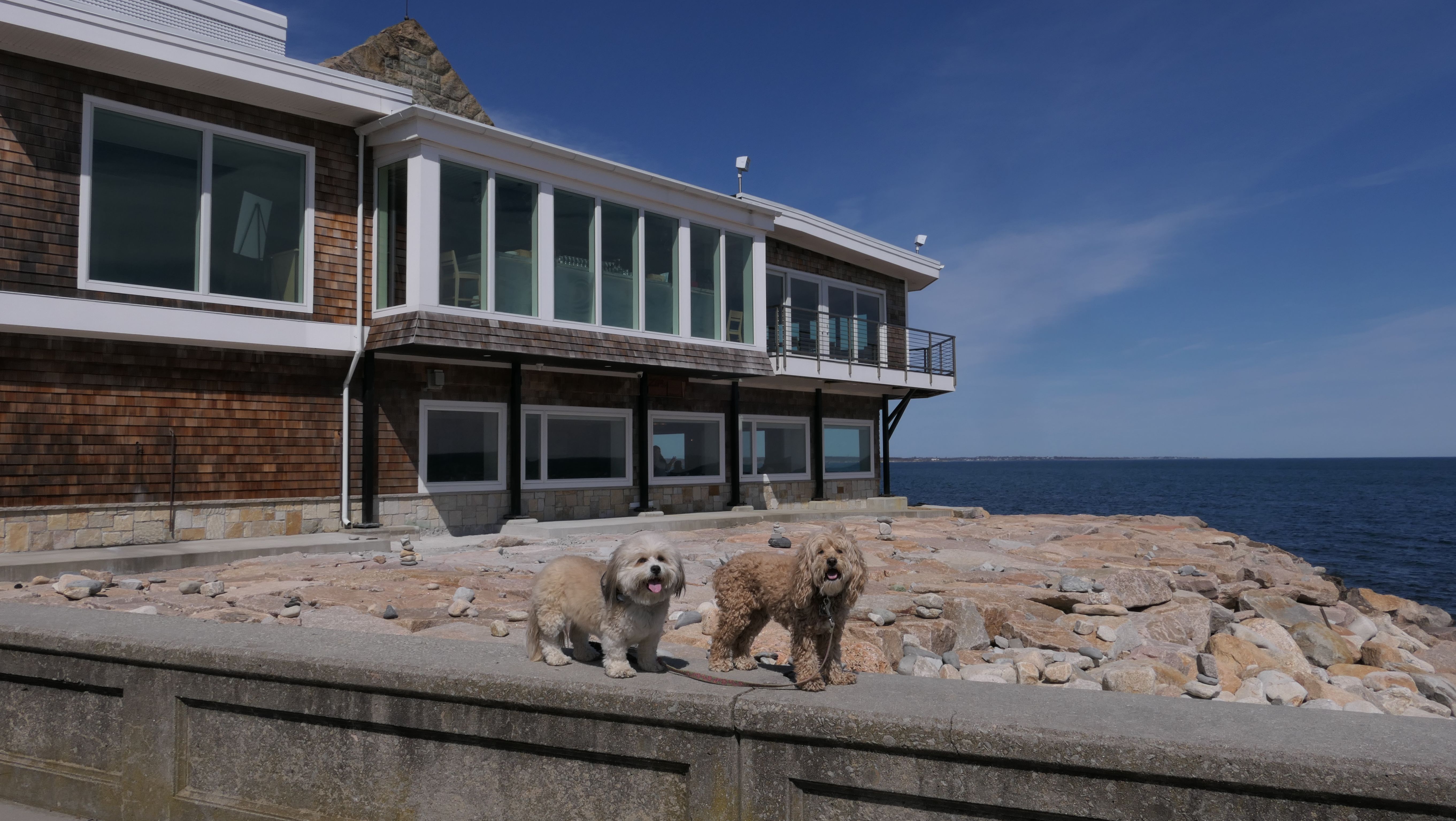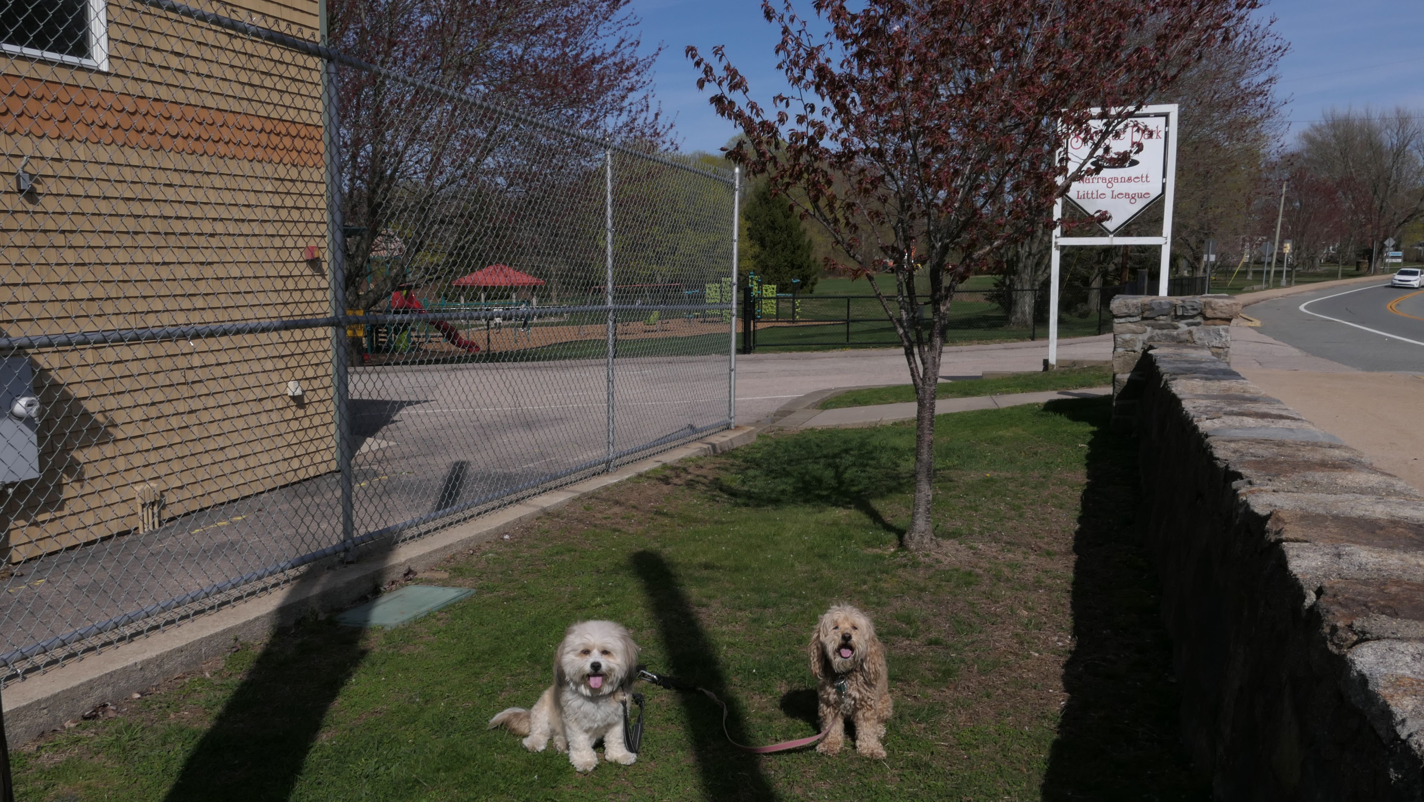 Somehow I was able to find another dog-friendly beach in Narragansett that we hadn't visited yet! This beach is located on University of Rhode Island's Narragansett Bay Campus, and is open to the public. There's not that much information on-line about it. Dogs are welcome year round. The beach is small. It's in the northern part of Narragansett, looking out into the bay, rather than the open ocean. The waves are mild, but that's just how Mandy & Lexi like it. They wasted no time getting into the water! There are views of both the Jamestown and Newport bridges from here. A distinguishing feature of the beach, is the RV Endeavor, a research vessel docked here. We also walked around the small campus a bit, and took some nice photos in front of the campus buildings.