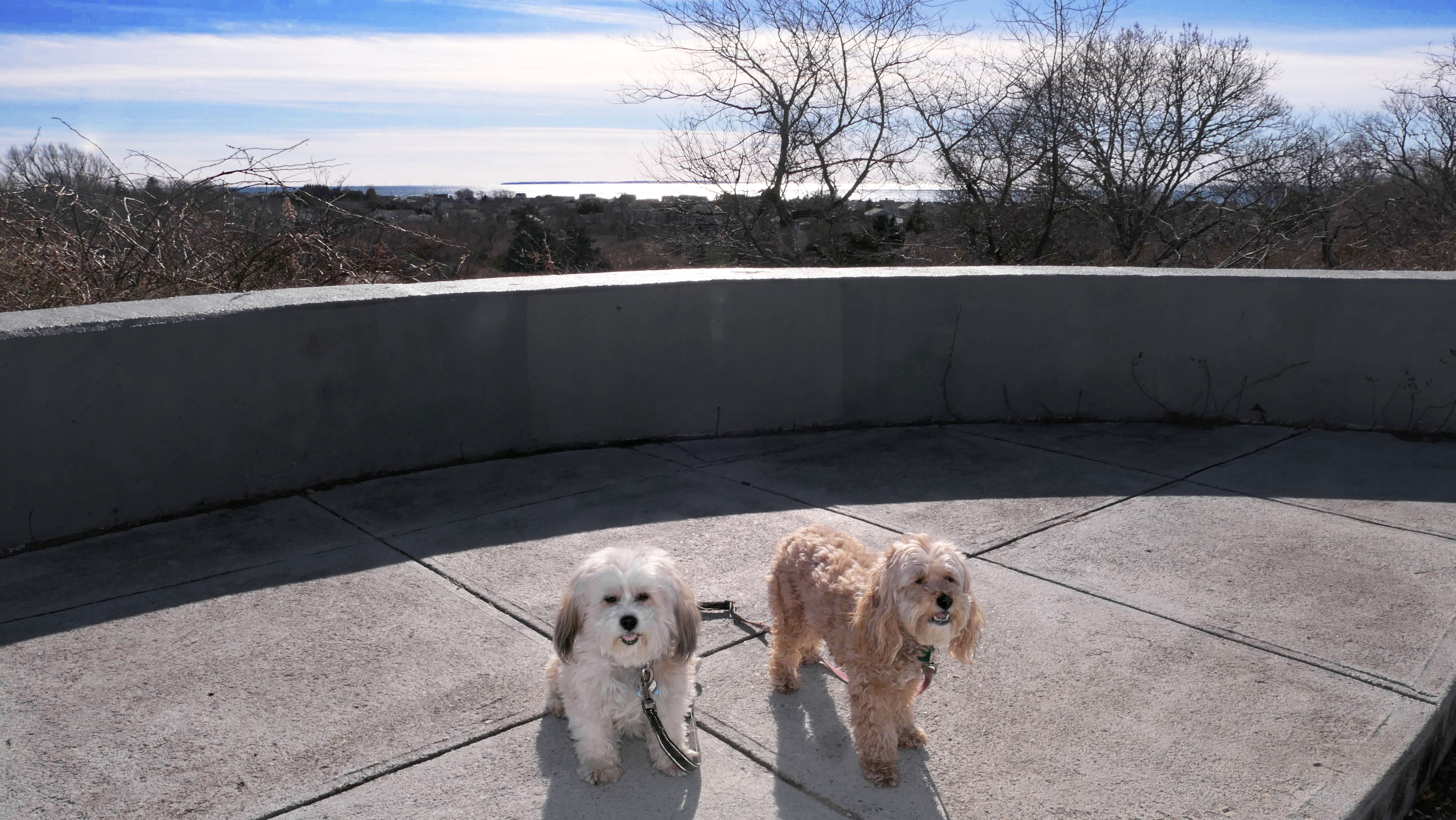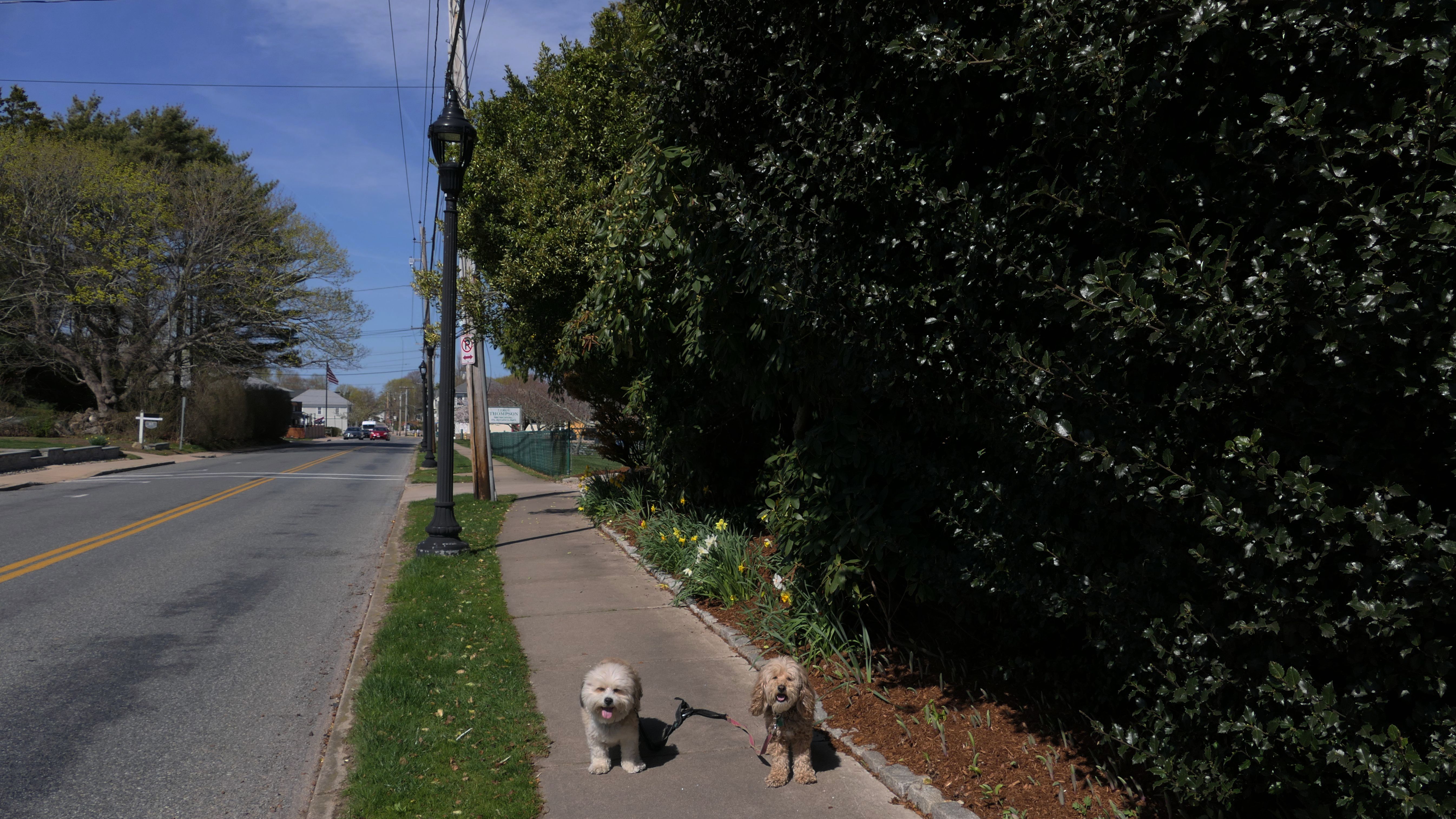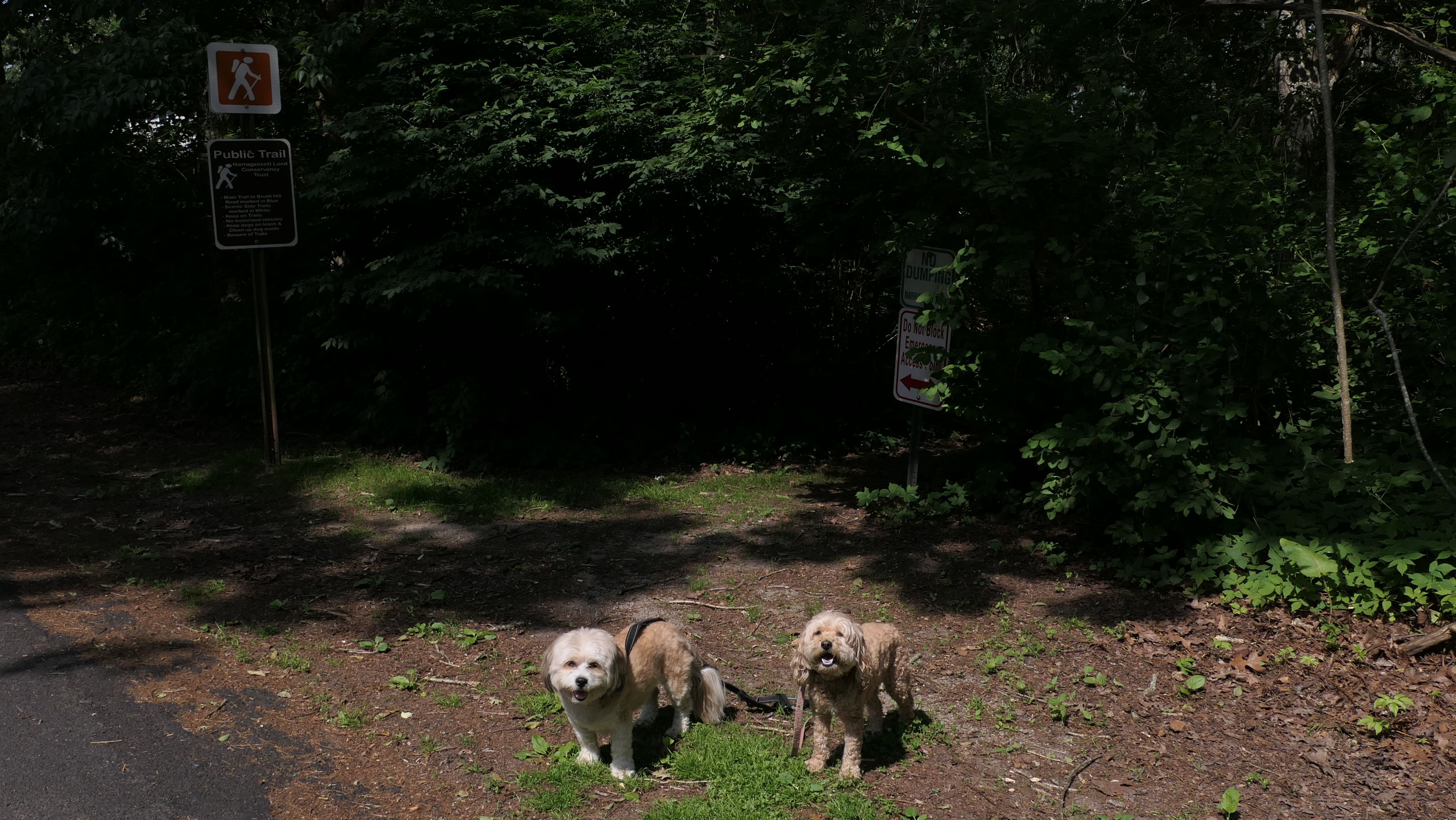 This is a beatiful trail. We parked at Narragansett Town Beach, and headed to the trail head across the street. It's a completely flat, easy trail that heads to the South County Museum (you can park for free here to access the trail during the beach season), and eventually ends at the Community Center near the Elementary School. Near the museum, the trail runs right by the farm animals. As you can see in the photo, Mr. Goat insisted on posing for a picture as well. As great as this trail is, there is one huge problem with it...and that was ticks! The dogs were covered with them! So I would avoid this trail this time of year. I've read that the bugs are relentless during the summer months, so that might not be a great time either. It probably looks pretty "bleh" in the winter, so maybe the fall is a good time to visit.
