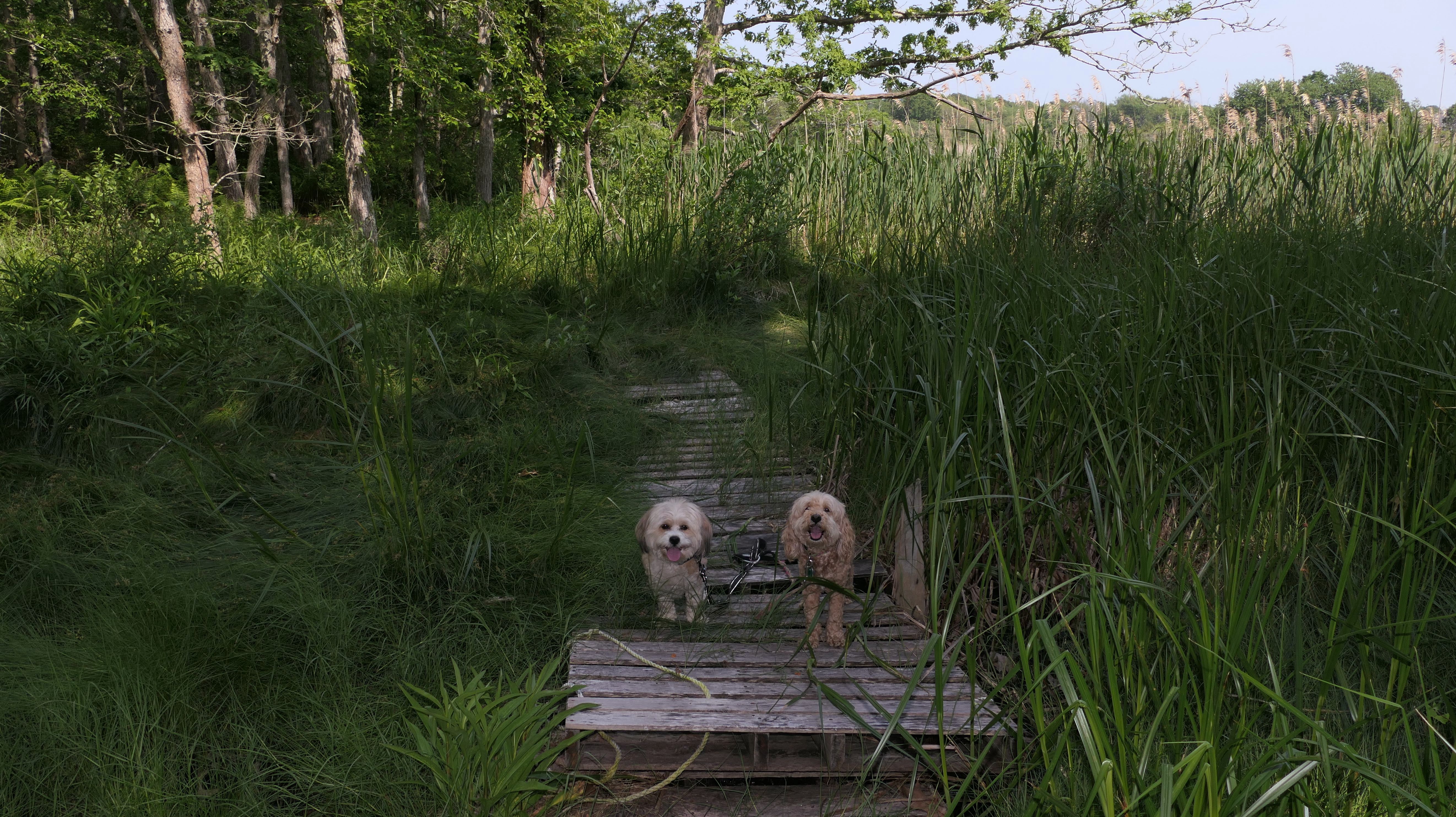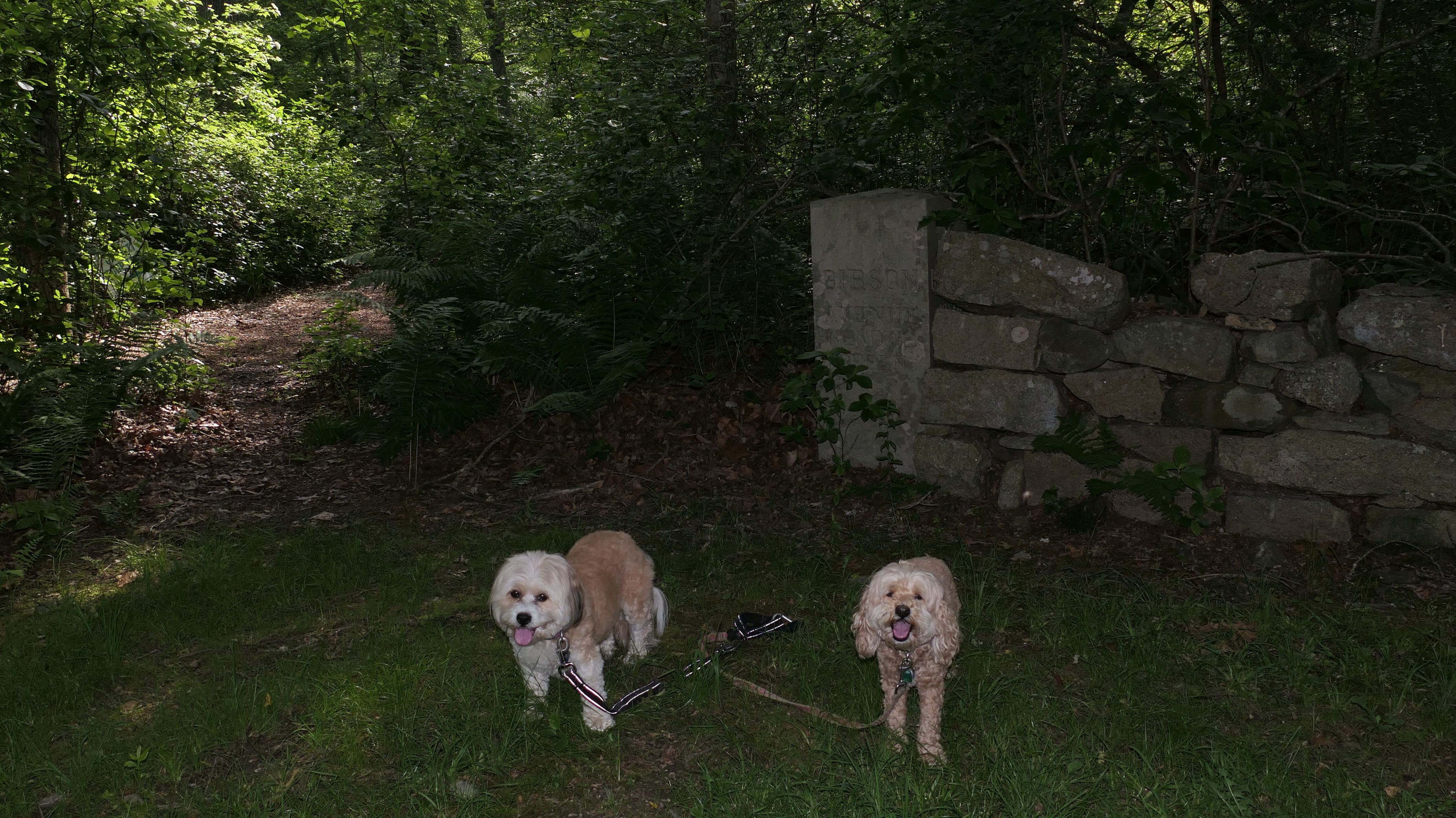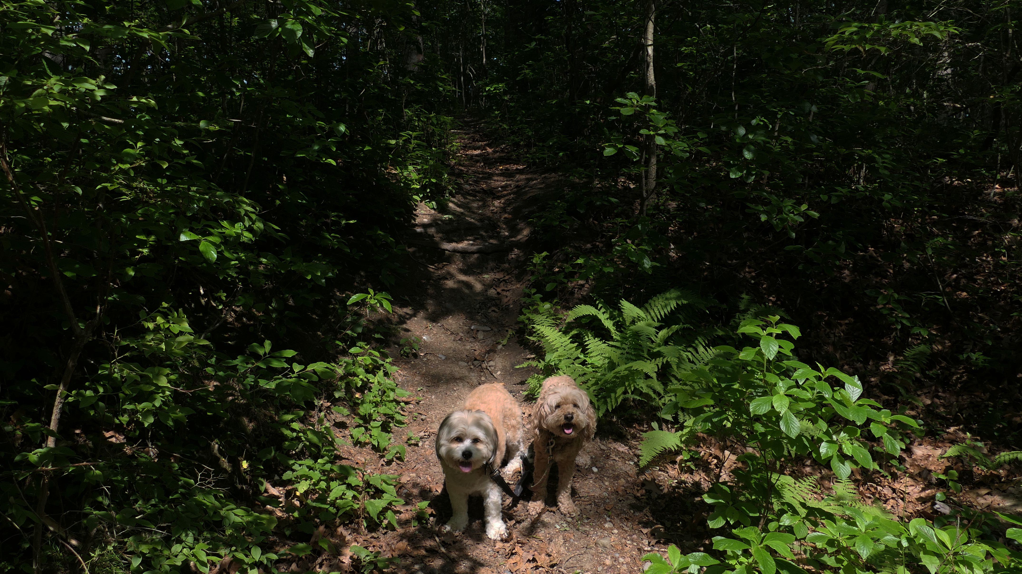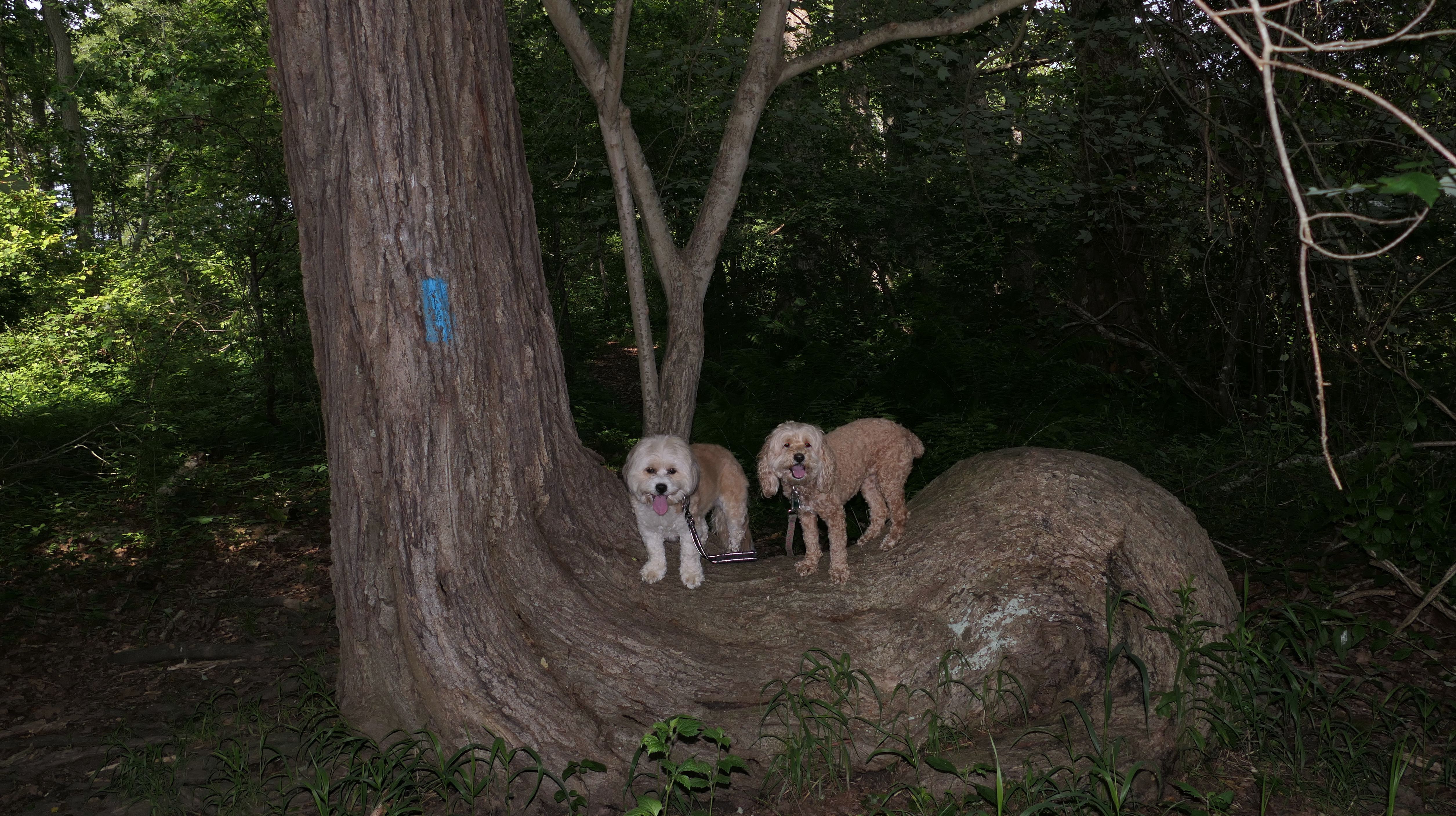 This is a beatiful trail. We parked at Narragansett Town Beach, and headed to the trail head across the street. It's a completely flat, easy trail that heads to the South County Museum (you can park for free here to access the trail during the beach season), and eventually ends at the Community Center near the Elementary School. Near the museum, the trail runs right by the farm animals. As you can see in the photo, Mr. Goat insisted on posing for a picture as well. As great as this trail is, there is one huge problem with it...and that was ticks! The dogs were covered with them! So I would avoid this trail this time of year. I've read that the bugs are relentless during the summer months, so that might not be a great time either. It probably looks pretty "bleh" in the winter, so maybe the fall is a good time to visit.