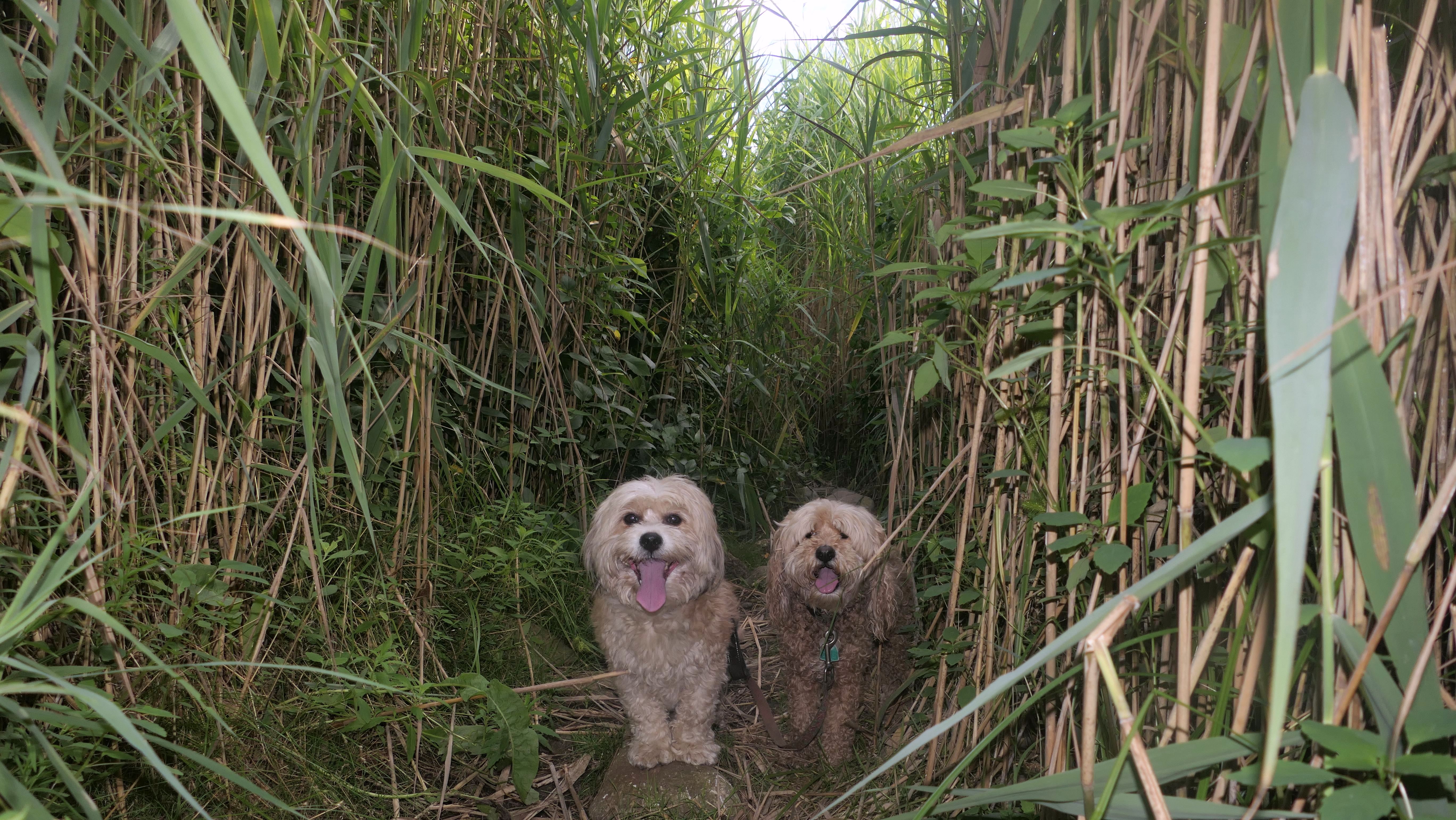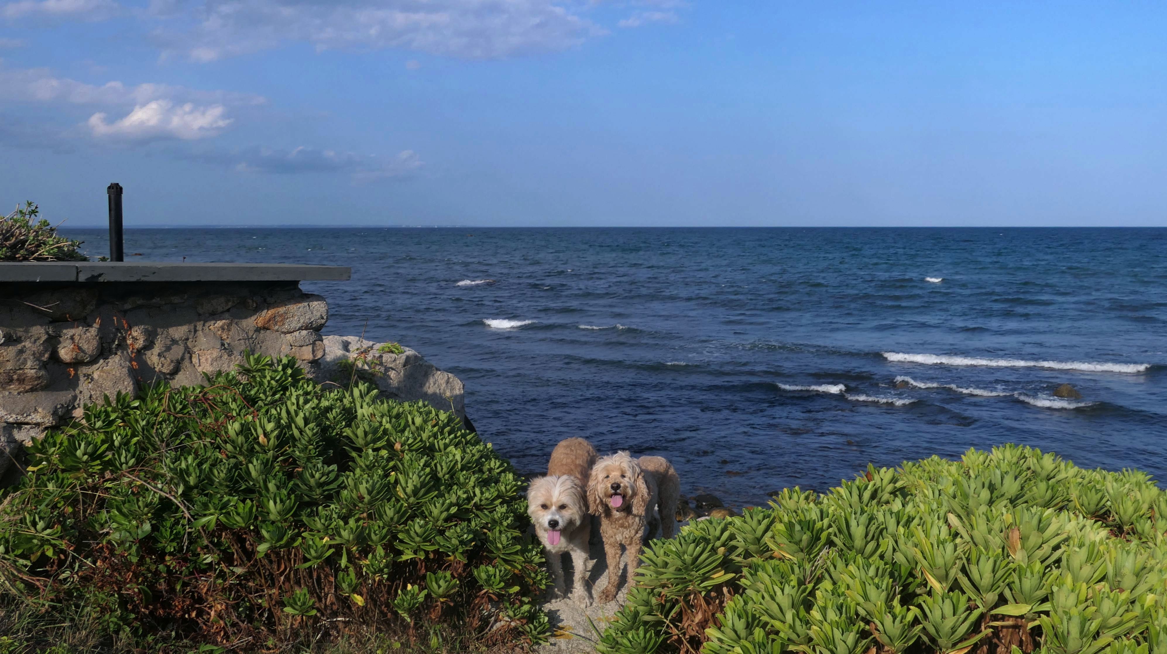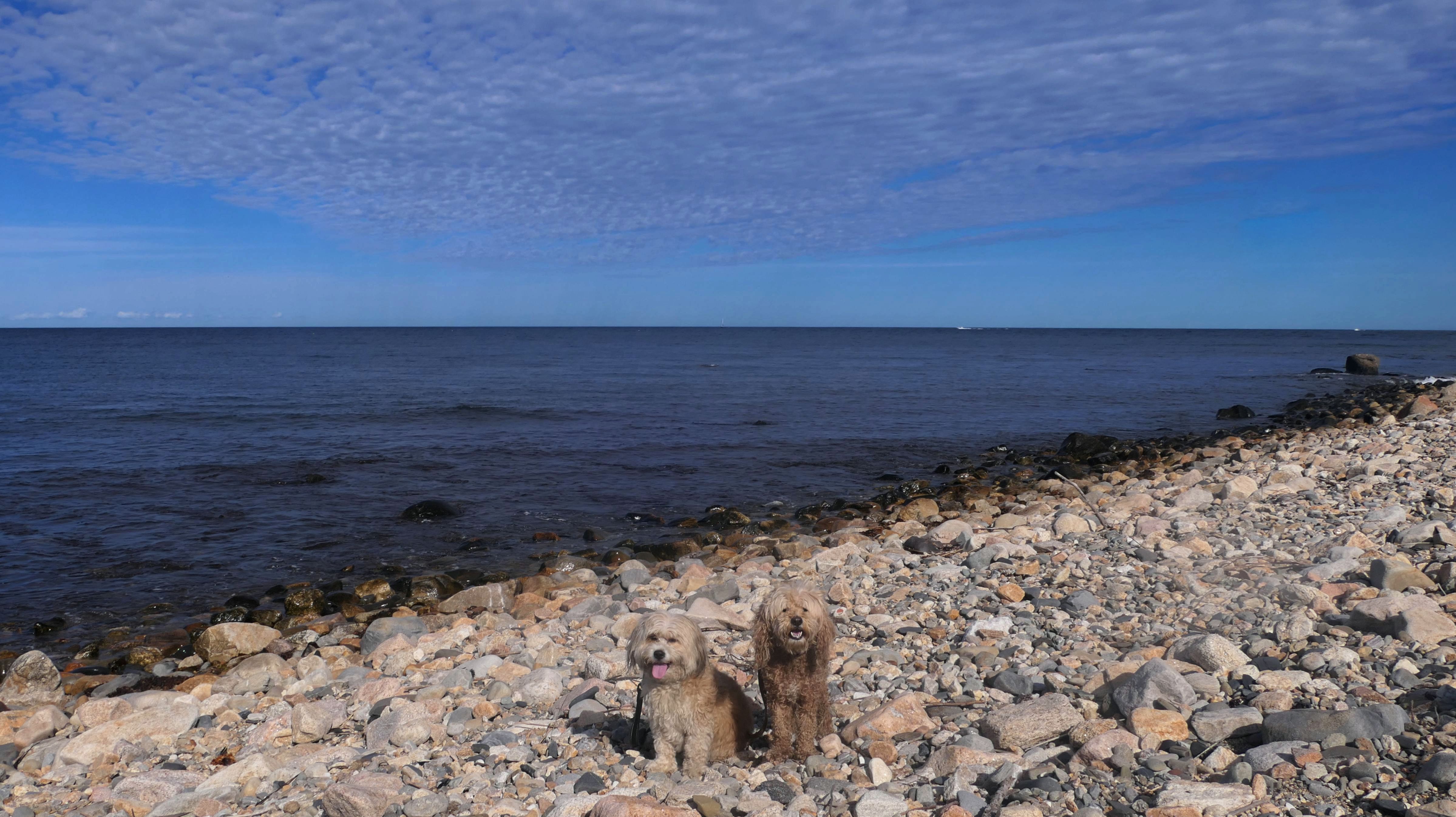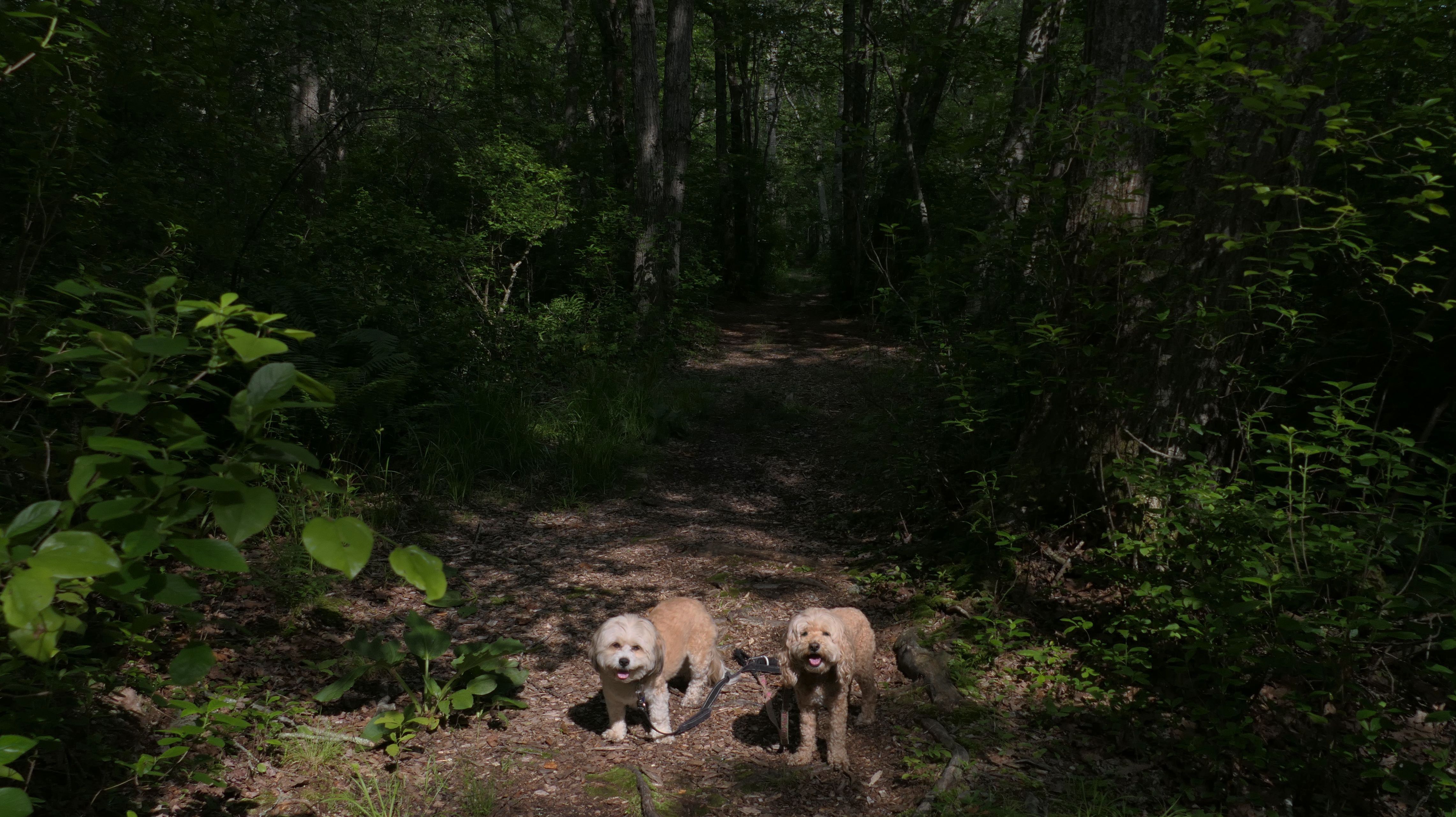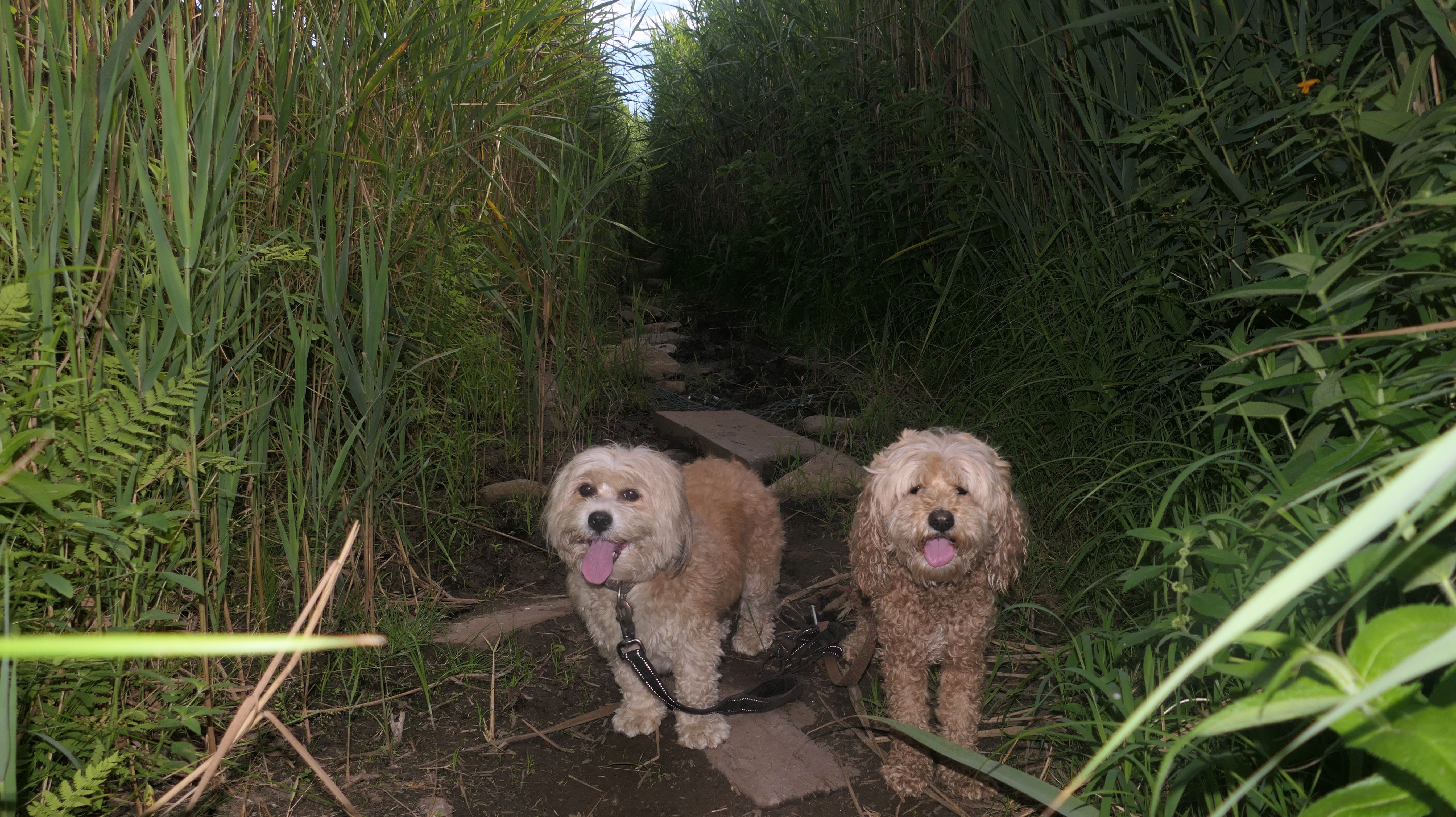 This is one of our favorite spots in the area. For this visit, there was wildfire smoke in the upper atmosphere that really dimmed the sunlight. We walked on the jetty a bit, the dogs cooled off, and then they played on the beach. We also took a walk to Rose Nulman Park and back.