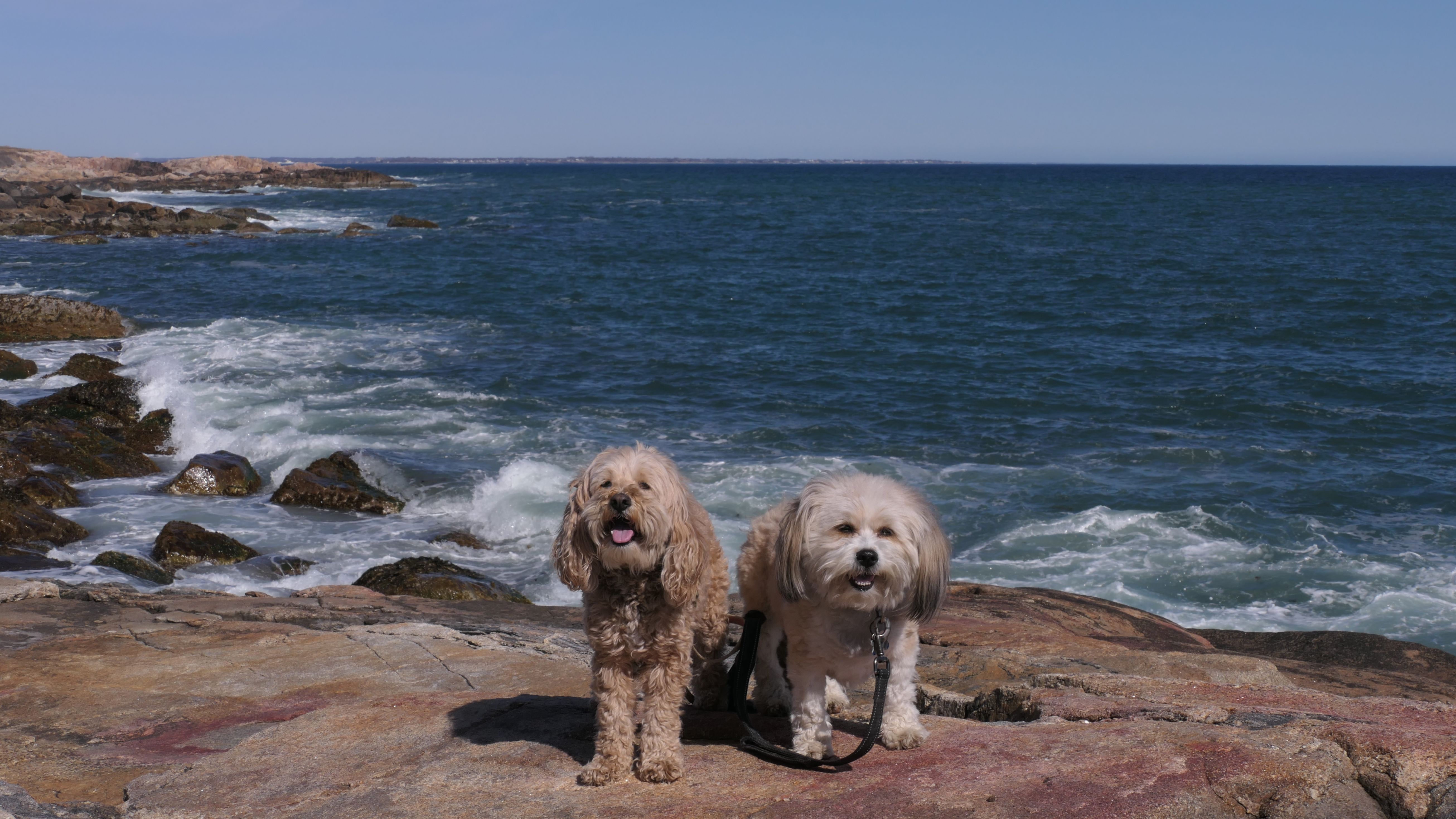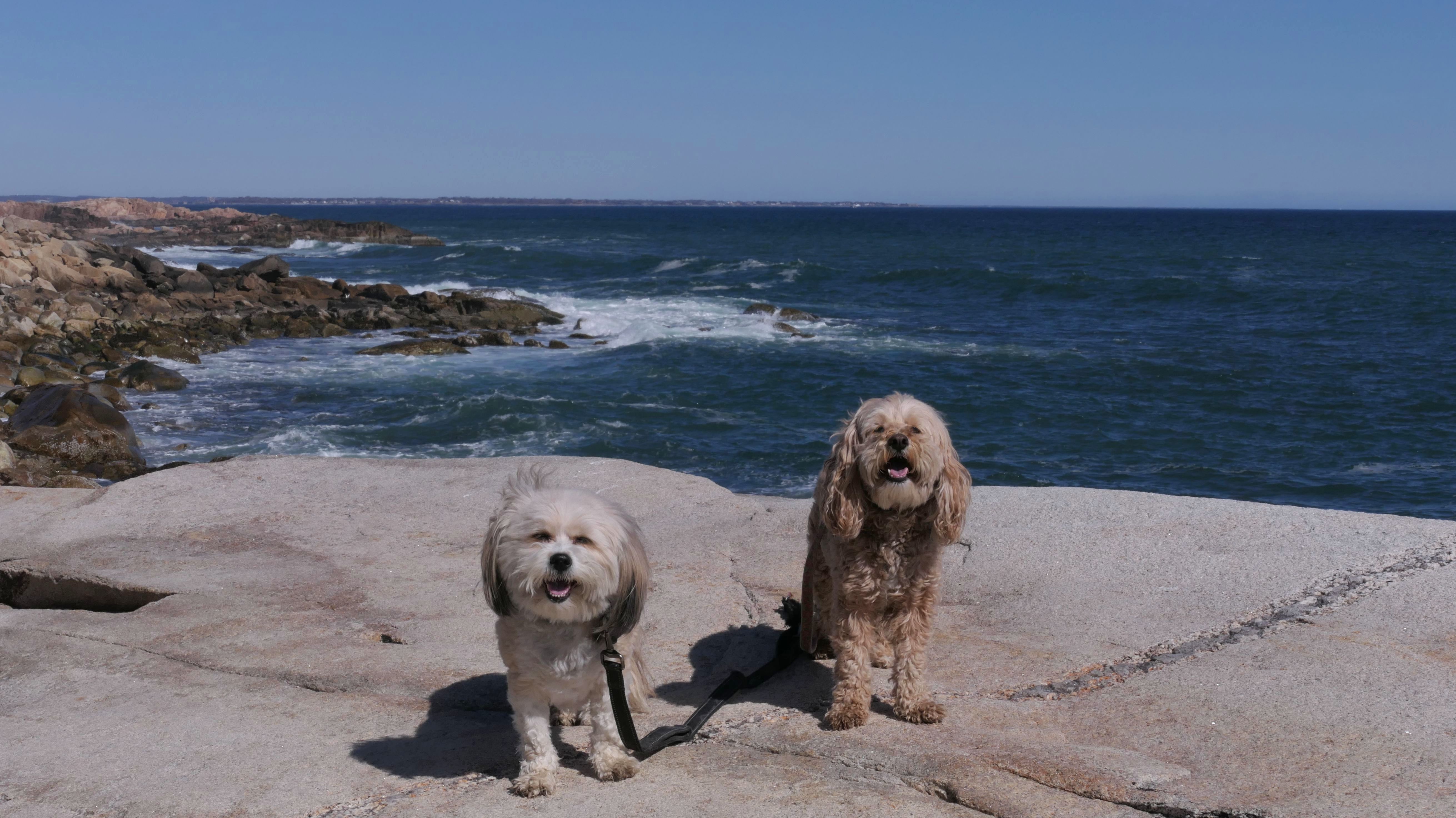 This the third and final of these small public waterfront access areas we visited on this day. We had visited the nearby Bass Rock and Newton Avenue watefronts earlier in the day. This is pretty similar to the other two, with rocks looking over the scenic ocean vista. Actually, all three of these places are very much like the most excellent Black Point trail. It makes sense, since that place is also down Ocean Road, just south of these access points. (Black Point is much better, because there is an actual trail there). There's a weird bench with no legs here, sitting on the rocks with the words "Please Enjoy" carved into it. I'm not sure who would actually sit on this bench without legs. Maybe it was put here for the dogs! The rocks can be really dangerous at these places, but we kept to the safer areas, and took some nice photos before calling it a day. A seagull joined us for one of the photos. I named him Gus.
