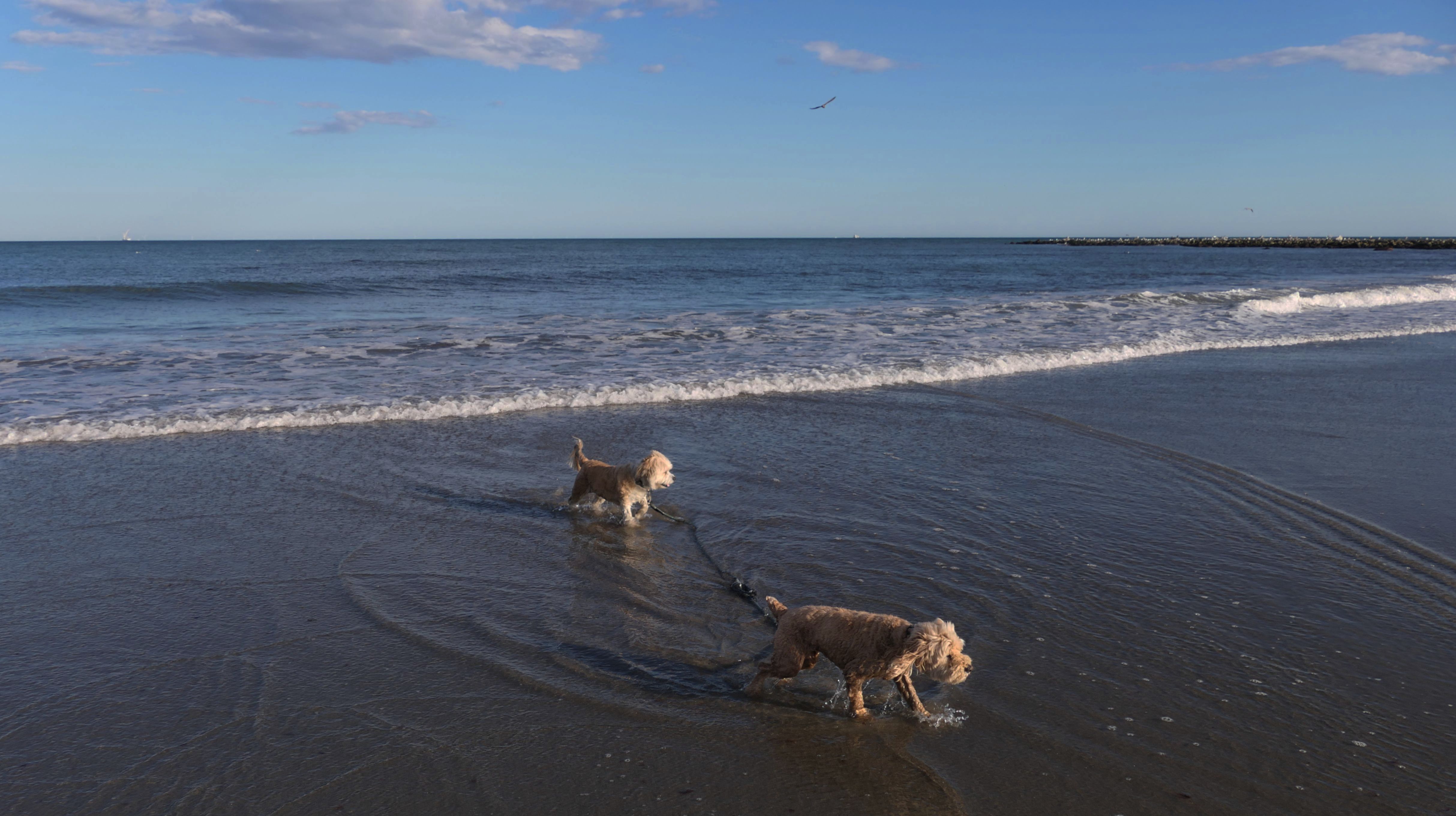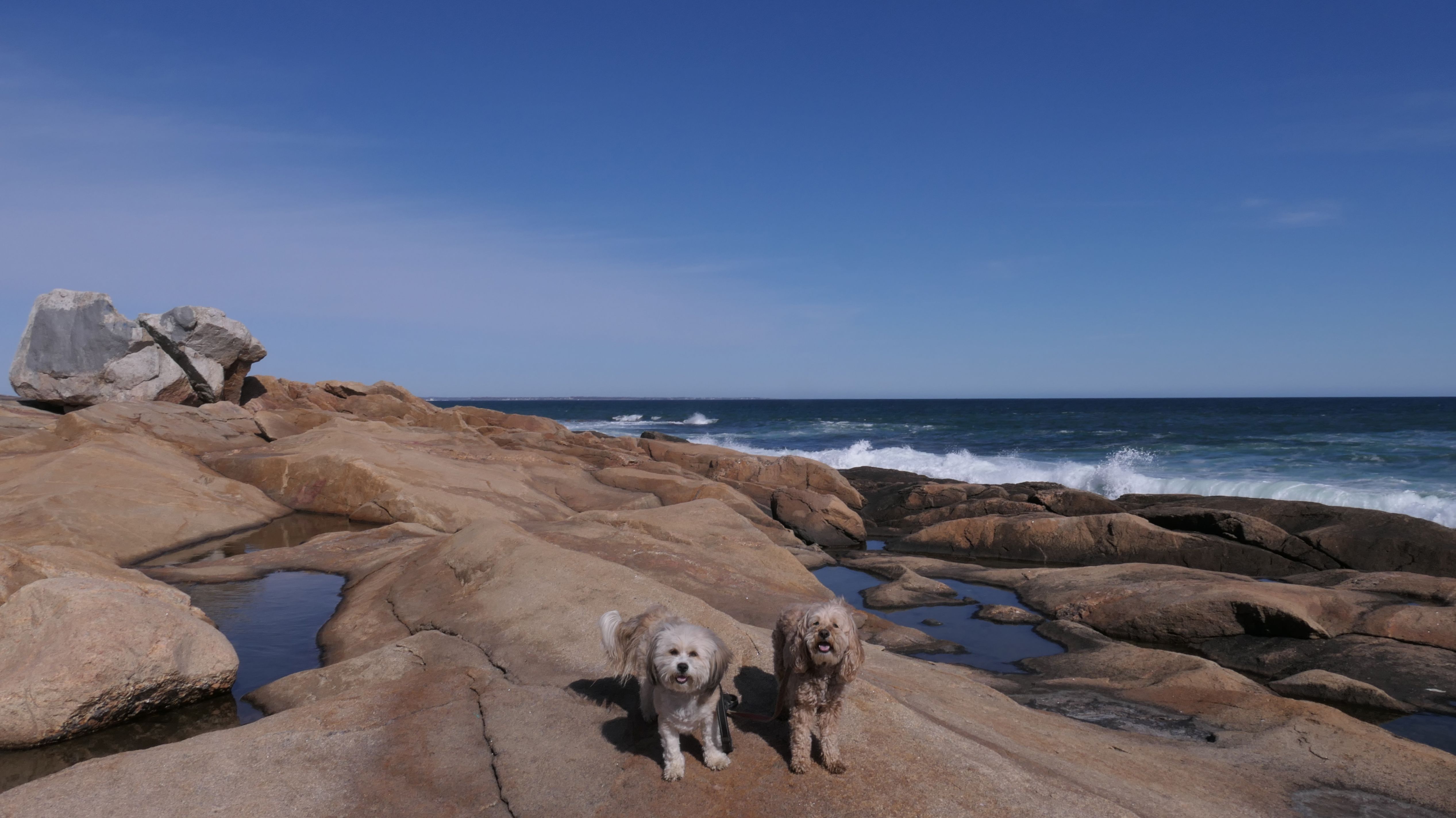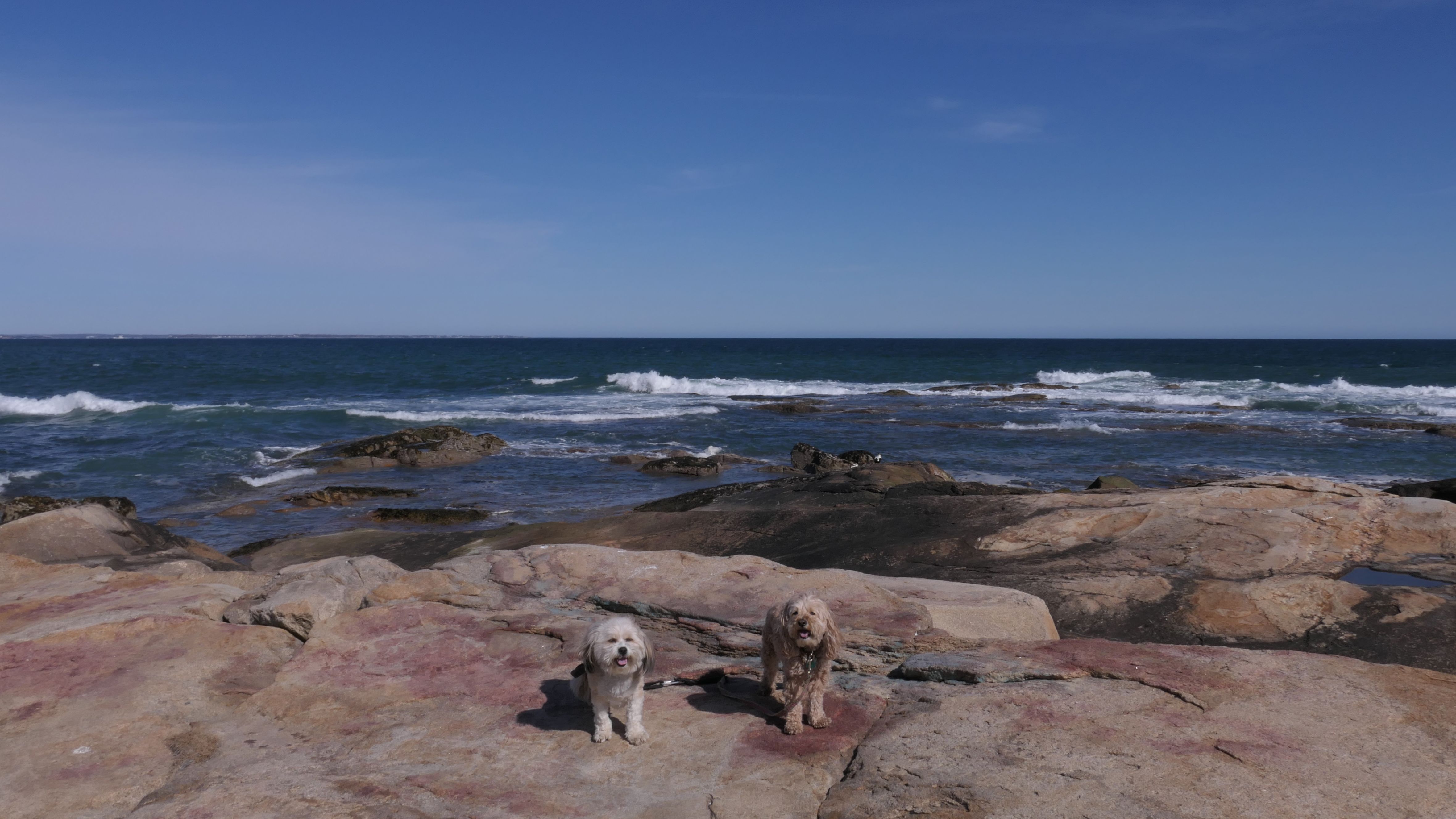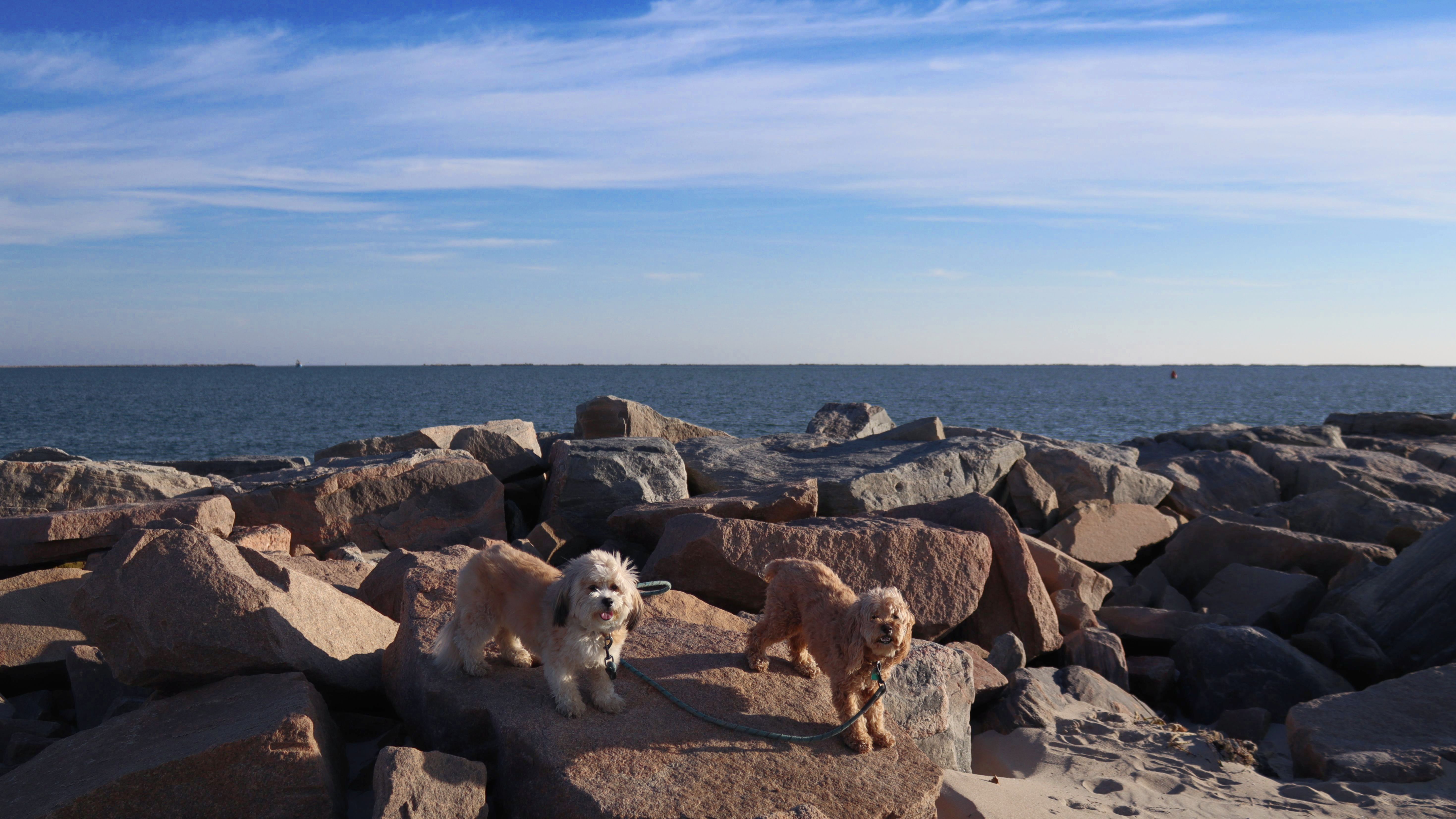 Our second visit here was 13 months after our first. It was still crowded, but this time there were more people fishing than on the beach. We arrived about an hour before sunset. Initially, we tried to walk the rock jetty, but it was hard to navigate the rocks with so many people fishing from them. As the jetty went farther out, it got too dangerous for the dogs. So we just hung around the beach for a while and enjoyed the sunset.
