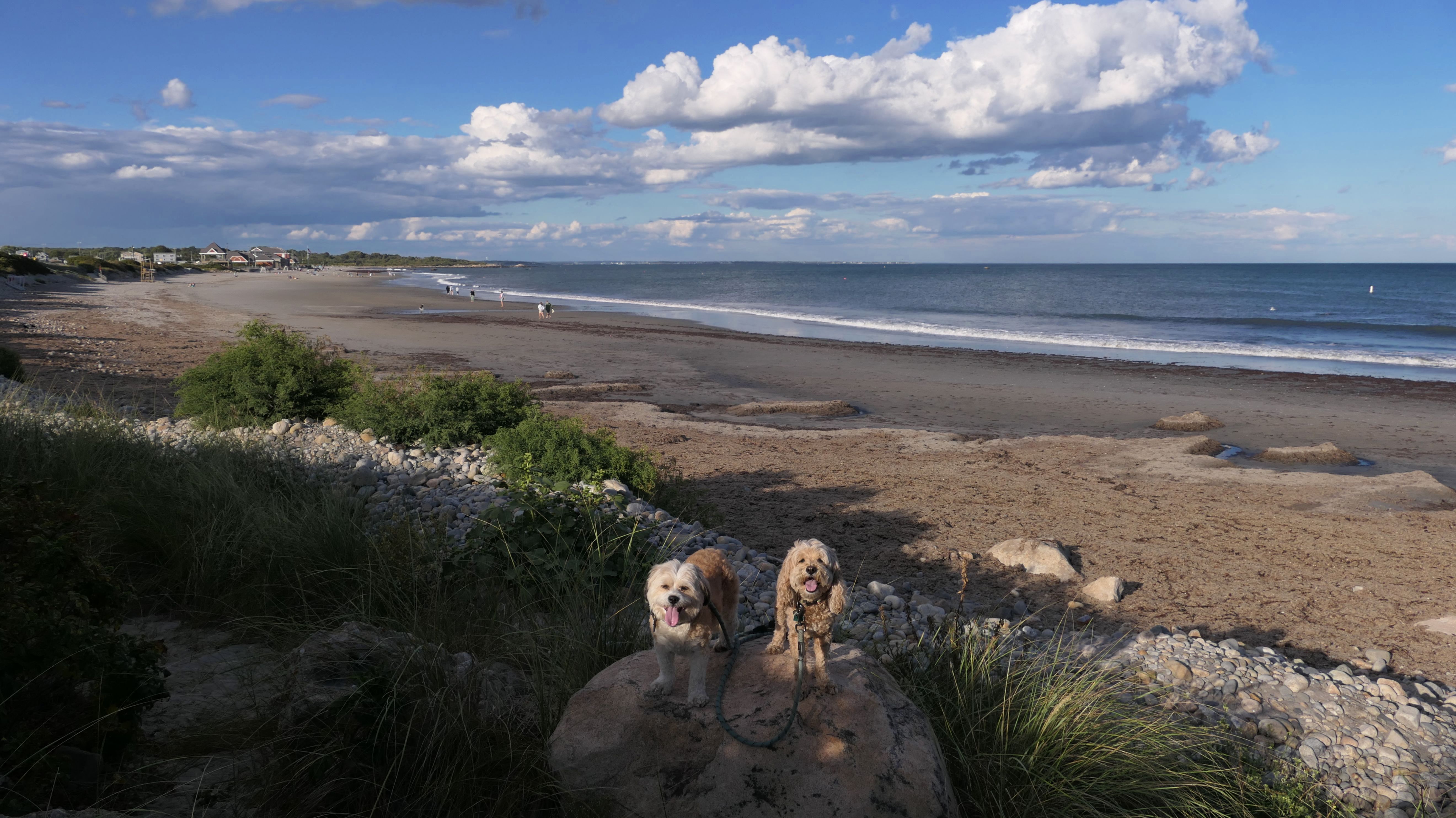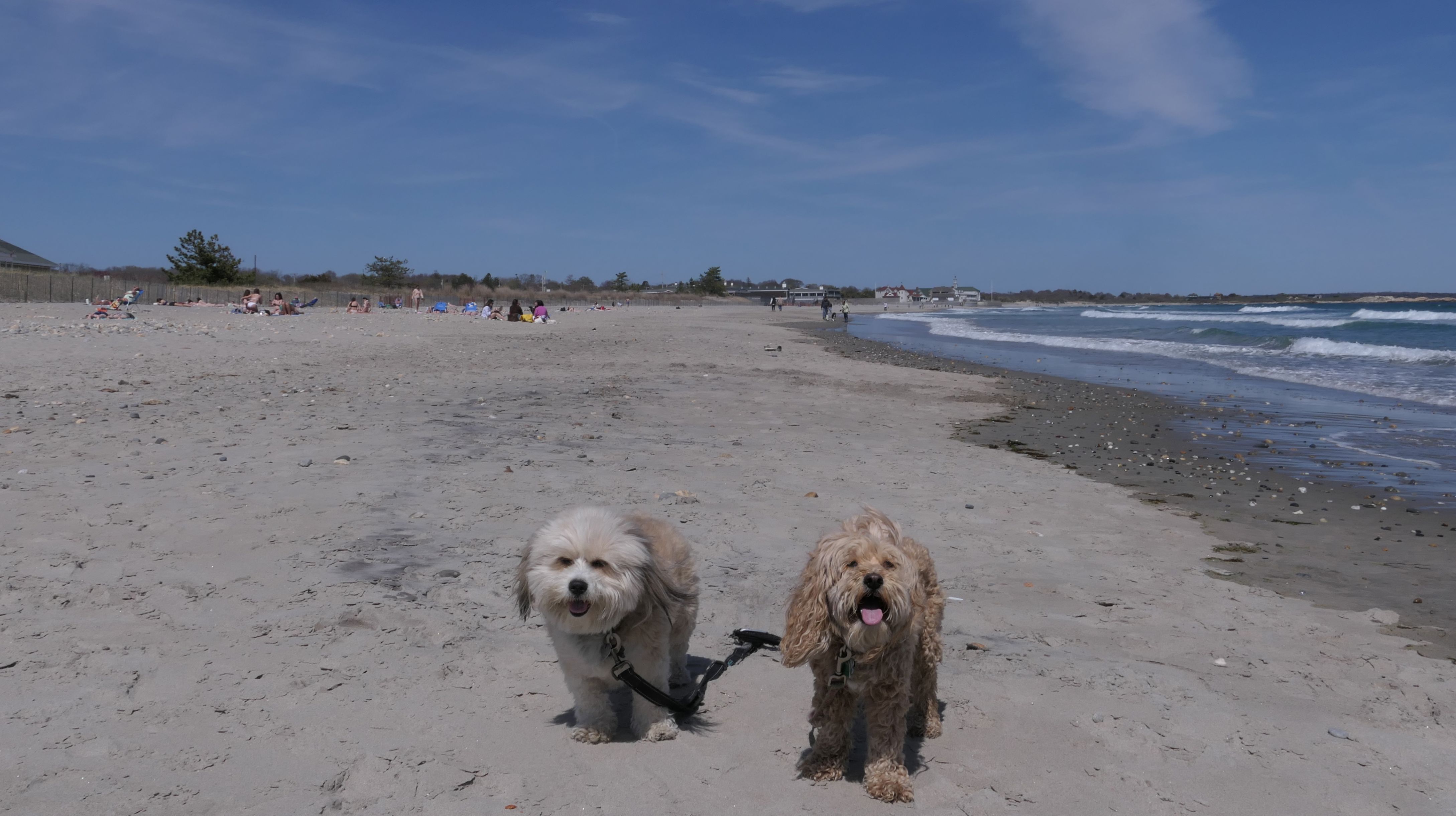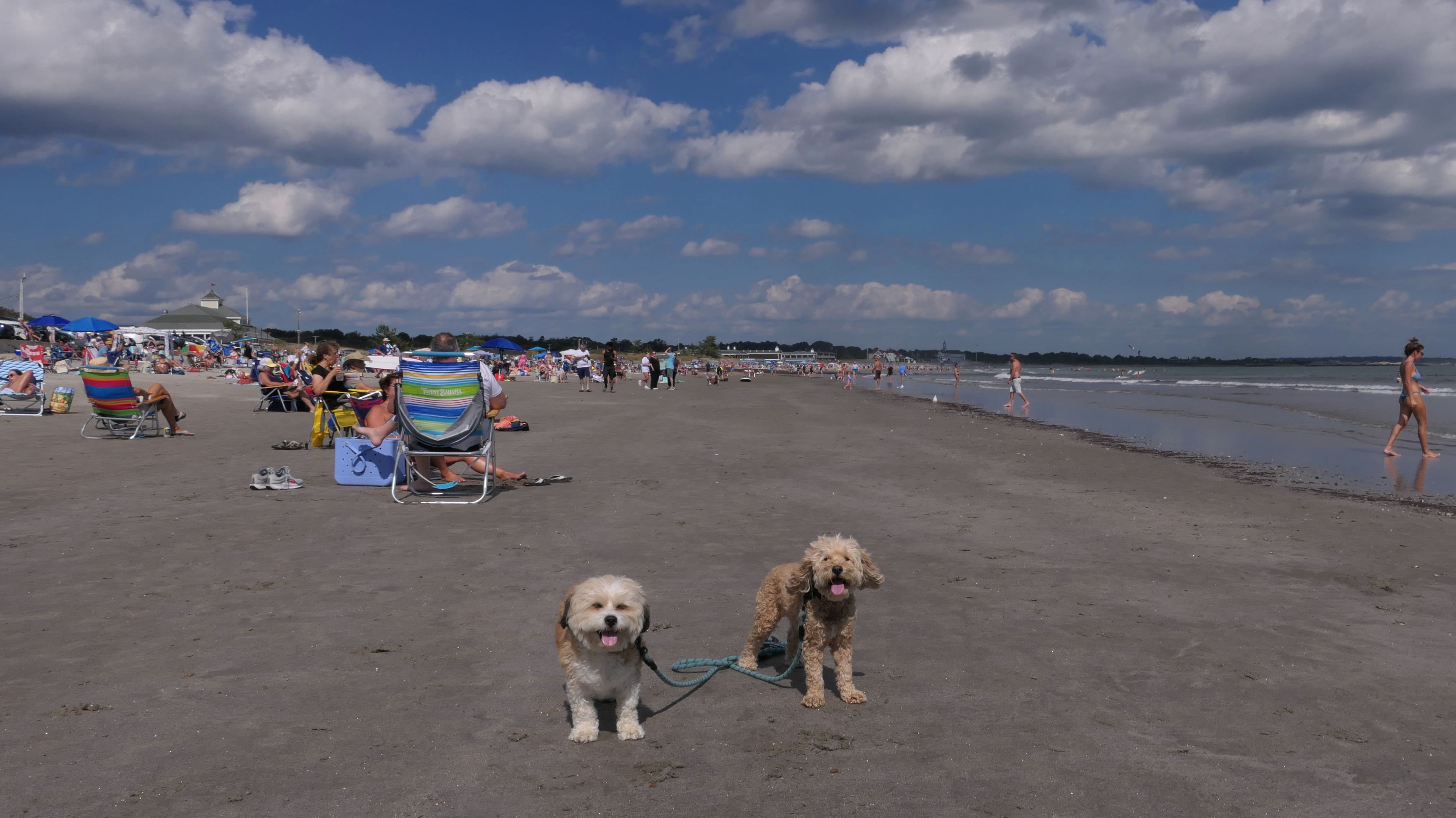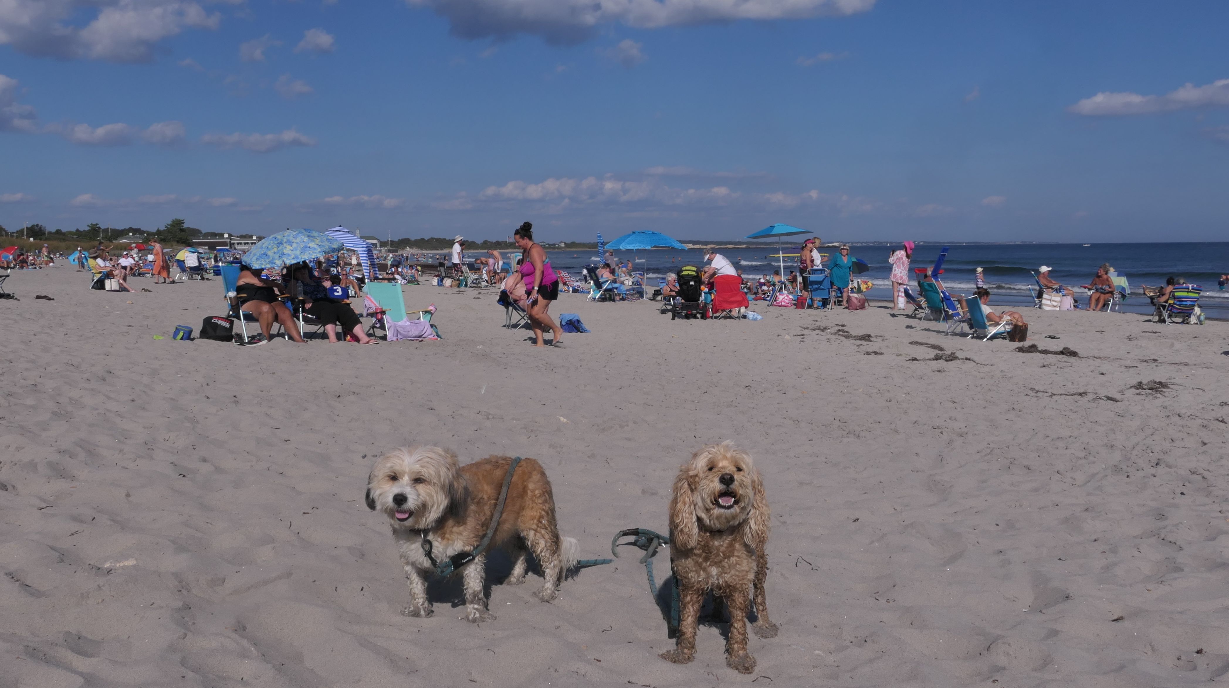 It's become an annual tradition to visit this beach this time of year. Dogs are allowed after September 16th. This was a more of a family outing this time around than our usual adventure. This is one of the most popular beaches in Rhode Island. It was a hot Friday afternoon, and they stop charging for parking after Labor Day, so it was quite busy! Many of the visitors were students from nearby University of Rhode Island, and we were stopped many times by people wanting to pet the dogs! This was a fun "end of the summer" outing, and an enjoyable day at the beach!
