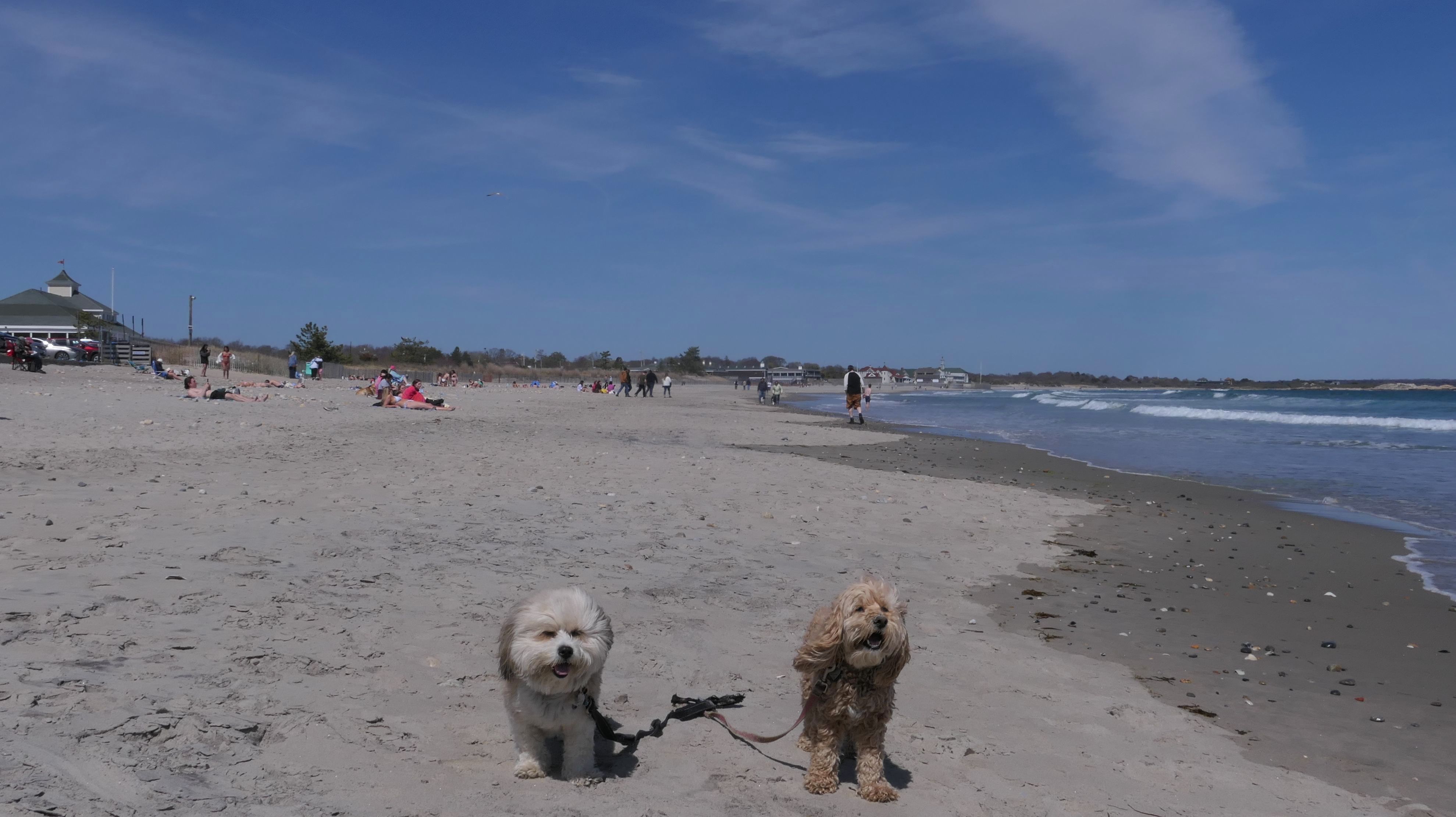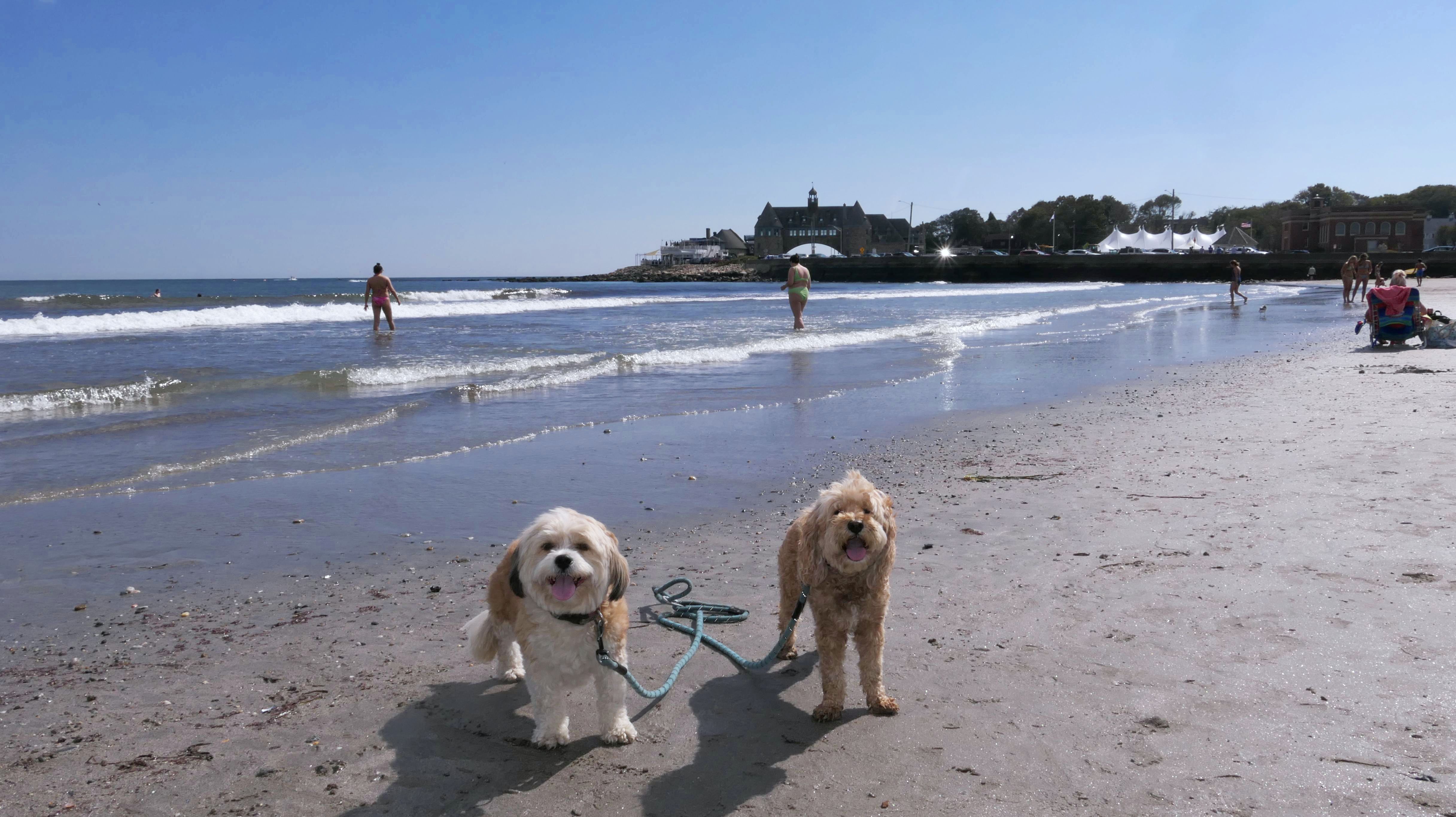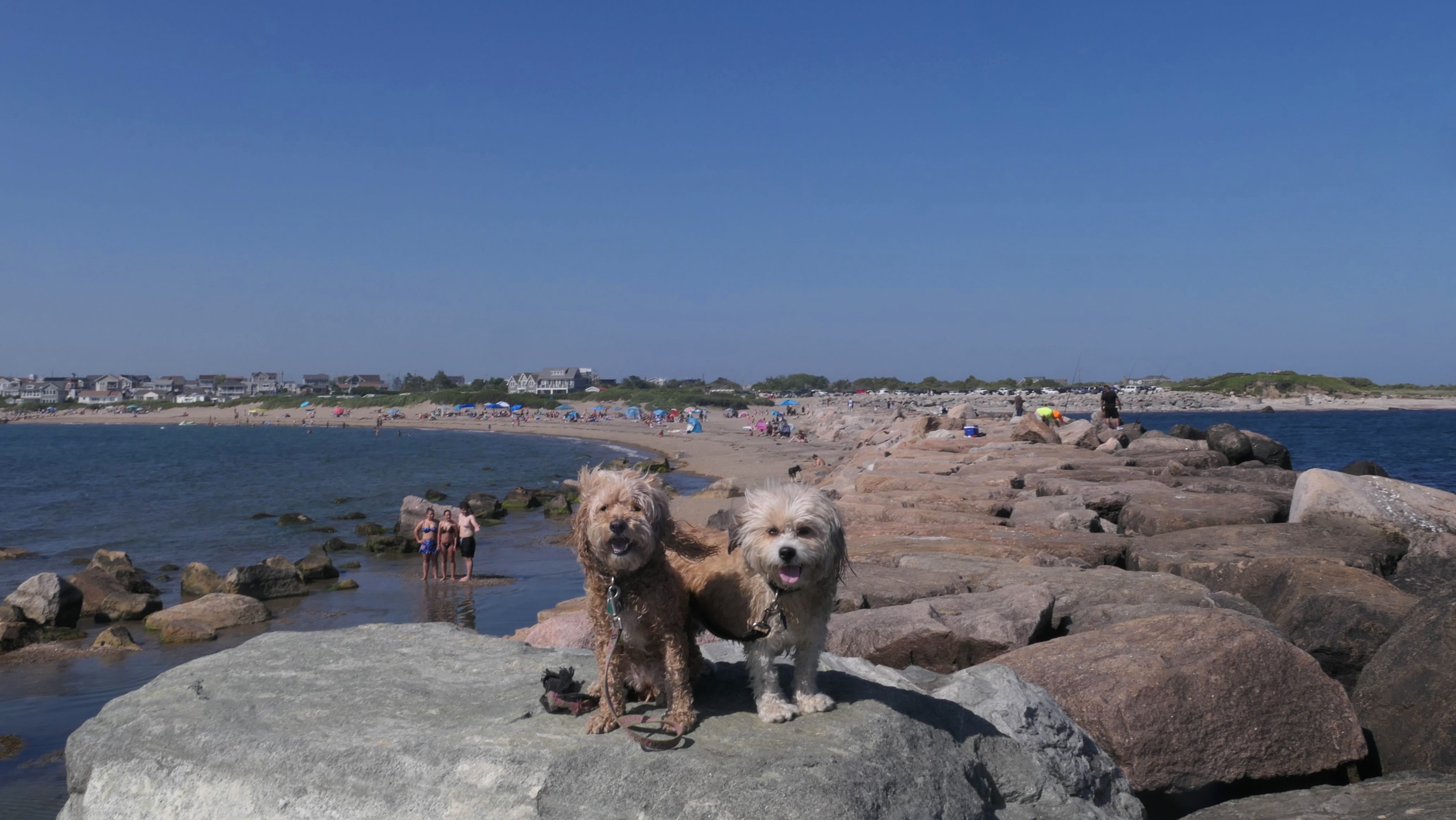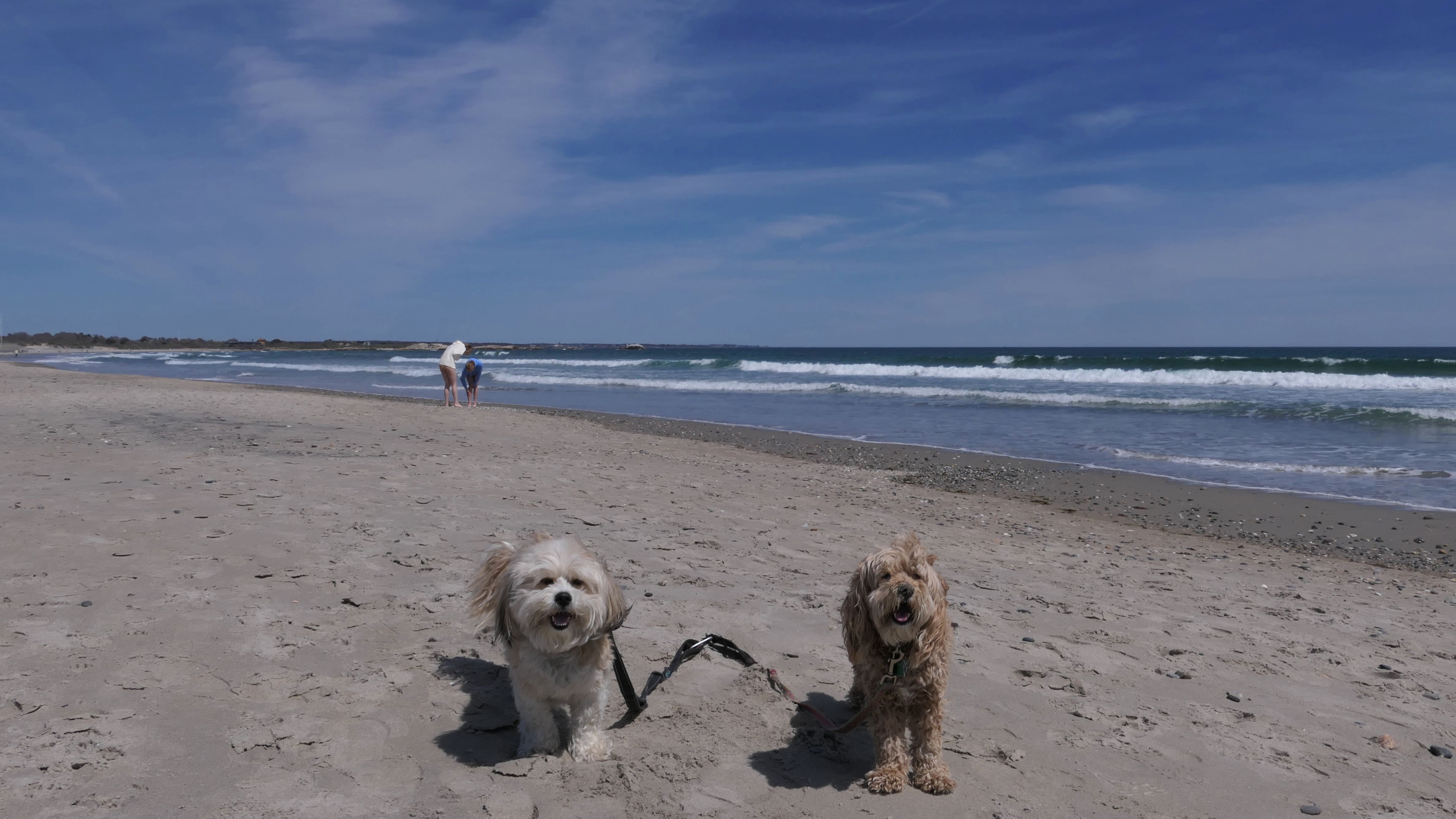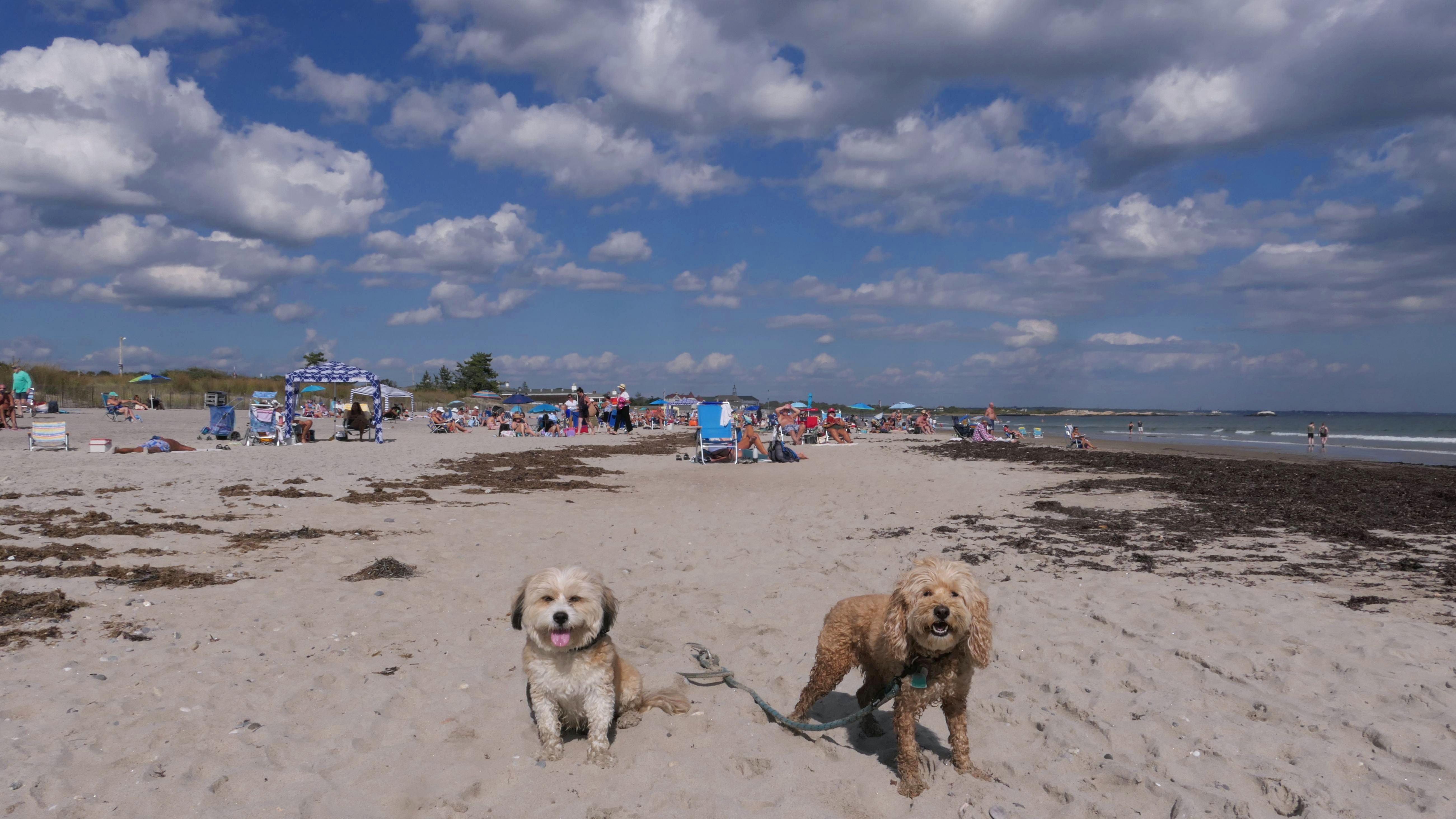 It's become an annual tradition to visit this beach this time of year. Dogs are allowed after September 16th. This was a more of a family outing this time around than our usual adventure. This is one of the most popular beaches in Rhode Island. It was a hot Friday afternoon, and they stop charging for parking after Labor Day, so it was quite busy! Many of the visitors were students from nearby University of Rhode Island, and we were stopped many times by people wanting to pet the dogs! This was a fun "end of the summer" outing, and an enjoyable day at the beach!