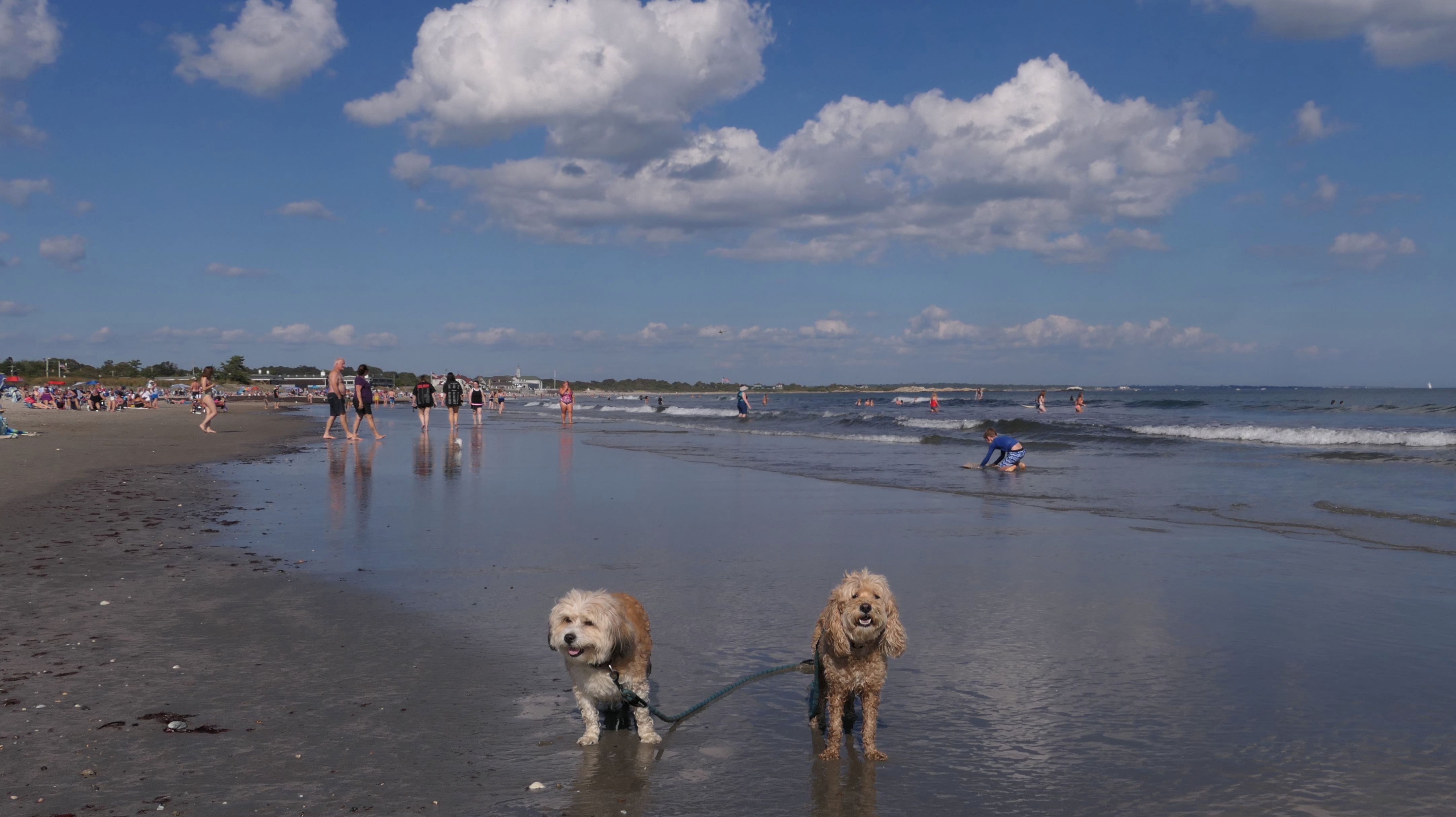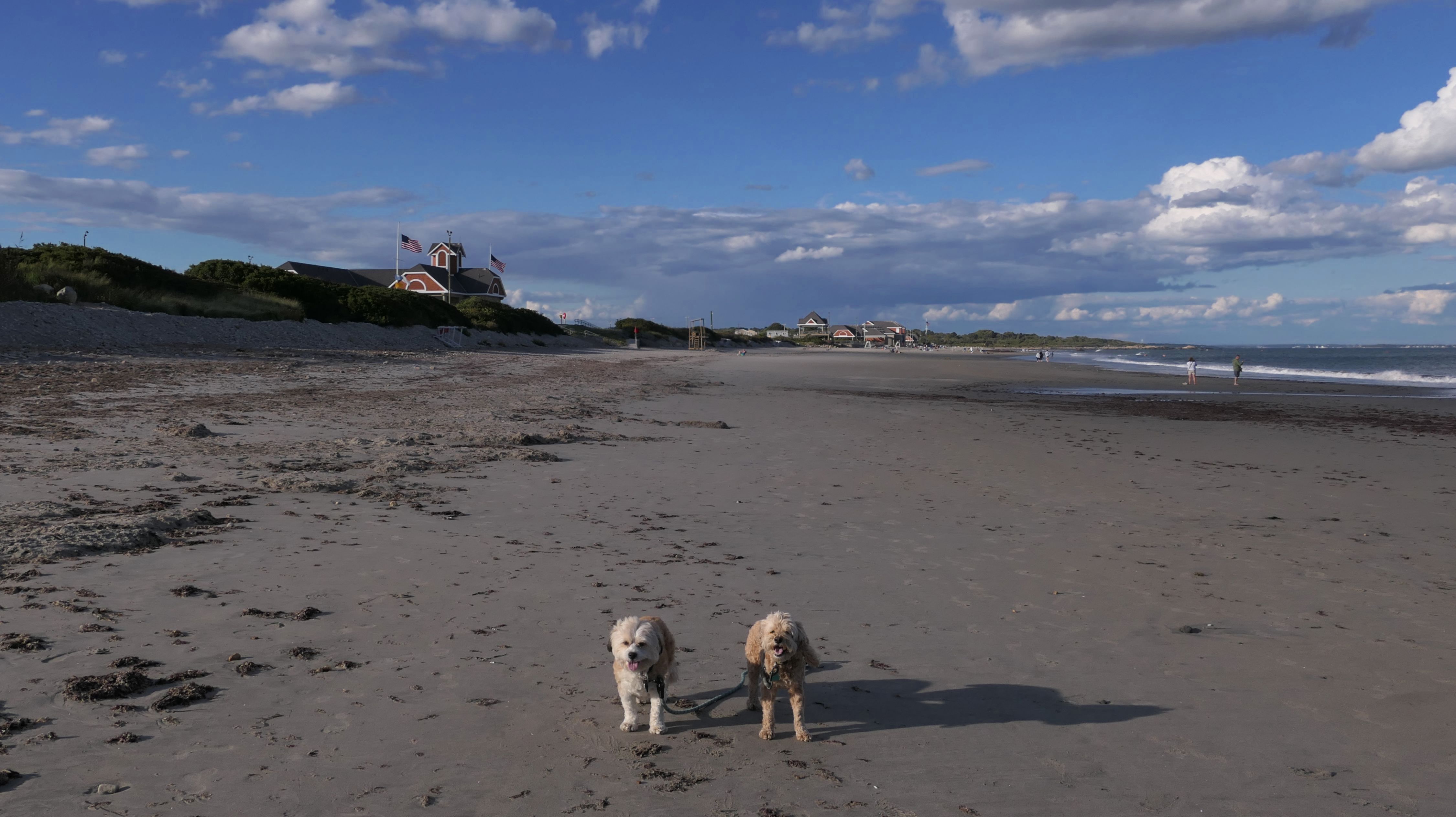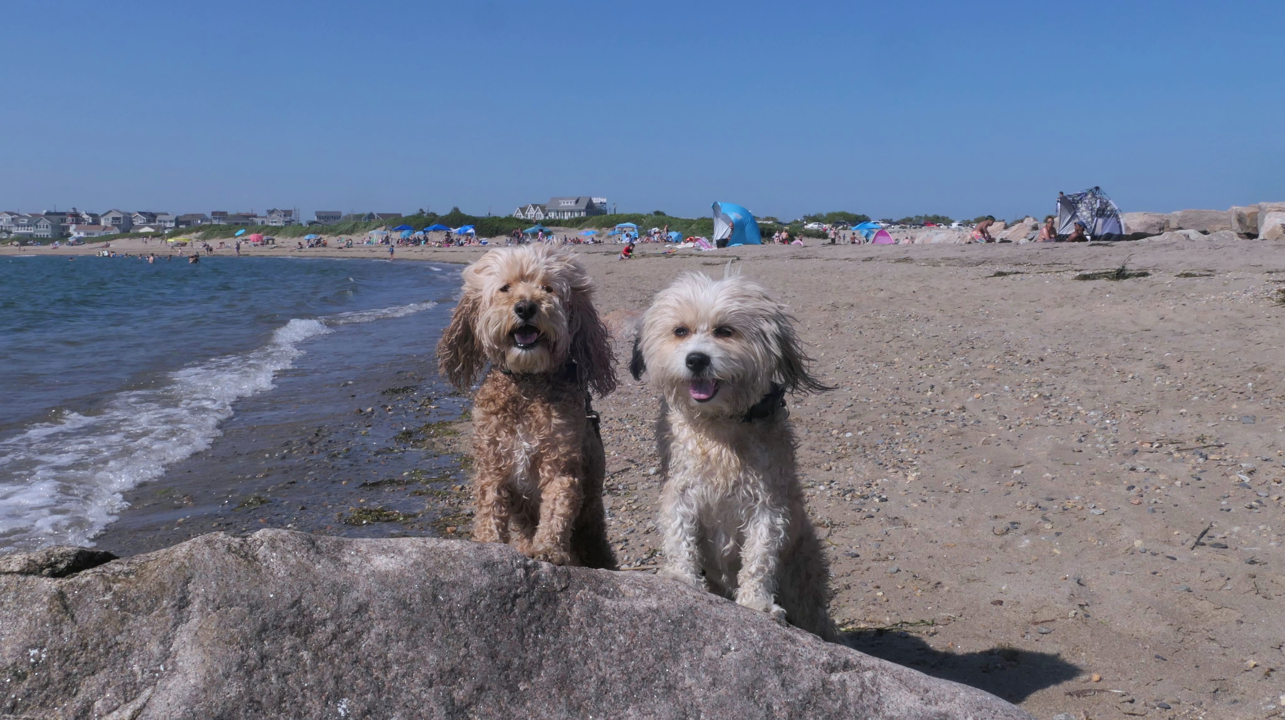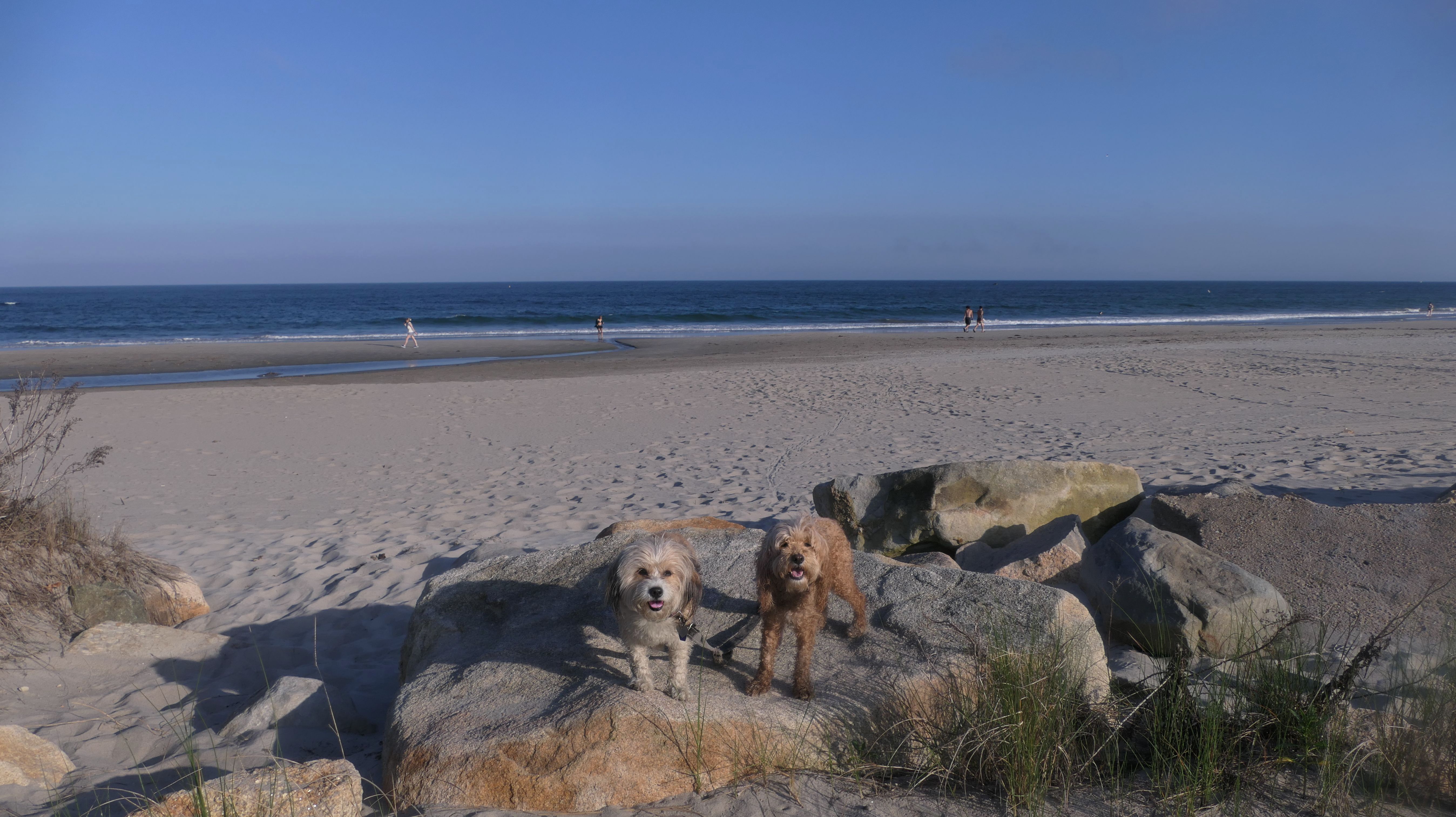 It's become an annual tradition to visit this beach this time of year. Dogs are allowed after September 16th. This was a more of a family outing this time around than our usual adventure. This is one of the most popular beaches in Rhode Island. It was a hot Friday afternoon, and they stop charging for parking after Labor Day, so it was quite busy! Many of the visitors were students from nearby University of Rhode Island, and we were stopped many times by people wanting to pet the dogs! This was a fun "end of the summer" outing, and an enjoyable day at the beach!