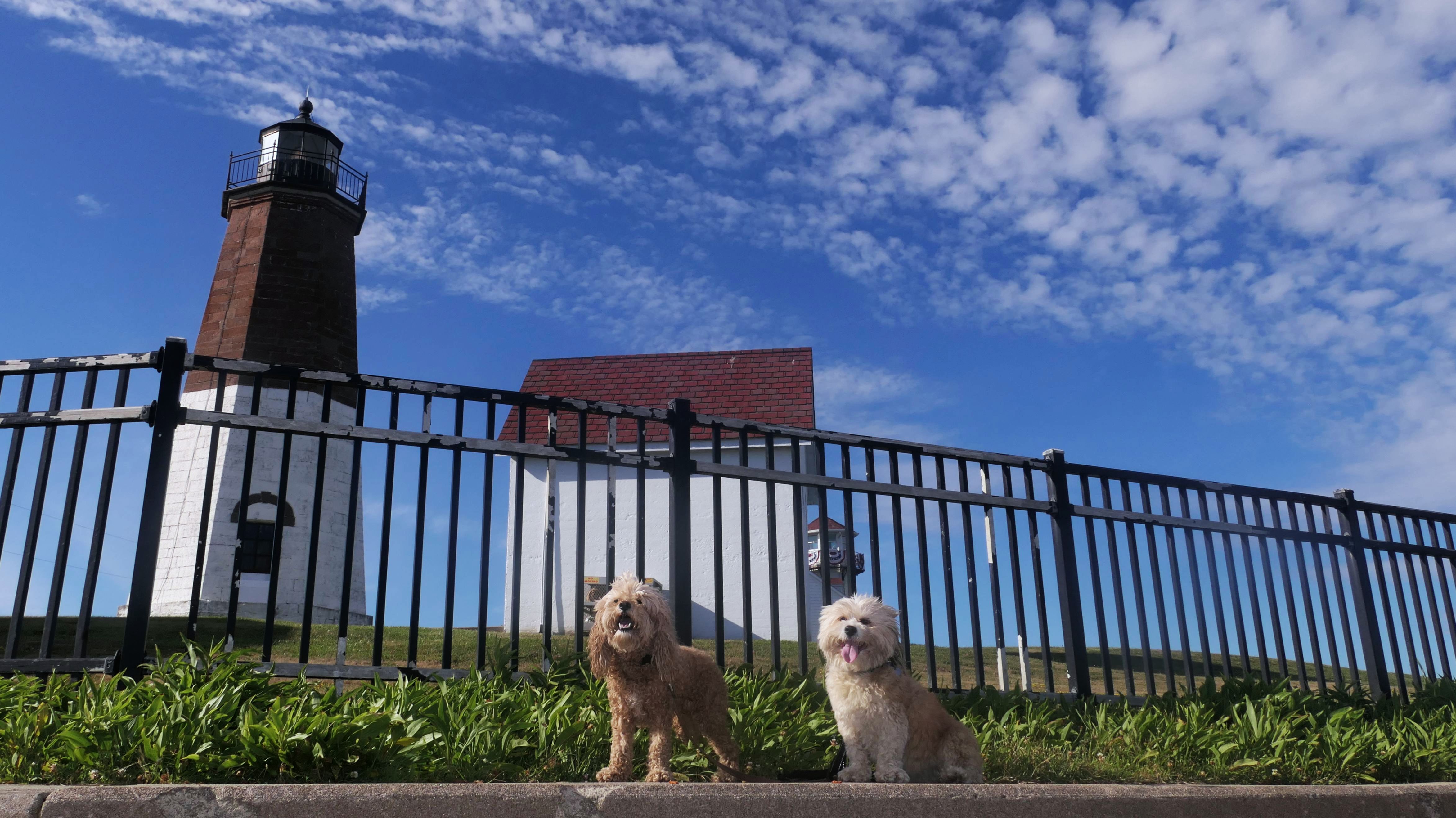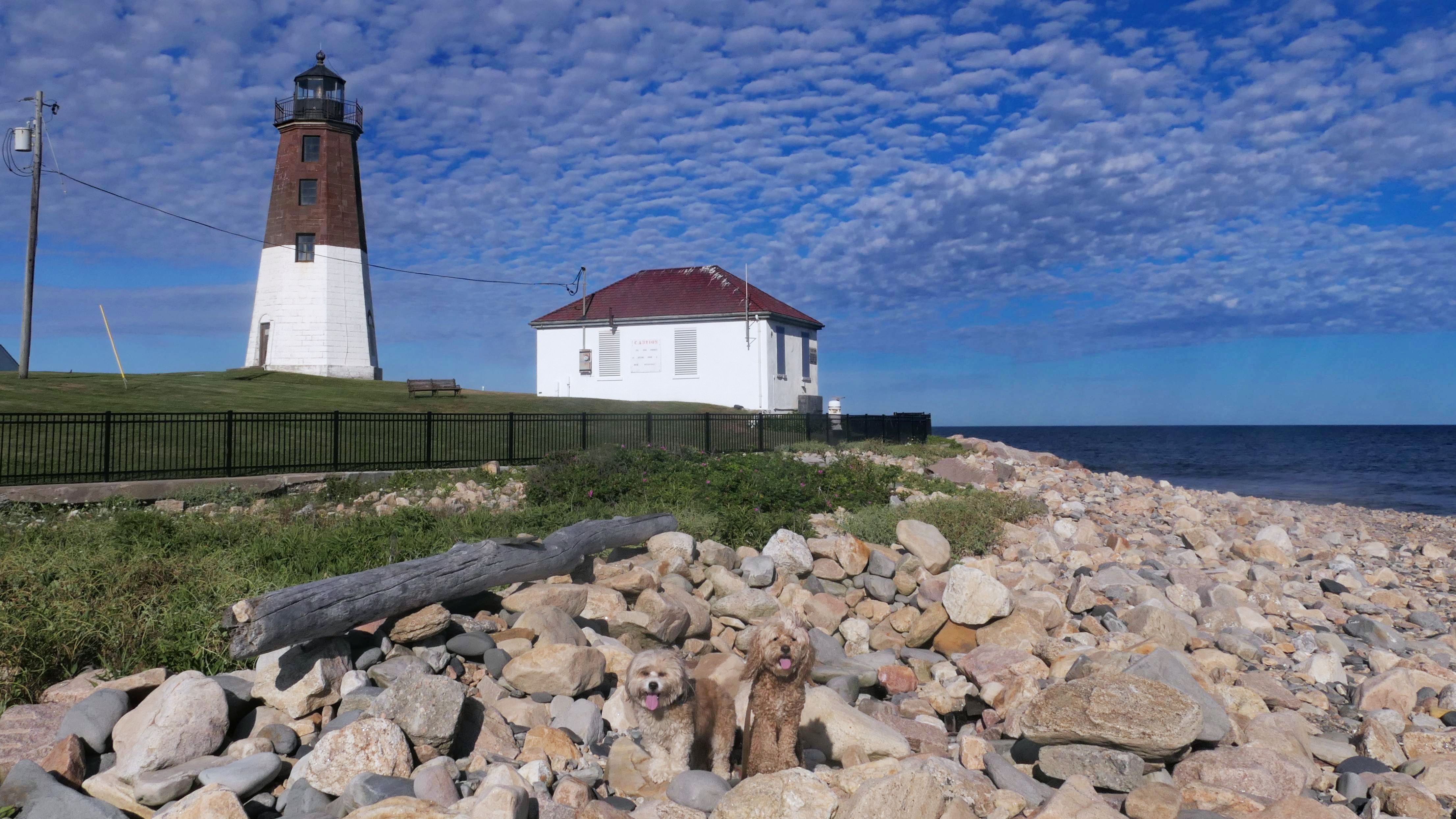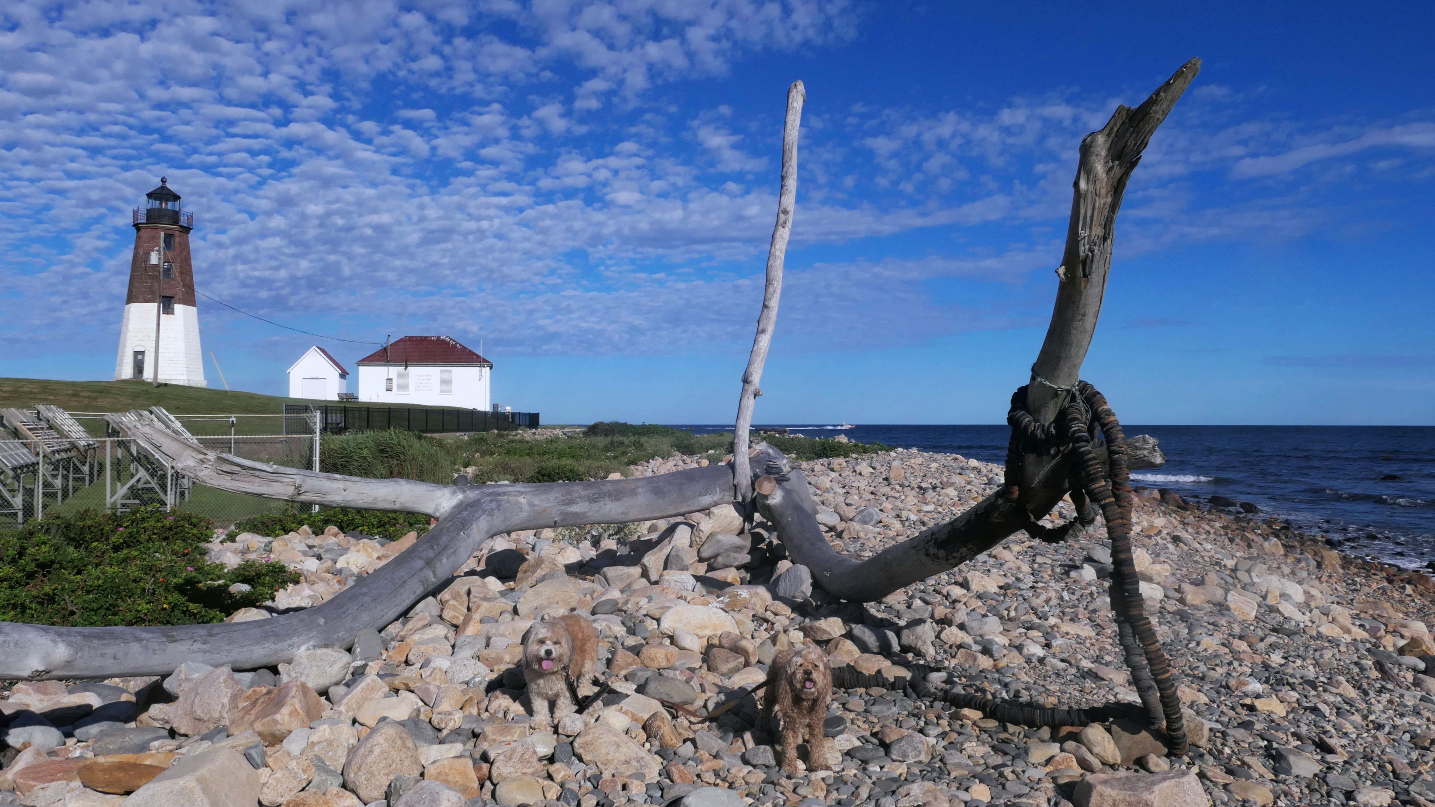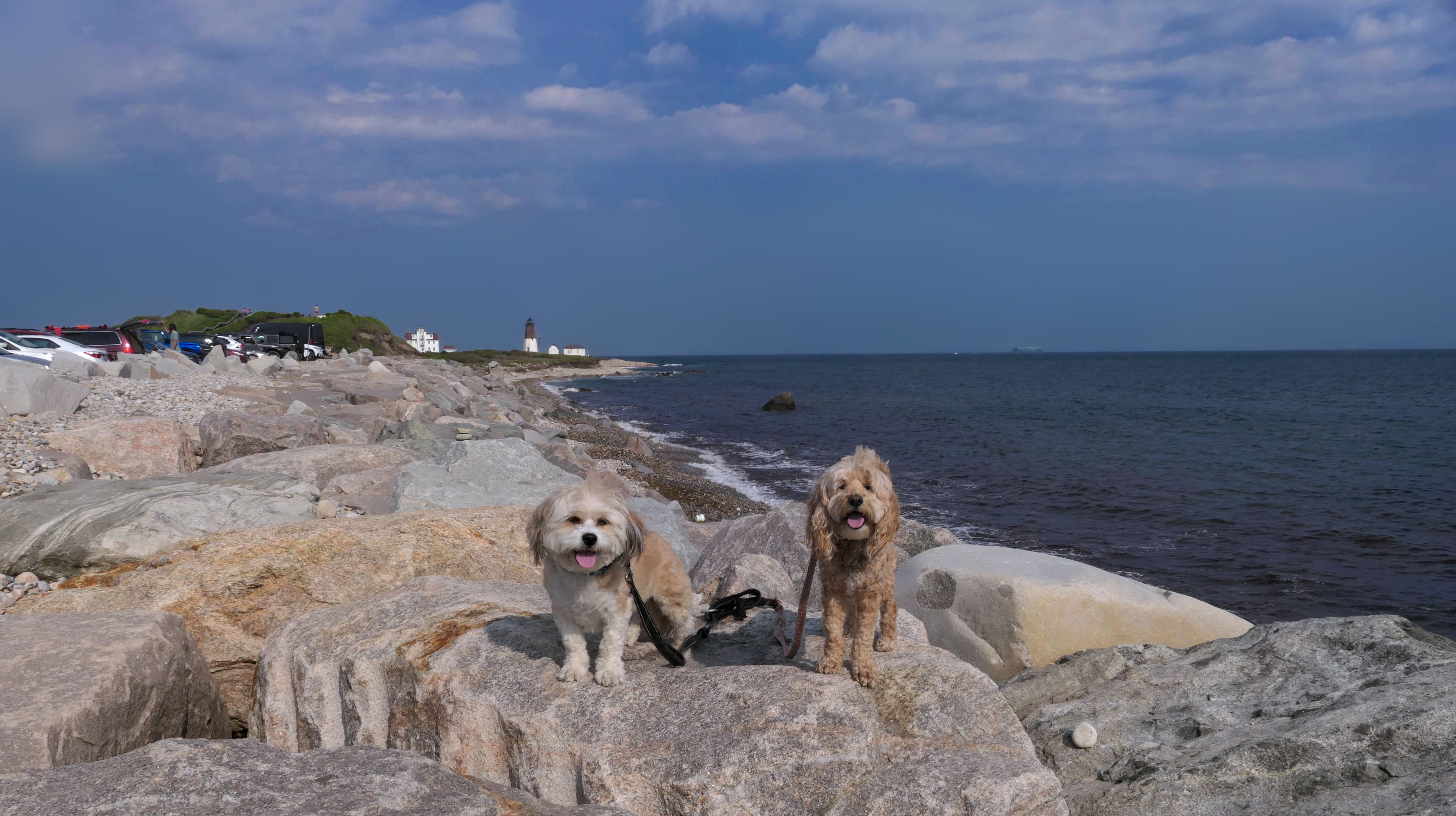 This is another very nice spot in Rhode Island that allows dogs at the beach year round! This is primarily a fishing spot. There were many people on the point fishing. There is a nice overlook area, with views of the lighthouse, as well as a monument dedicated to those who were lost on fishing boats. Of course there is a small beach area too, which was packed. We had to park on the road and walk about a half mile to get to the point. I saw an officer ticketing cars that were parked incorrectly, so I'm glad we parked on the road.