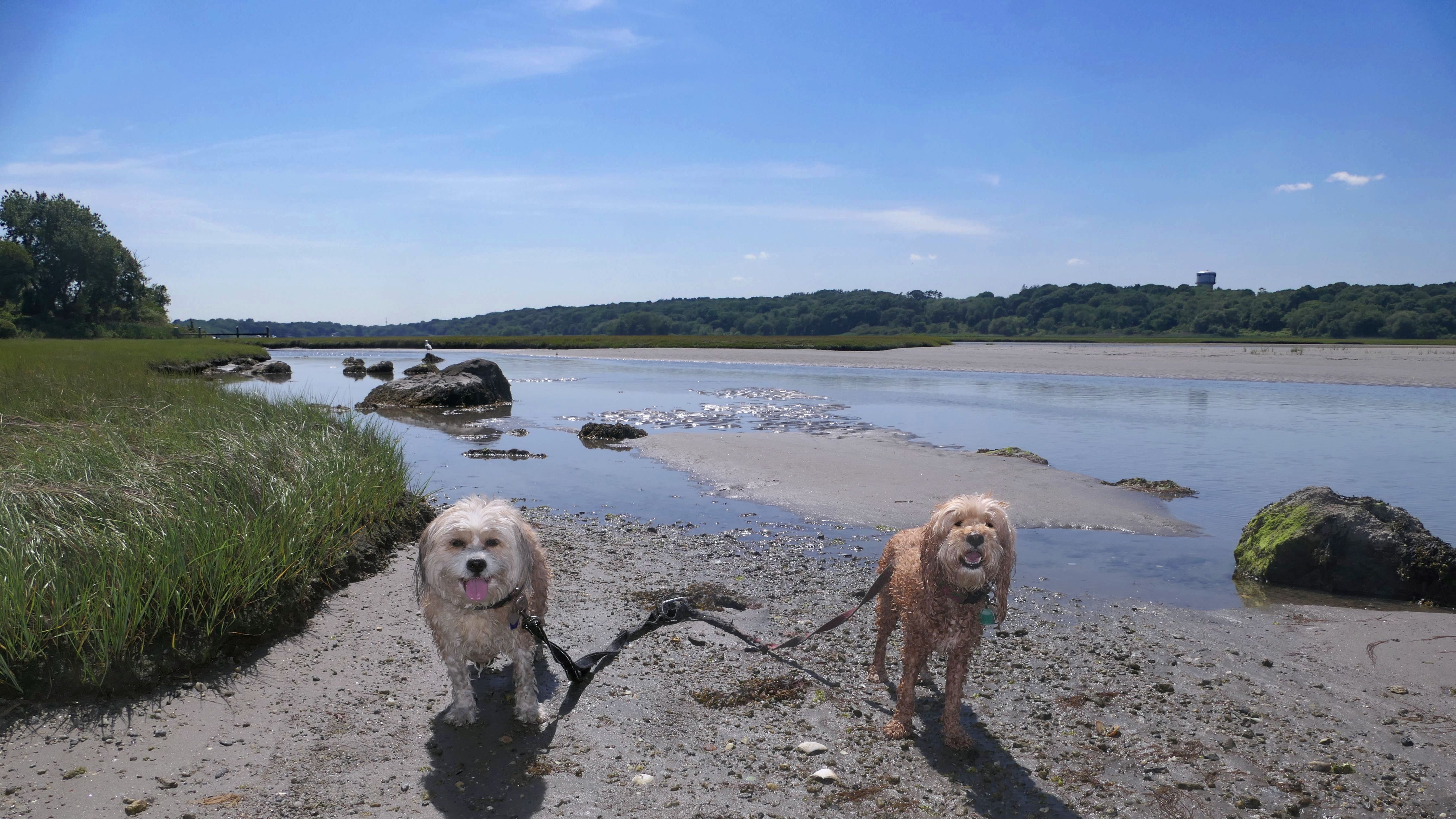 There's not many adventures in this area left for us that we haven't done before, so I started creating our own! We parked along side Galilee Escape Road, and explored the area. There's a state run boat launch, with a small beachy area along the southeast side of Point Judith Pond. Mandy and Lexi were able to cool off on the pond. After that, we headed over the Great Island bridge, on to the island, and then over to Little Comfort Island, where Mandy and Lexi were able to enjoy another beachy area. We walked a bit over two miles total here.