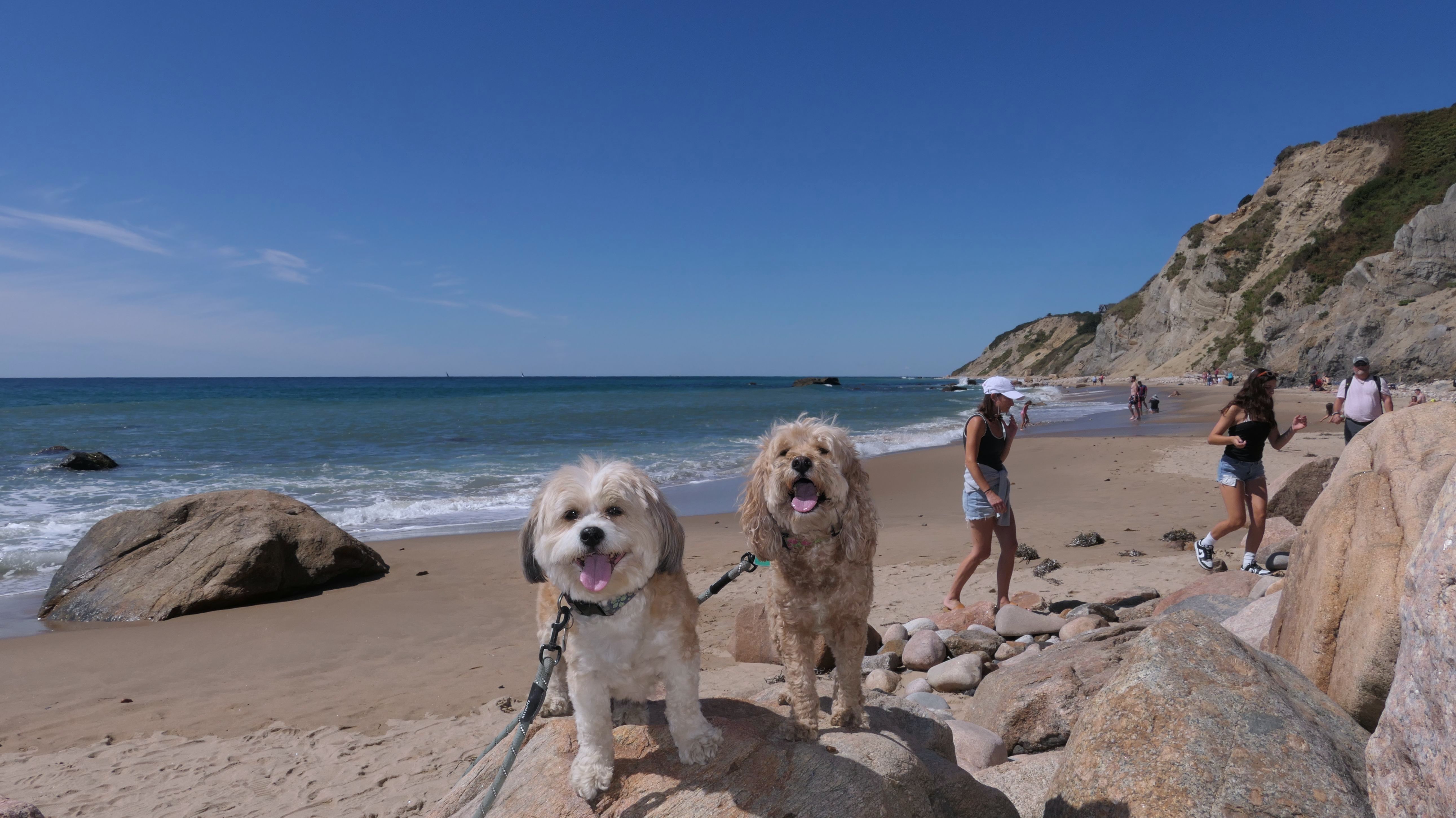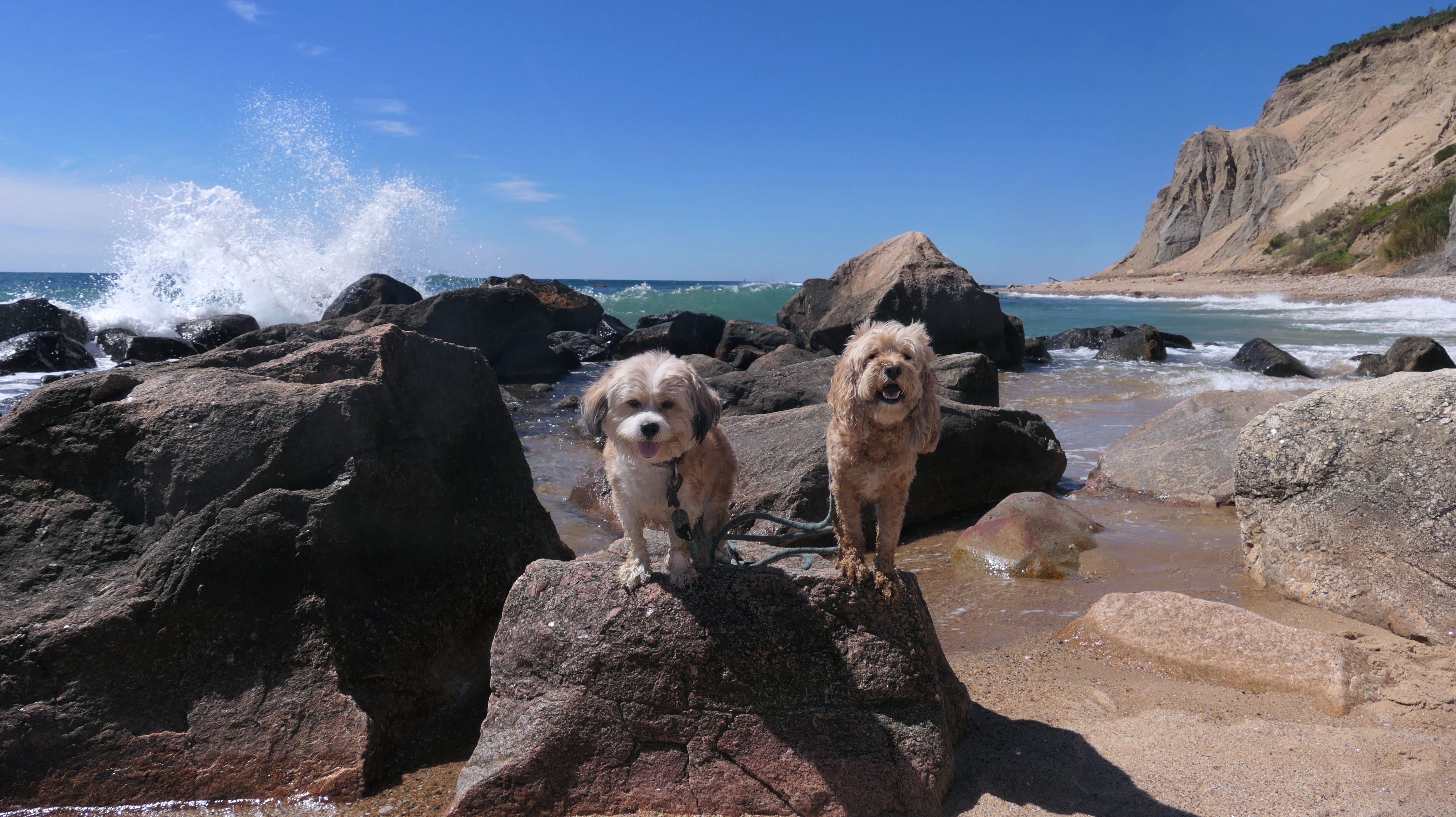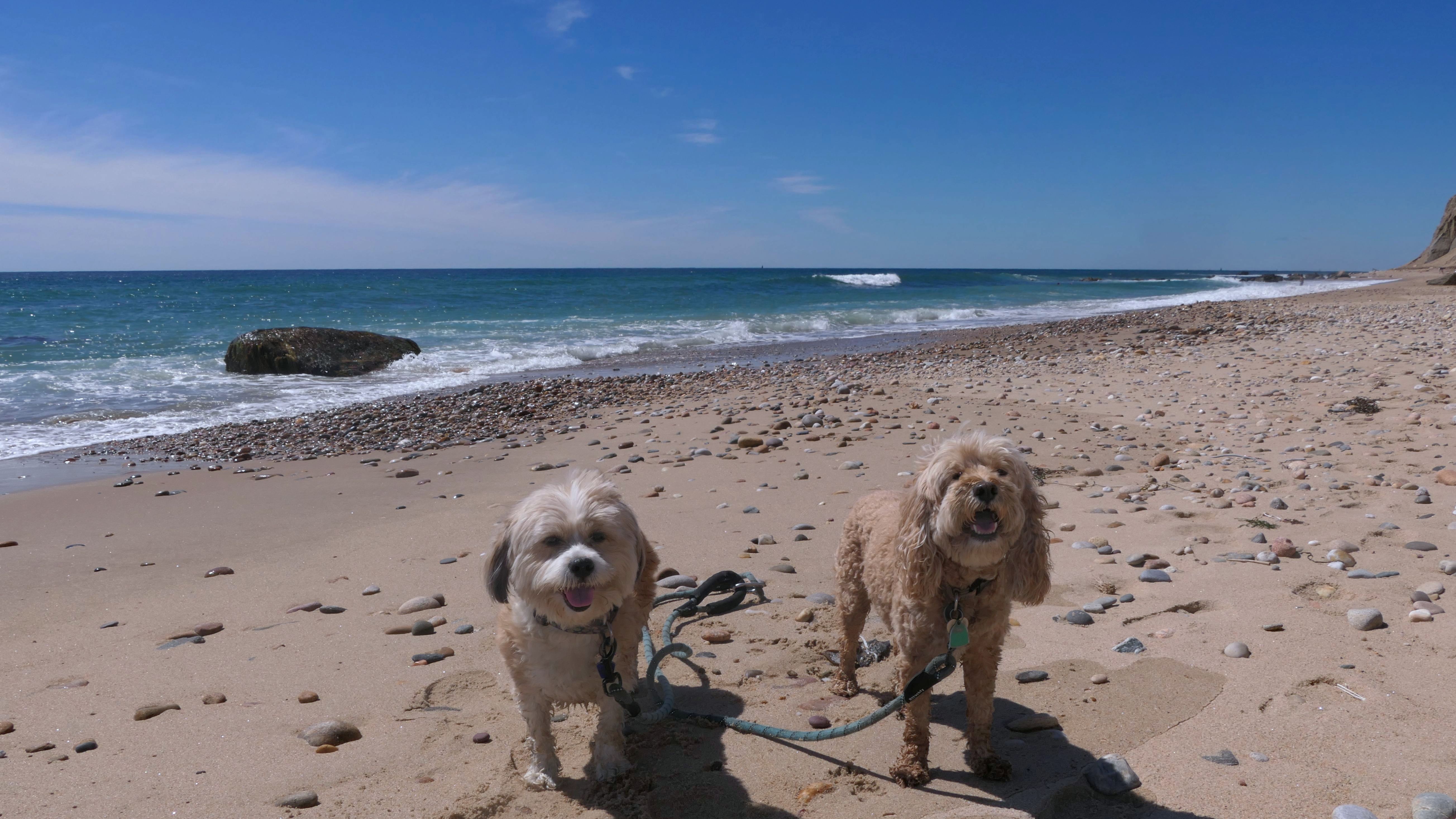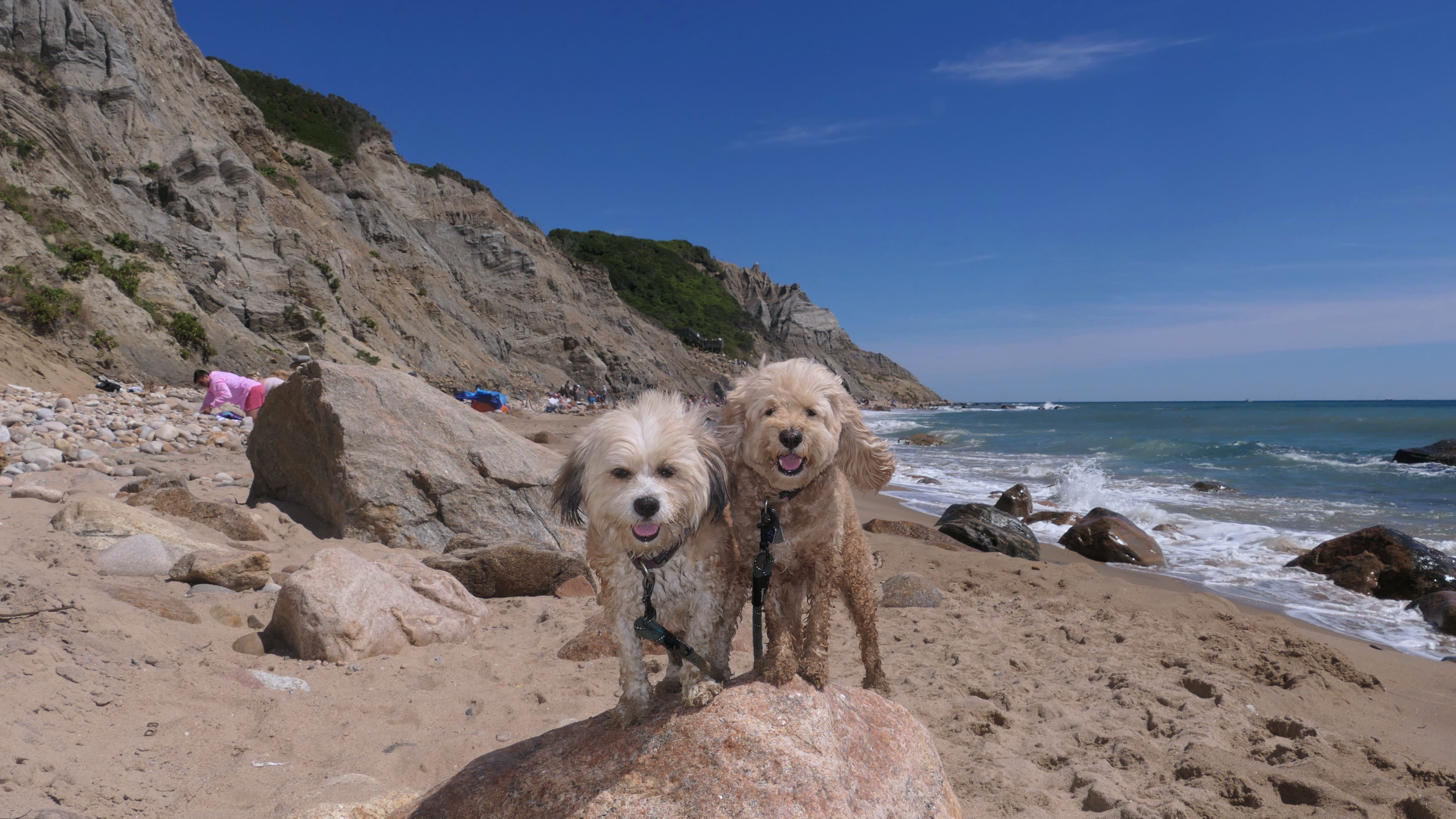 This was the highlight of this trip to Block Island. A couple months earlier we visited the Edward S Payne Overlook, and walked part way down the 141 steps, but did not go all the way down to the beach. This time, we were bound and determined to make it to the beach, so we went all the way down. At the bottom of the stairs is actually a series of rocks that have to be traversed carefully to get to the beach. Once at the bottom, we walked about a mile and a half along the beautiful shore, over to Vaill Beach before turning around and heading back. The views were gorgeous. The beach is a mix of sandy and rocky areas, with plenty of spots for great photos. One thing to be aware of, a section of the beach about a quarter mile from the stairs around the first bend, appears to be unofficially clothing optional. We encountered one nearly naked man sun bathing with his wife (he was wearing only a hat). His wife was wearing a bathing suit. Just something to be aware of. While we were walking back, I let the dogs off-leash to run around a bit. They always enjoy running free on the beach! We made it up the 141 steps on our way back with no issue. The hardest part was climbing over the rocks leading to the staircase. The area had gotten real busy, and there were people just sort of mulling around the rocks, making it difficult to get by. Once we got past that, the walk up wasn't too bad. I'm definitely glad we made it to this beach this time around. It was definitely worth the climb!