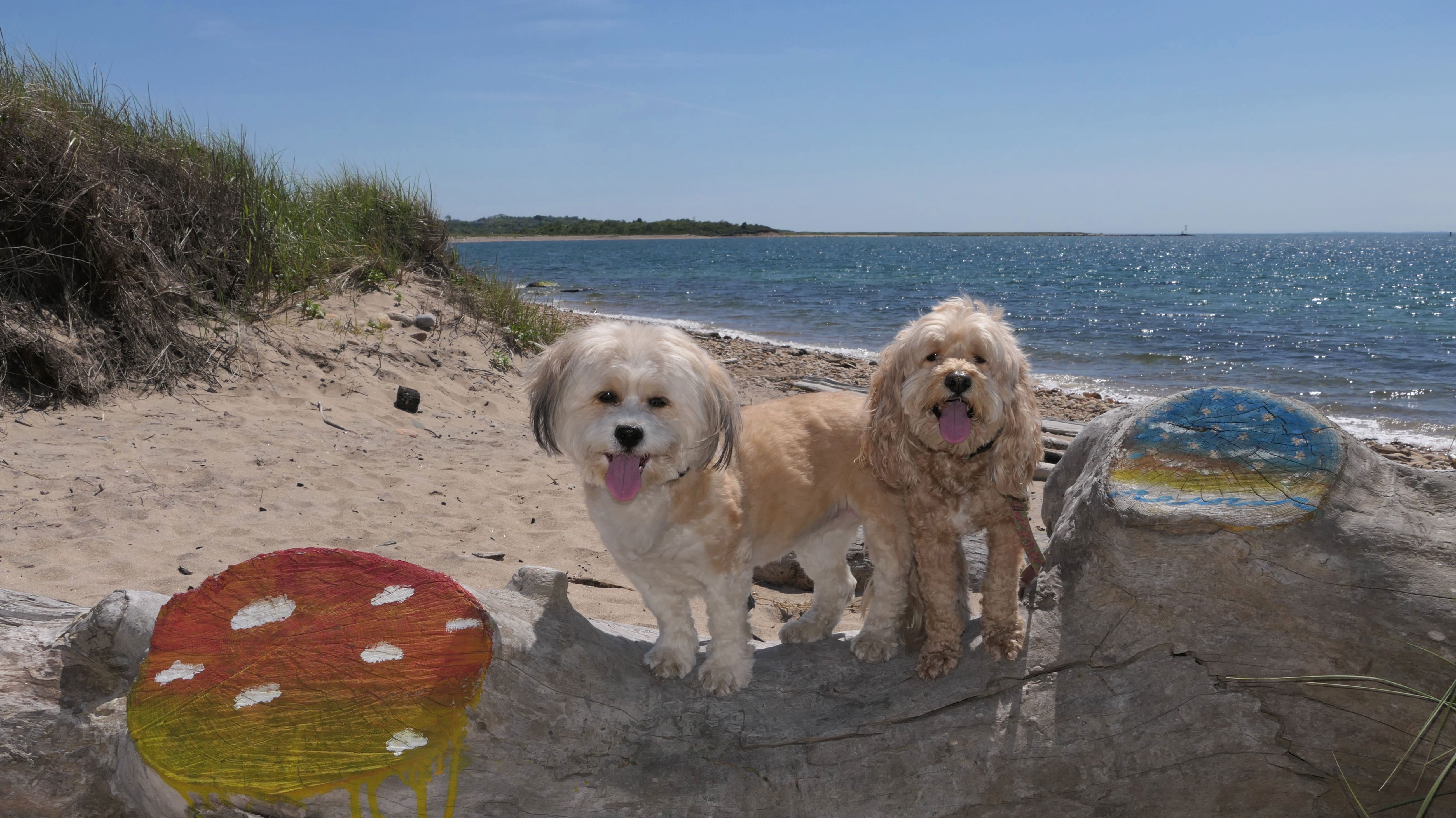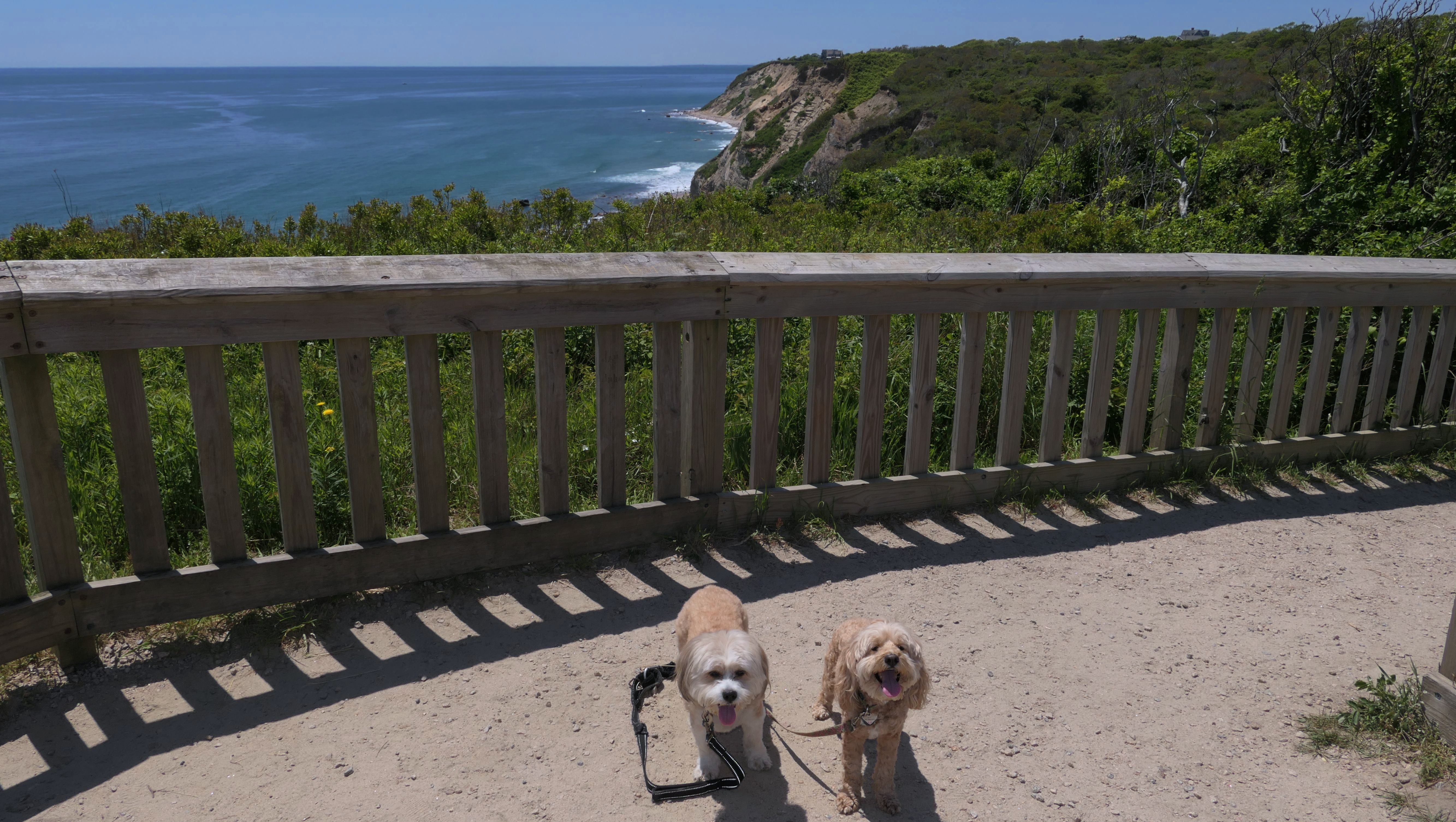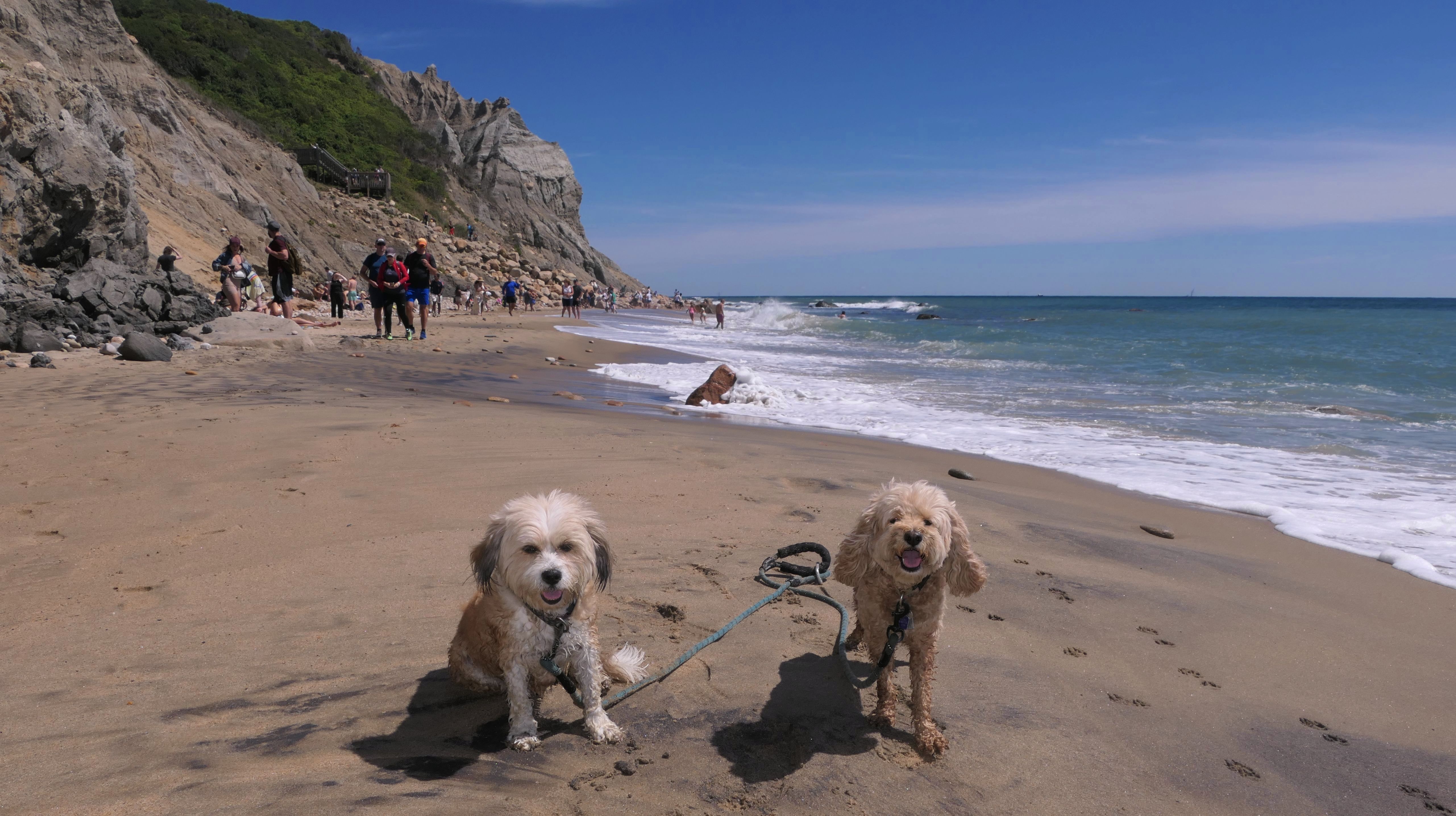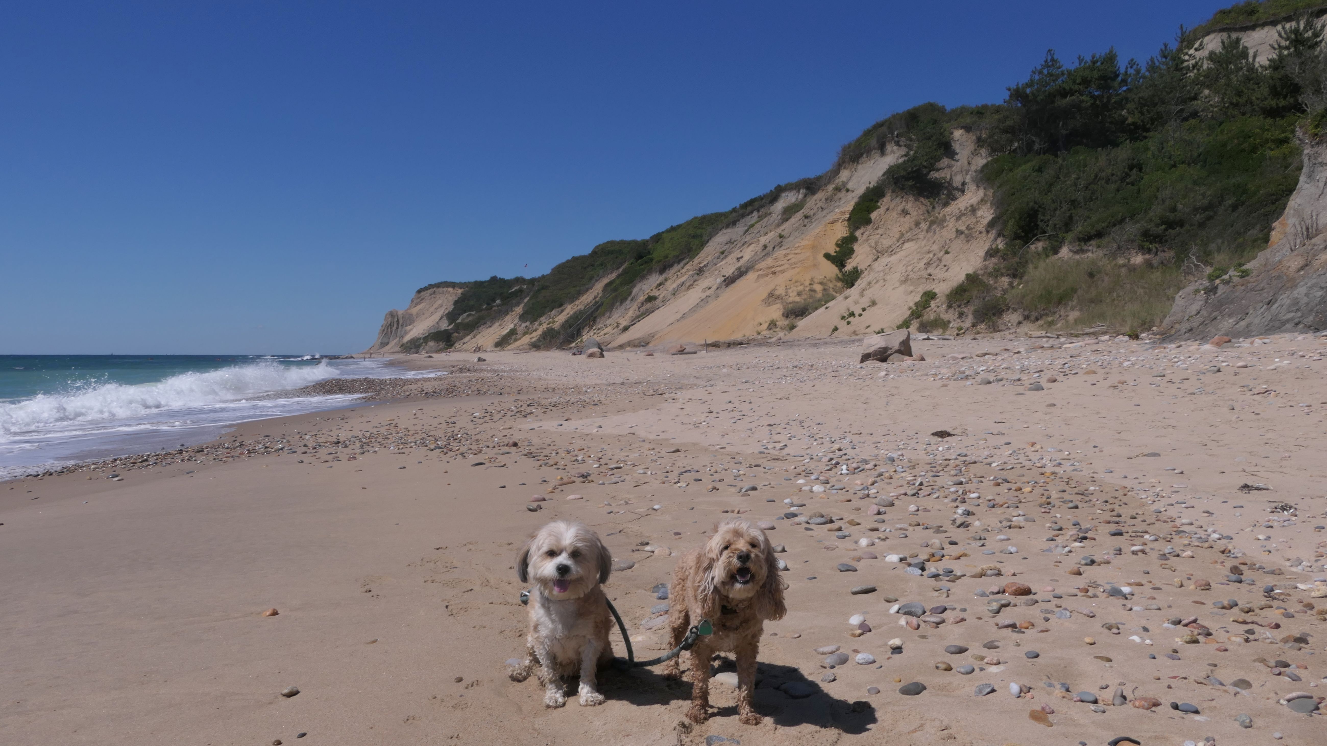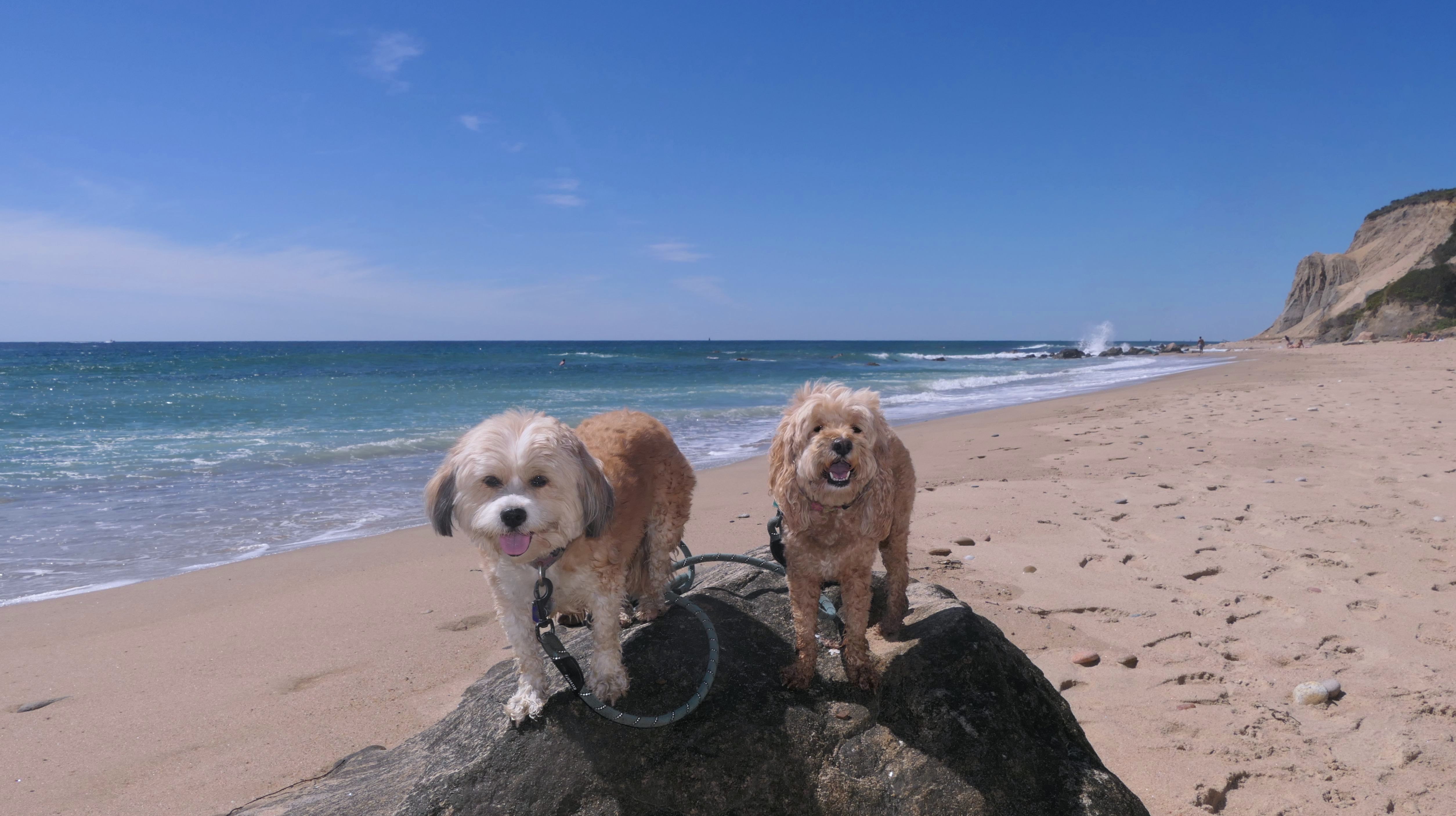 This was the highlight of this trip to Block Island. A couple months earlier we visited the Edward S Payne Overlook, and walked part way down the 141 steps, but did not go all the way down to the beach. This time, we were bound and determined to make it to the beach, so we went all the way down. At the bottom of the stairs is actually a series of rocks that have to be traversed carefully to get to the beach. Once at the bottom, we walked about a mile and a half along the beautiful shore, over to Vaill Beach before turning around and heading back. The views were gorgeous. The beach is a mix of sandy and rocky areas, with plenty of spots for great photos. One thing to be aware of, a section of the beach about a quarter mile from the stairs around the first bend, appears to be unofficially clothing optional. We encountered one nearly naked man sun bathing with his wife (he was wearing only a hat). His wife was wearing a bathing suit. Just something to be aware of. While we were walking back, I let the dogs off-leash to run around a bit. They always enjoy running free on the beach! We made it up the 141 steps on our way back with no issue. The hardest part was climbing over the rocks leading to the staircase. The area had gotten real busy, and there were people just sort of mulling around the rocks, making it difficult to get by. Once we got past that, the walk up wasn't too bad. I'm definitely glad we made it to this beach this time around. It was definitely worth the climb!