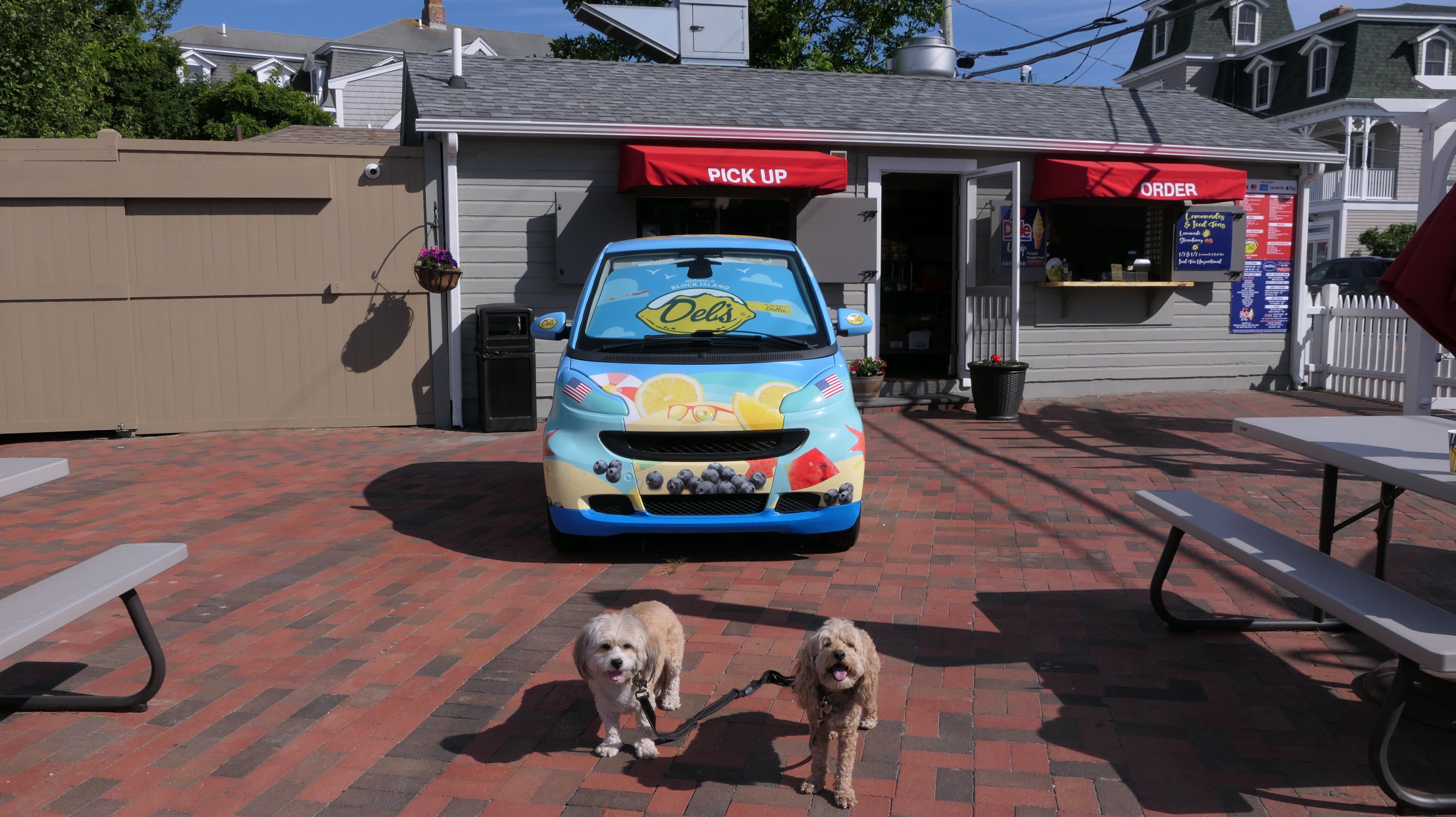 This was our third visit to Block Island. On a whim I decided to rent a car for the day, so we could reach other sections of the island. This may have been the worse car I've ever driven! It's the one in the first picture below, but it was wasn't much larger than the Del's mobile in the other pictures!. The air conditioner didn't work, the tire light was on, and it barely had enough fuel in it to make it to the one gas station on the island (where gas was $4.50/gallon)! It did get us around the island successfully though, so I suppose it was a success! We didn't spend much time in the Old Harbor section, since we covered it thoroughly on our previous trips, but we did stop for our Del's of course!