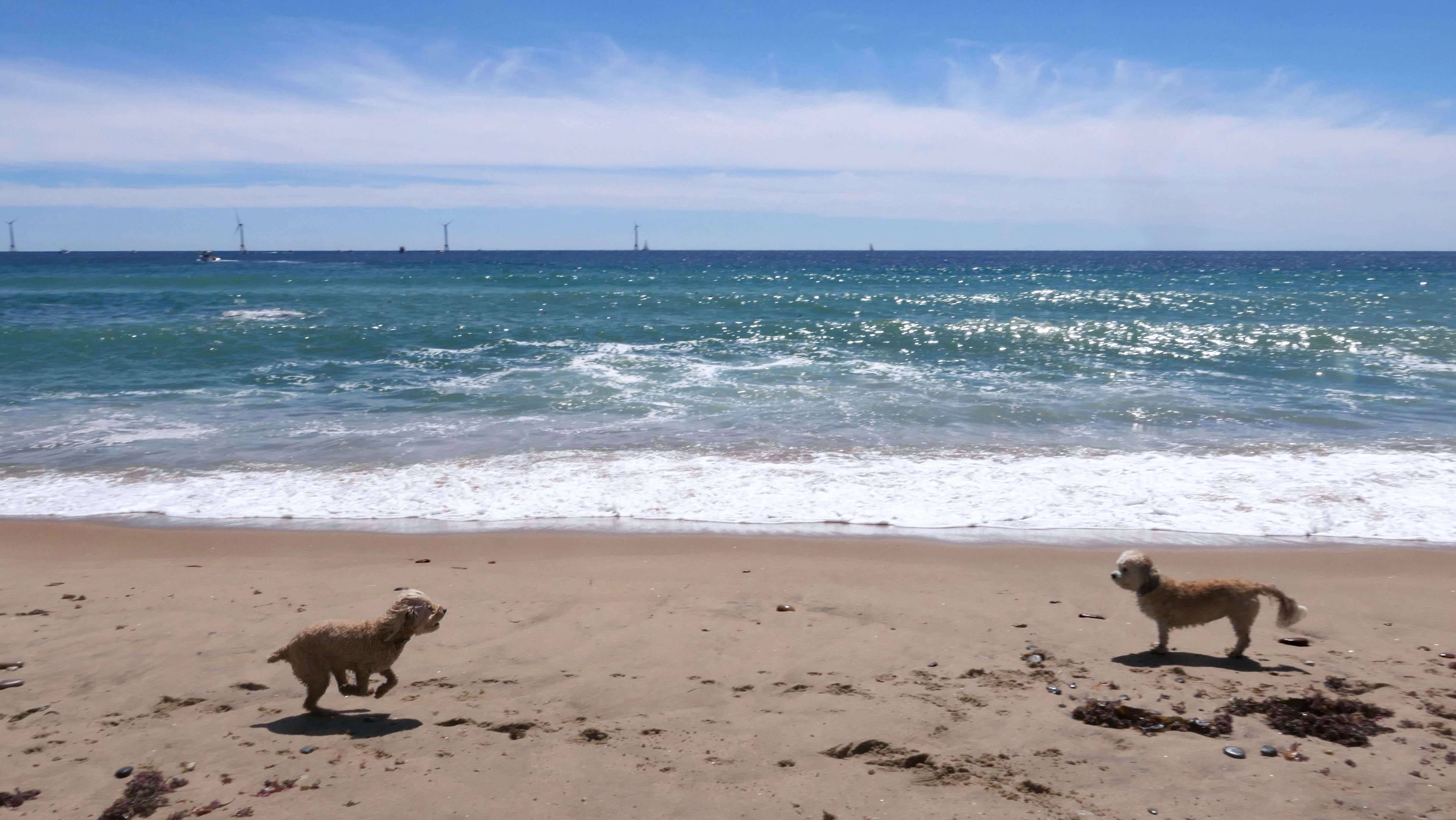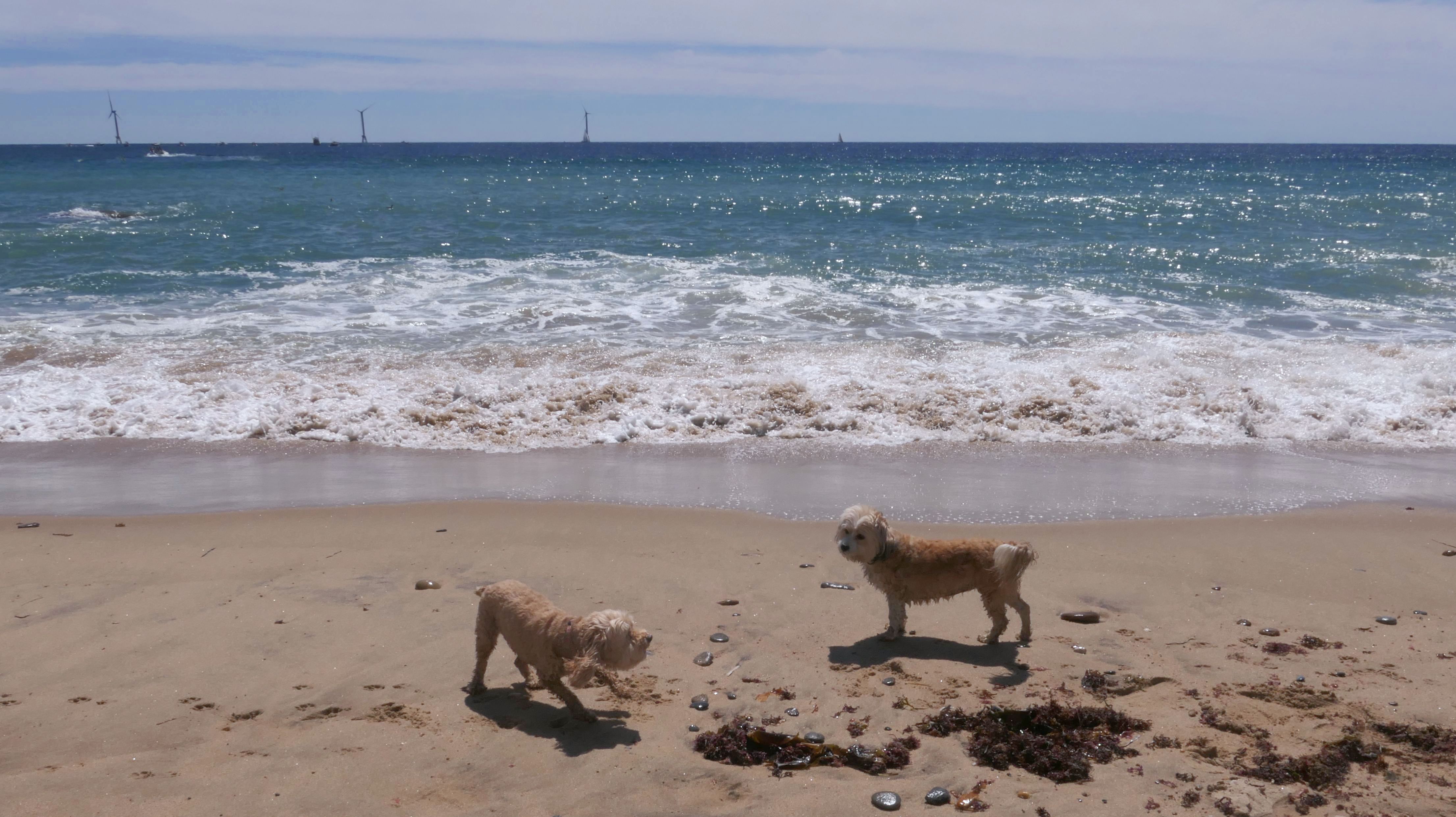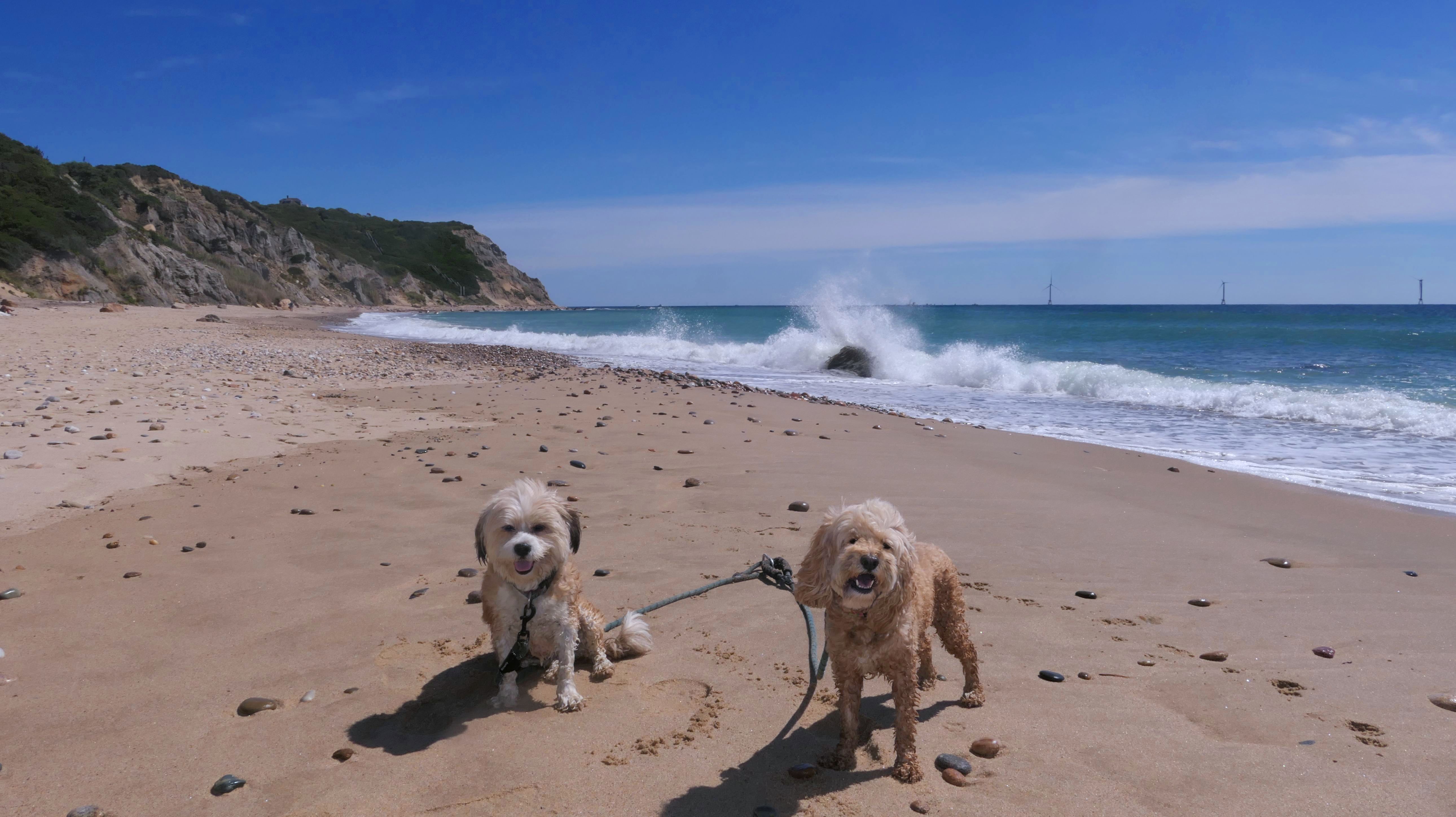 This was the second of four beaches on our Block Island beach adventure. This is probably the most popular beach on the island. It's a 20 minute walk from the ferries, has crystal clear water, and mild waves that are great for families. It goes without saying that leashed dogs are allowed here too, like most (if not all) of the Block Island beaches. We connected from Surf Beach on our way here, so we did not check out the amenities. I've read there is a beach house with bathrooms and showers (I believe there is a charge for the showers). There is also a food stand as well. This was the busiest stretch of beach on our walk. While it's hard to know exactly where one beach begins and the next one ends, we headed to Scotch Beach next, and then Mansion Beach.