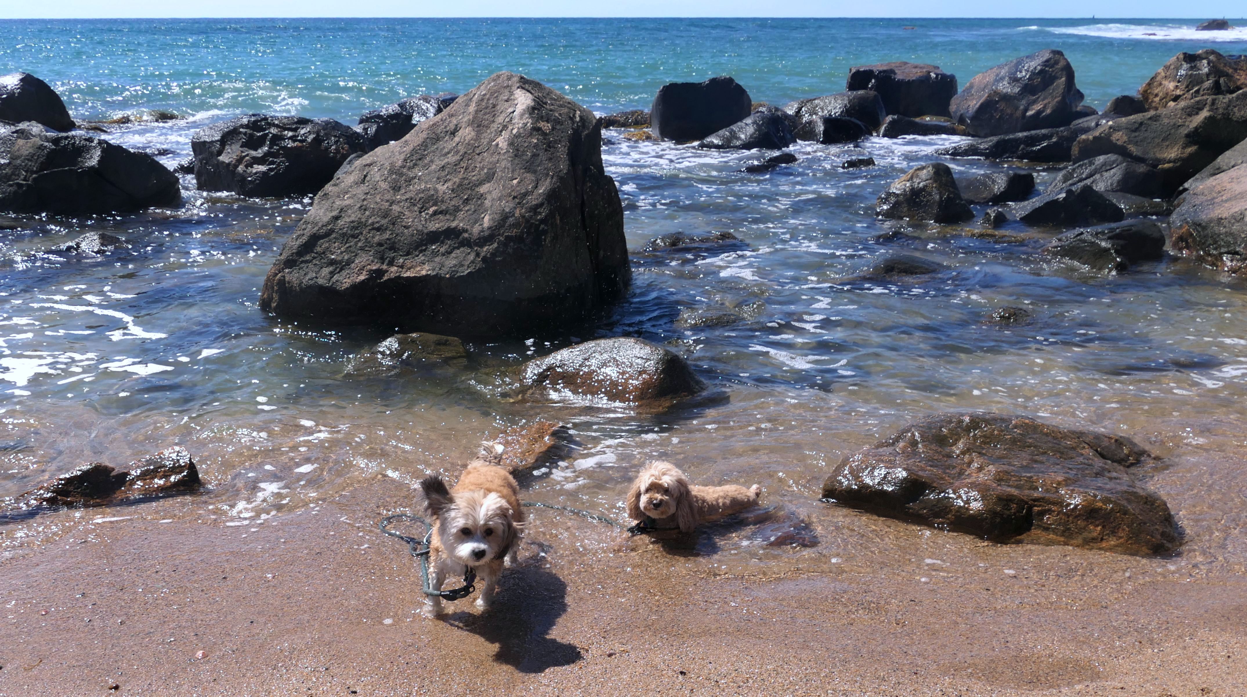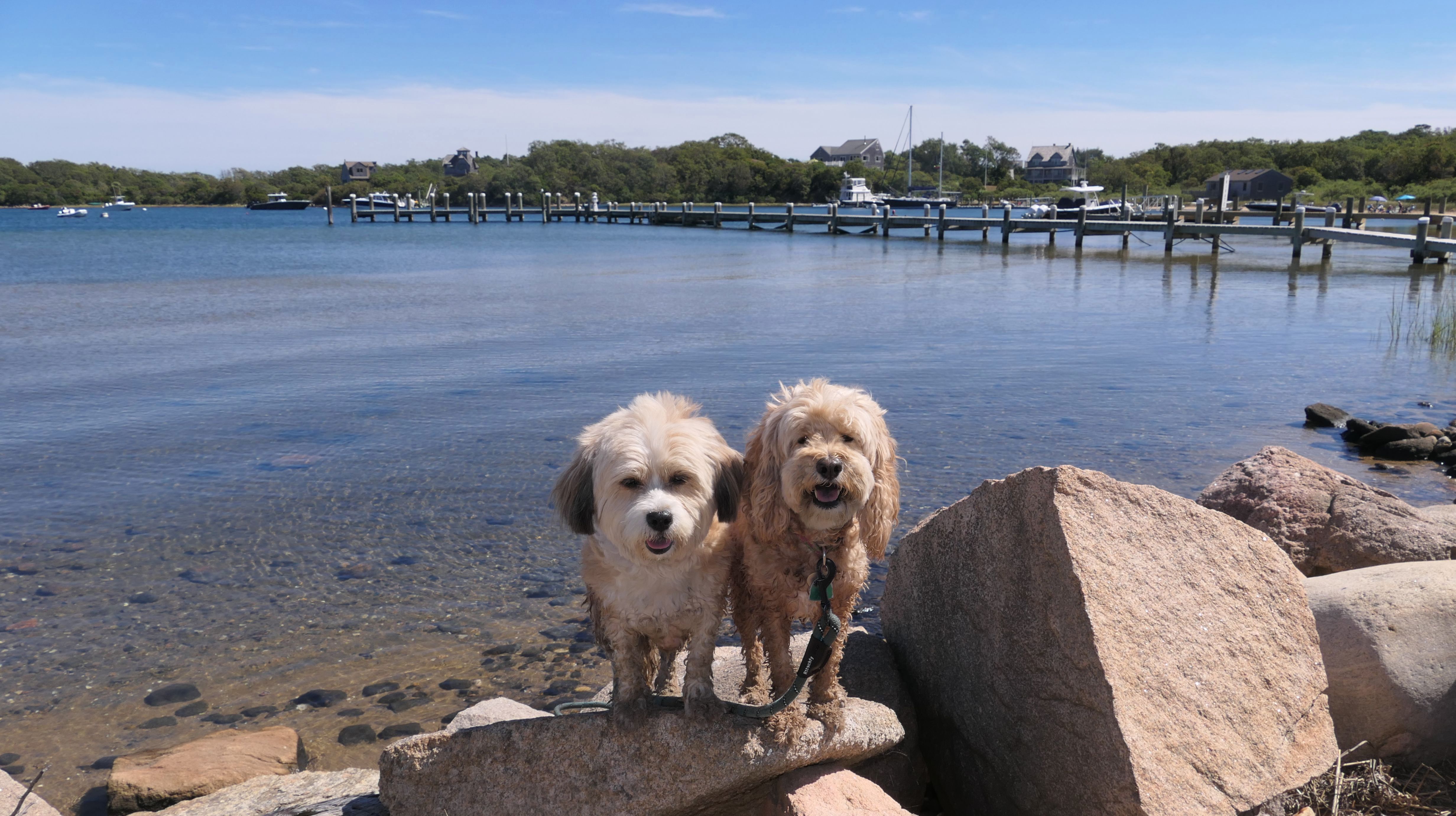 We walked here from nearby Charleston Beach. The cove opens up to the salt pond, and Mandy and Lexi both took the opportunity to sit in the calm salt water for a bit.