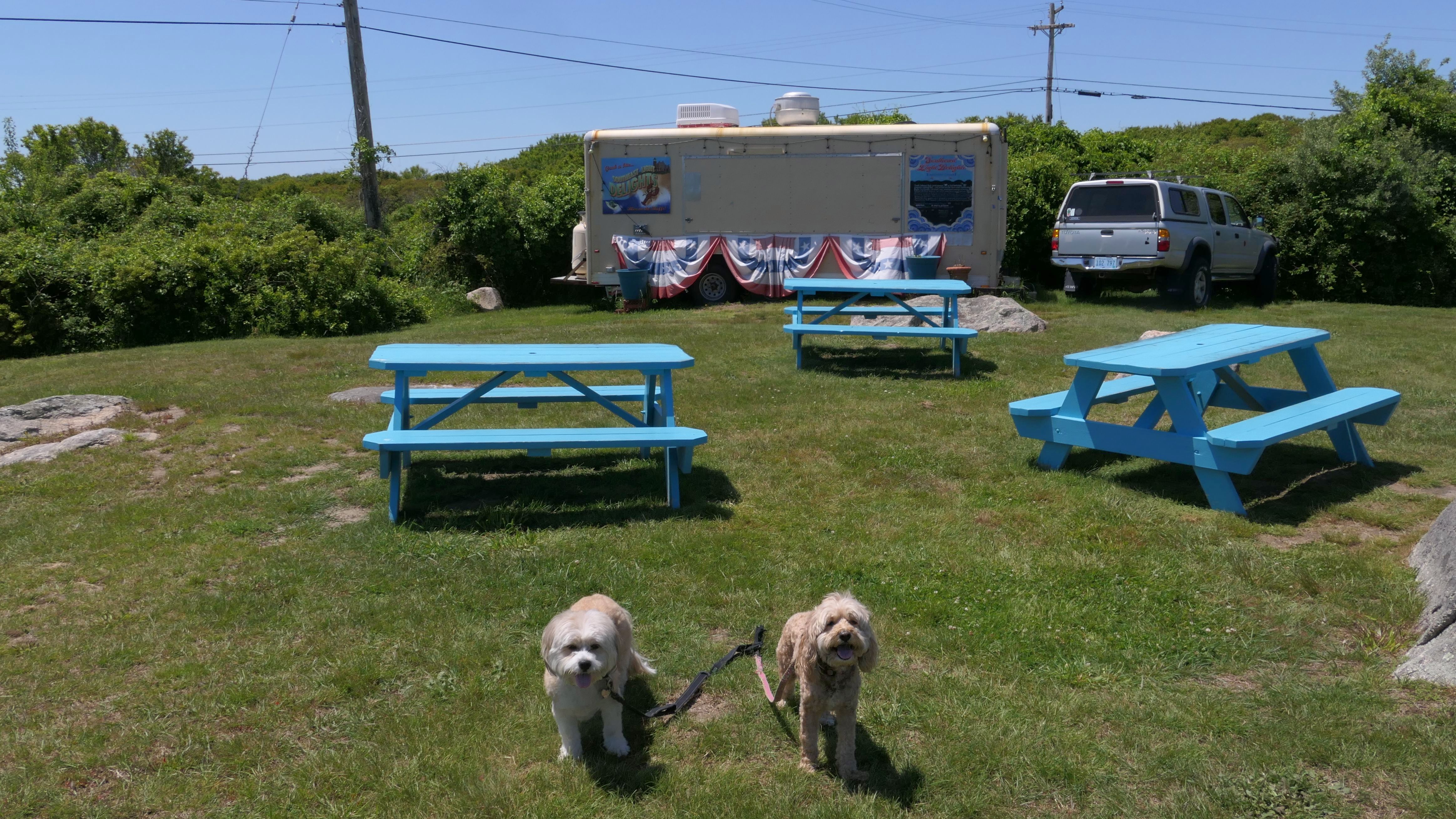 The is a small preserve with no trails, maintained by Block Island Land Conservancy. We used it as a resting spot, taking a break by sitting at the picnic tables. There is a scenic salt pond, that was impossible to get a picture of it with the dogs in it. There is also nice views of Surf Beach across the street.