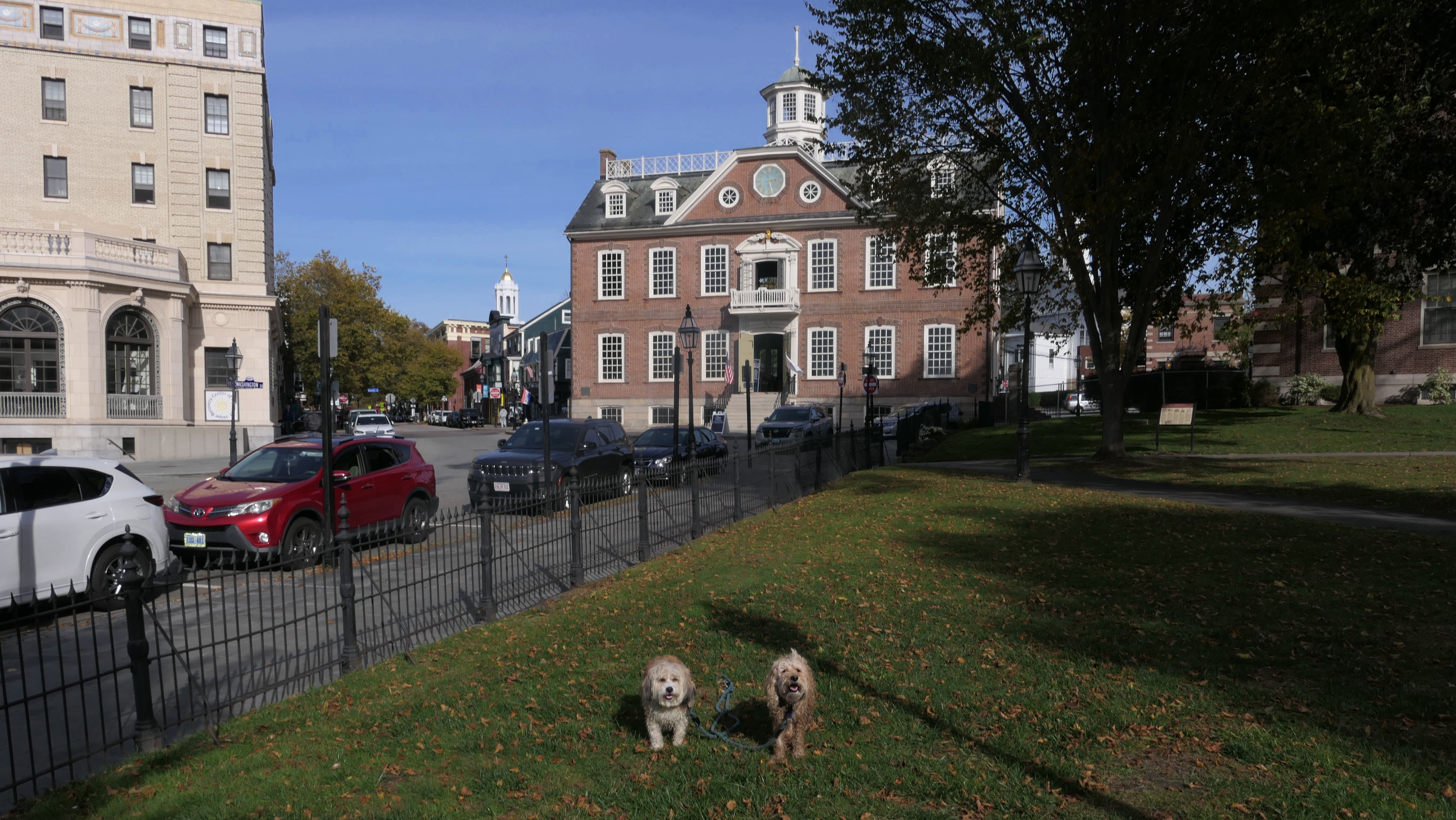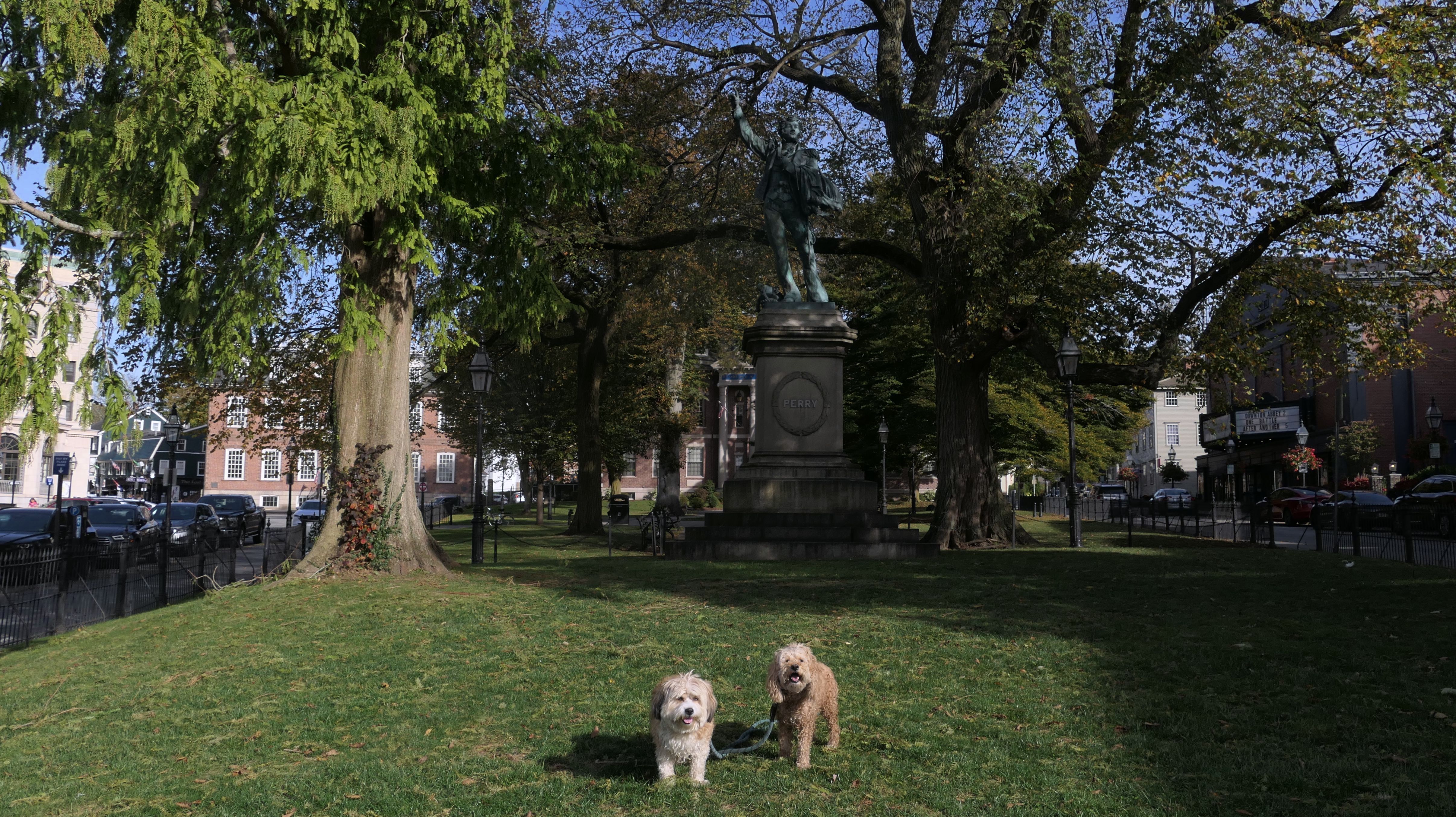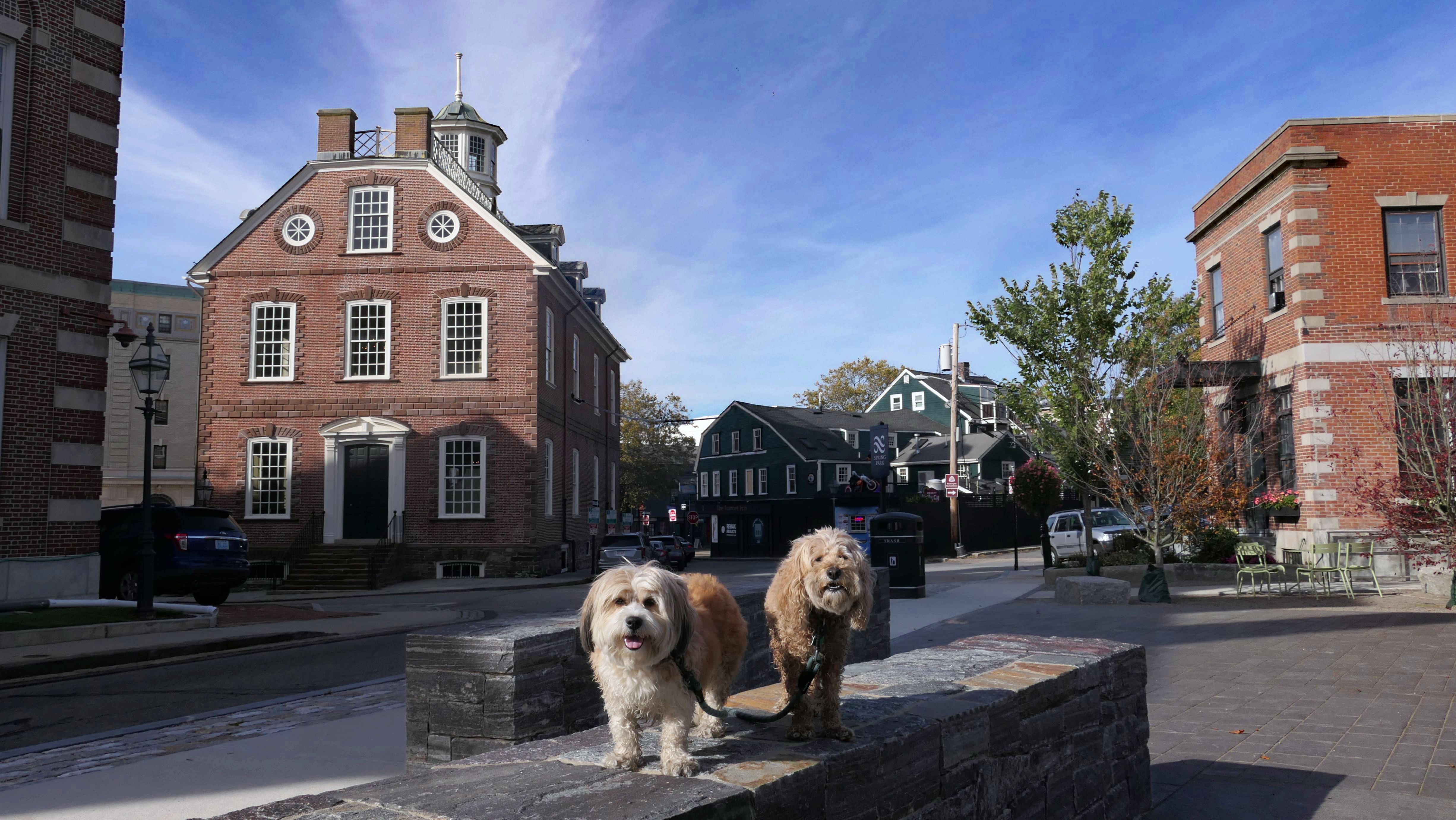 This was a family trip to Newport for the day. The downtown area was bustling as the annual seafood festival was taking place at Bowens Wharf. We didn't stay at the festival too long because it was massively crowded, and hard to walk through with two small dogs. Across the street, Trinity Church was hosting it's annual pumpkin patch at Queen Anne Square. We got some nice photos of the dogs there. My wife headed to the shops, while I took the dogs and walked through downtown Newport. Most of our walk consisted of places we've been before, but we did get a good walk through the Washington Square neighborhood, which we hadn't covered that thoroughly in the past. This was a fun autumn adventure in Newport.
