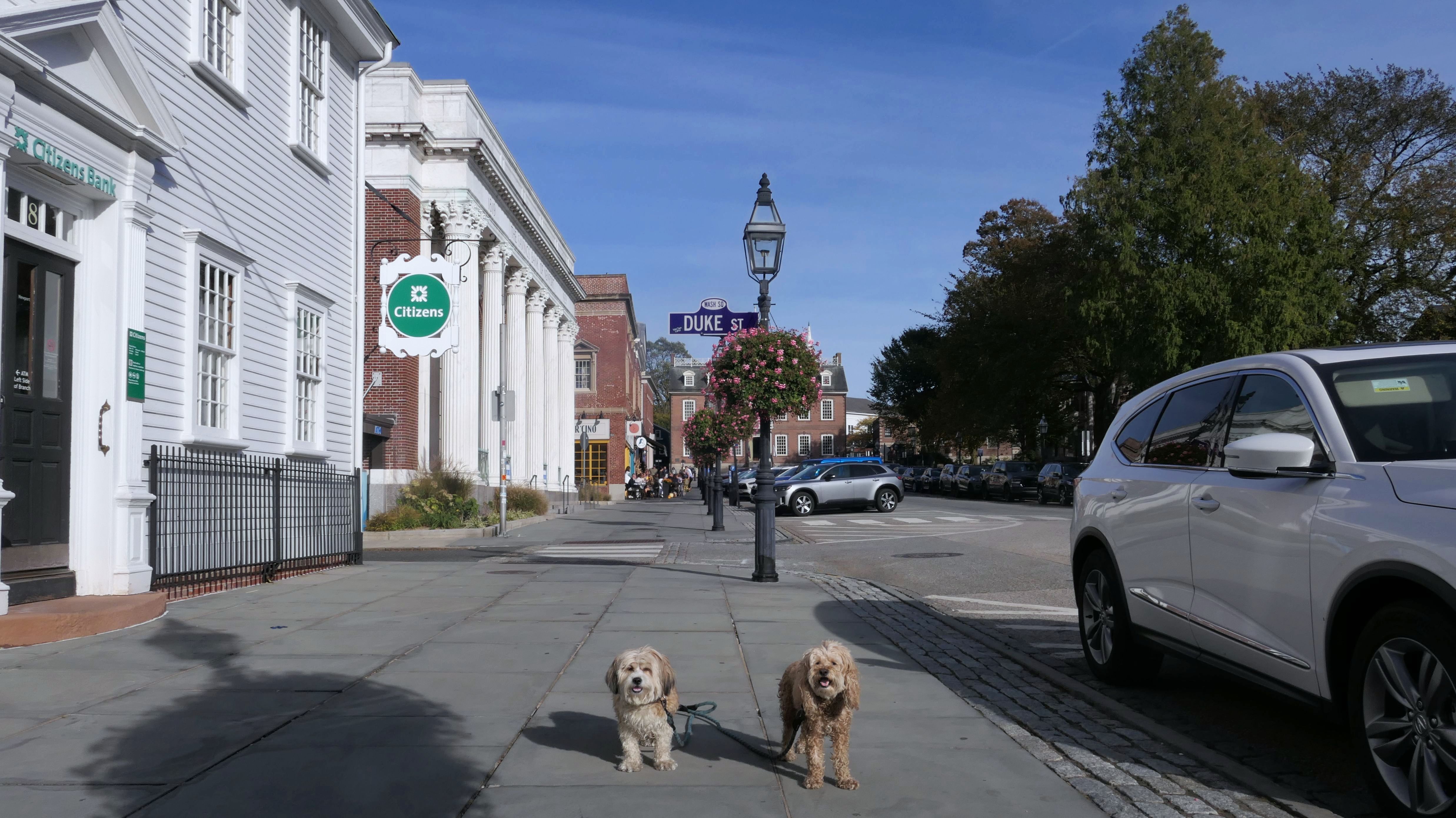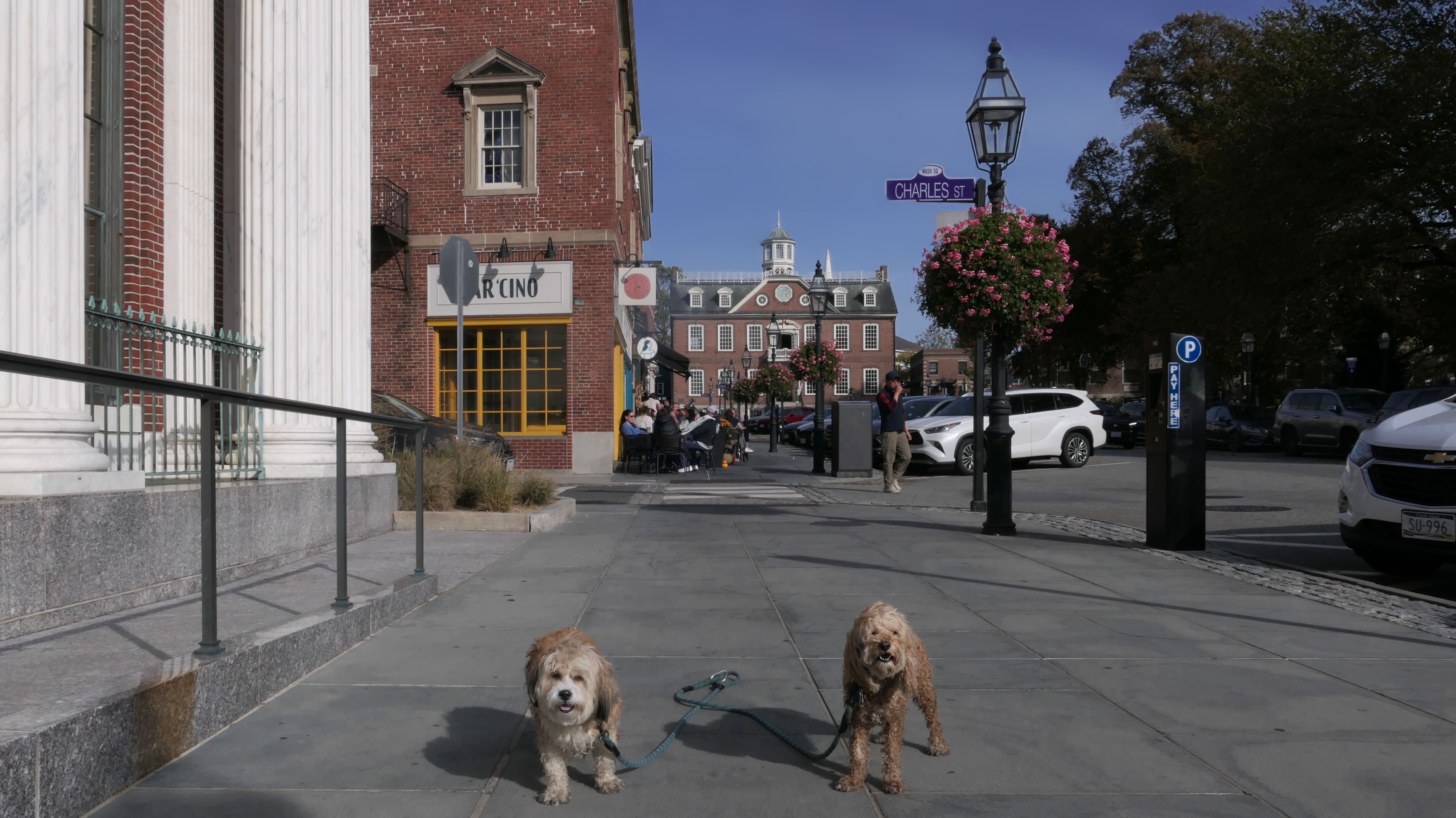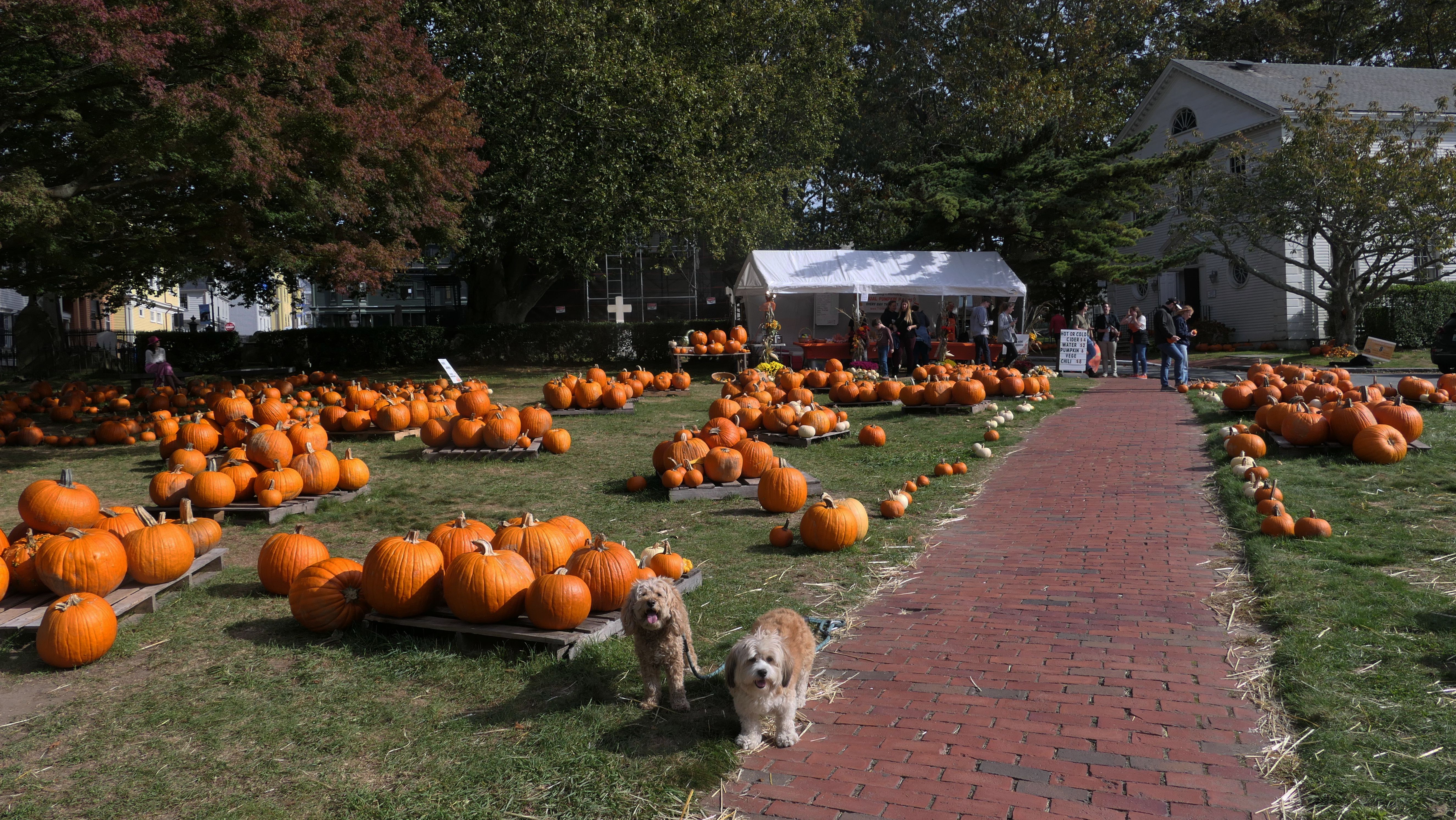 This was a family trip to Newport for the day. The downtown area was bustling as the annual seafood festival was taking place at Bowens Wharf. We didn't stay at the festival too long because it was massively crowded, and hard to walk through with two small dogs. Across the street, Trinity Church was hosting it's annual pumpkin patch at Queen Anne Square. We got some nice photos of the dogs there. My wife headed to the shops, while I took the dogs and walked through downtown Newport. Most of our walk consisted of places we've been before, but we did get a good walk through the Washington Square neighborhood, which we hadn't covered that thoroughly in the past. This was a fun autumn adventure in Newport.