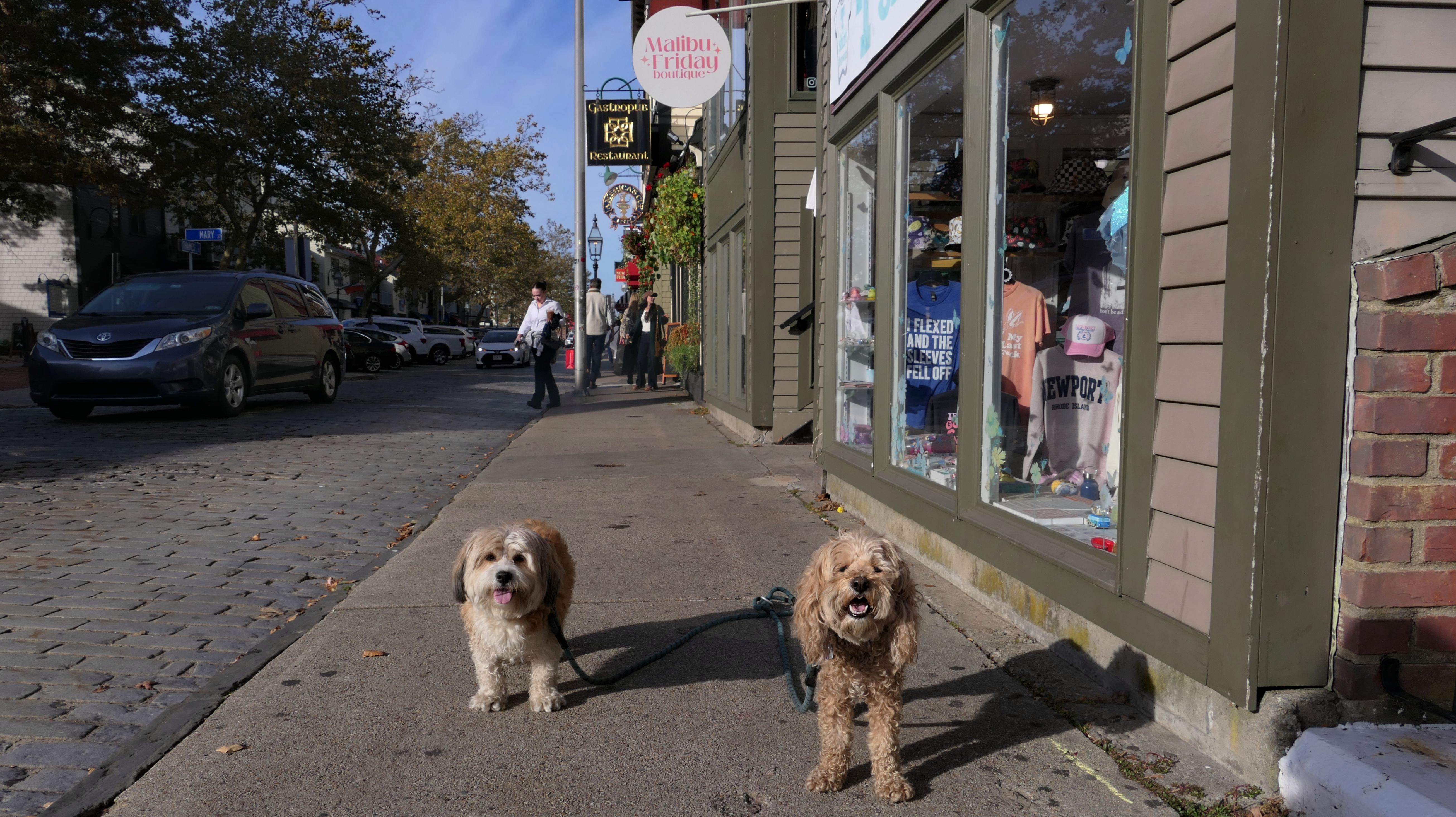 This is a walk along historic Thames Street, and the surrounding area, located in the heart of the Newport tourist district. There is some overlap here with our Downtown Newport adventure from September of 2022, but I tried to take different pictures this time around. I would say 90% of our walk was different from our previous trip. The street is lined with little shops, which are real tourist traps. In fact, one of the stores is actually named "The Tourist Trap"! Some of the shops allow dogs, and a few even put water and treats out along the sidewalk for the pups. There are also various marinas and pedestrian walkways by the shore. One of the walkways leads out to King Park, but there was some construction going on and the access to the park was blocked. Behind the sailing museum is a very nice spot that the dogs could use to cool off. We actually came back to that spot a few times over the course of our four and a half mile walk. Just be aware, even on a weekday, it can become a nightmare to find a parking spot. We arrived just after 10AM, and were able to find a nice spot right on the street, but by noon, everything had filled up.