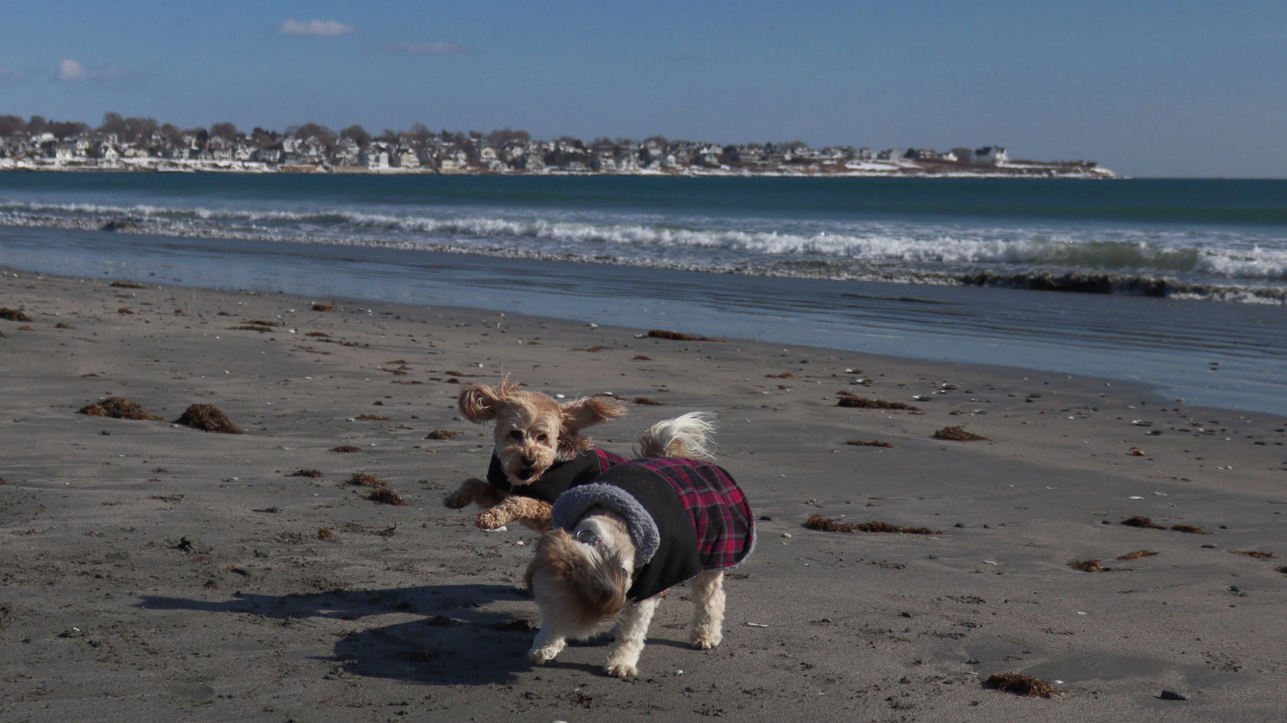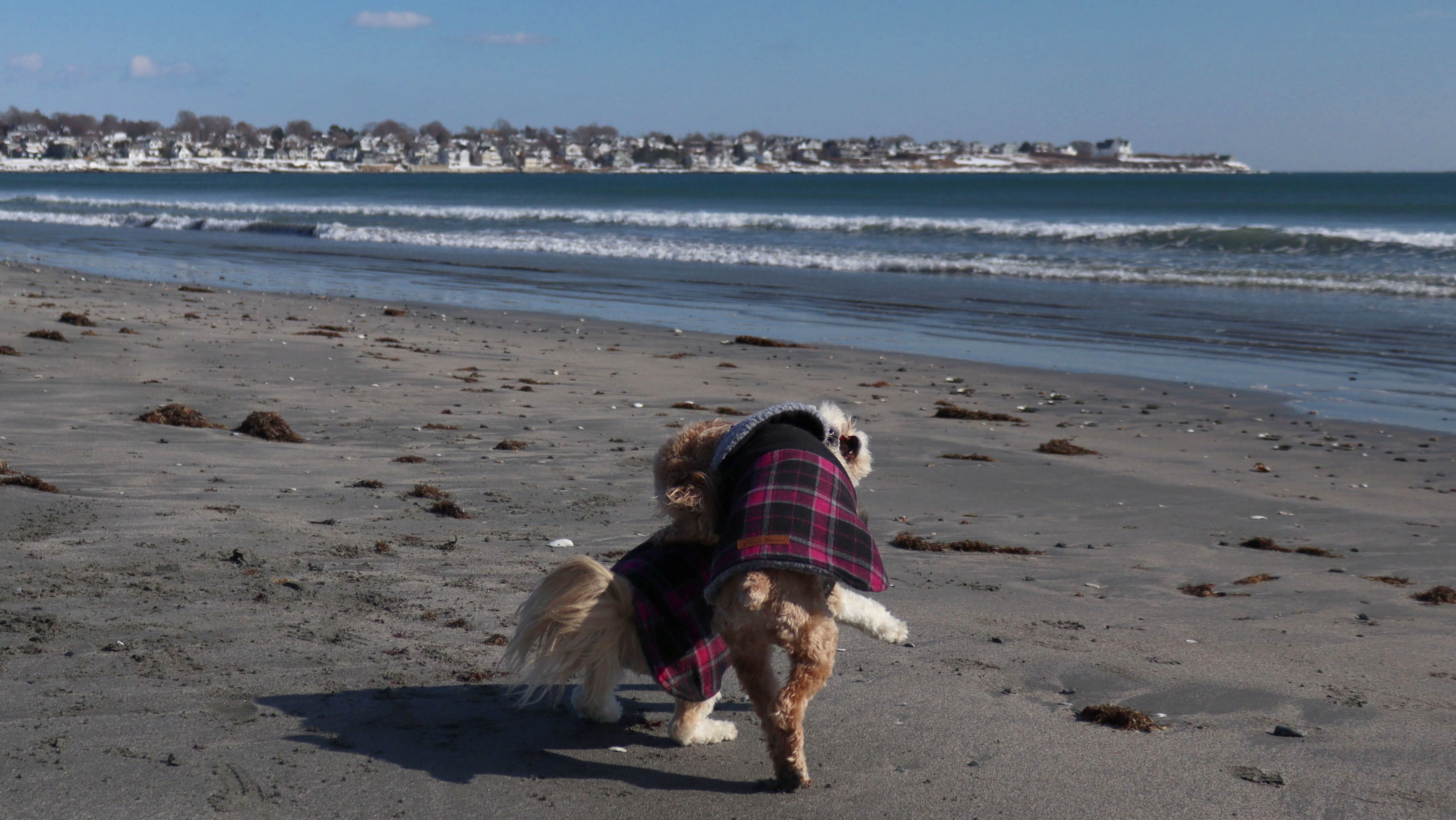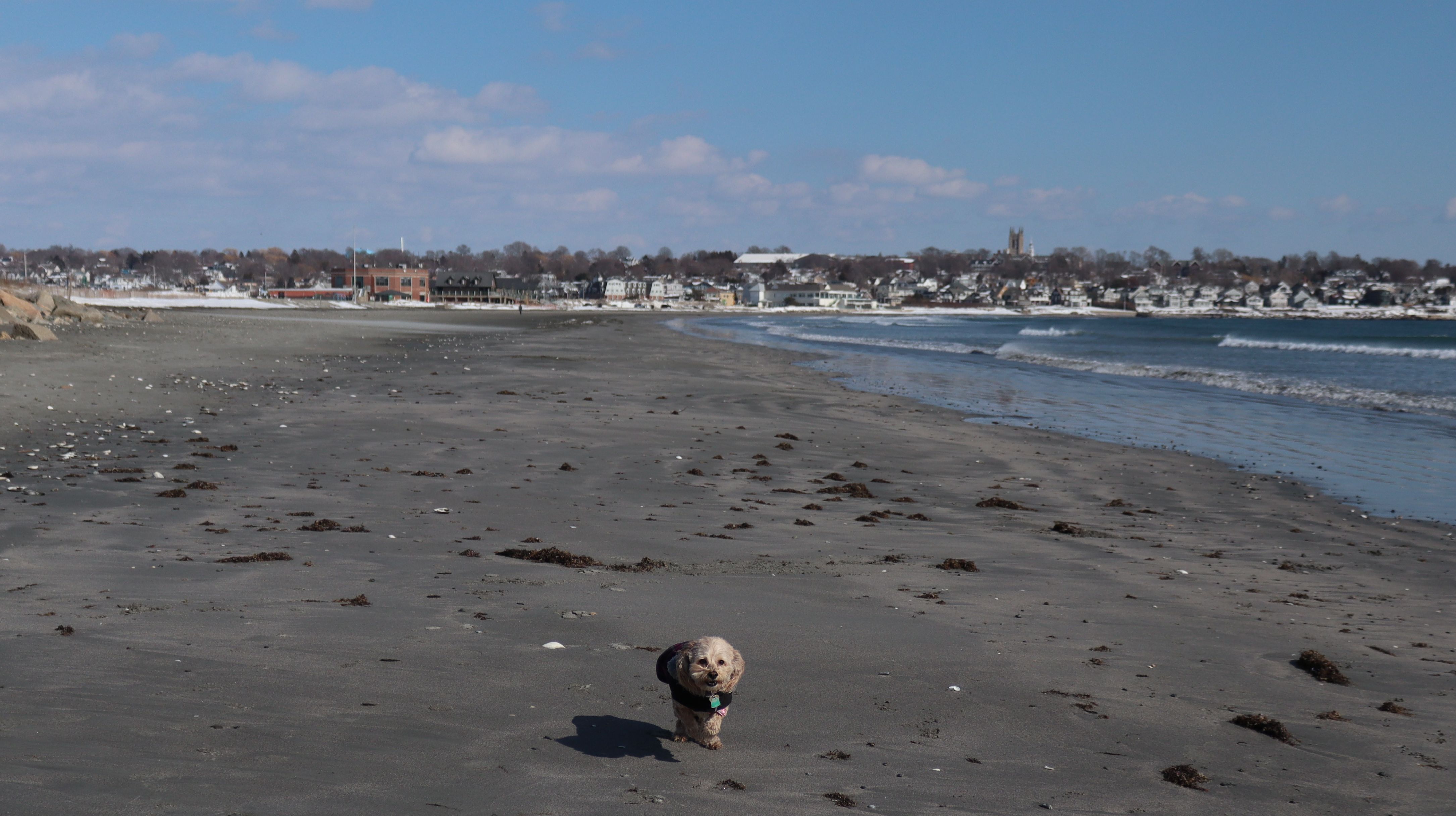 We spotted this beach initially when we walked the Cliff Walk. This beach is located at the start of the Cliff Walk, but we could only take pictures of the beach from the road that day because dogs aren't allowed during the summer months. We came back on a day, that was definitely not a summer day and checked out the beach. It's a popular beach in Newport, which the locals also call "First Beach". "Second Beach" and Third Beach are located nearby in neighboring Middletown. I actually think those beaches are nicer than this one. We also took a detour while we were here to walk over to Dunlap Wheeler Park and Atlantic Beach in Middletown, which is pretty much one lot over from Easton's Beach. When we arrived here on a brisk January day, there were actually people surfing, as well as some other dogs that were fetching balls in the water. It was a bit too cold for us to do any of those activities, but we enjoyed our walk anyway!