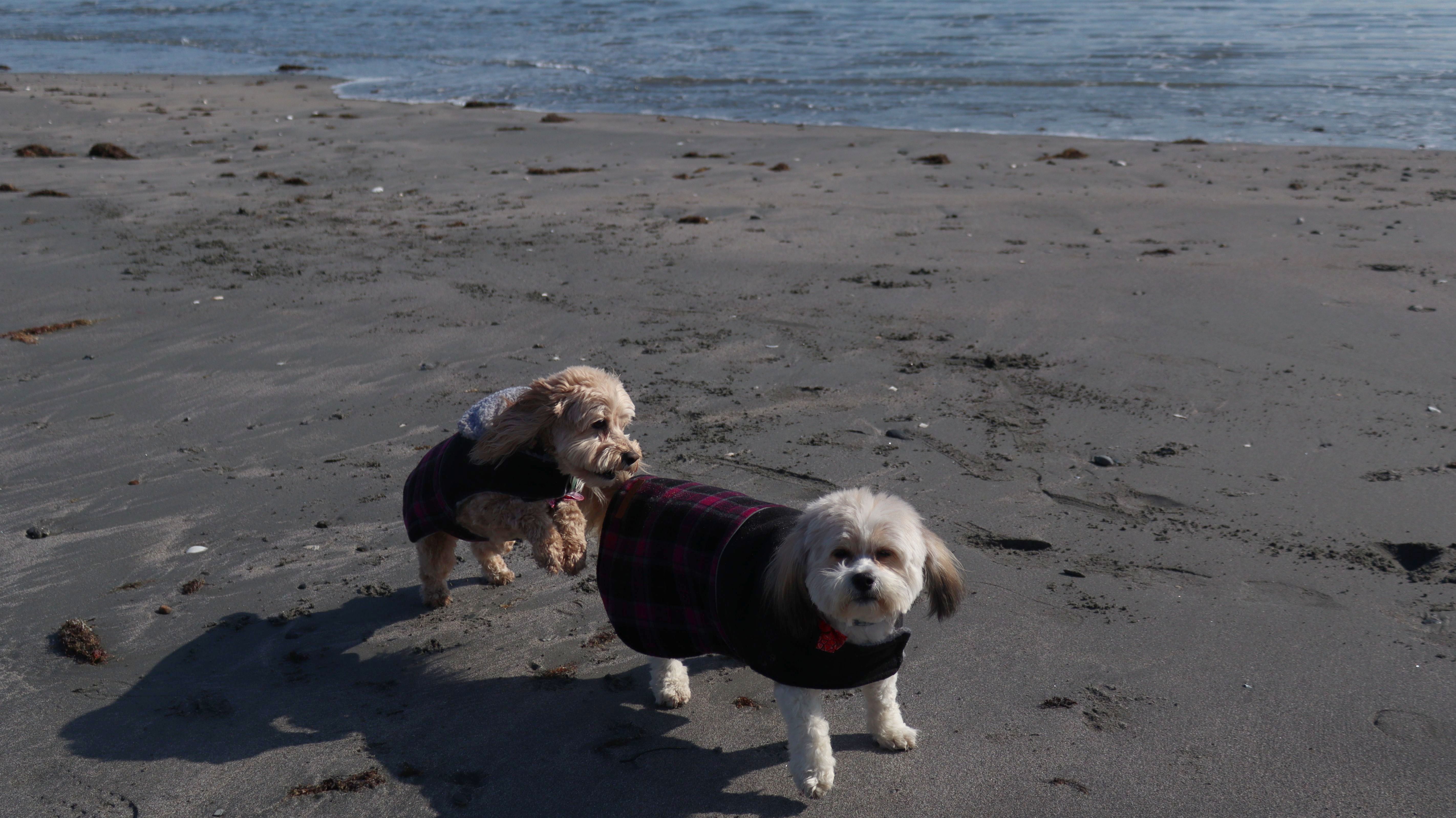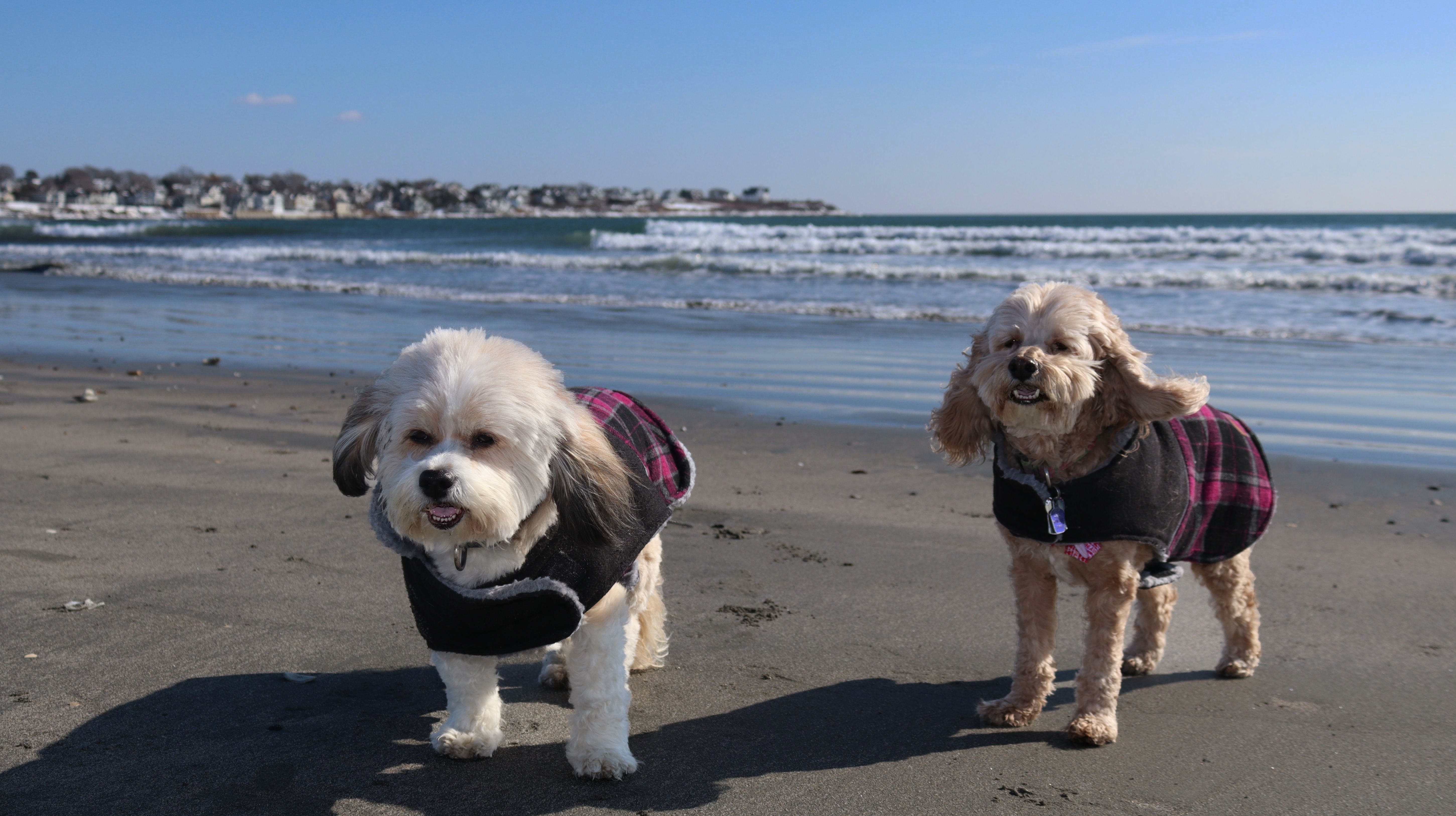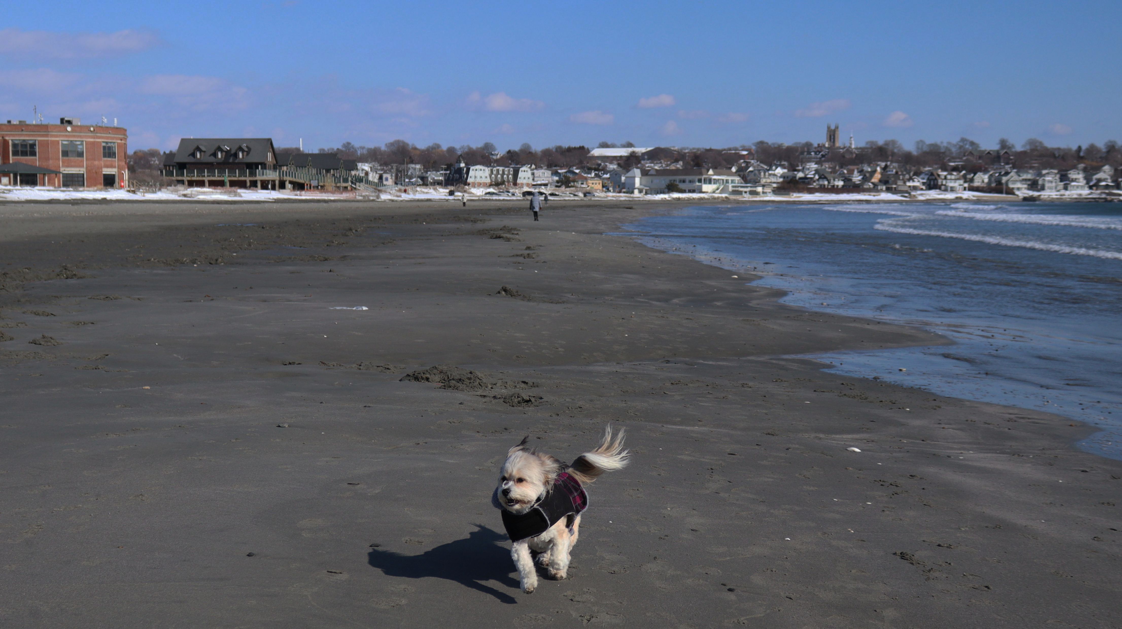 We spotted this beach initially when we walked the Cliff Walk. This beach is located at the start of the Cliff Walk, but we could only take pictures of the beach from the road that day because dogs aren't allowed during the summer months. We came back on a day, that was definitely not a summer day and checked out the beach. It's a popular beach in Newport, which the locals also call "First Beach". "Second Beach" and Third Beach are located nearby in neighboring Middletown. I actually think those beaches are nicer than this one. We also took a detour while we were here to walk over to Dunlap Wheeler Park and Atlantic Beach in Middletown, which is pretty much one lot over from Easton's Beach. When we arrived here on a brisk January day, there were actually people surfing, as well as some other dogs that were fetching balls in the water. It was a bit too cold for us to do any of those activities, but we enjoyed our walk anyway!
