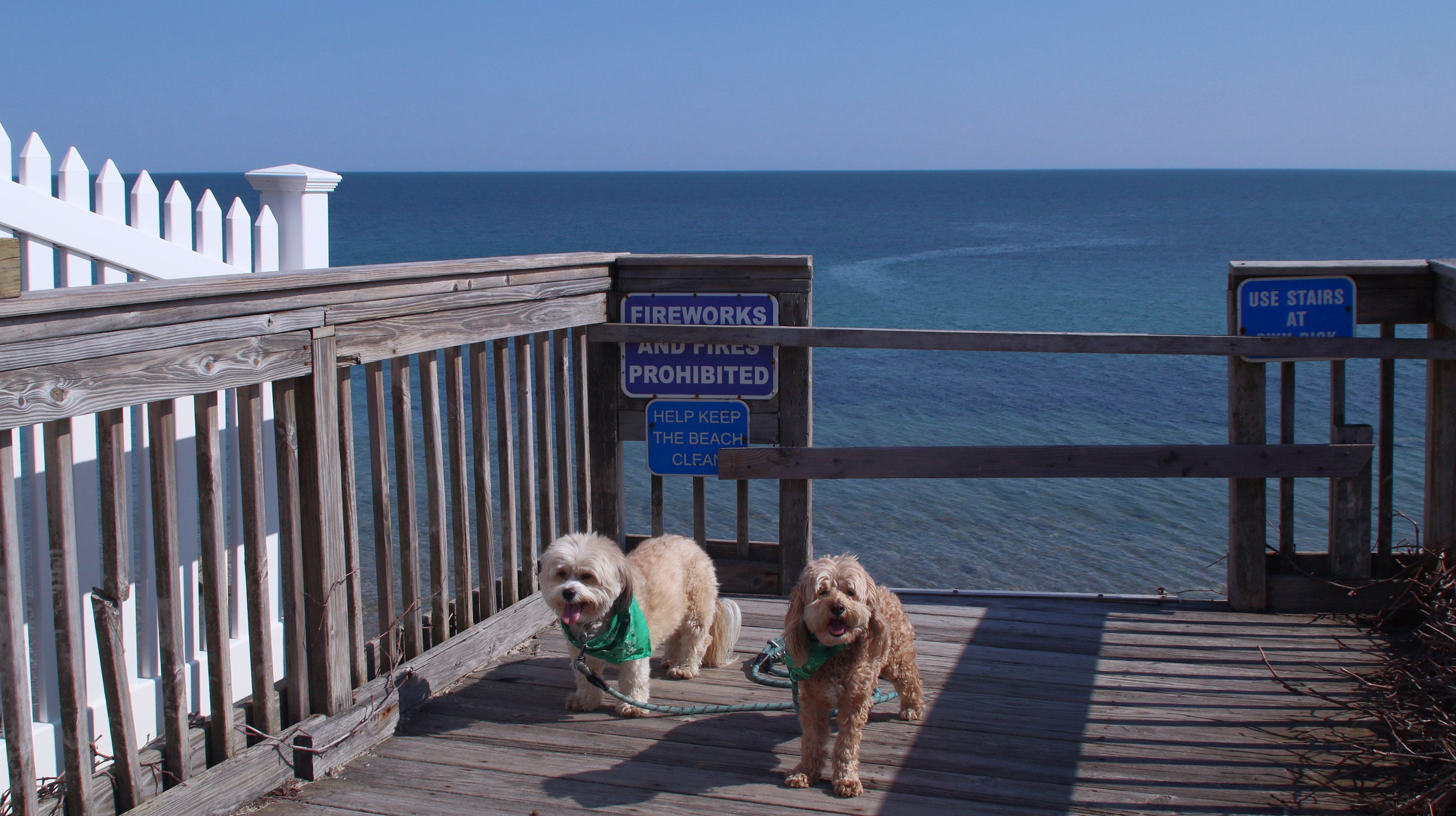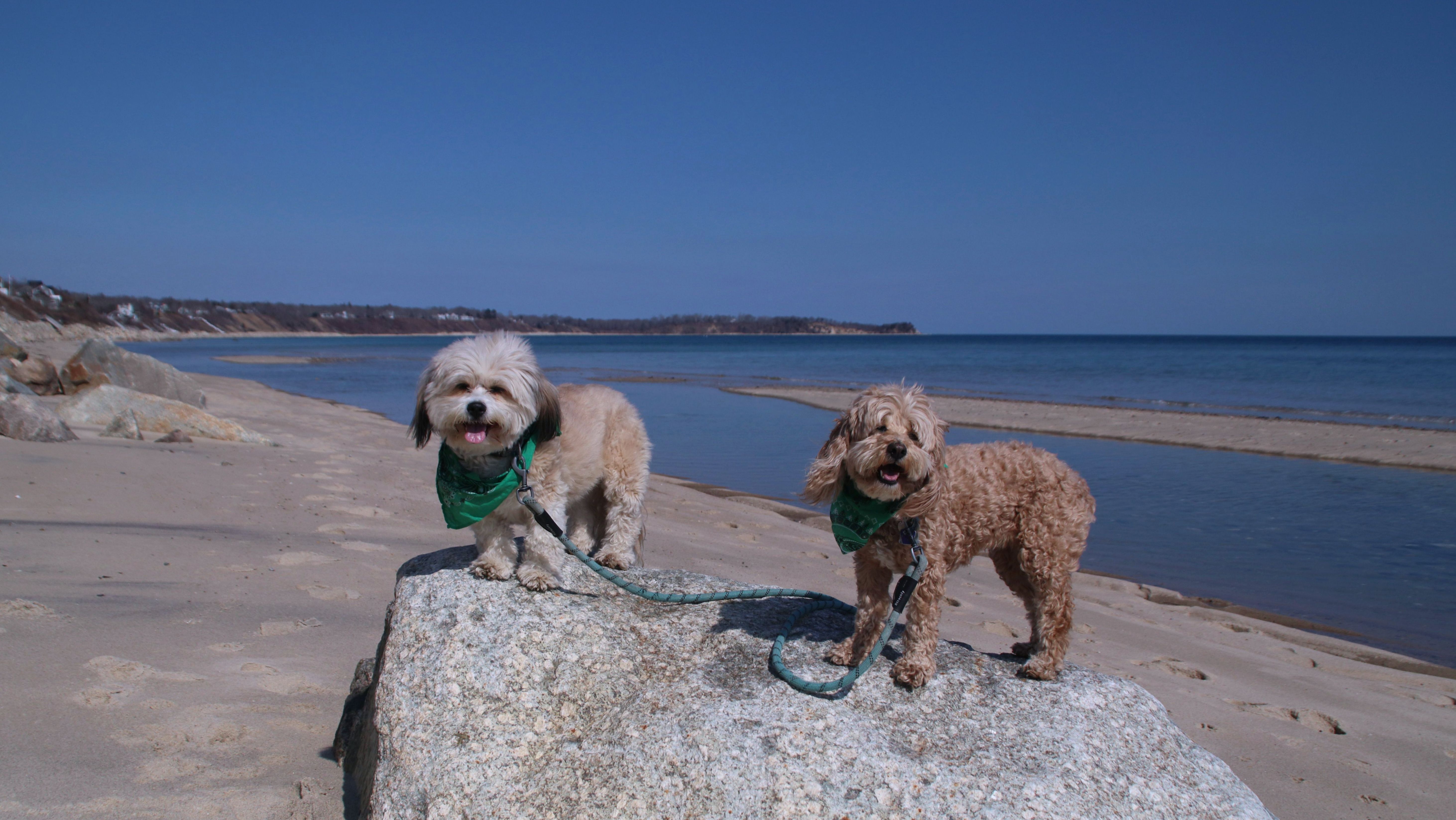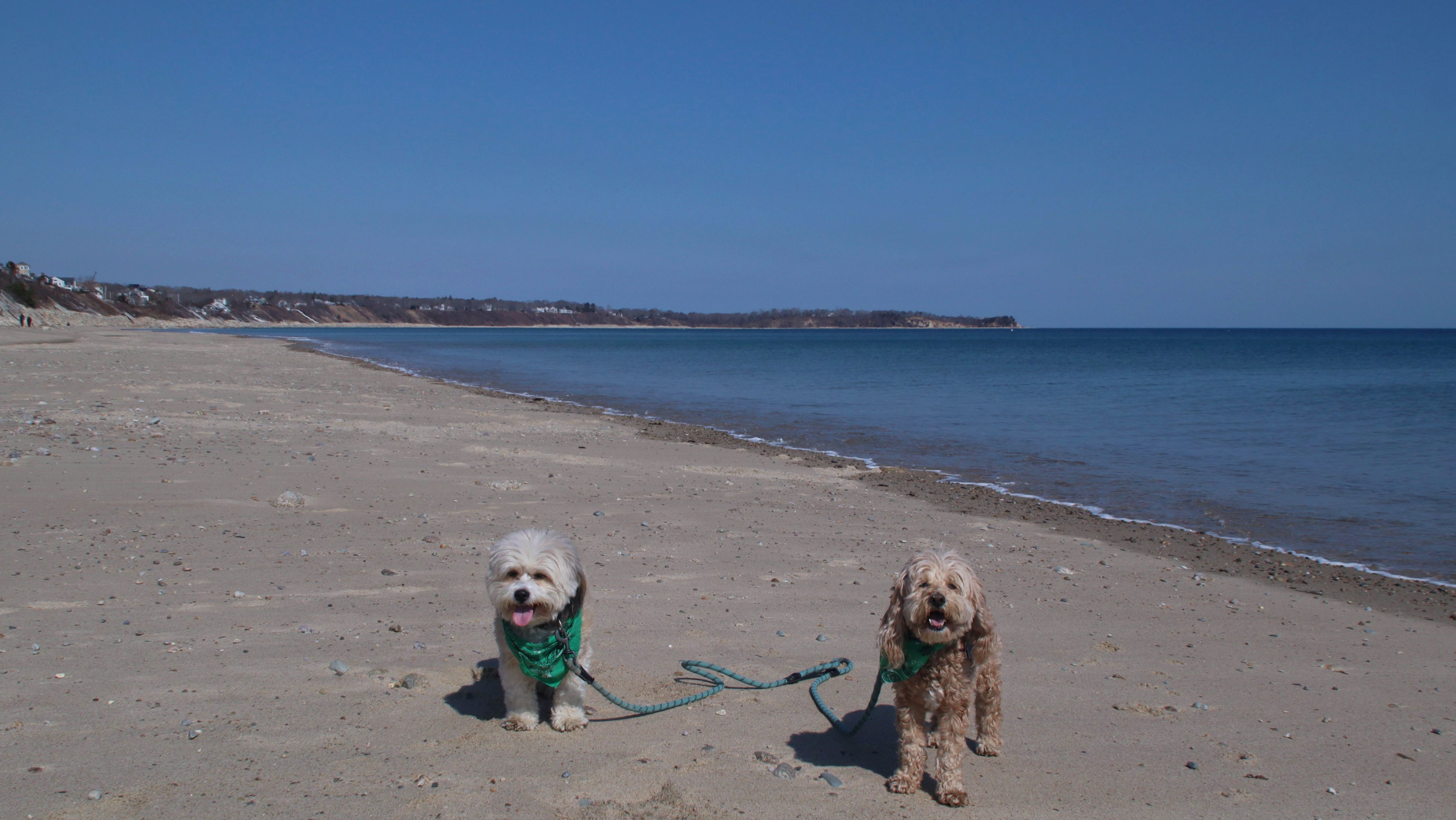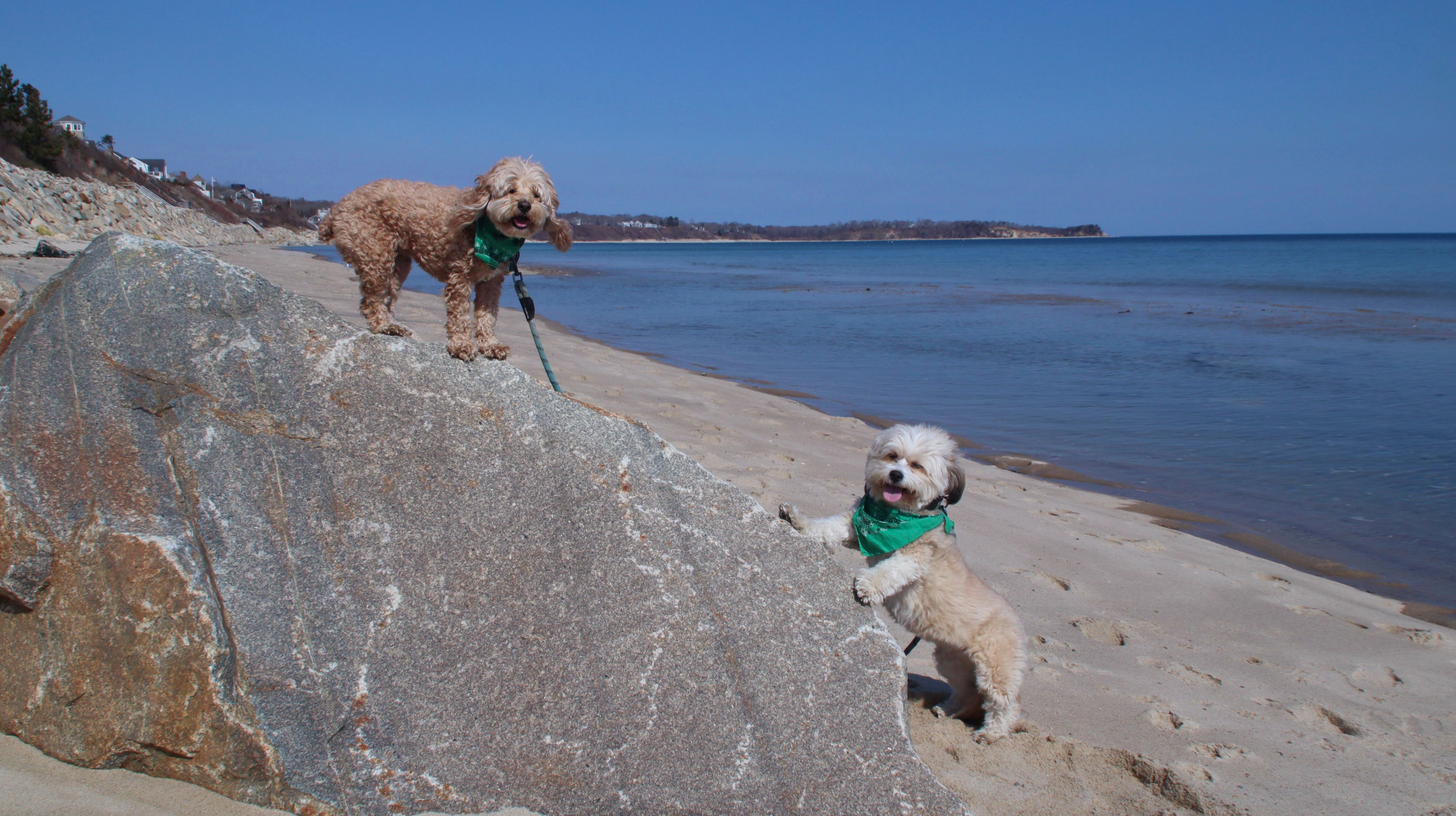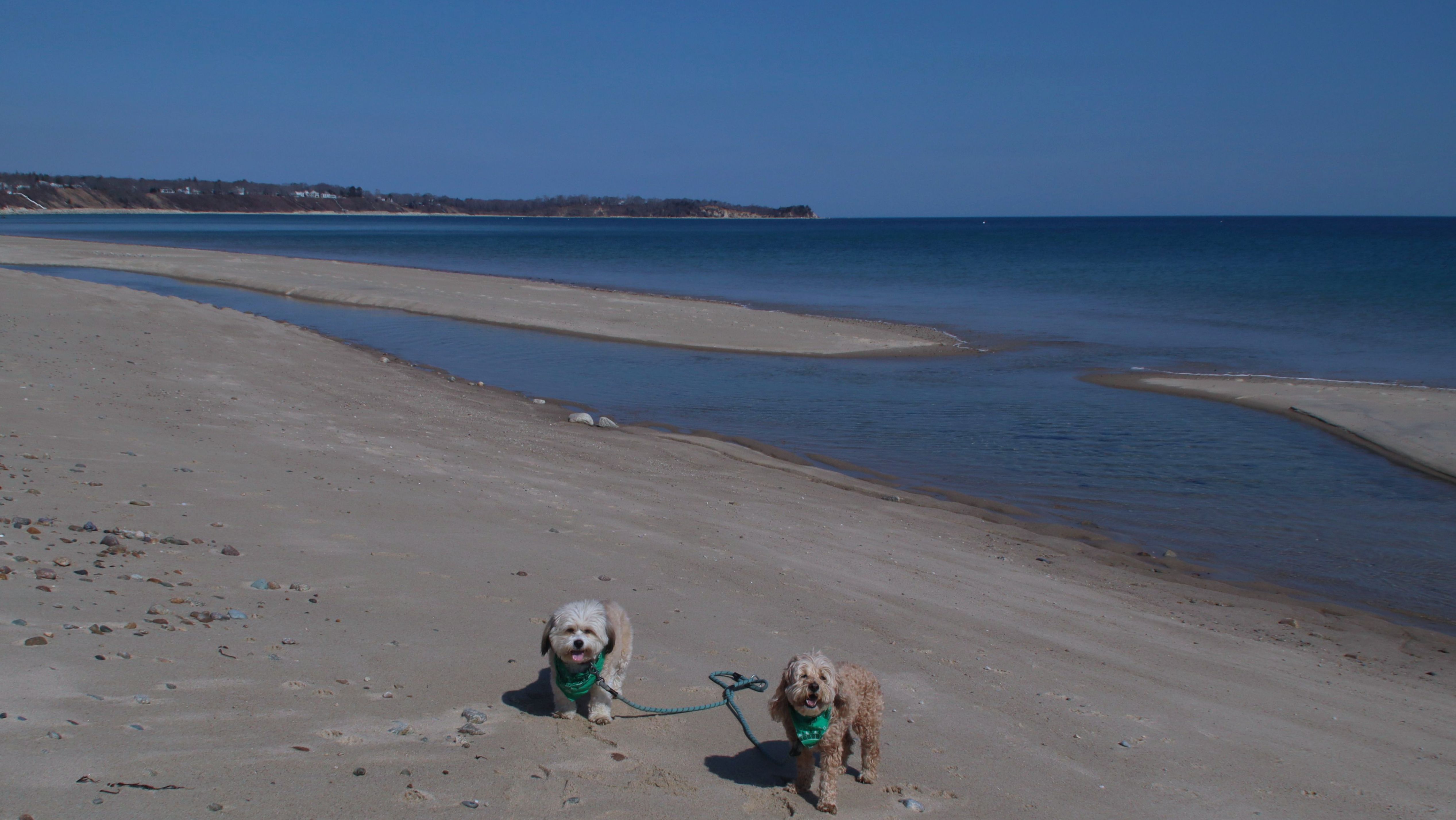 This is the area between Fishermans Memorial Park and Pilgrim Memorial State Park. On our fist visit to this area, the water right up to the wall. This time around, there was a beach where the dogs could cool off!