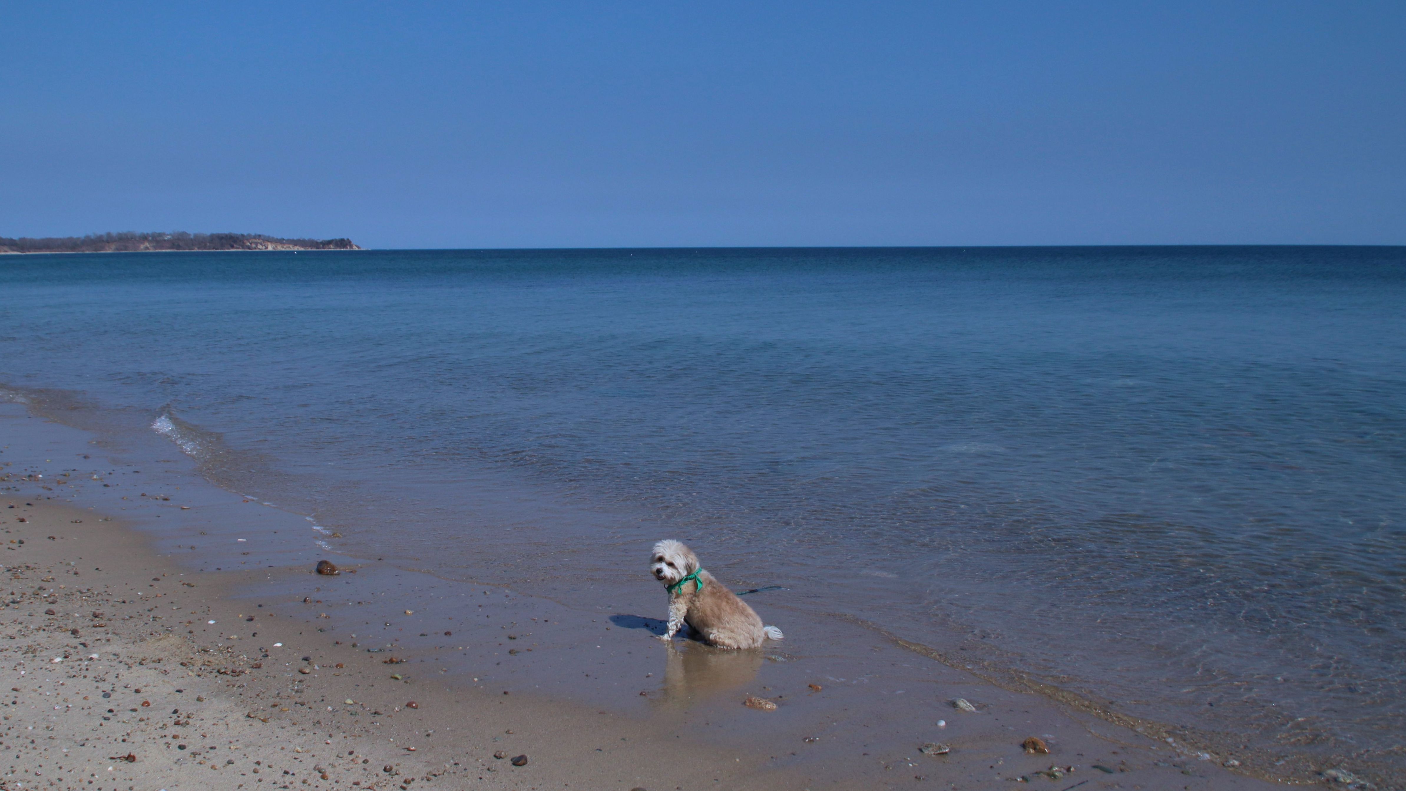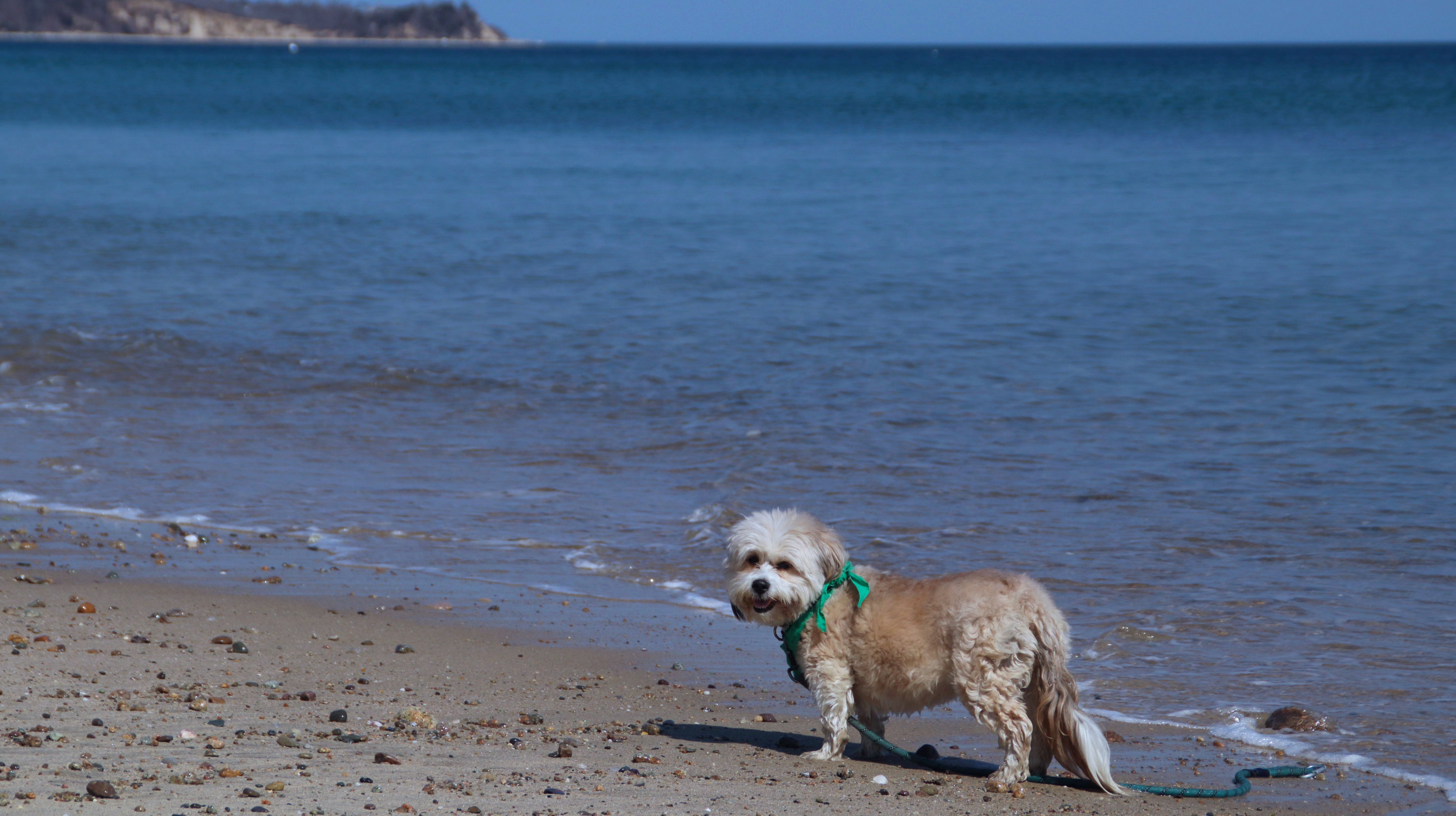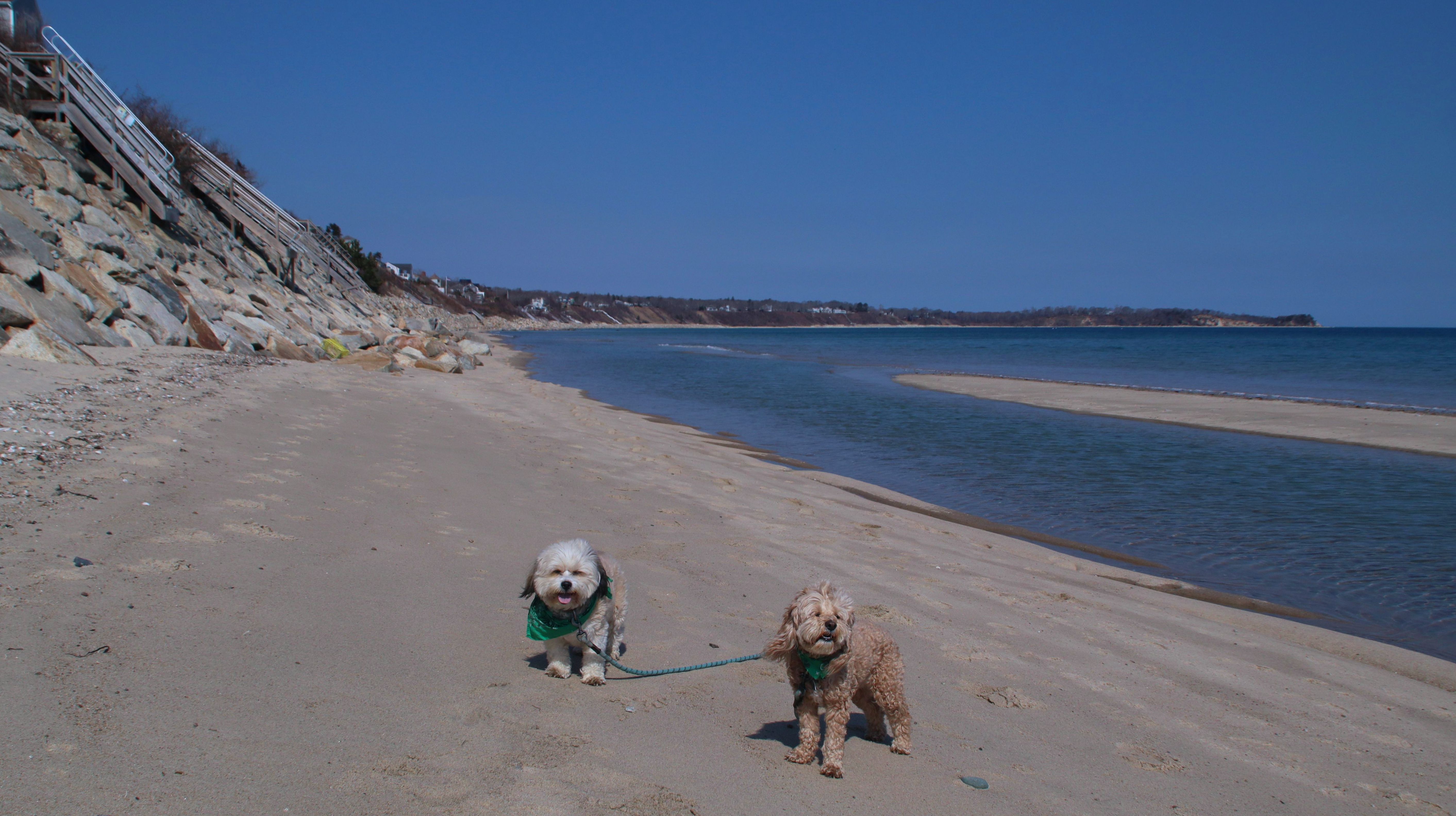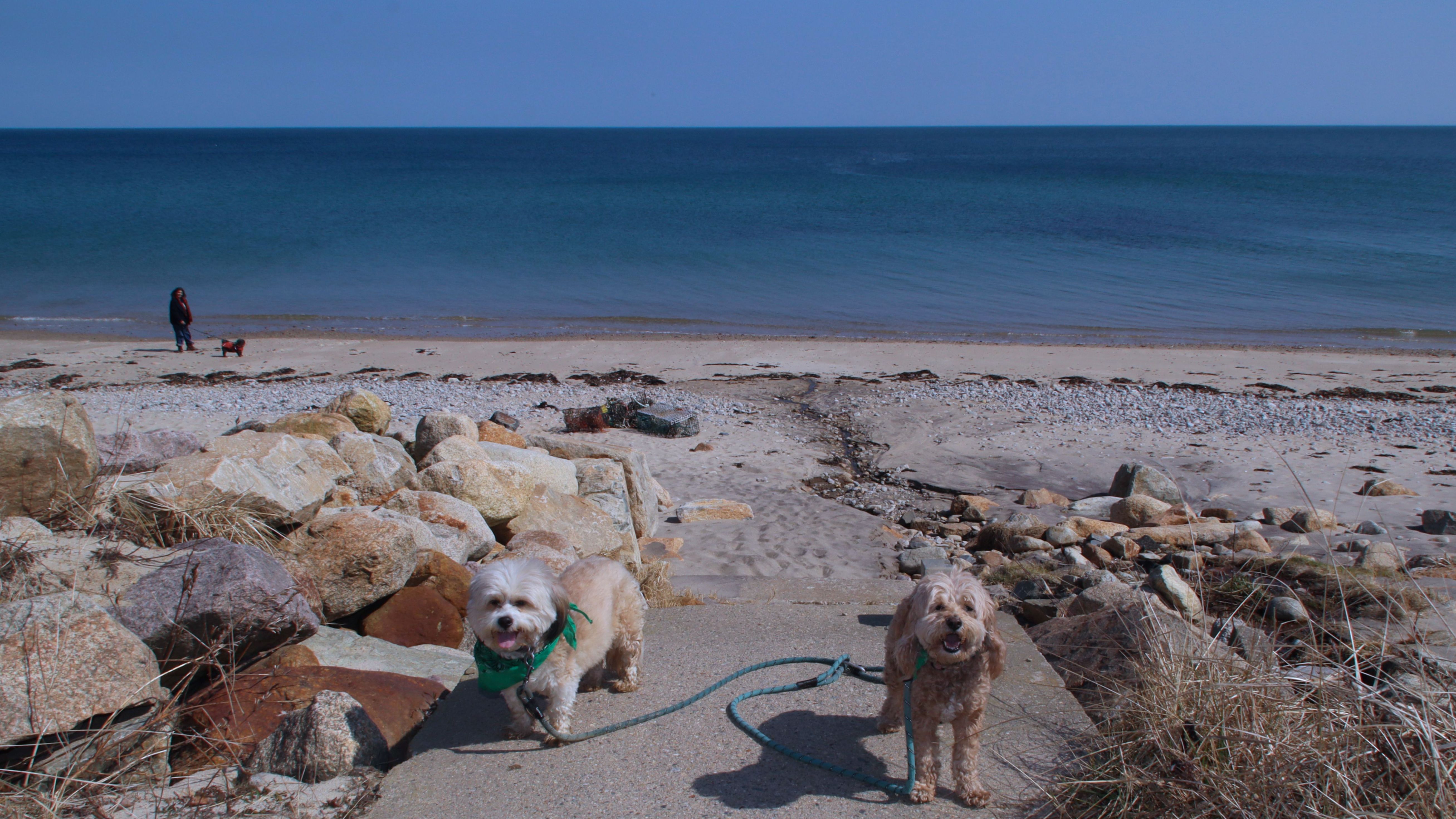 This is not a tourist beach. It's for members of the "Indian Brook Association". There is limited parking, and a resident sticker is required. We parked at nearby Manoment Recreation Area and walked a half mile to the beach. There are a couple access points along Seaview Drive that have stairs leading down to the beach, but there was no access as the stairs were gone. I'm not sure if they aren't used anymore, or if the stairs are removed for the off-season. There is an easy access point at the north end of Seaview Drive, along with the small resident park area. From here we were able to access the beach. Dogs are allowed on this beach year round. The waves are light here, and even with it being the first day of spring, Mandy decided to cool off in the water. We encountered a few other dog walkers, and even though we were "outsiders", the people and dogs we met were friendly. We only were able to walk about a mile along the beach. We were going to continue further south through what's called "Pilgrim Beach", but the tides were too high for us to access it. It was a pleasant walk for sure, and we always love exploring new beaches, but there are better options with easier access in Plymouth.